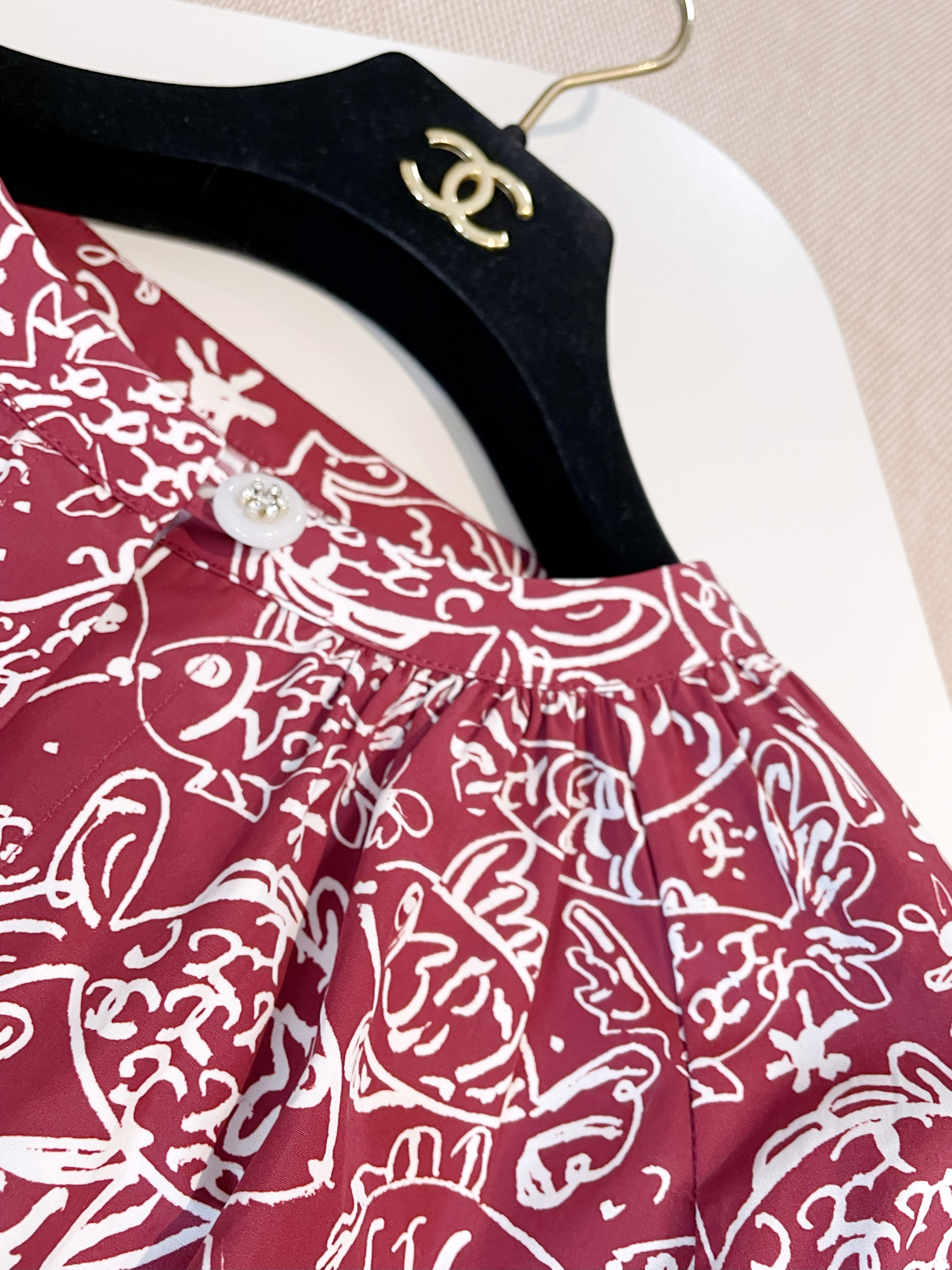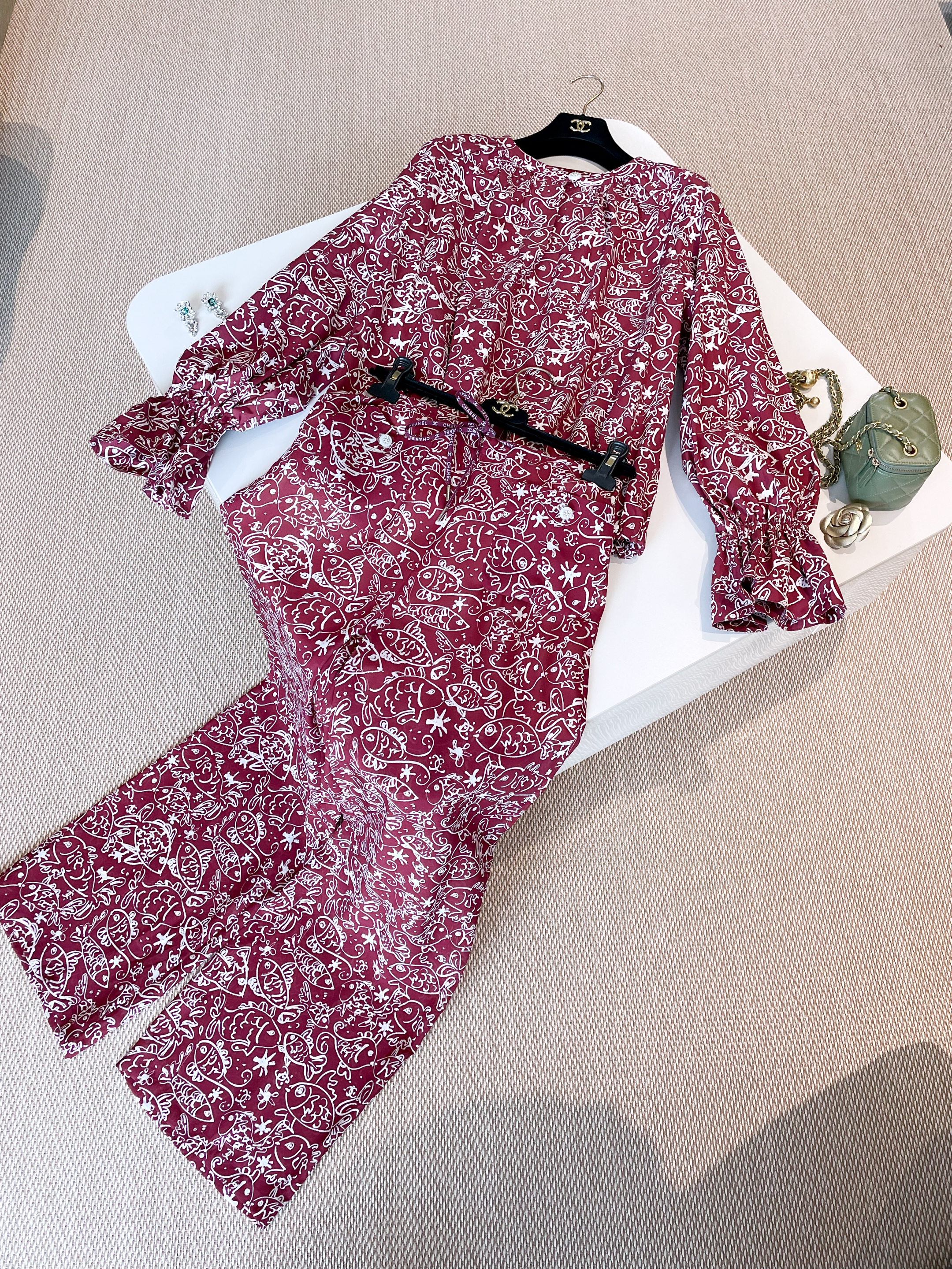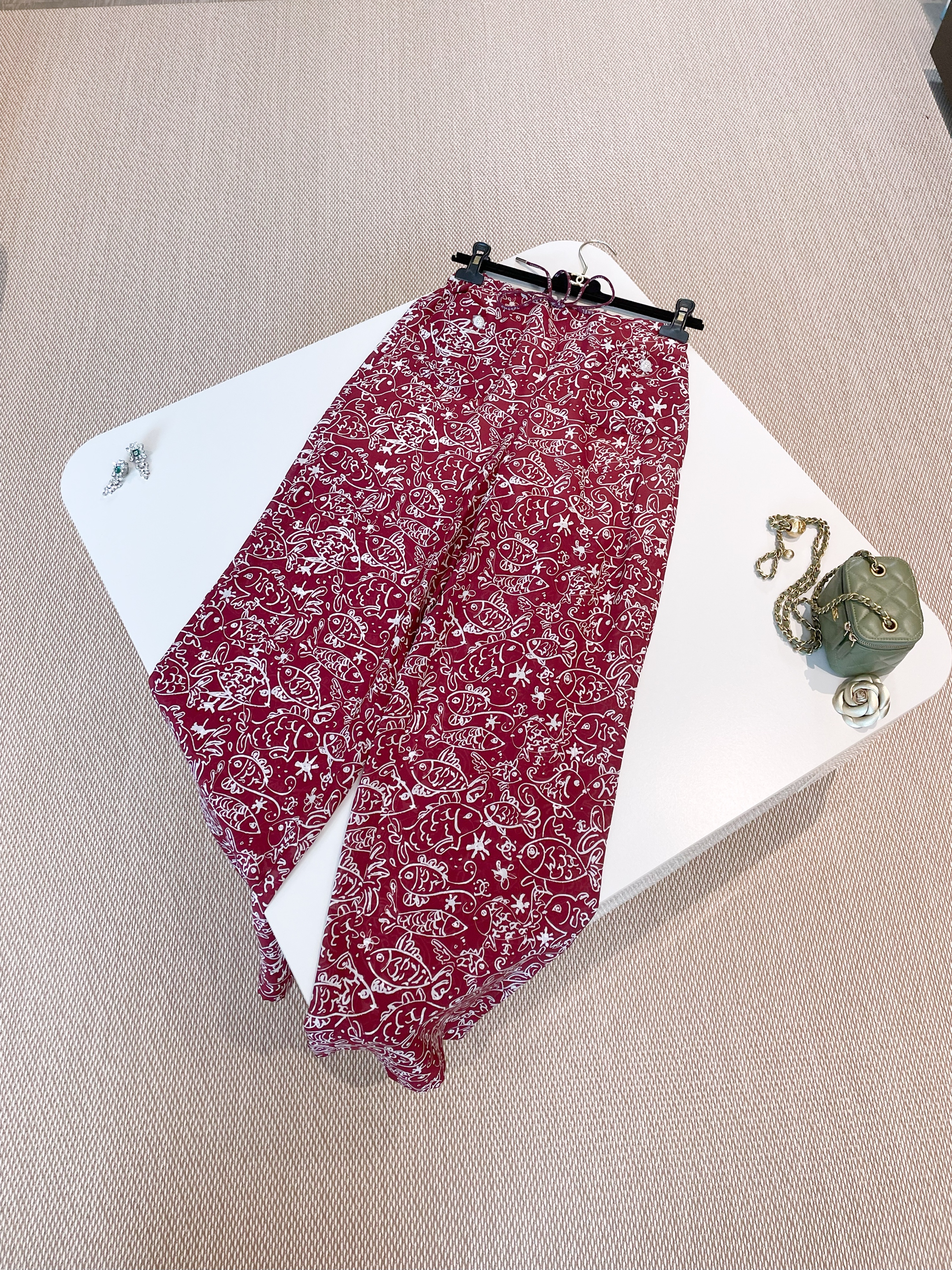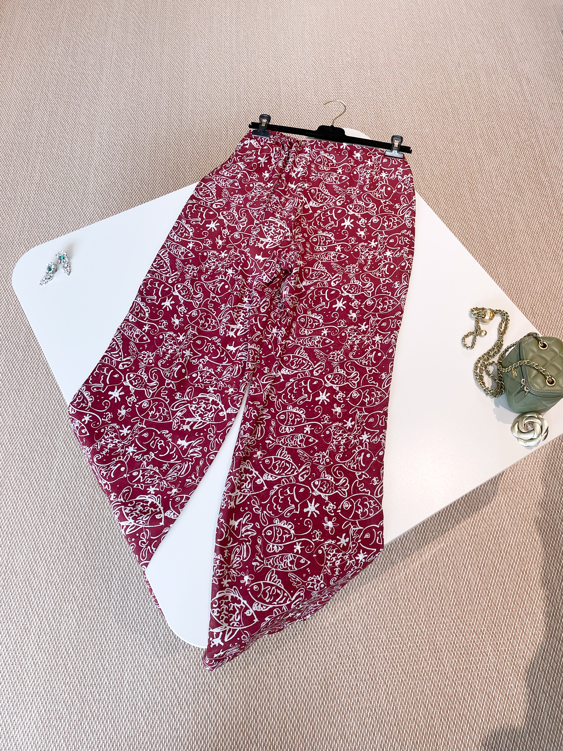 NIGO Chanel Women's Spring And Summer Printing Small Fish Silk Two-piece Drawstring Casual Shirt Straight Trousers Fashion Temperament Comfortable Suit Set Ngvp #nigo1334