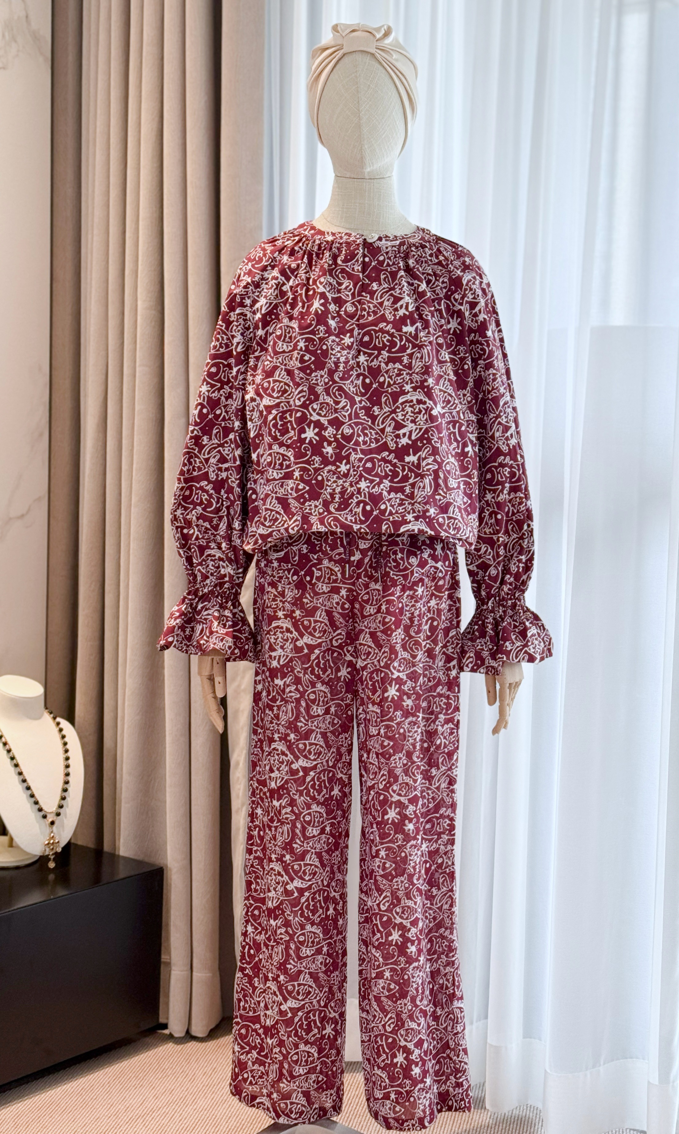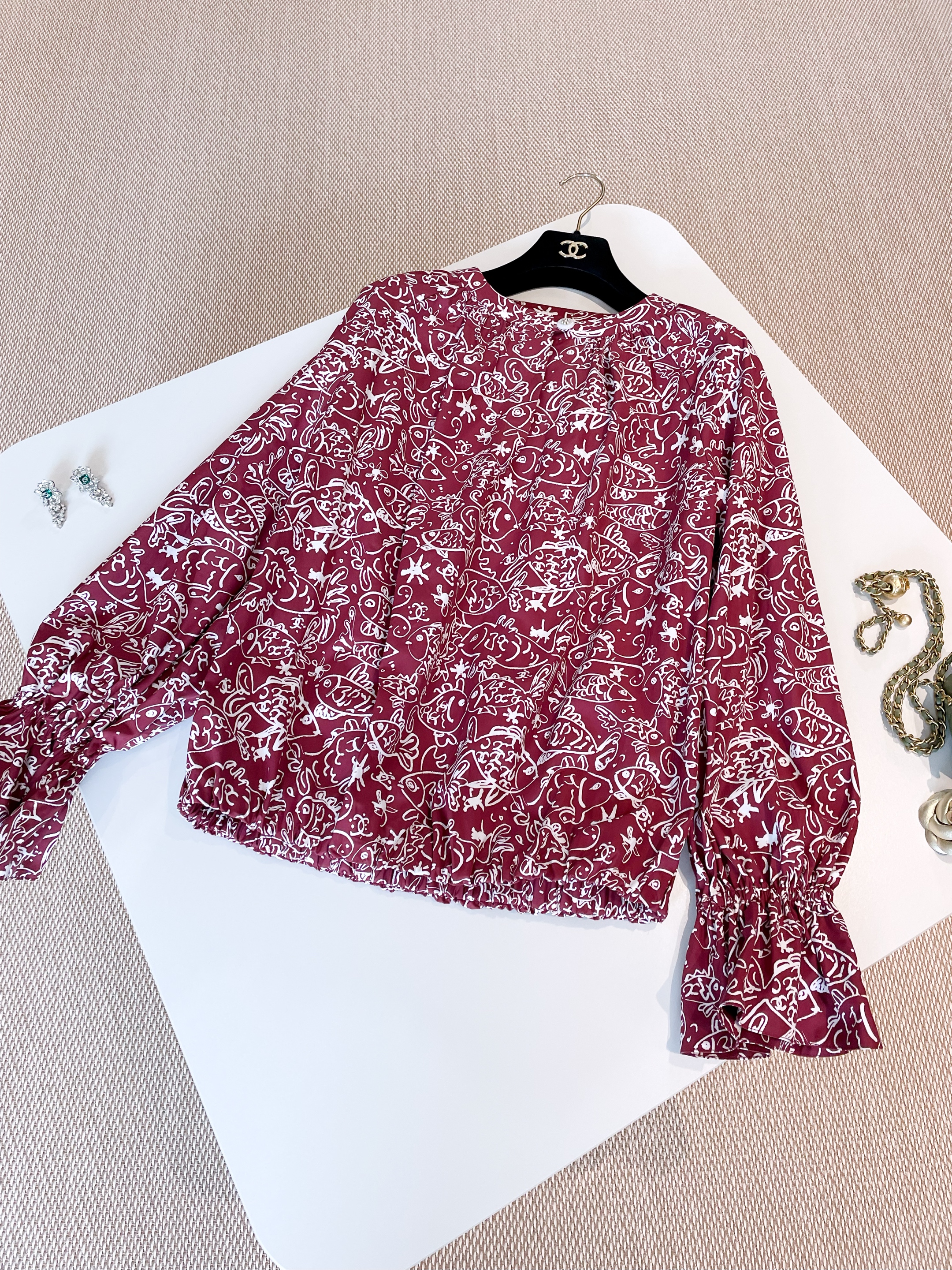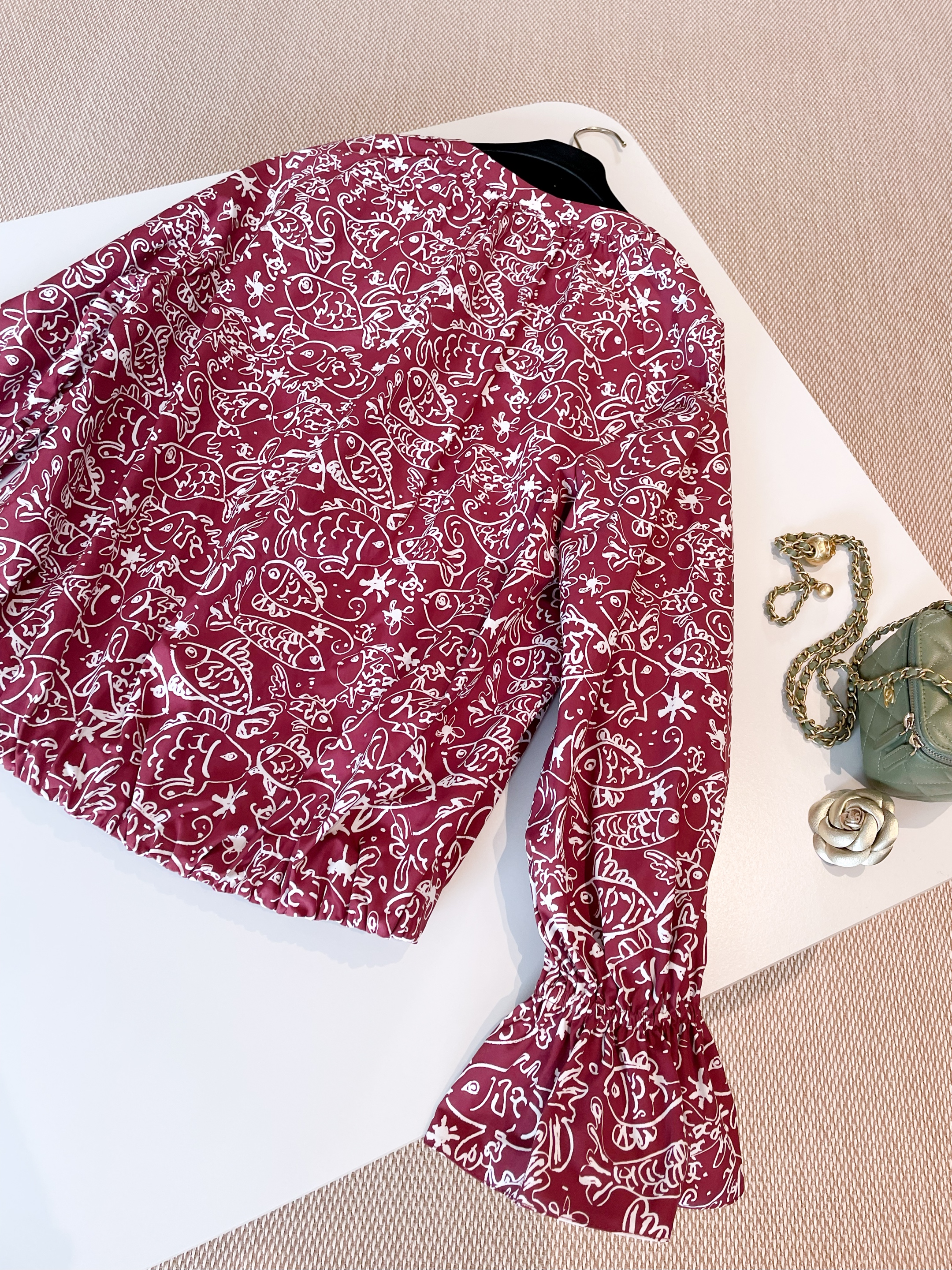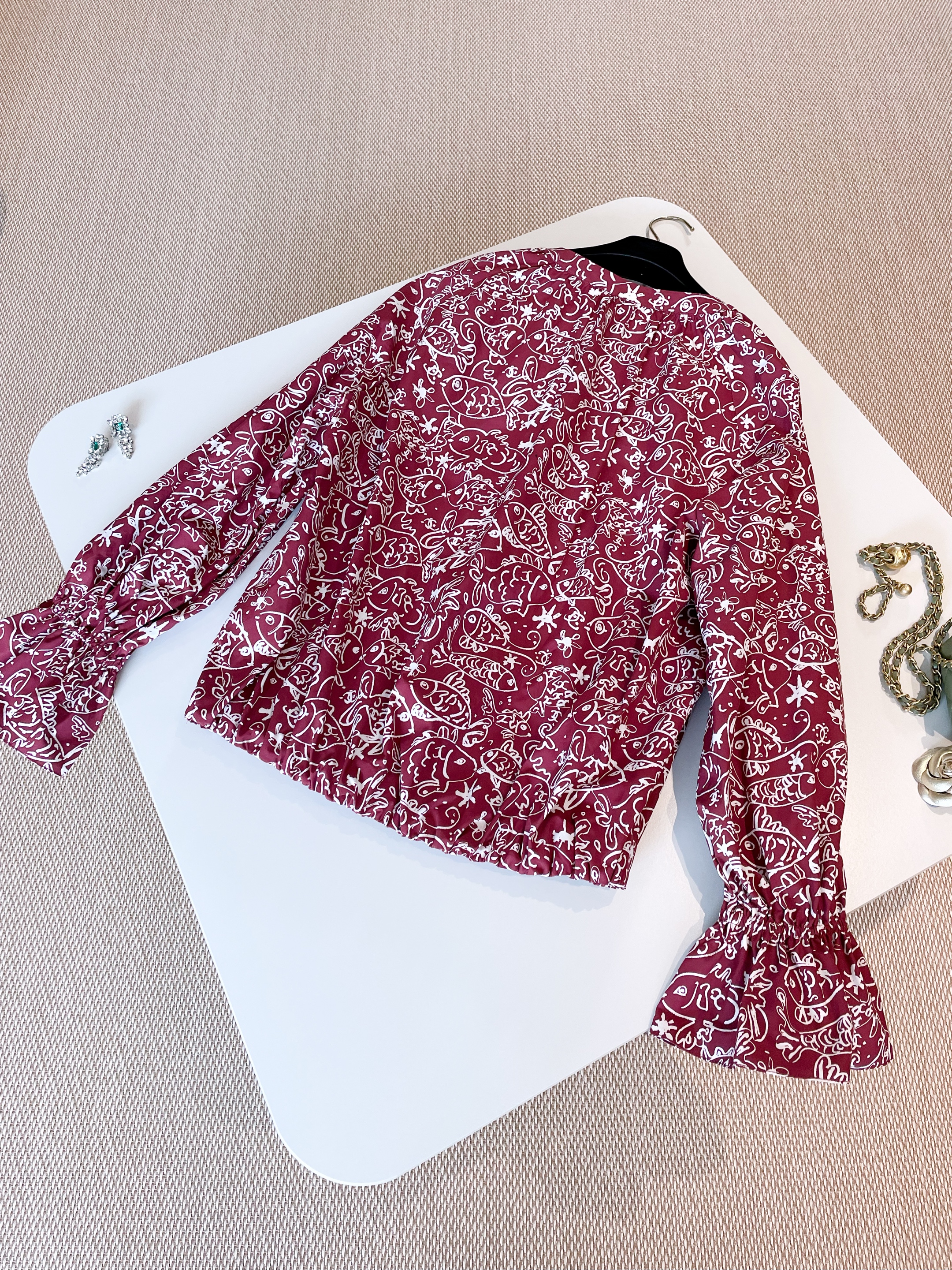 NIGO Chanel Women's Spring And Summer Printing Small Fish Silk Two-piece Drawstring Casual Shirt Straight Trousers Fashion Temperament Comfortable Suit Set Ngvp #nigo1334