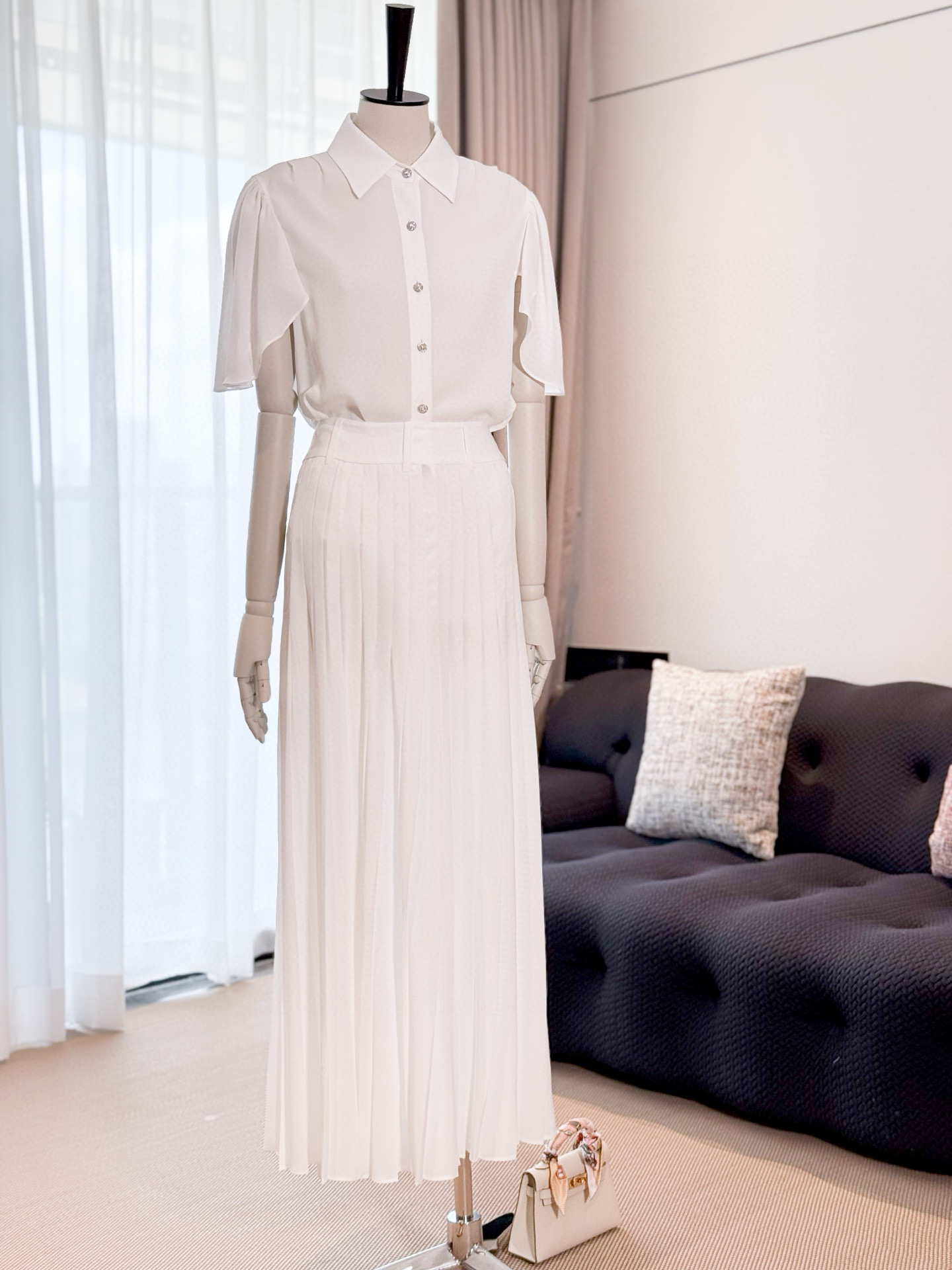 NIGO Chanel Women's Vacation Shirt And Skirt Fashionable And Elegant Set Spring And Summer Button-down Short-sleeved Shirt Pleated Skirt Suit Set Ngvp #nigo2165