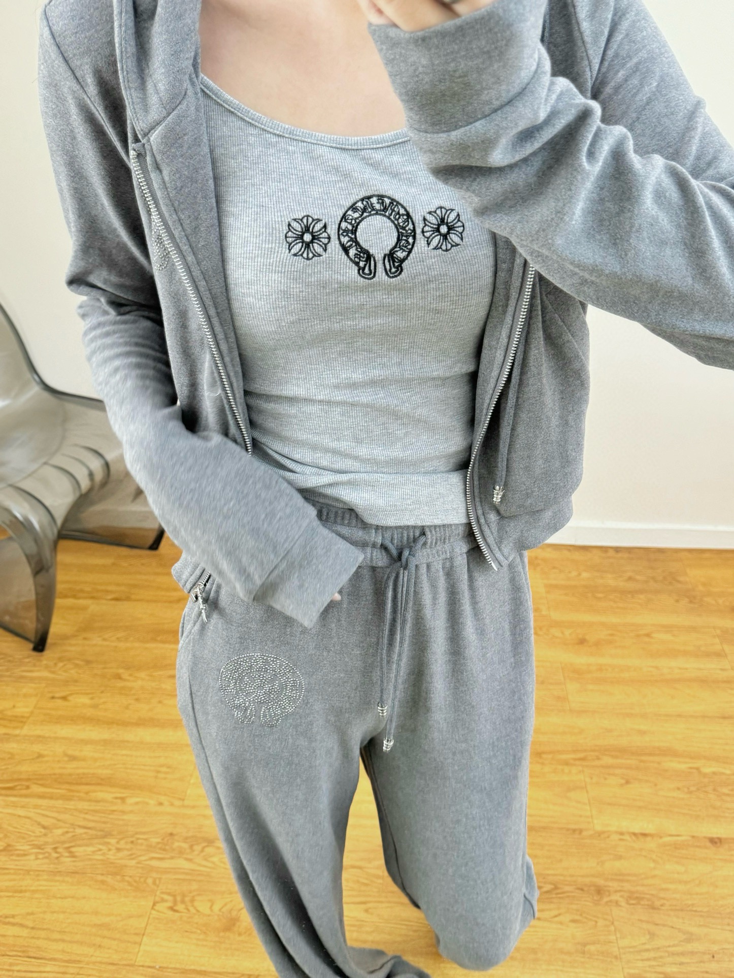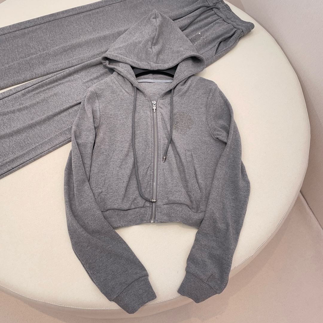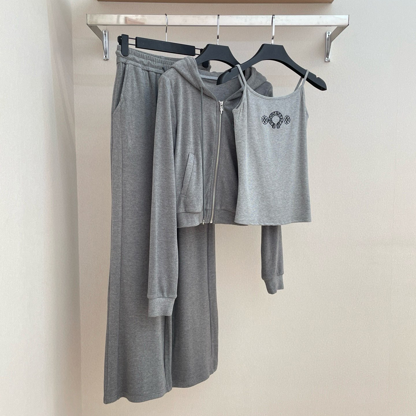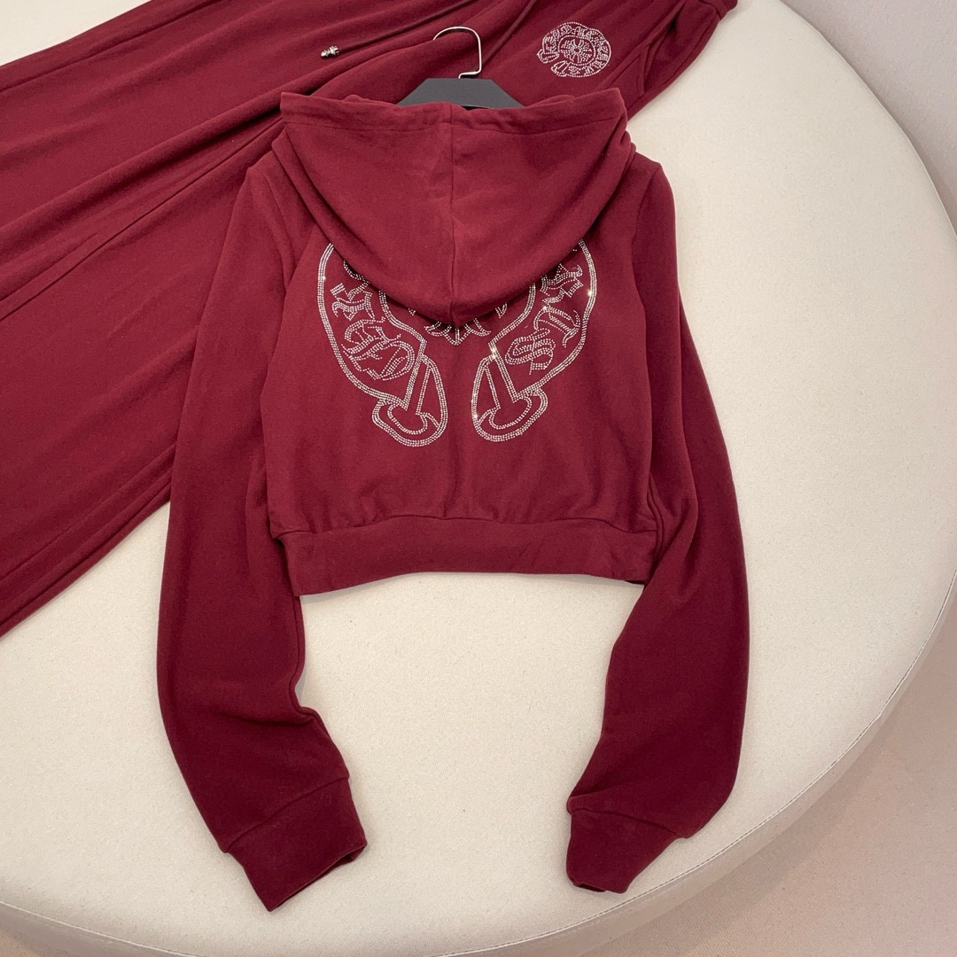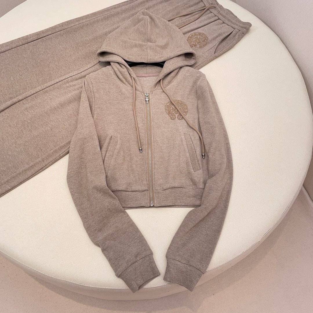 NIGO Chrome Hearts Women's Spring And Autumn Camisole Undershirt Zipper Hooded Long Sleeved Jacket Lace Up Casual Trousers Pants Three Piece Suit Set #nigo73348