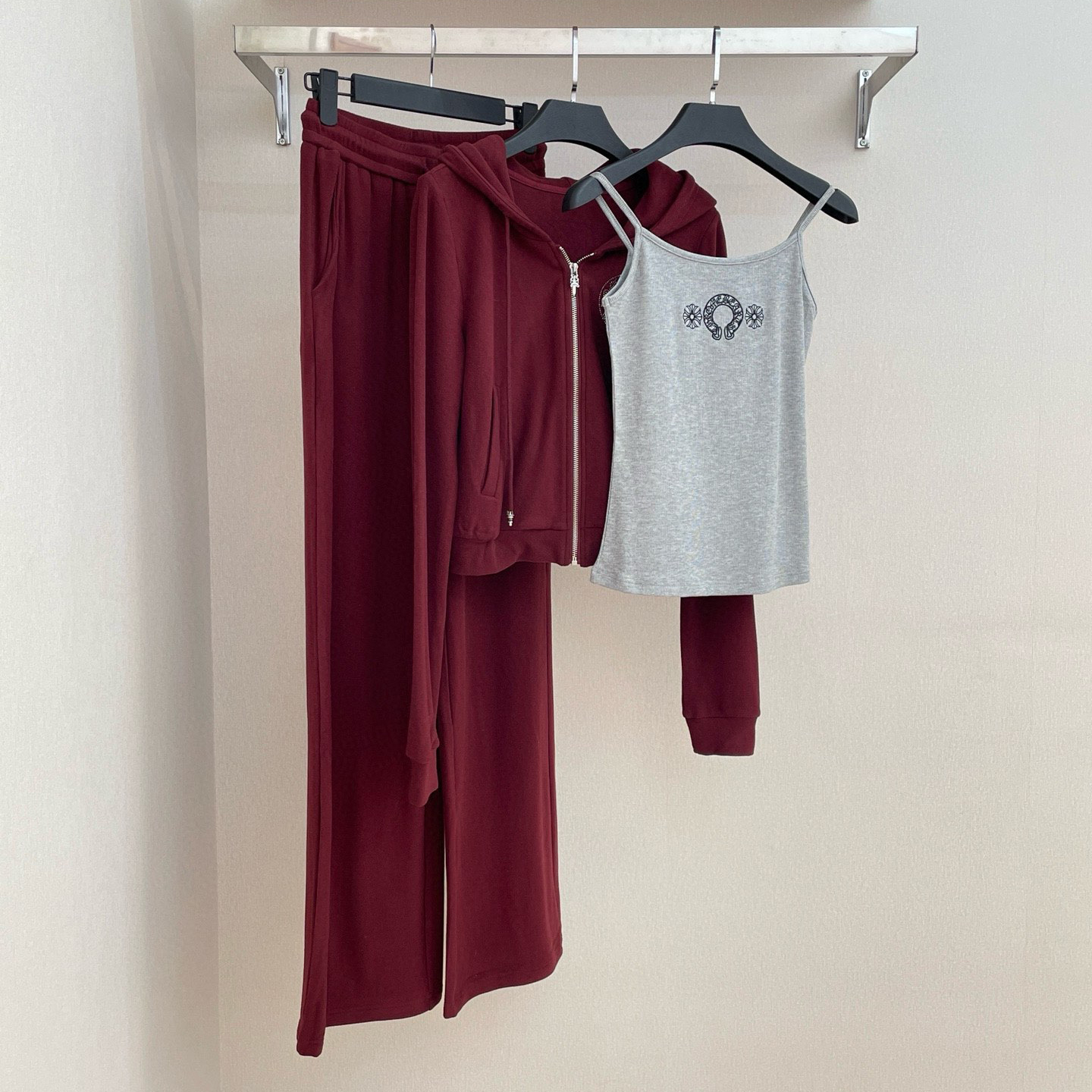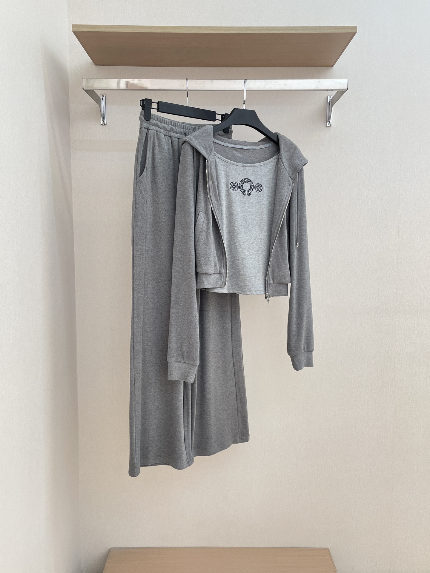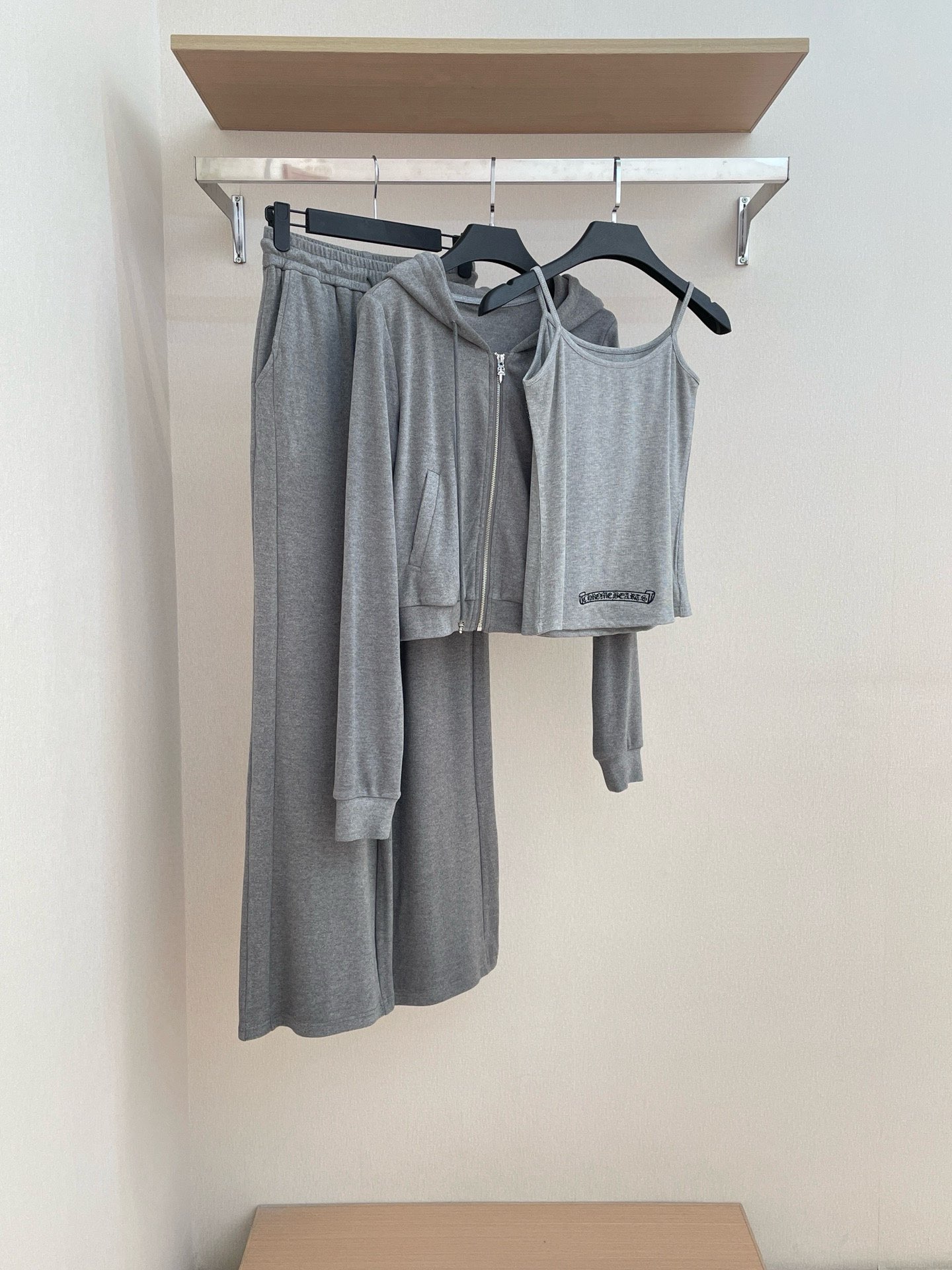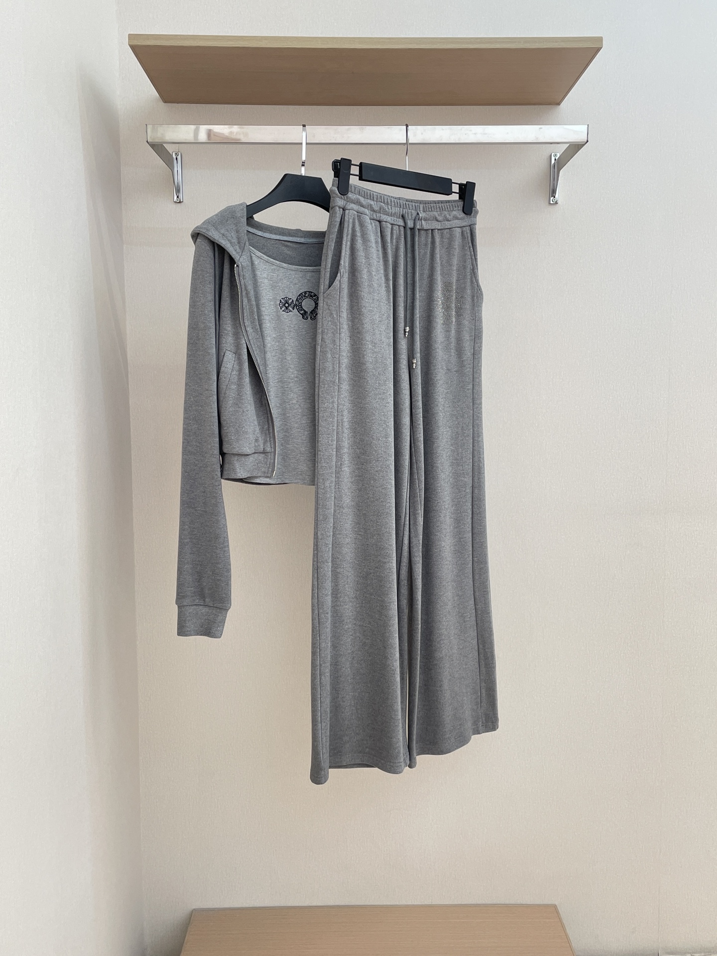 NIGO Chrome Hearts Women's Spring And Autumn Camisole Undershirt Zipper Hooded Long Sleeved Jacket Lace Up Casual Trousers Pants Three Piece Suit Set #nigo73348