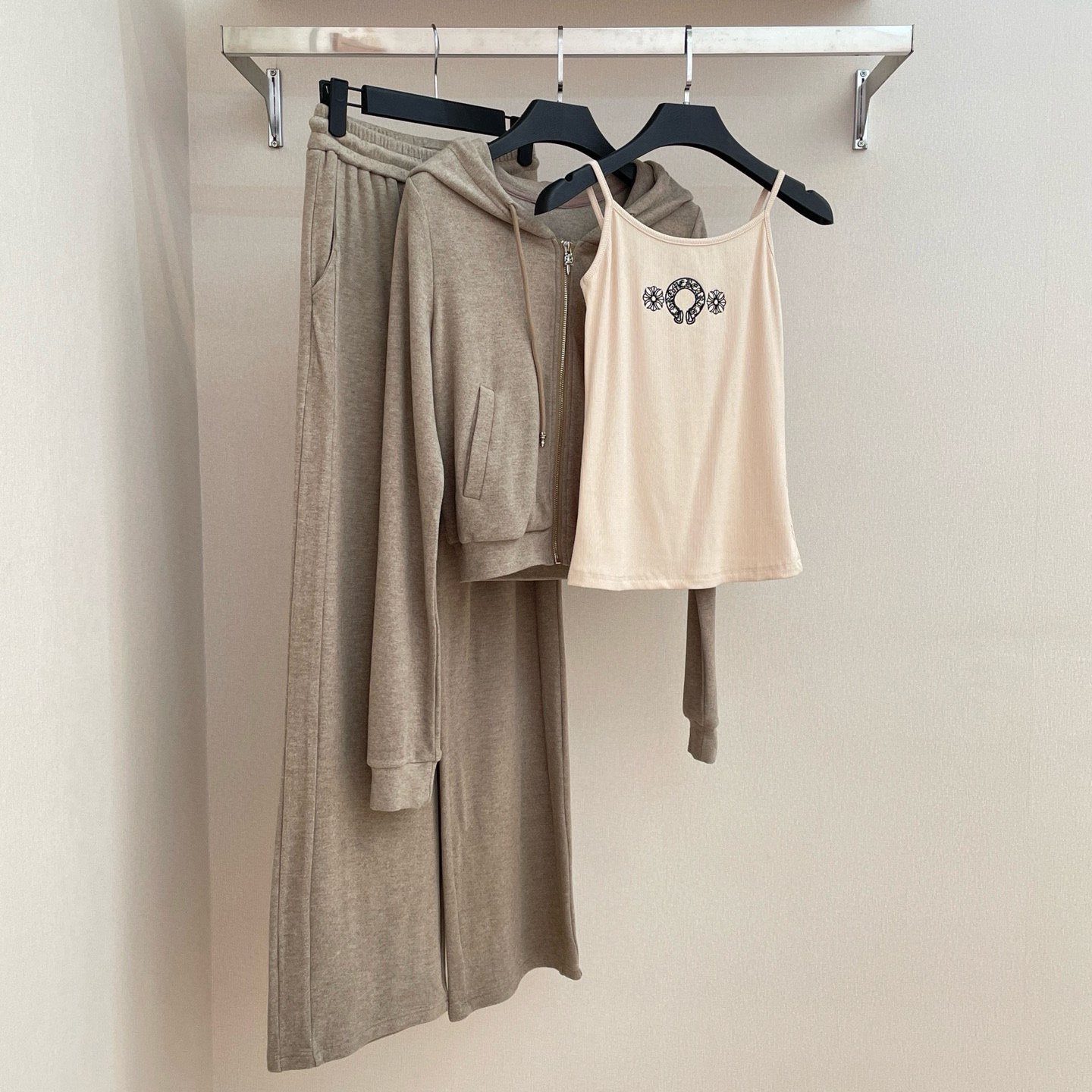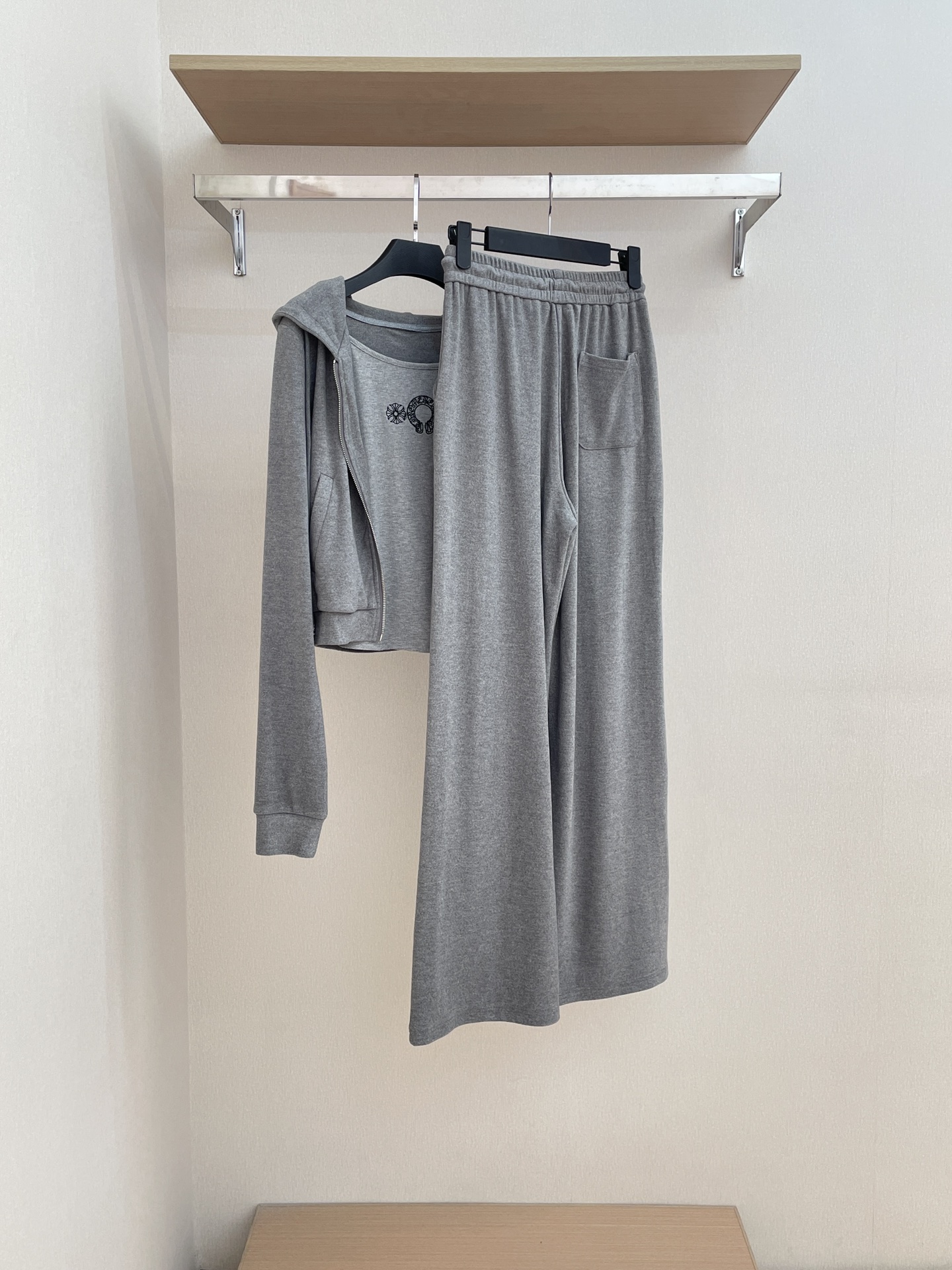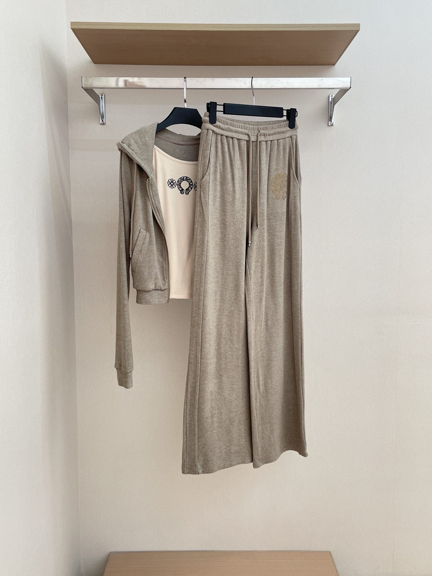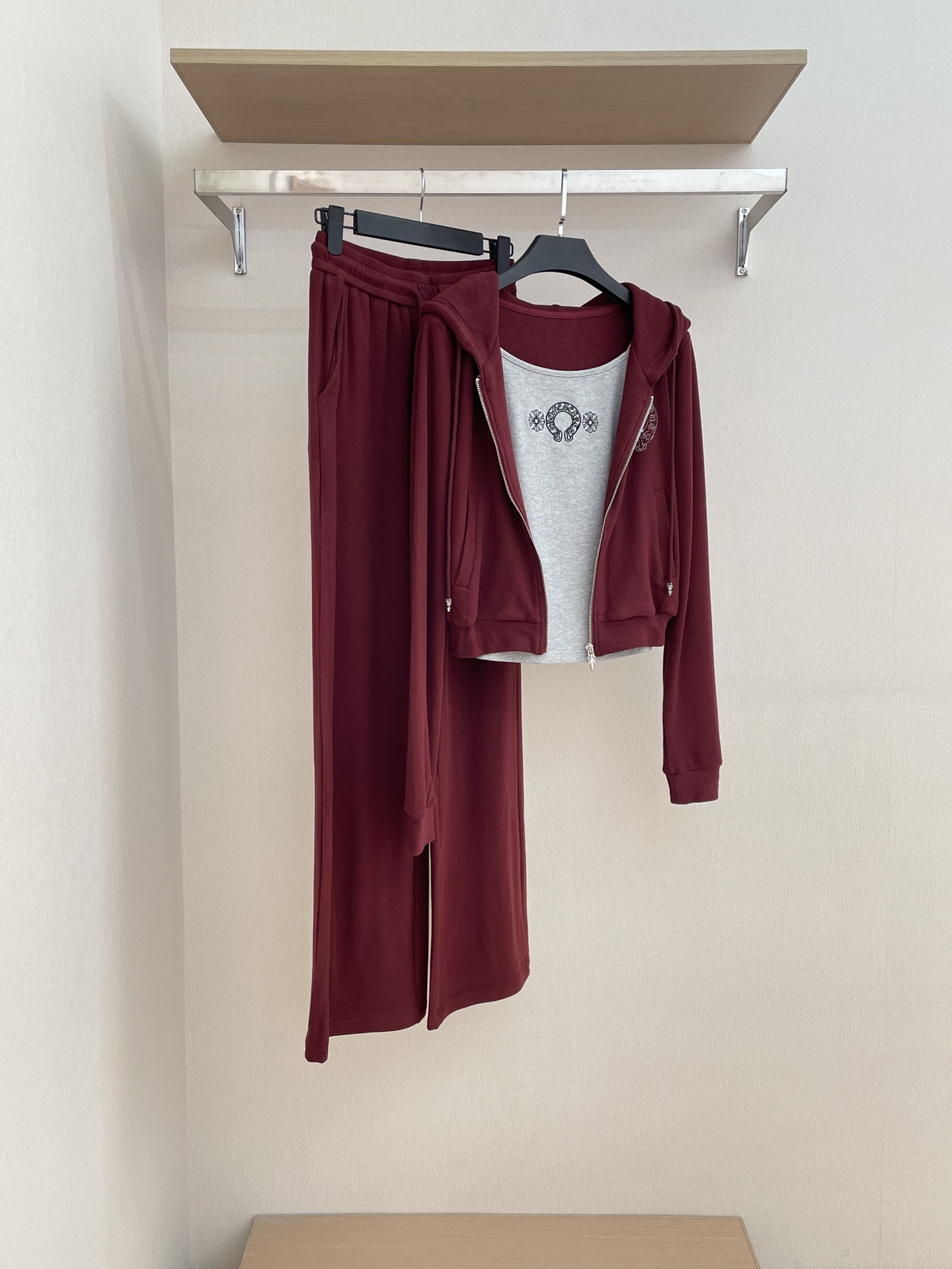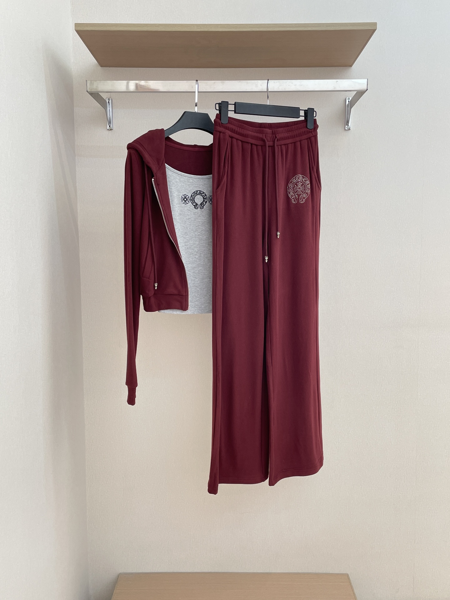 NIGO Chrome Hearts Women's Spring And Autumn Camisole Undershirt Zipper Hooded Long Sleeved Jacket Lace Up Casual Trousers Pants Three Piece Suit Set #nigo73348