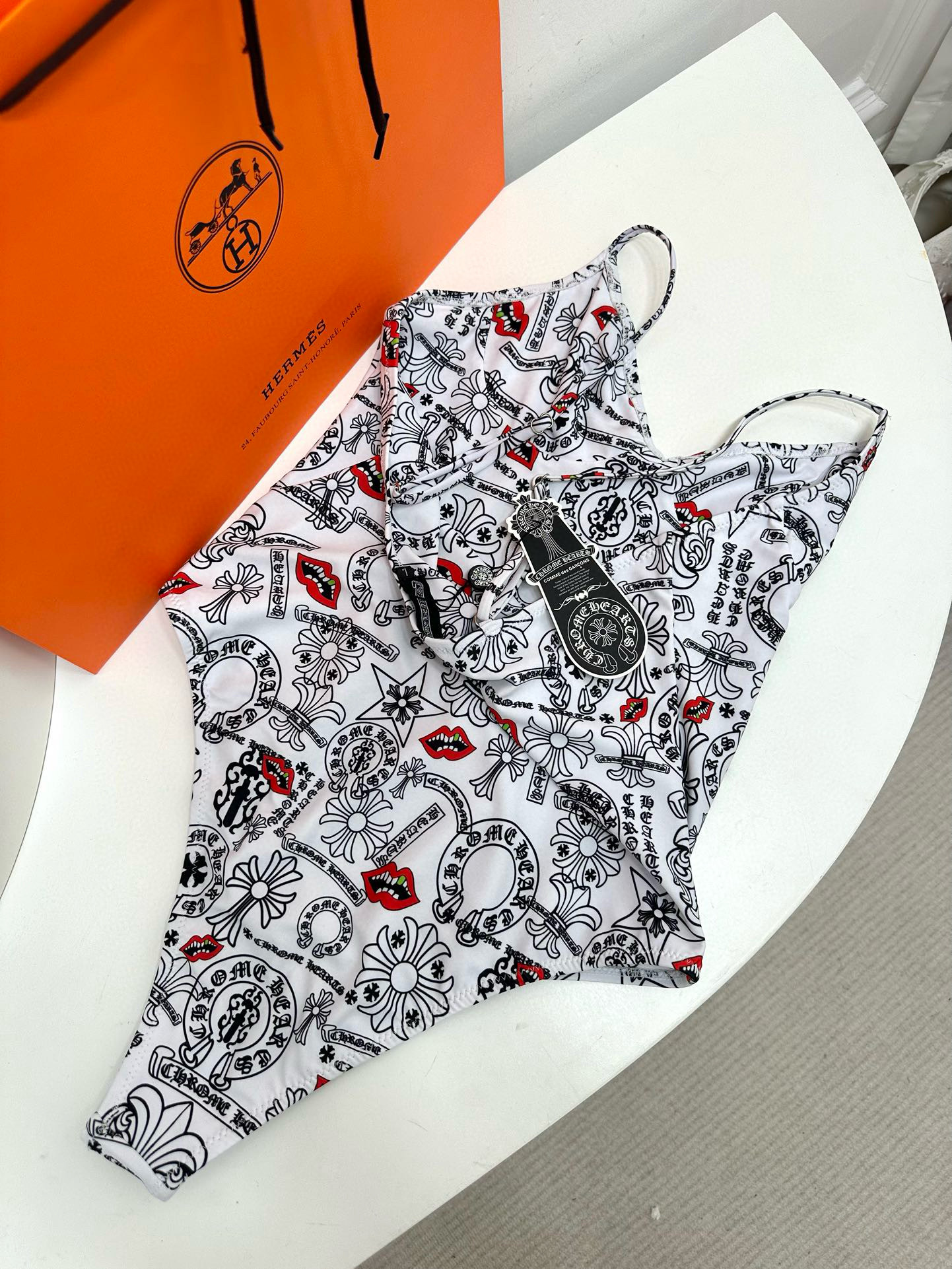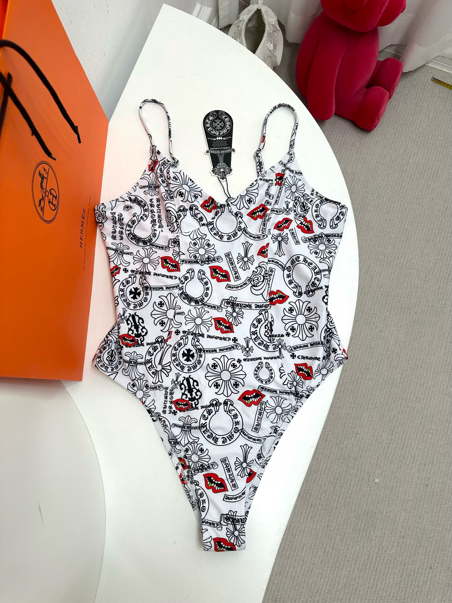 NIGO Chrome Hearts Women's Summer Simple Graffiti Print One Piece Swimsuit #nigo99283