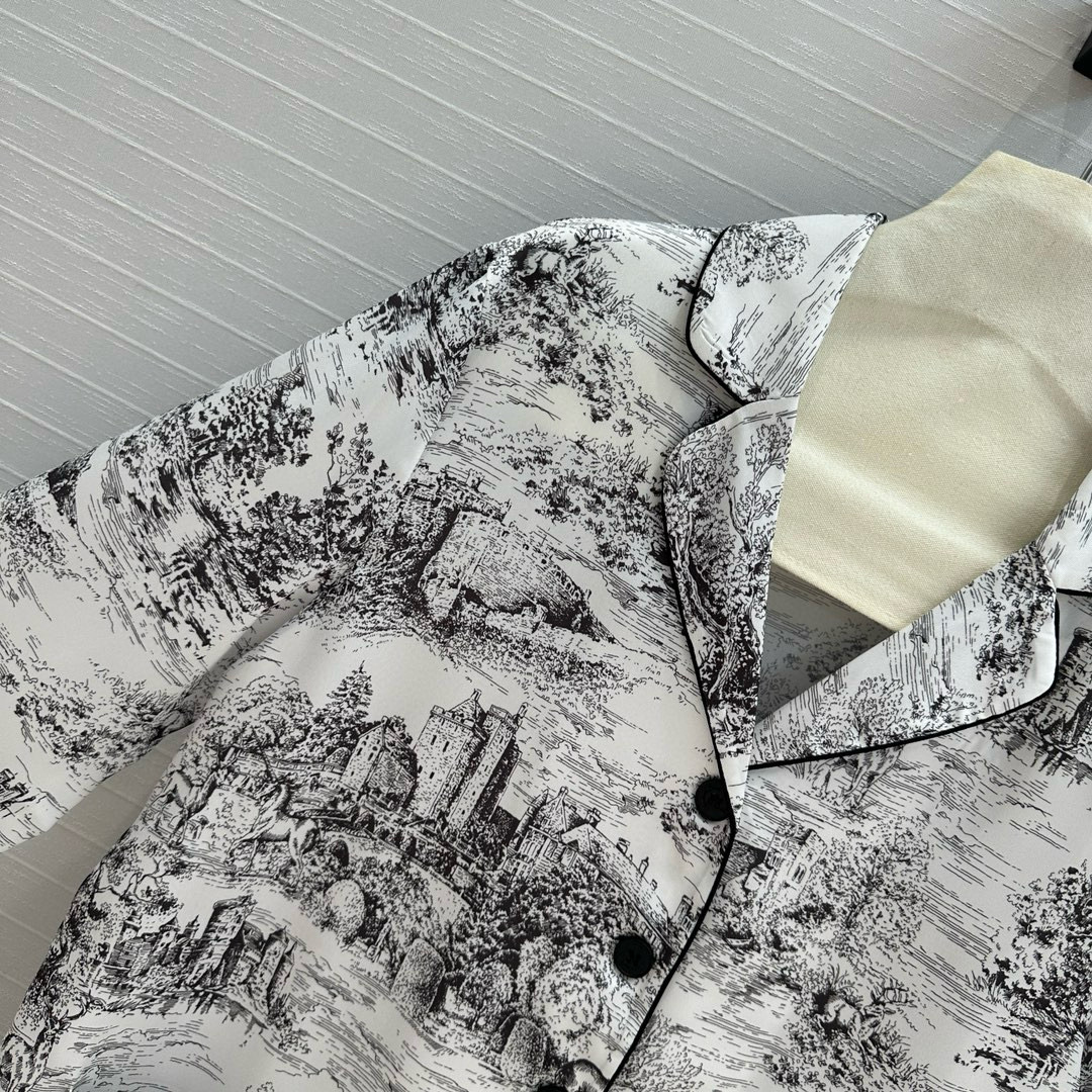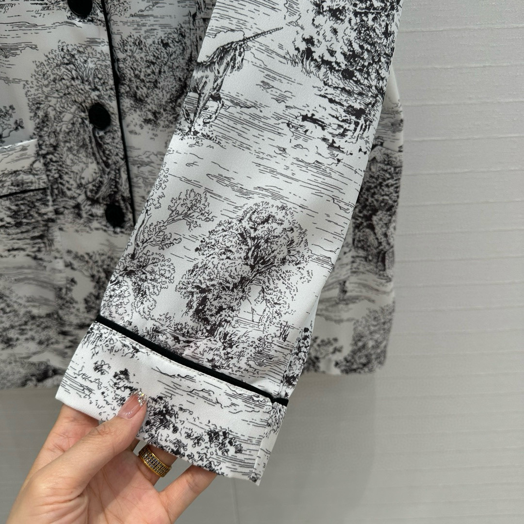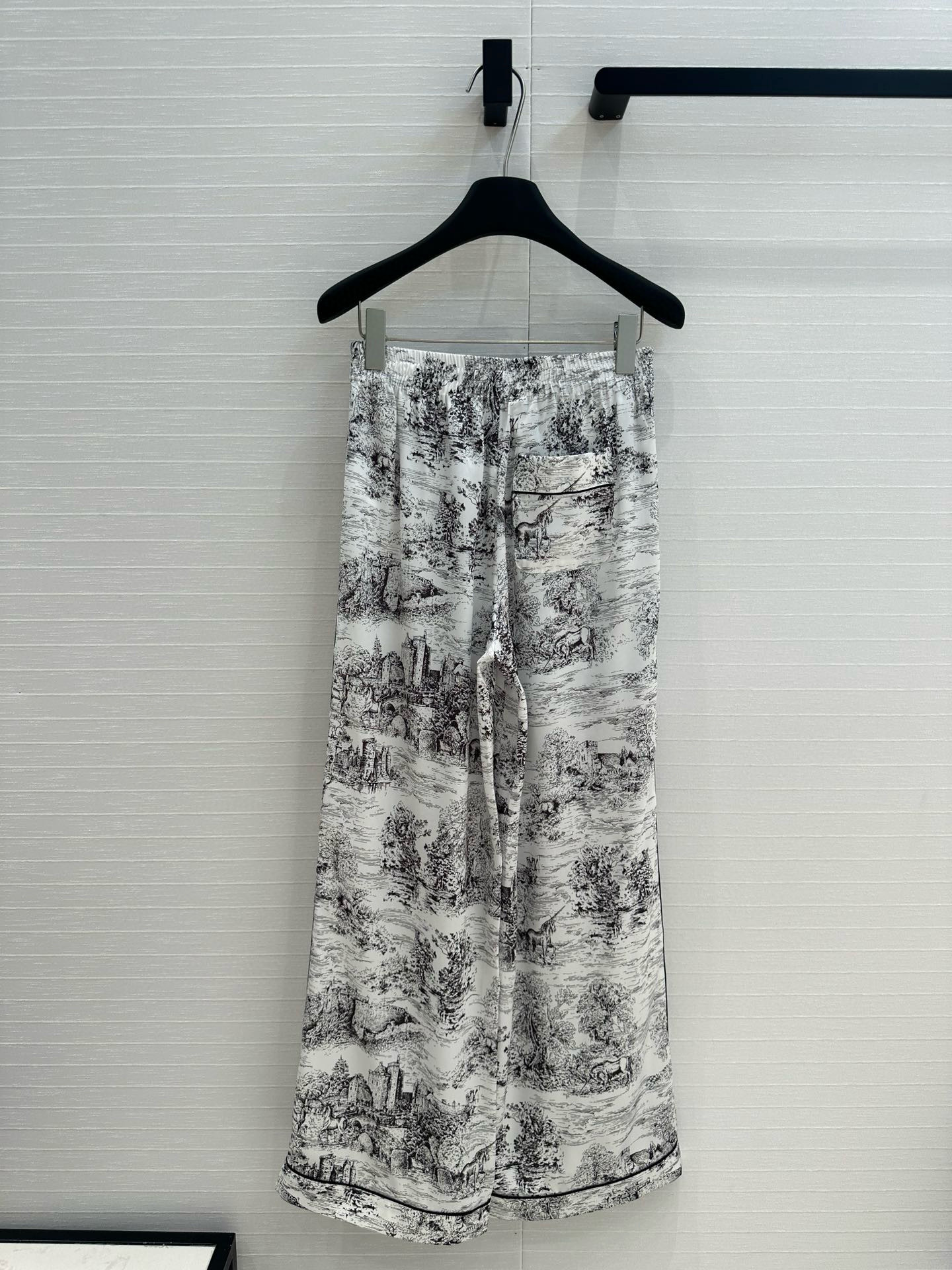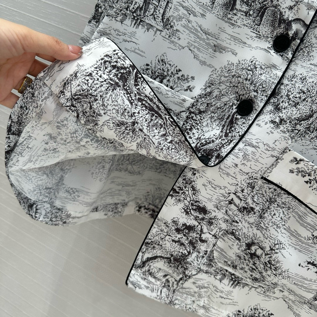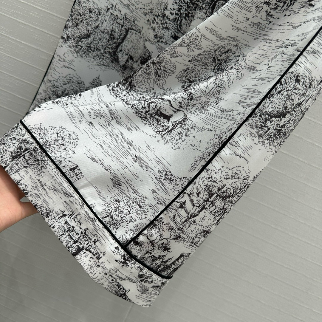NIGO Dior Women's Reverse Garden Jungle Pattern Printed Series Set Black And White Colour Blocking Fashionable Temperament Pajamas Lapel Shirt Homewear Straight Trousers Pants Comfort Suit Set #nigo71966