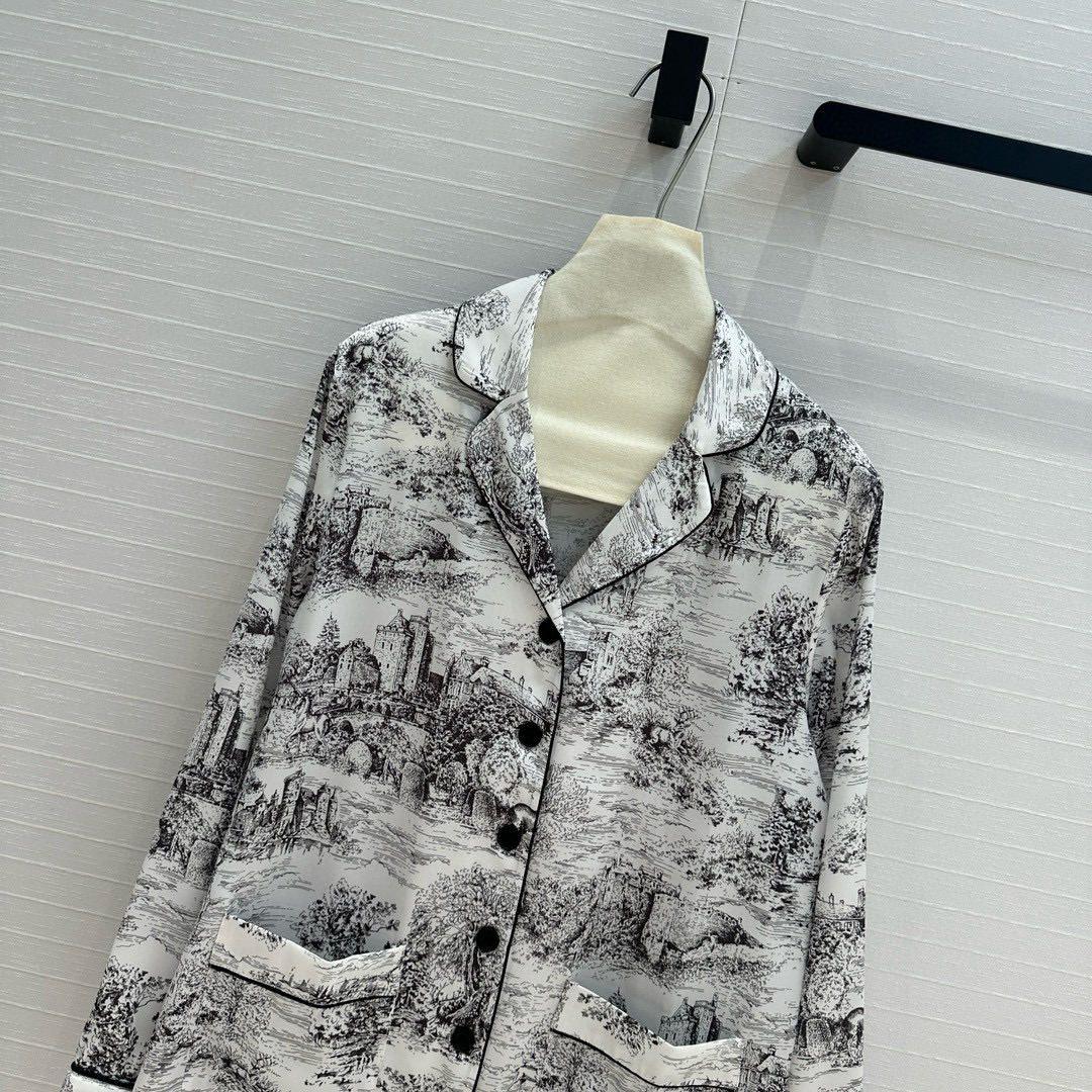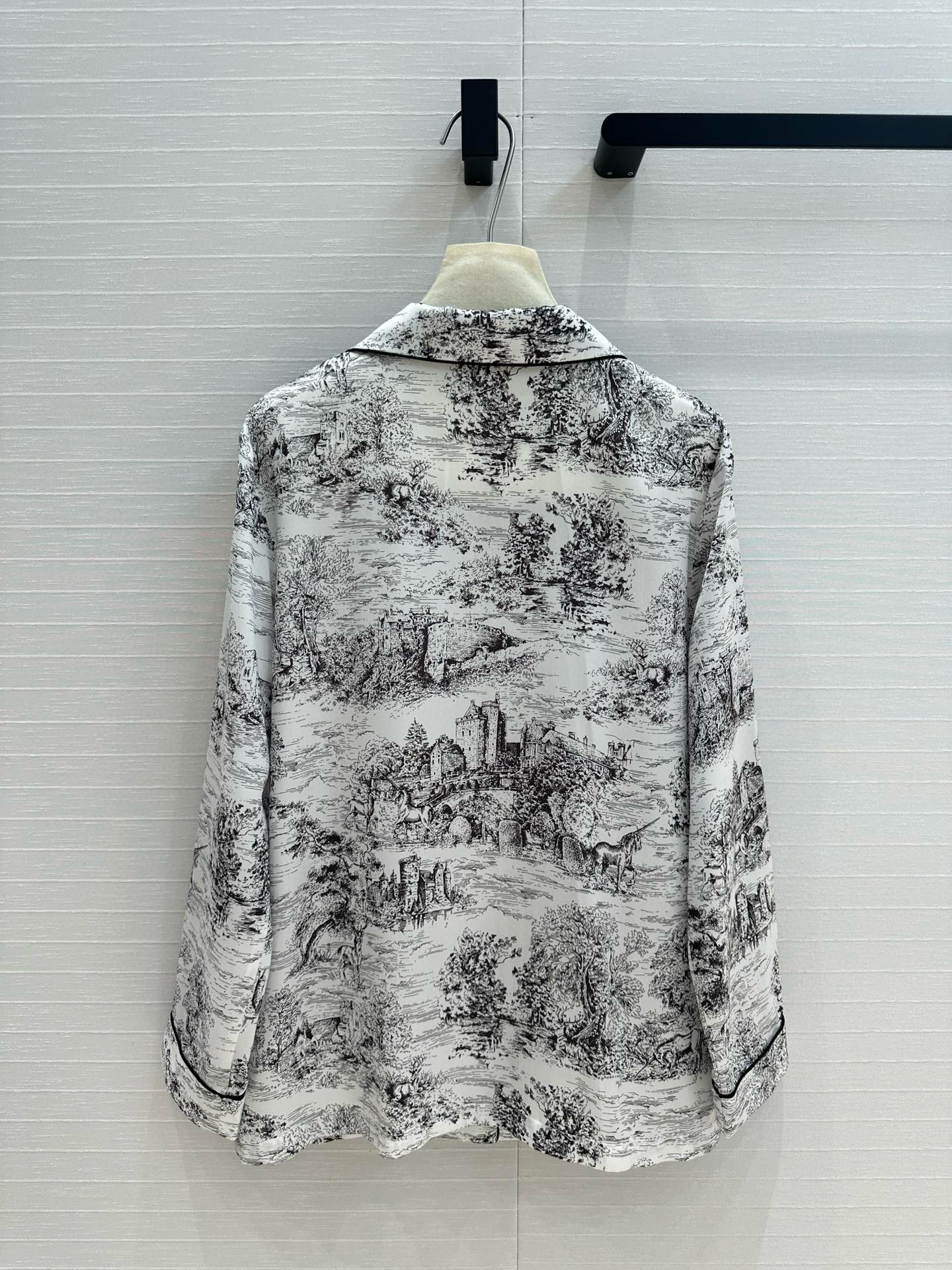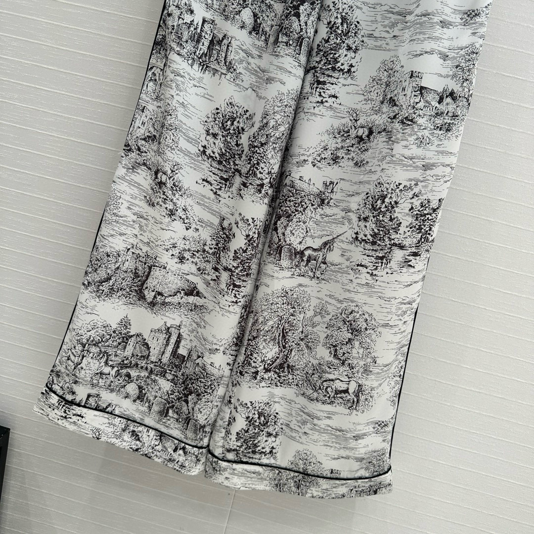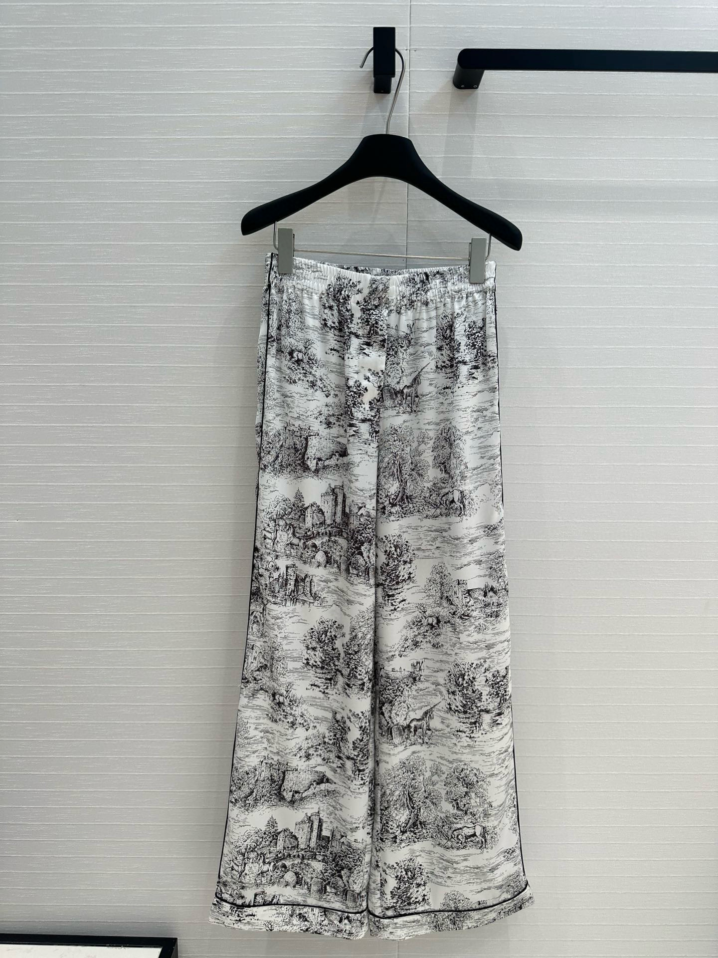NIGO Dior Women's Reverse Garden Jungle Pattern Printed Series Set Black And White Colour Blocking Fashionable Temperament Pajamas Lapel Shirt Homewear Straight Trousers Pants Comfort Suit Set #nigo71966