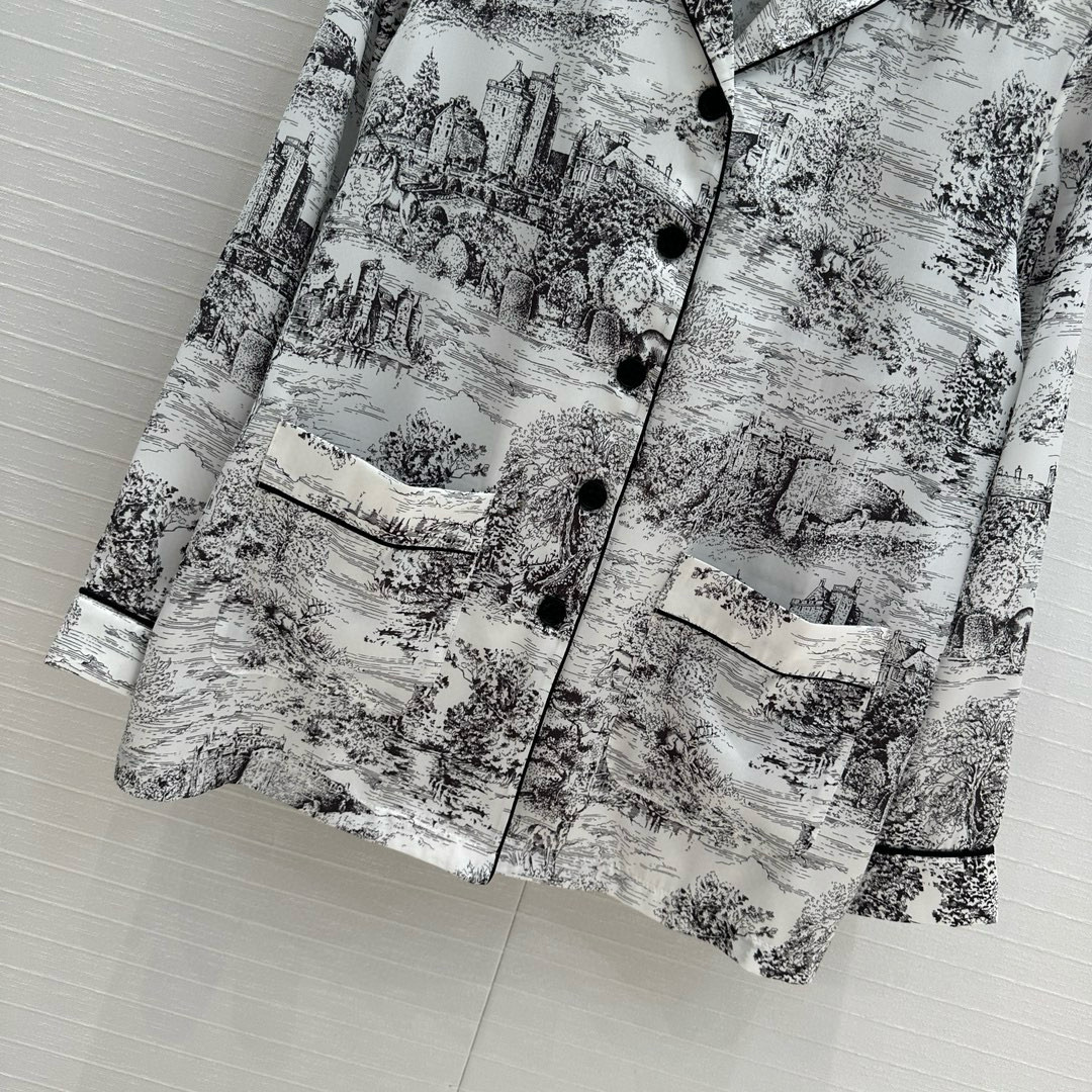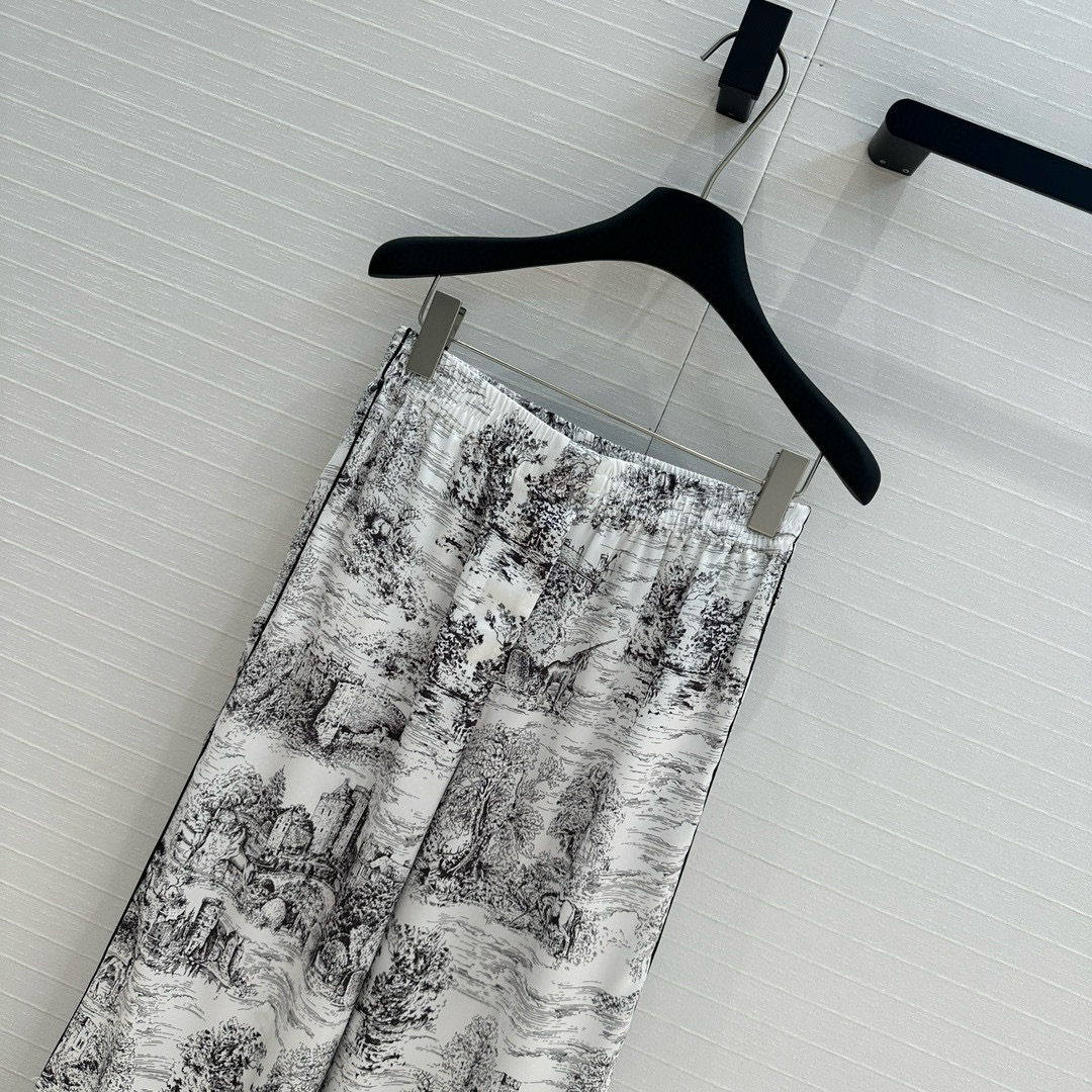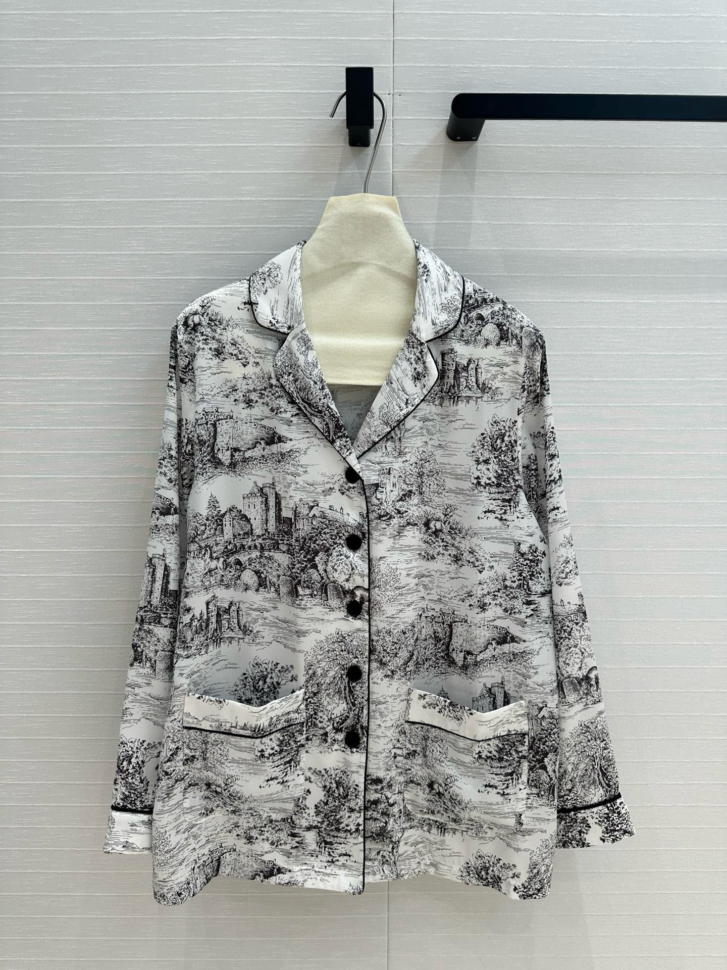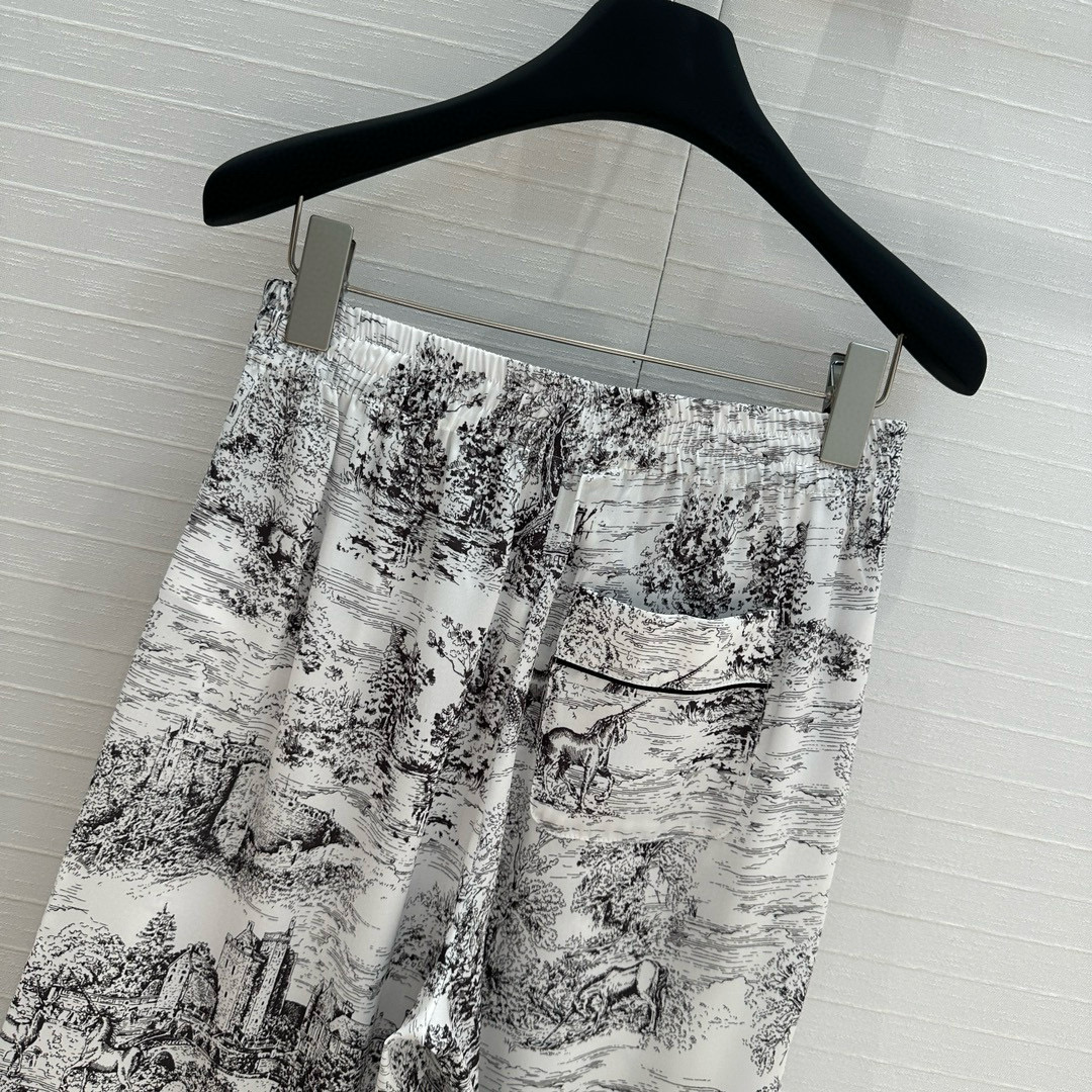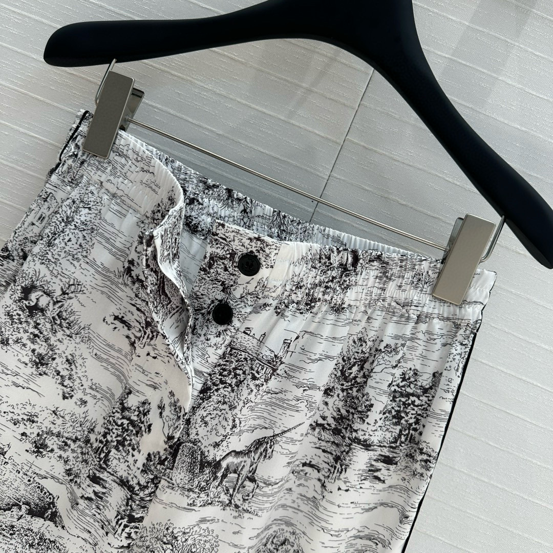 NIGO Dior Women's Reverse Garden Jungle Pattern Printed Series Set Black And White Colour Blocking Fashionable Temperament Pajamas Lapel Shirt Homewear Straight Trousers Pants Comfort Suit Set #nigo71966