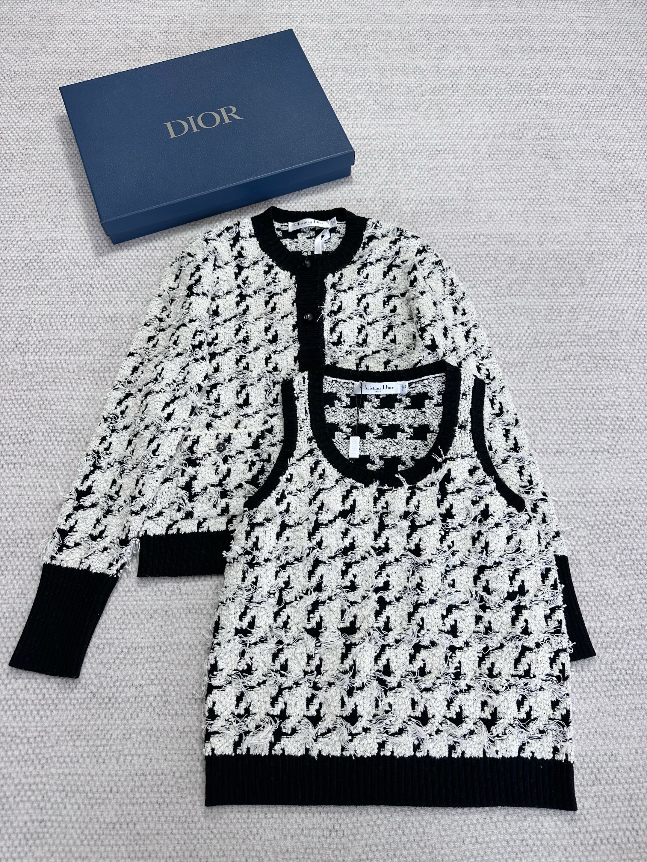 NIGO Dior Women's Spring And Autumn Black And White Houndstooth Wool And Cotton Blend Cardigan Sleeveless Round Neck Knit Vest Twinset Casual Suit Set Ngvp #nigo1369