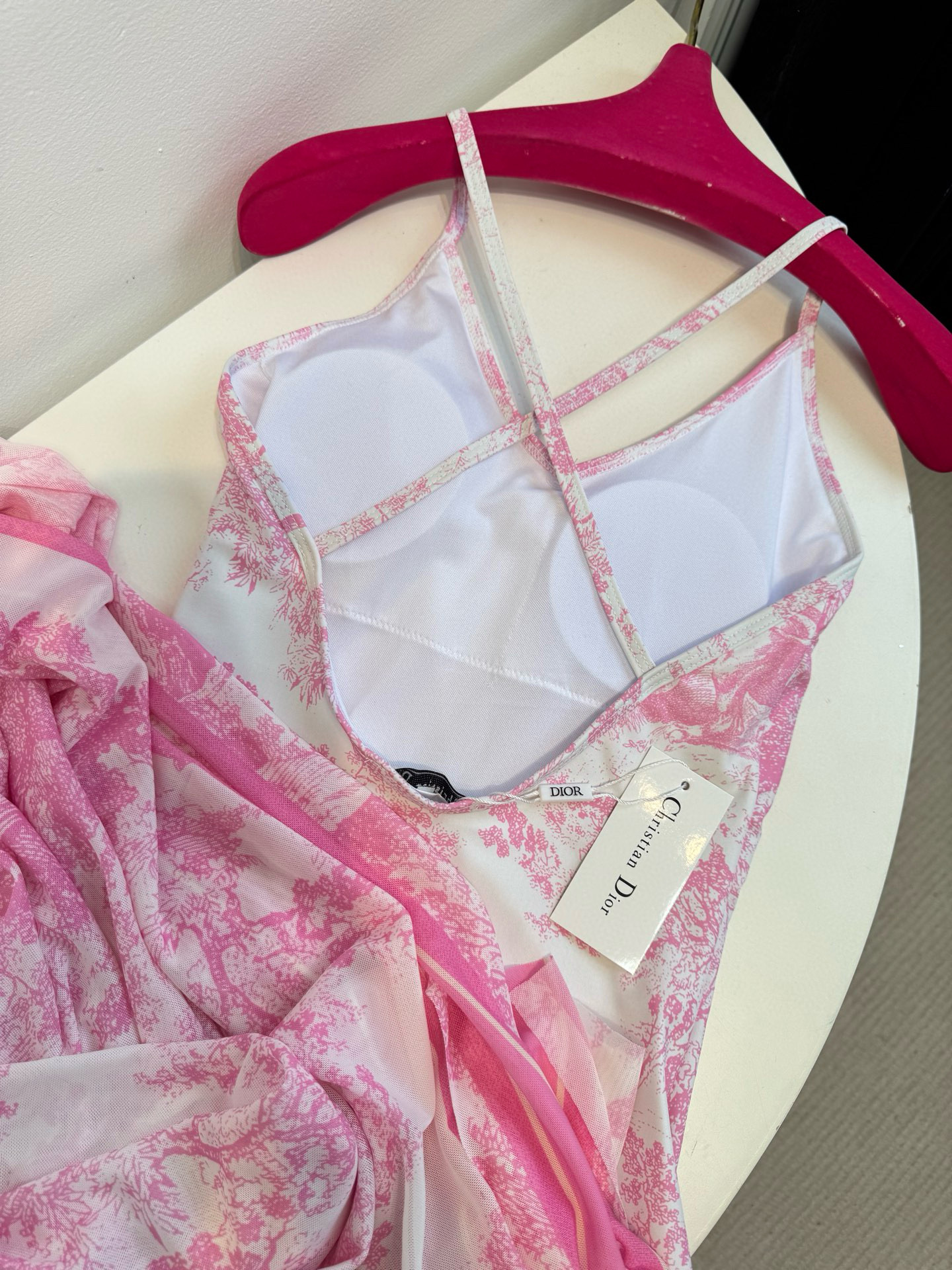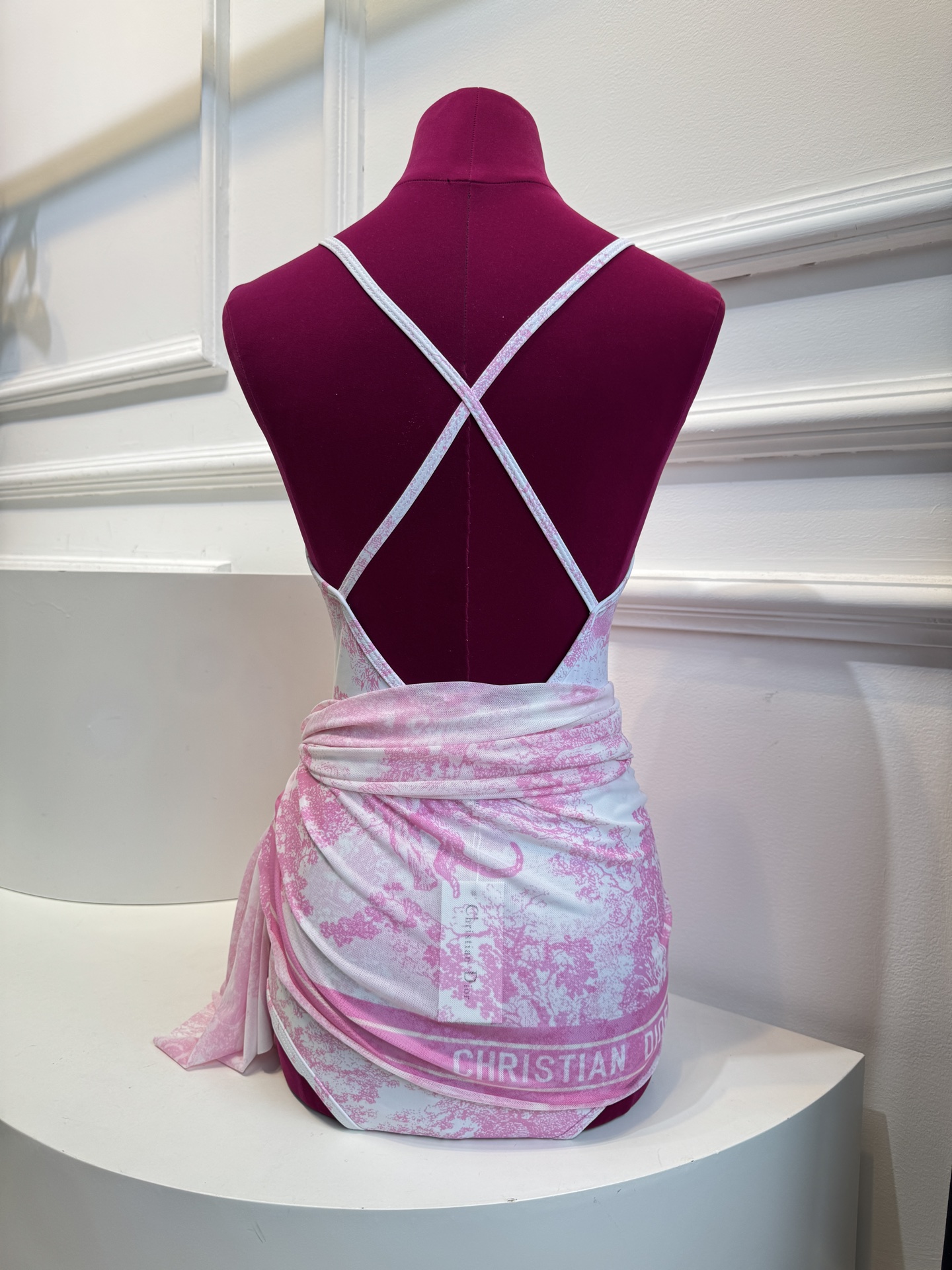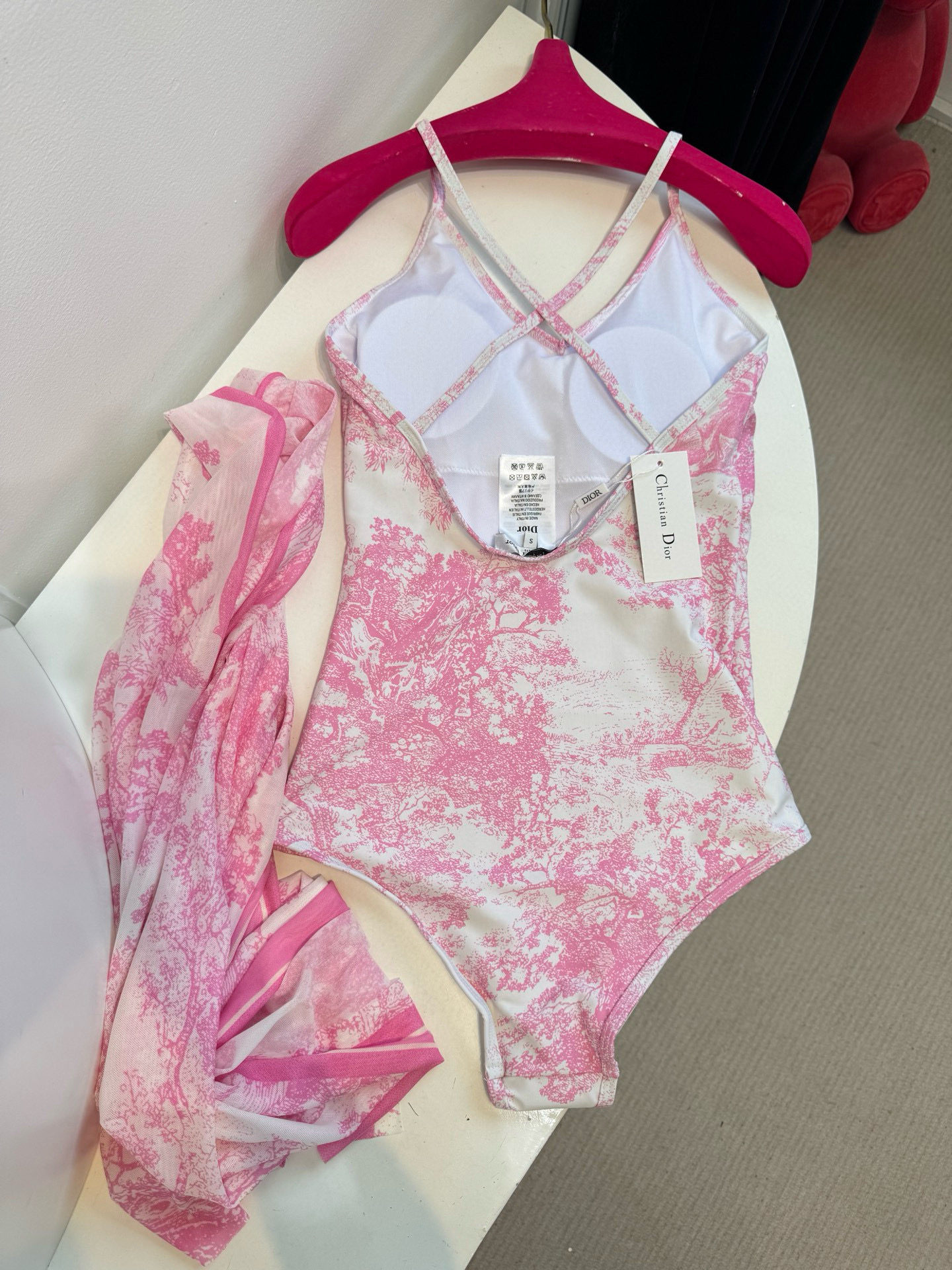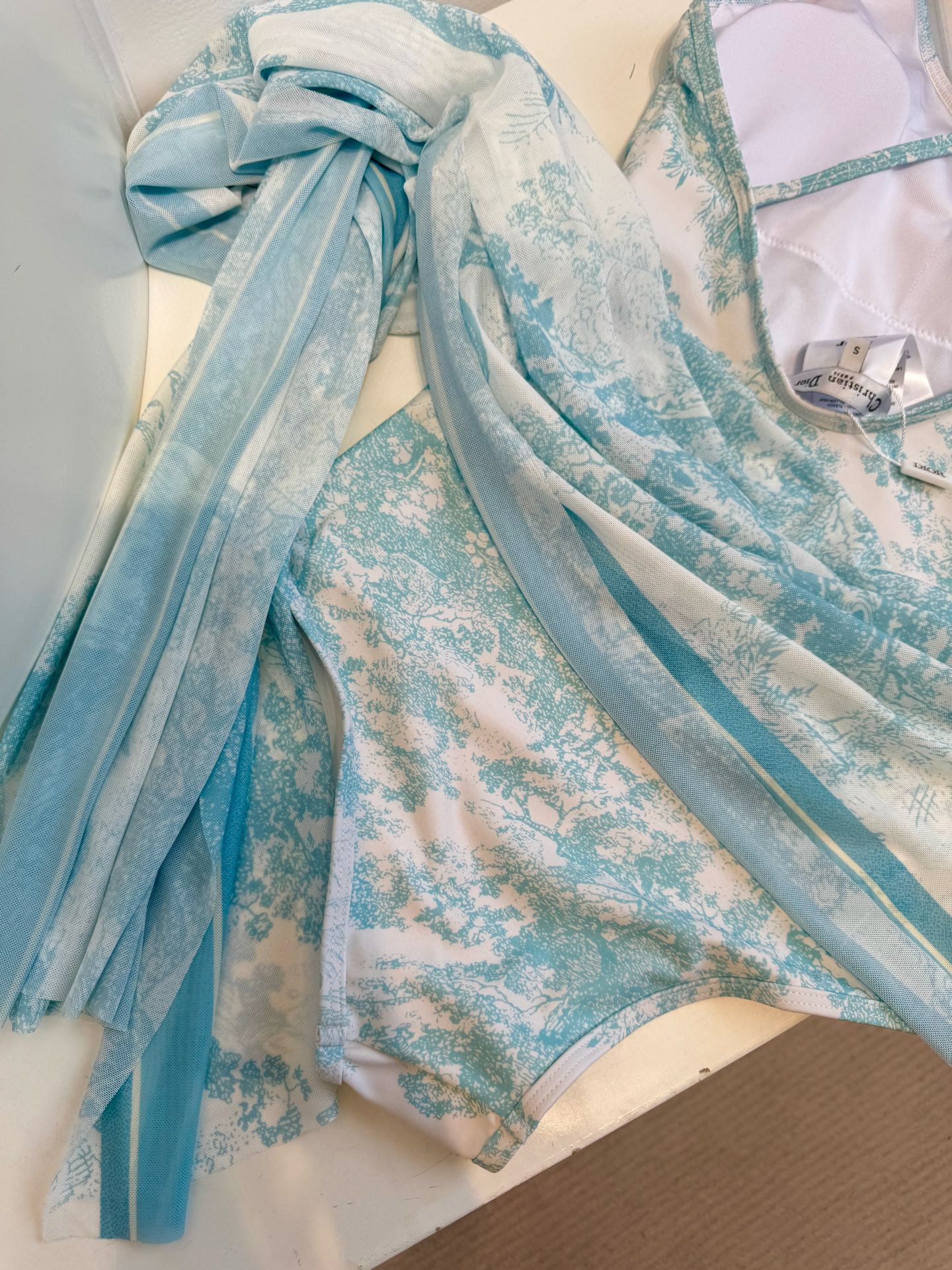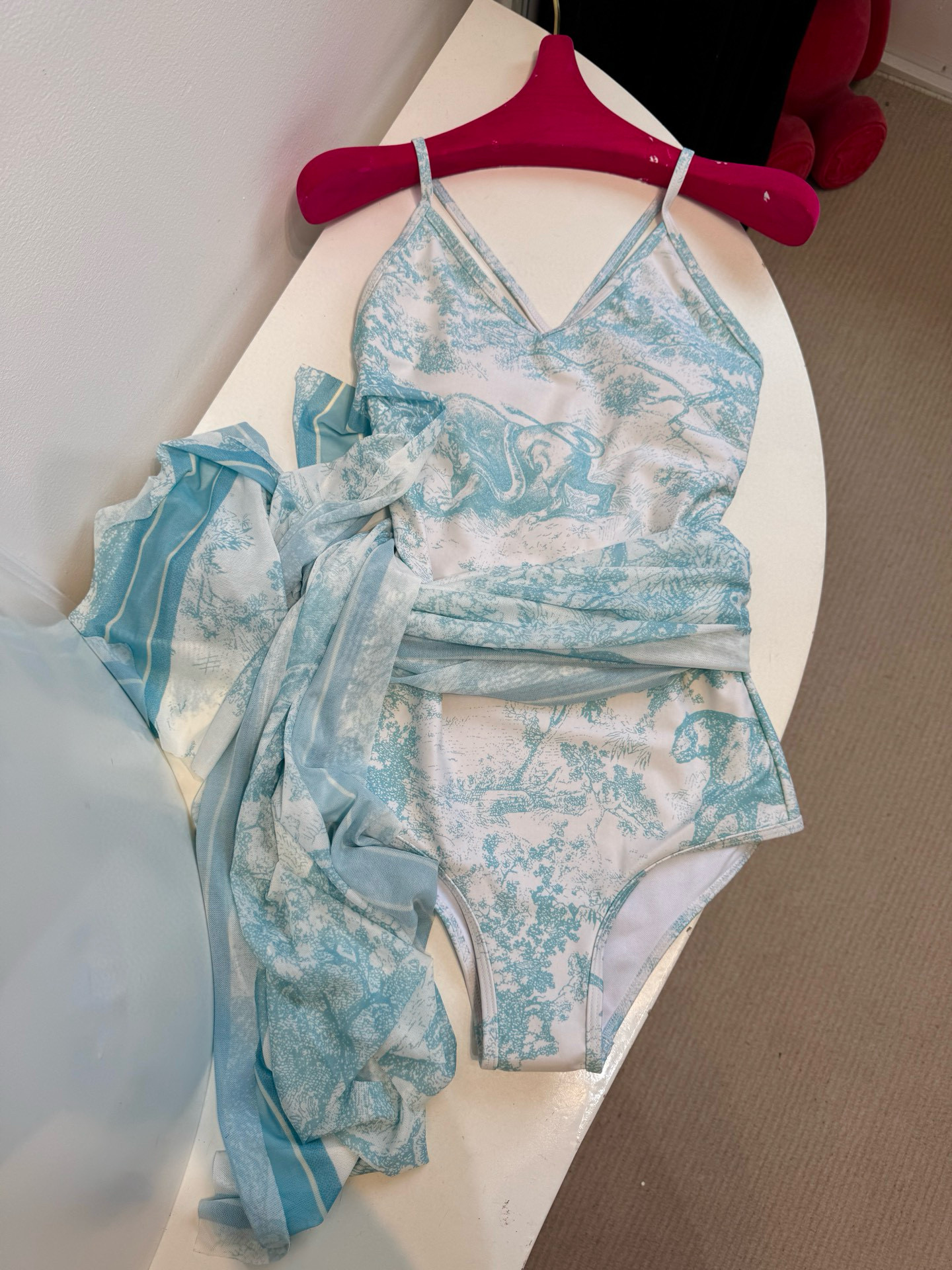 NIGO Dior Women's Summer Animal Print Swimsuit With Criss-cross Straps At The Back Paired With A Silk Scarf Two-piece Set Suit #nigo77688