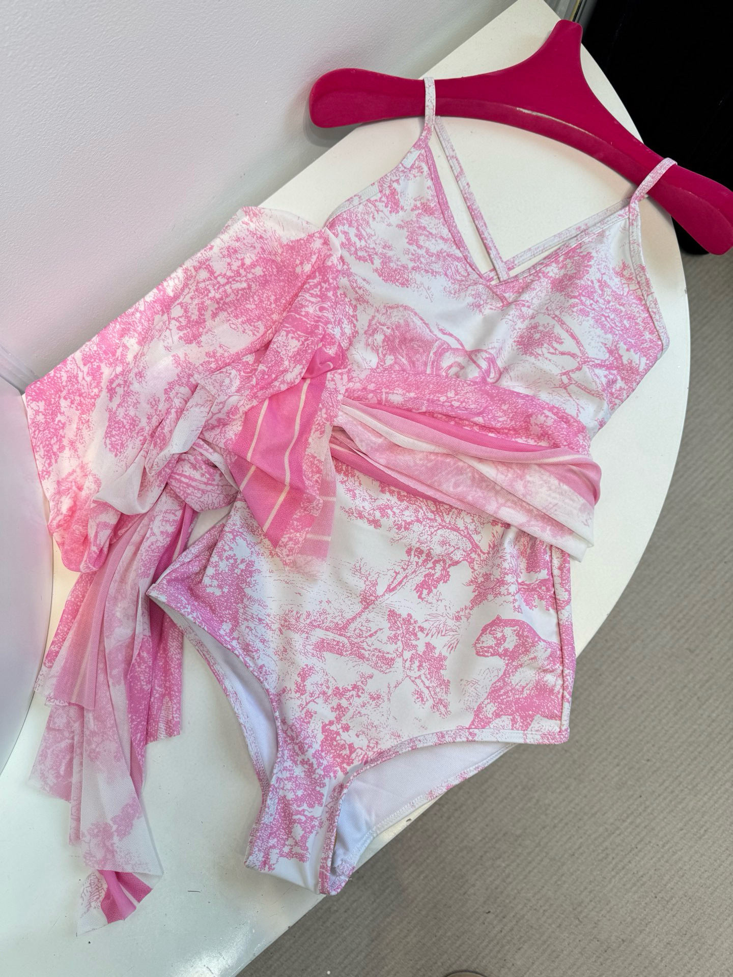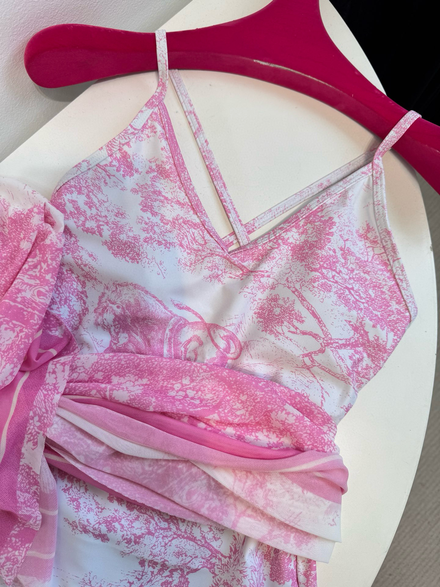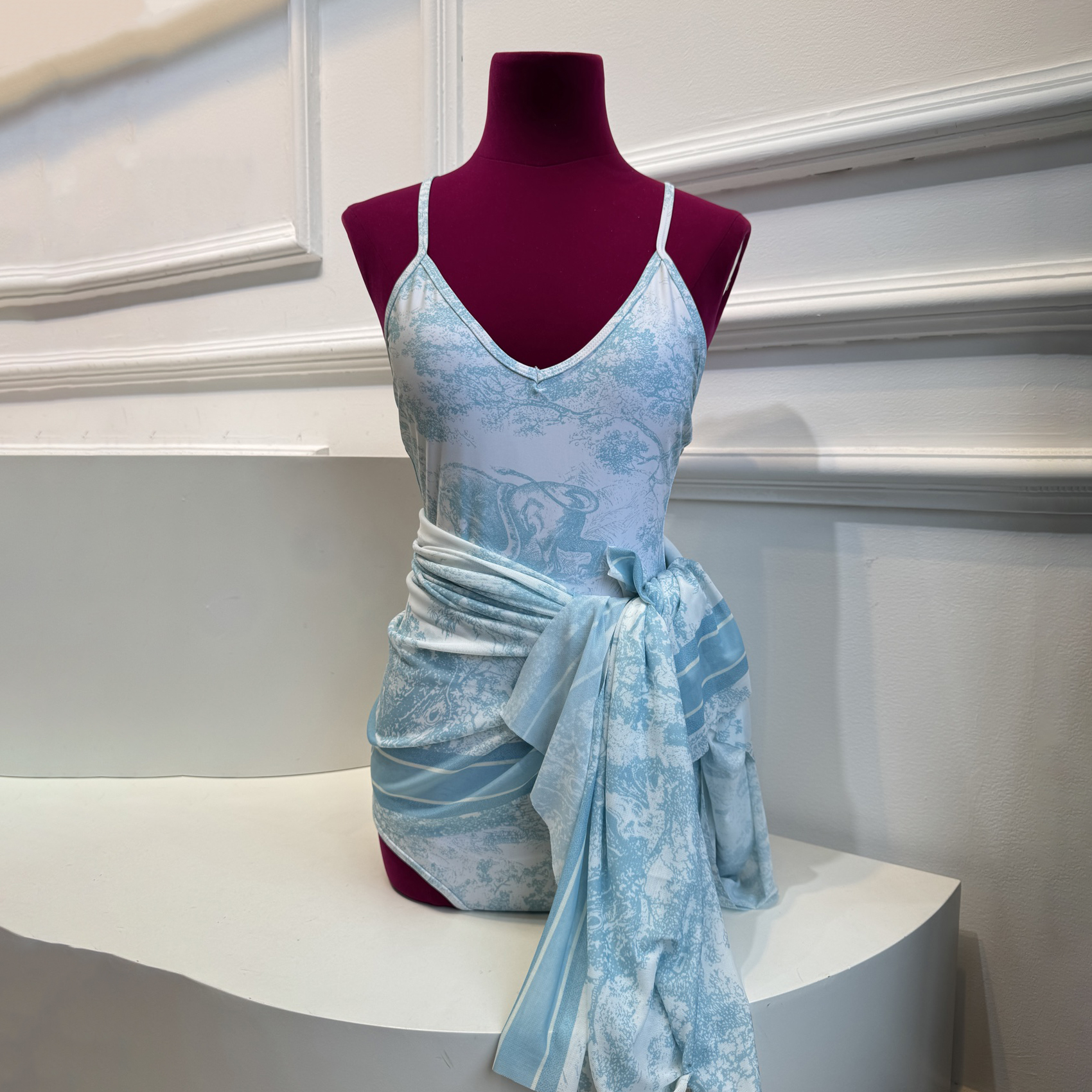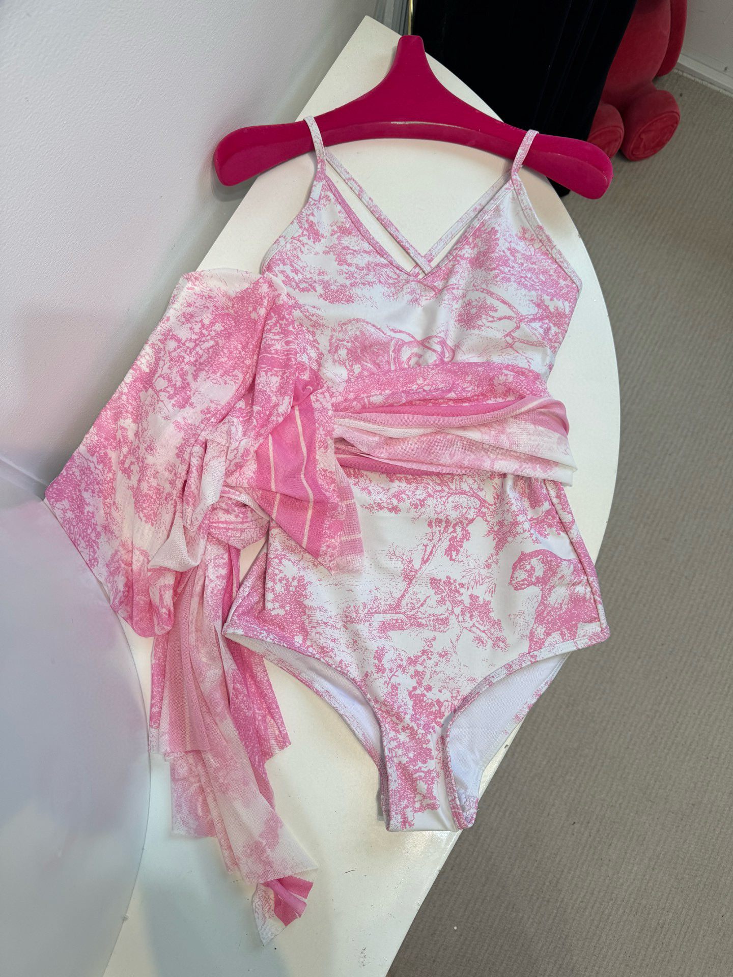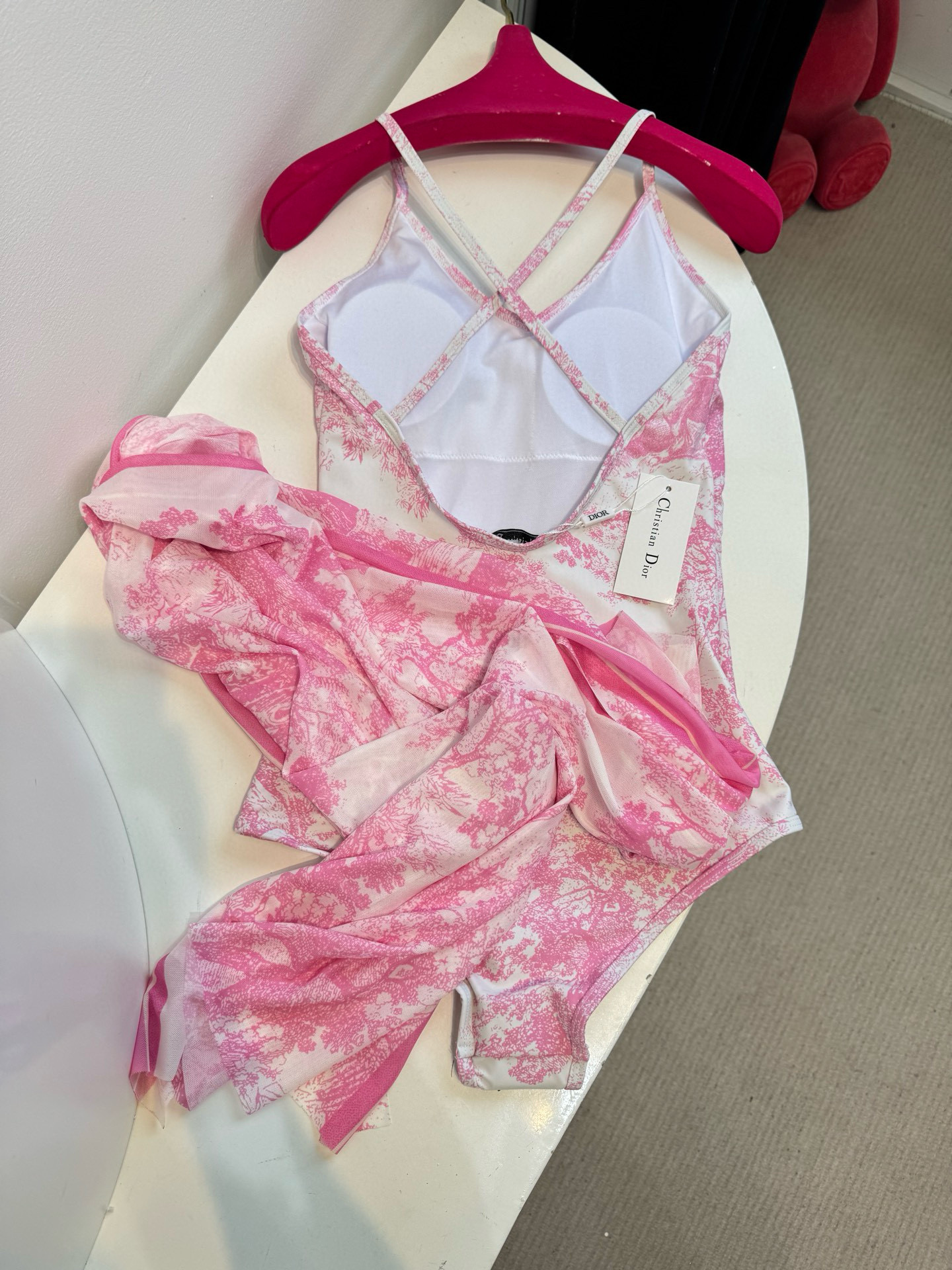 NIGO Dior Women's Summer Animal Print Swimsuit With Criss-cross Straps At The Back Paired With A Silk Scarf Two-piece Set Suit #nigo77688