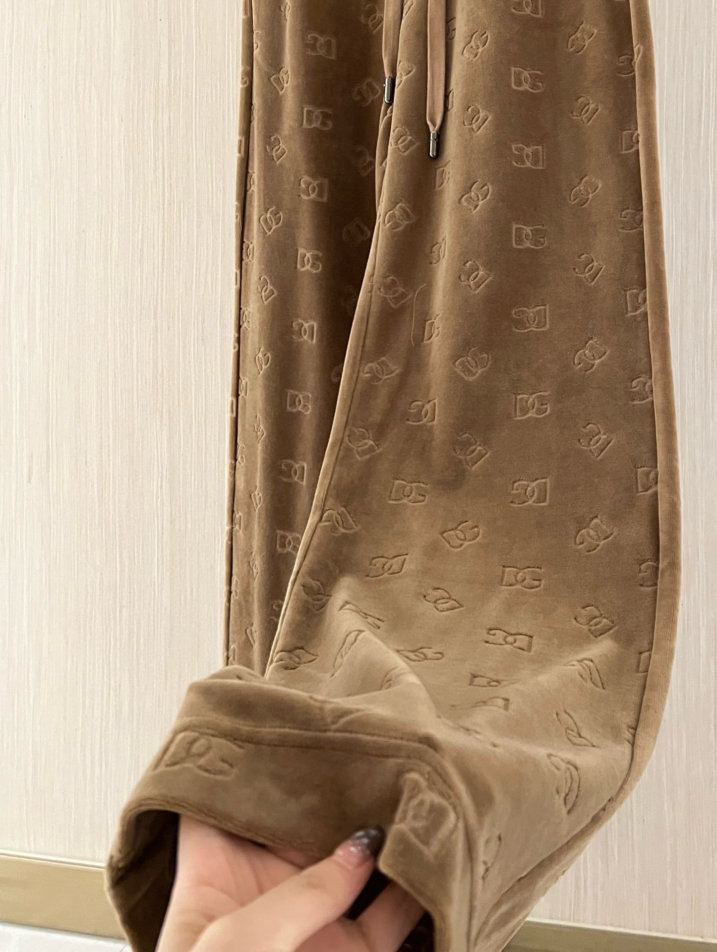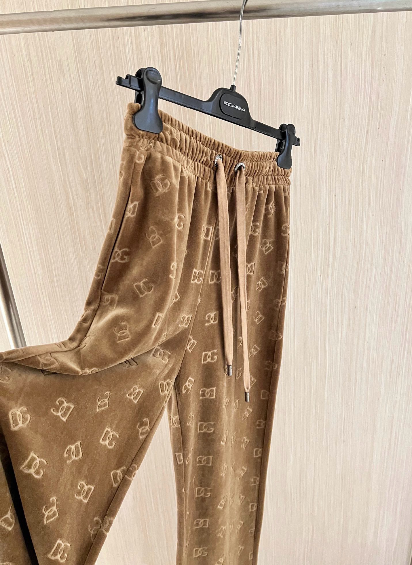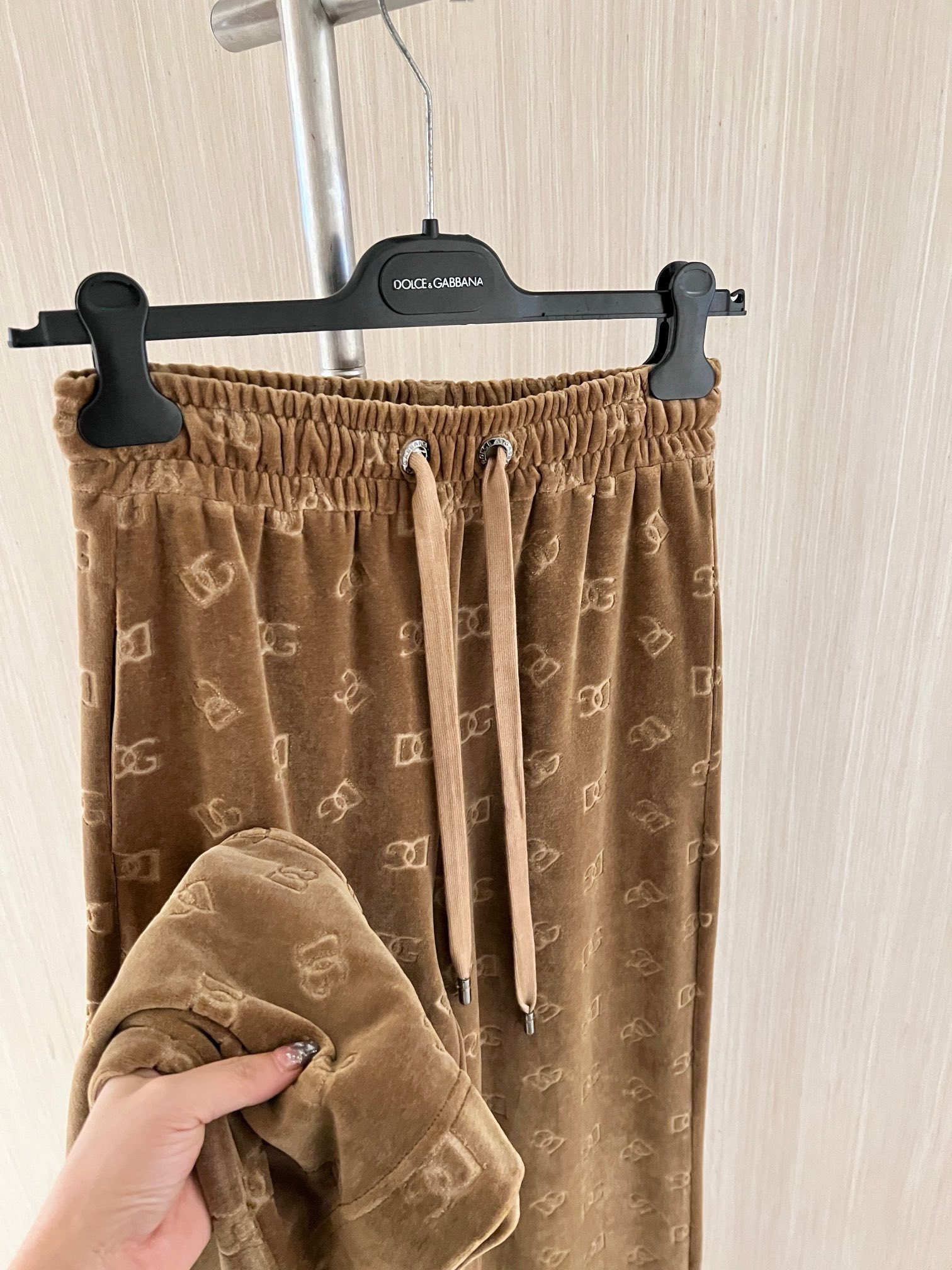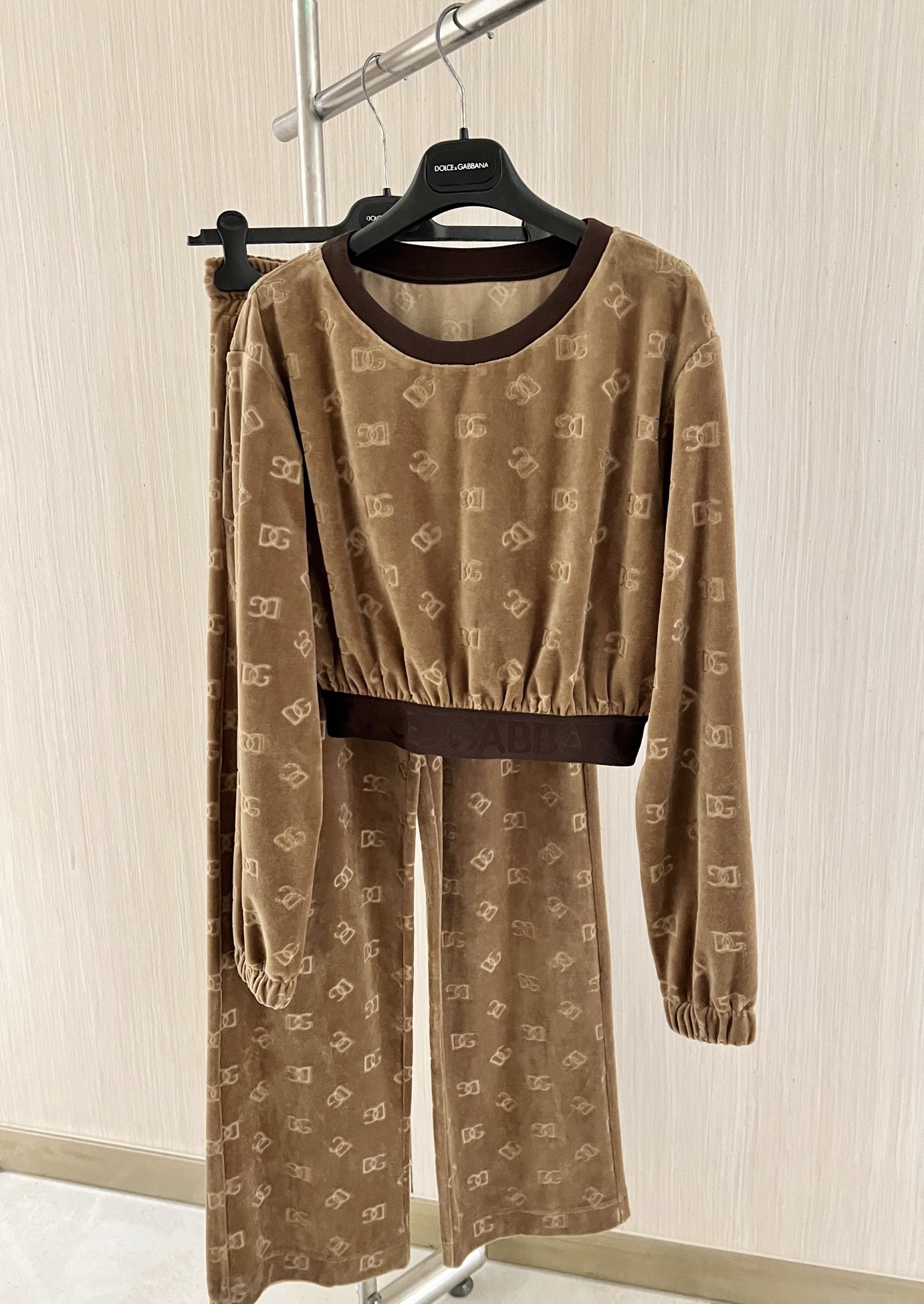NIGO Dolce&Gabbana Women's Spring and Autumn Brown Letter Printed Velvet Fabric Knitted Sweater Lace-Up Leisure Pants Set Suit #nigo72662