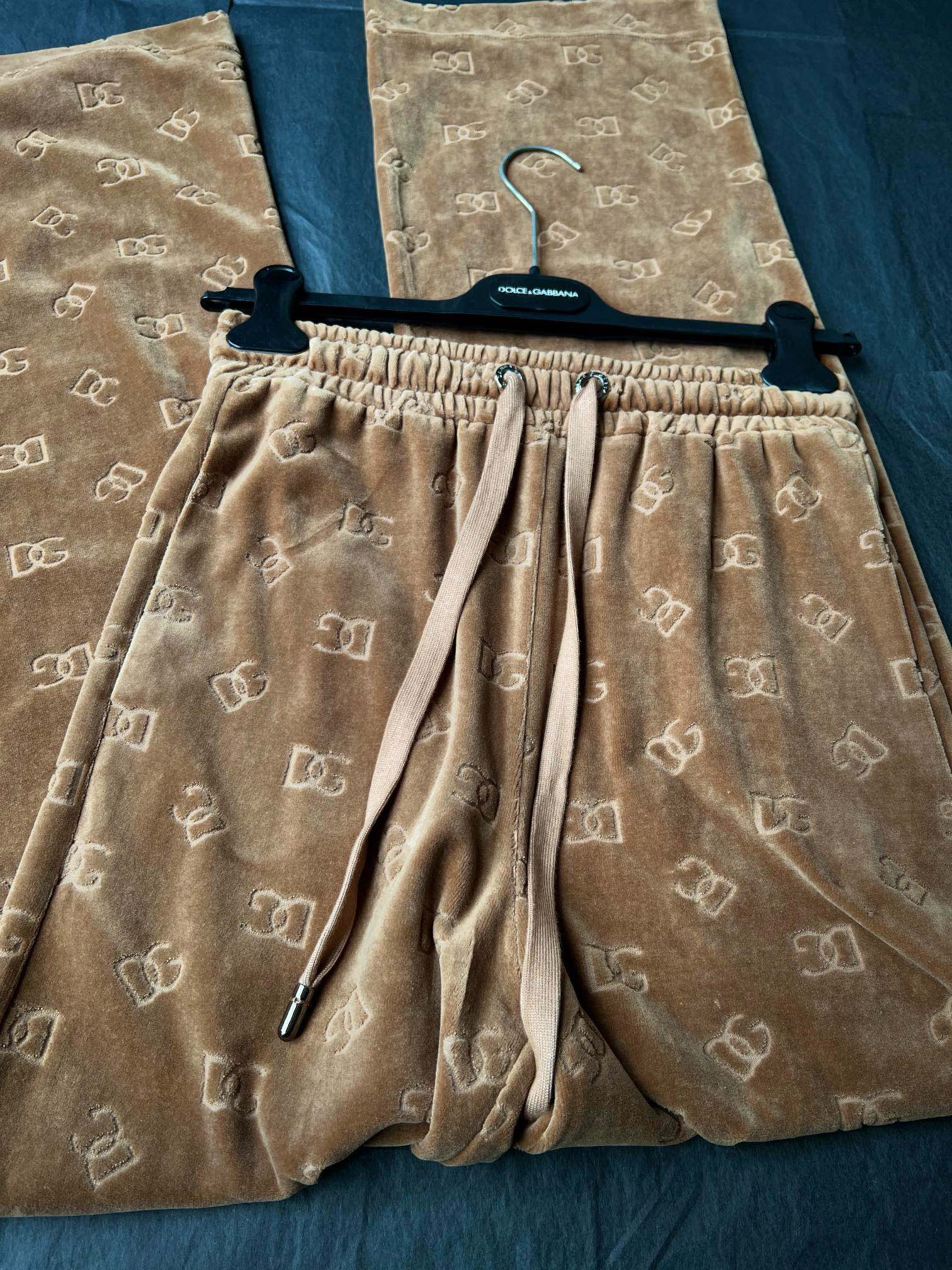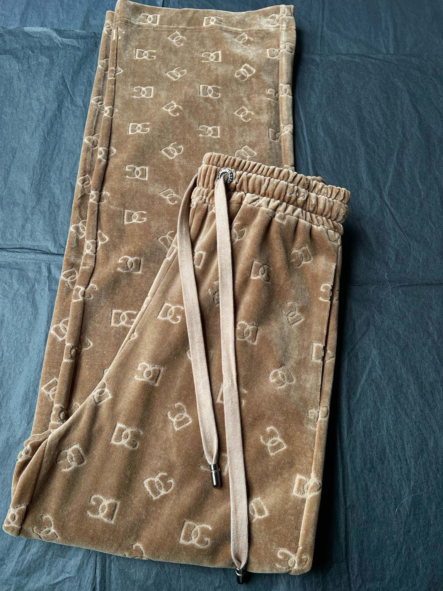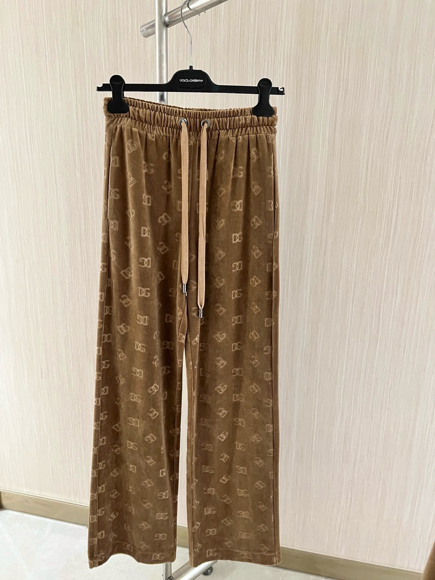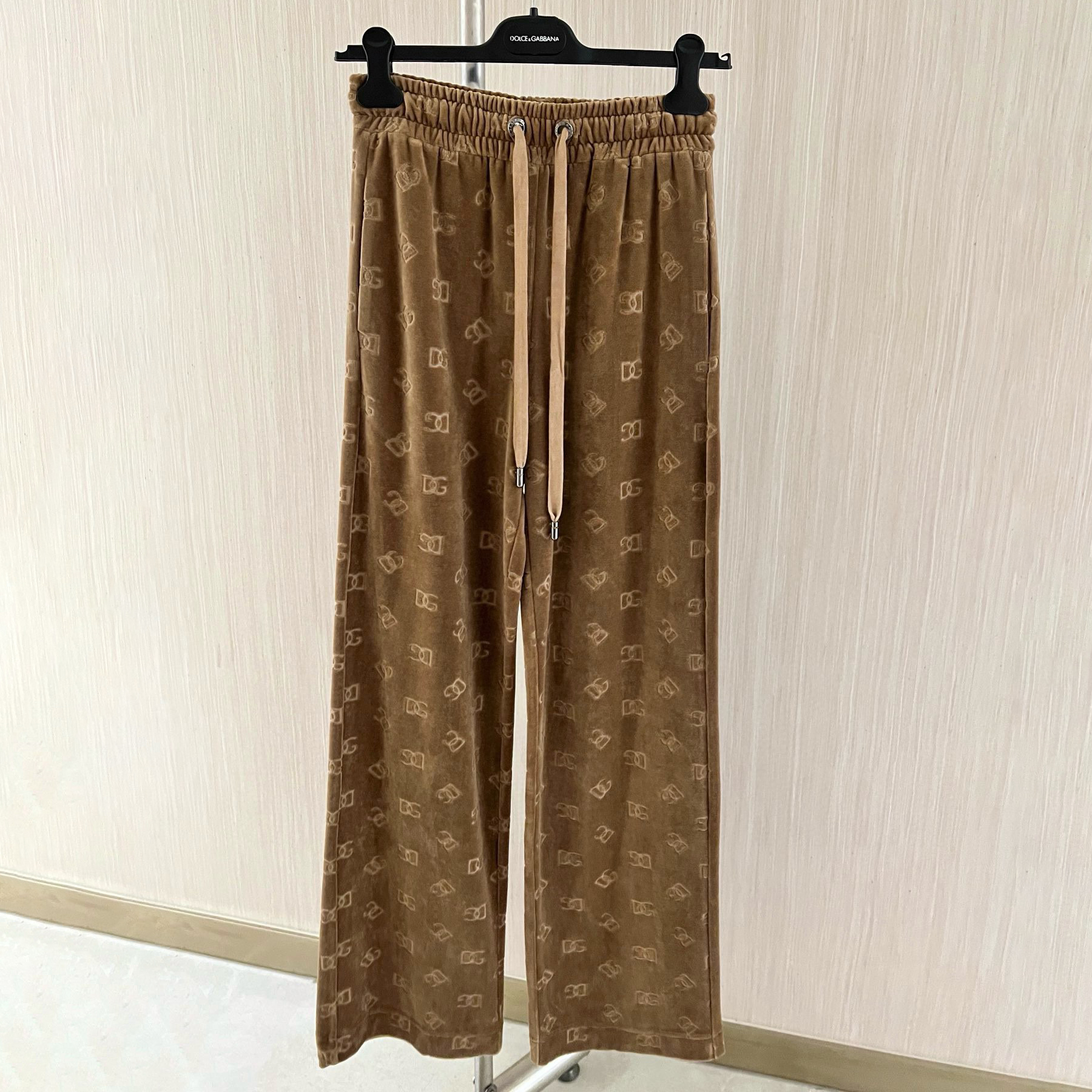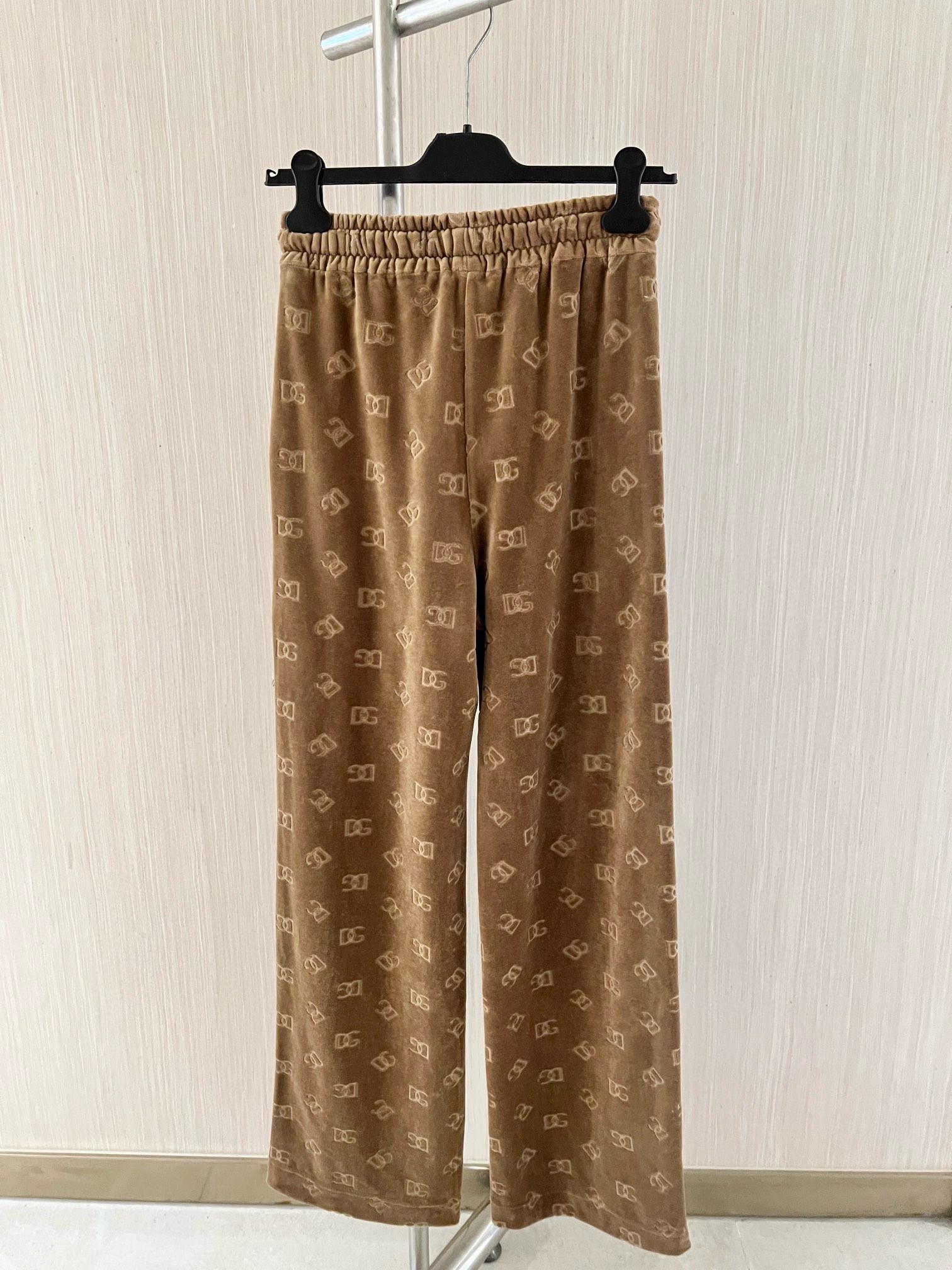 NIGO Dolce&Gabbana Women's Spring and Autumn Brown Letter Printed Velvet Fabric Knitted Sweater Lace-Up Leisure Pants Set Suit #nigo72662