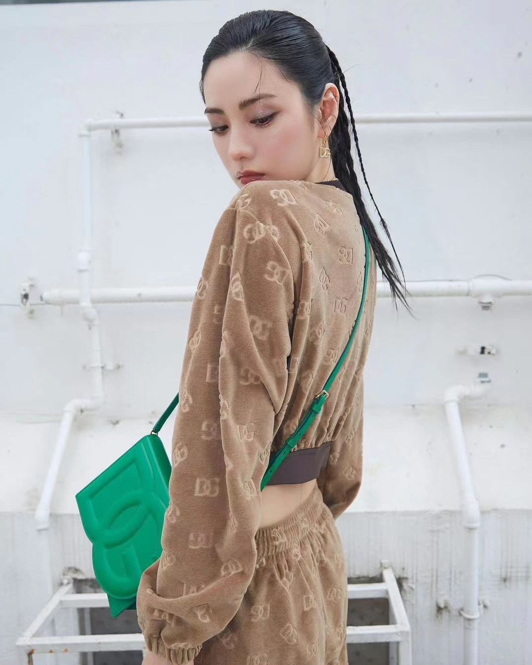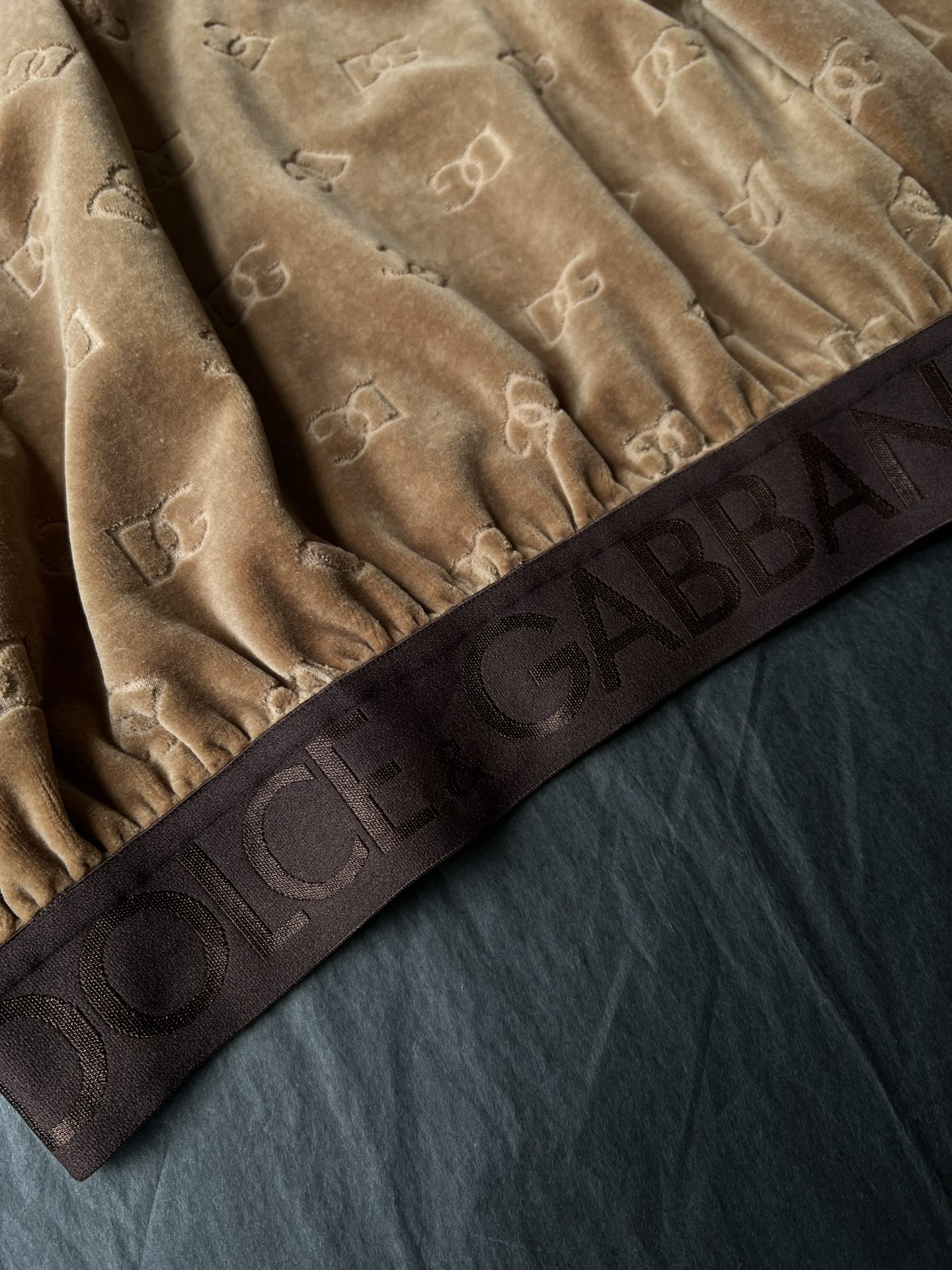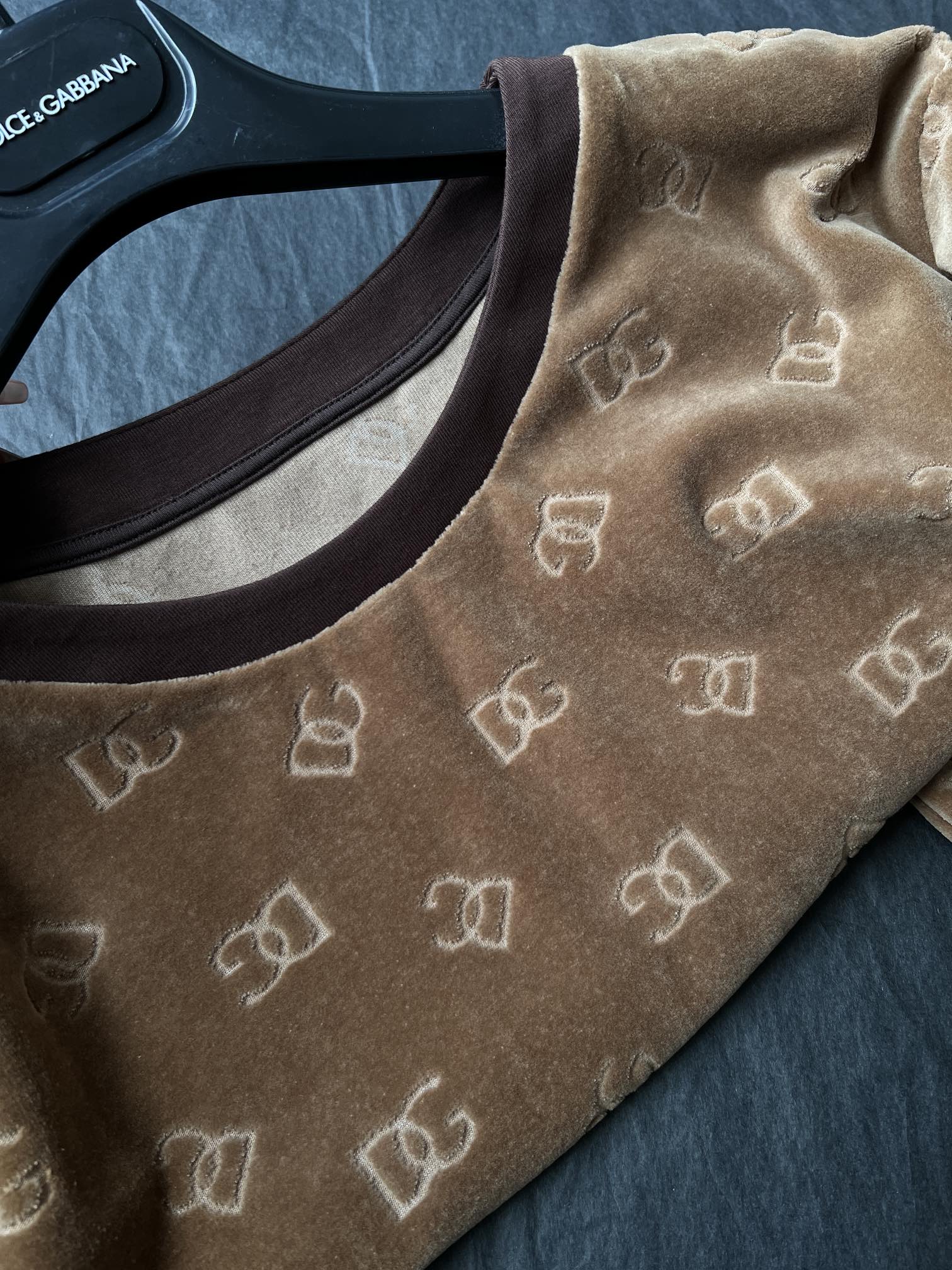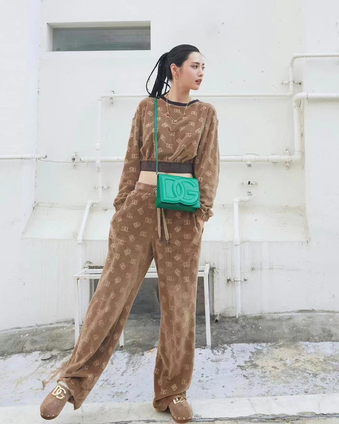 NIGO Dolce&Gabbana Women's Spring and Autumn Brown Letter Printed Velvet Fabric Knitted Sweater Lace-Up Leisure Pants Set Suit #nigo72662