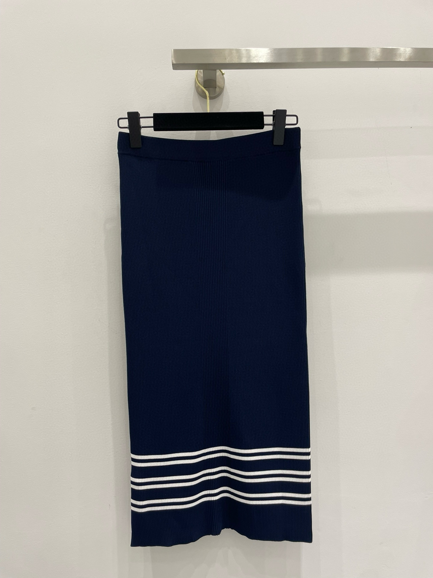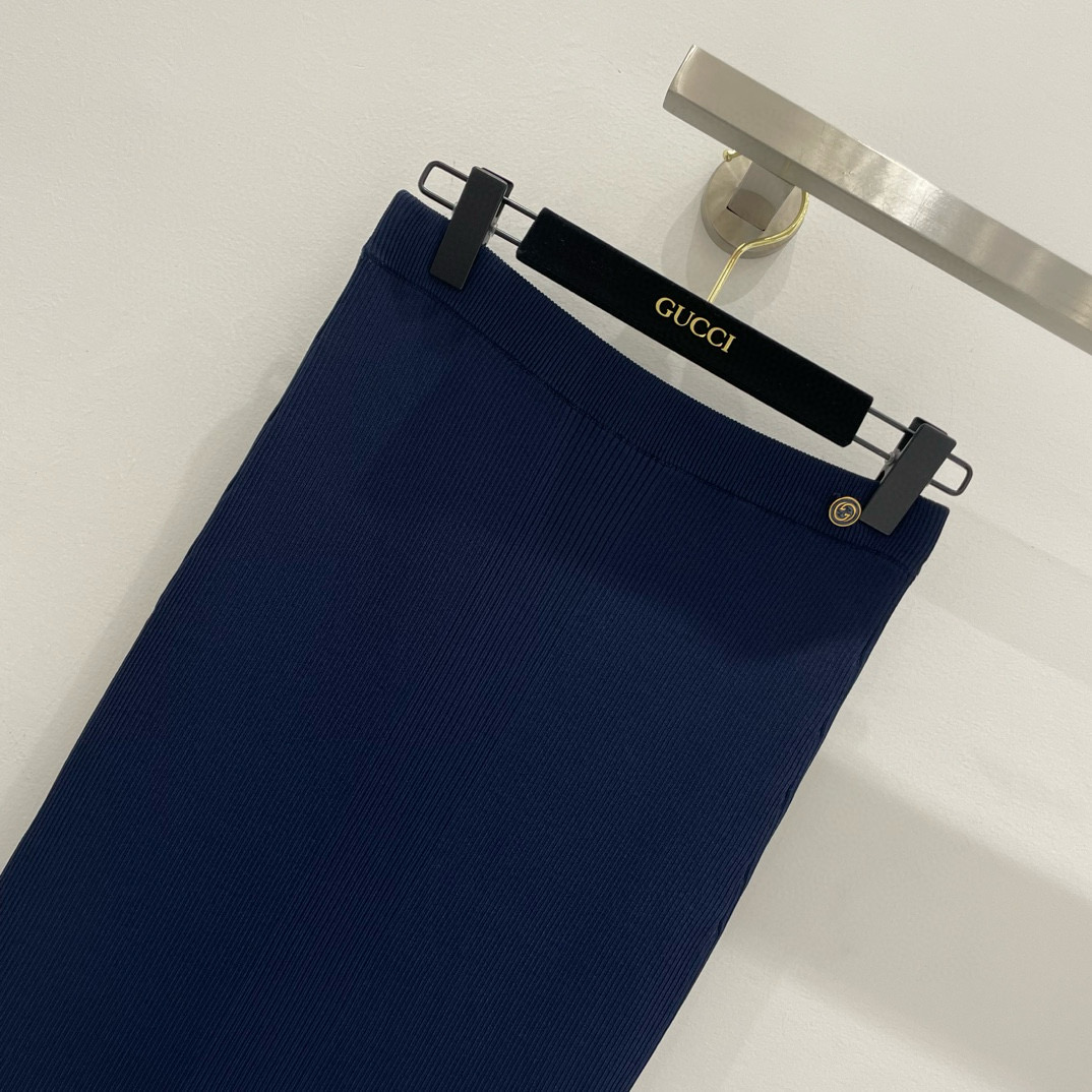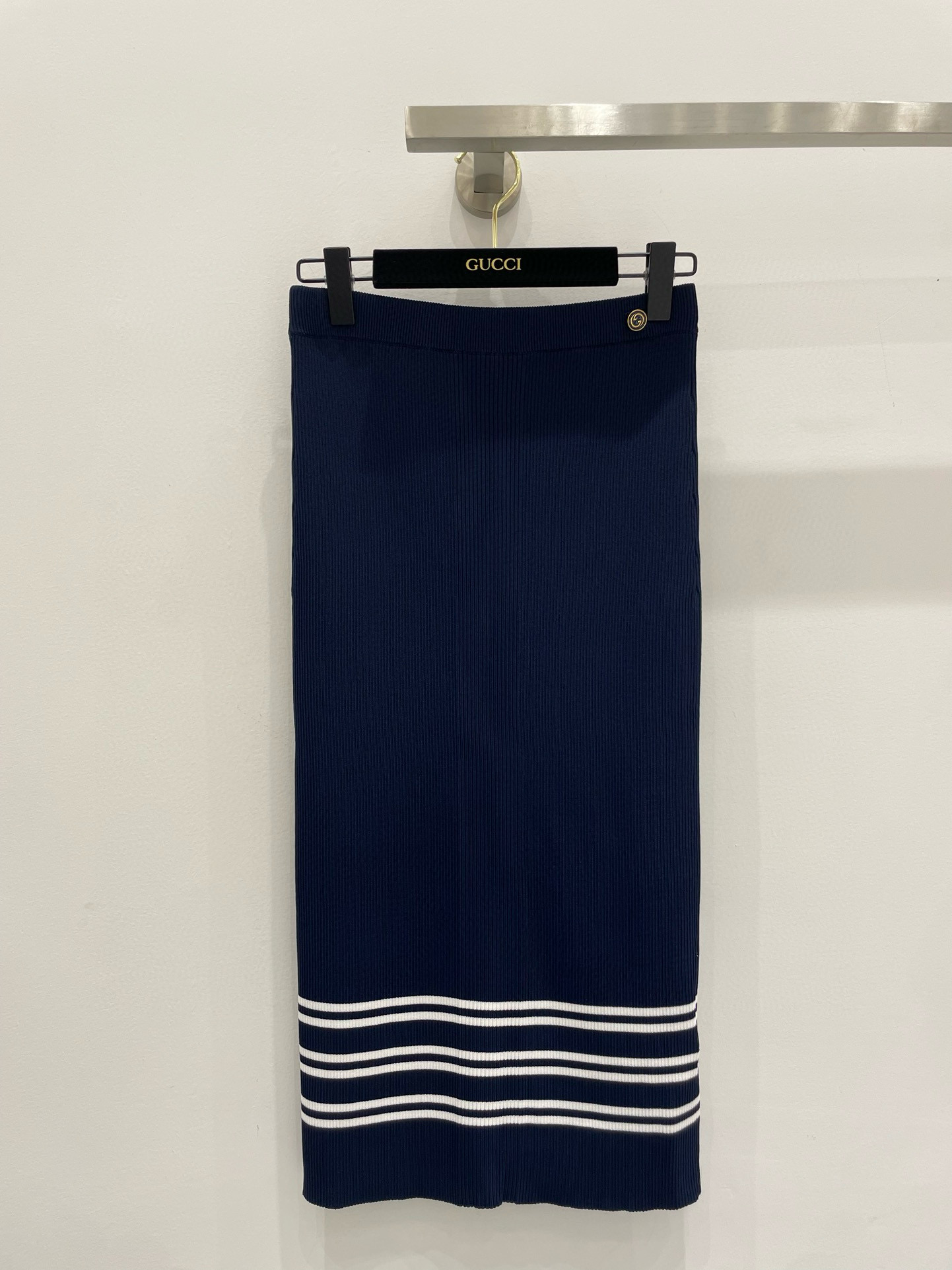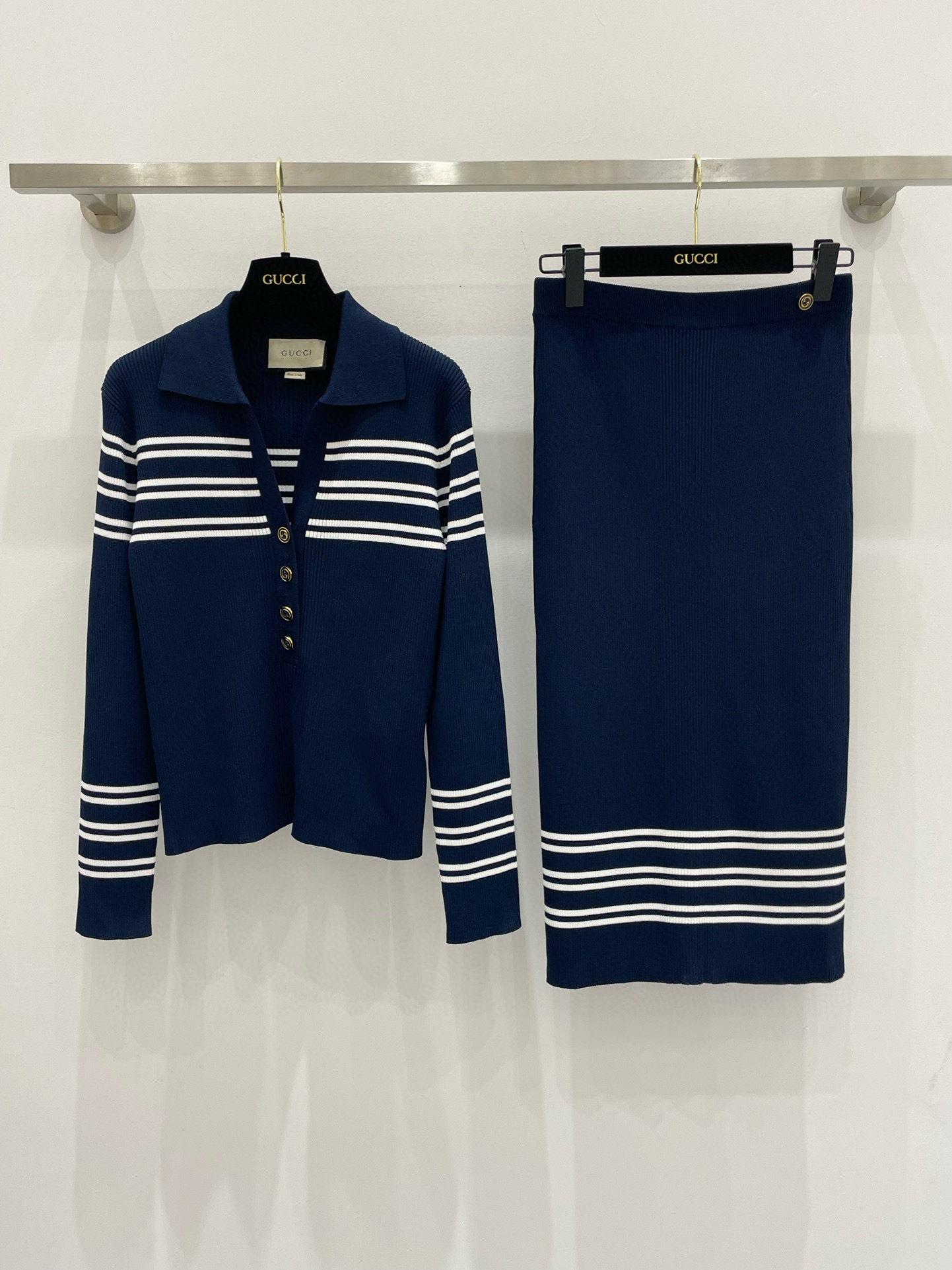 NIGO Gucci Women's Spring And Autumn Blue Striped Stretch Ribbed Knit Button Sweater Long Slim Half-body Skirt Temperament Suit Set #nigo71349