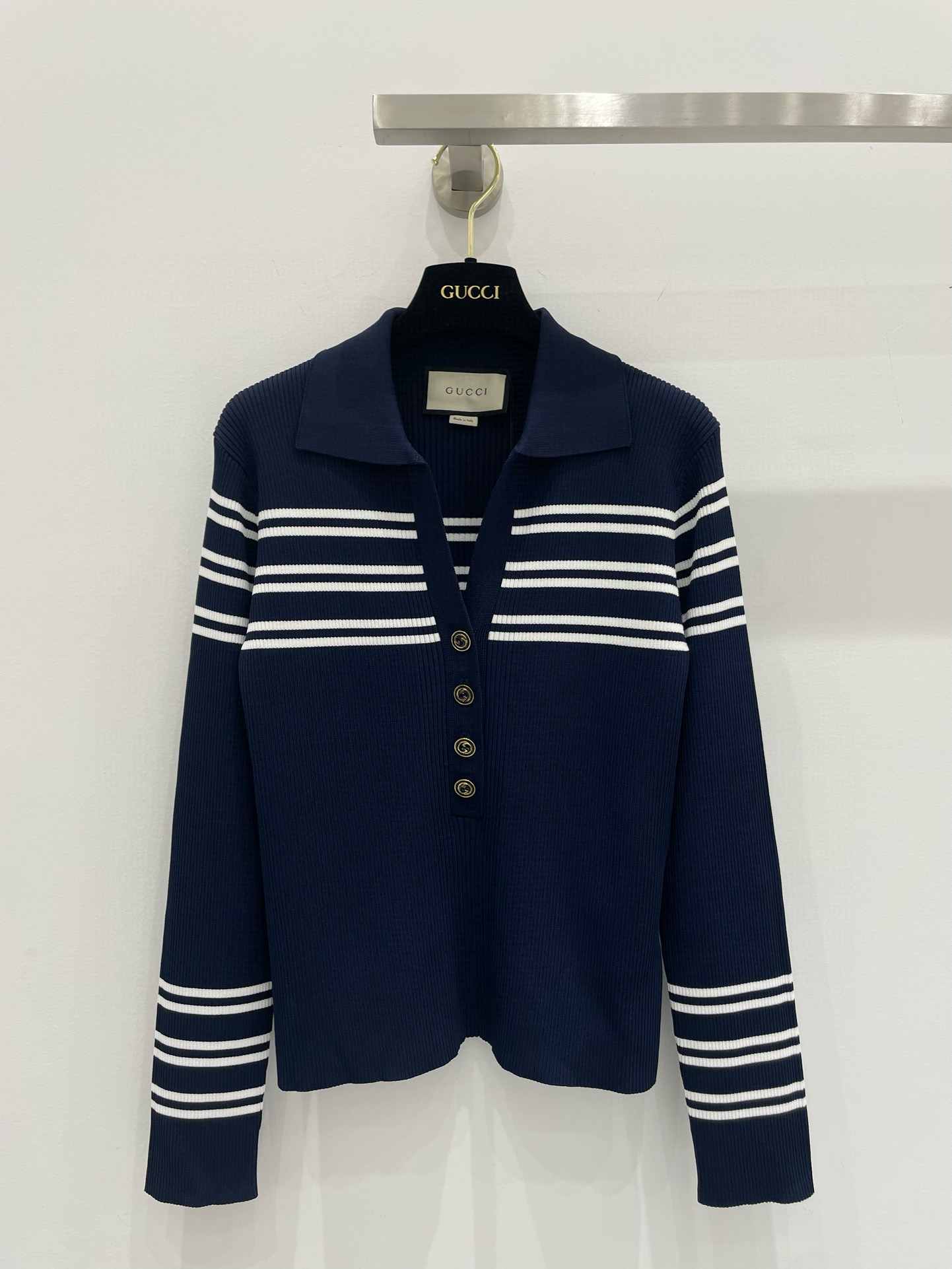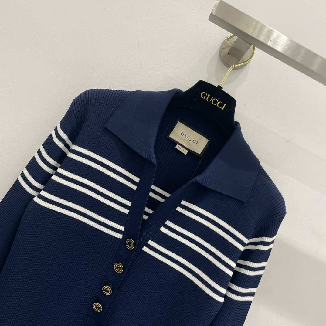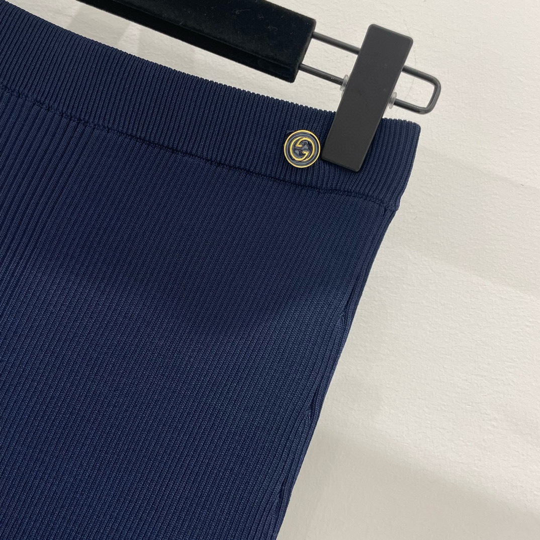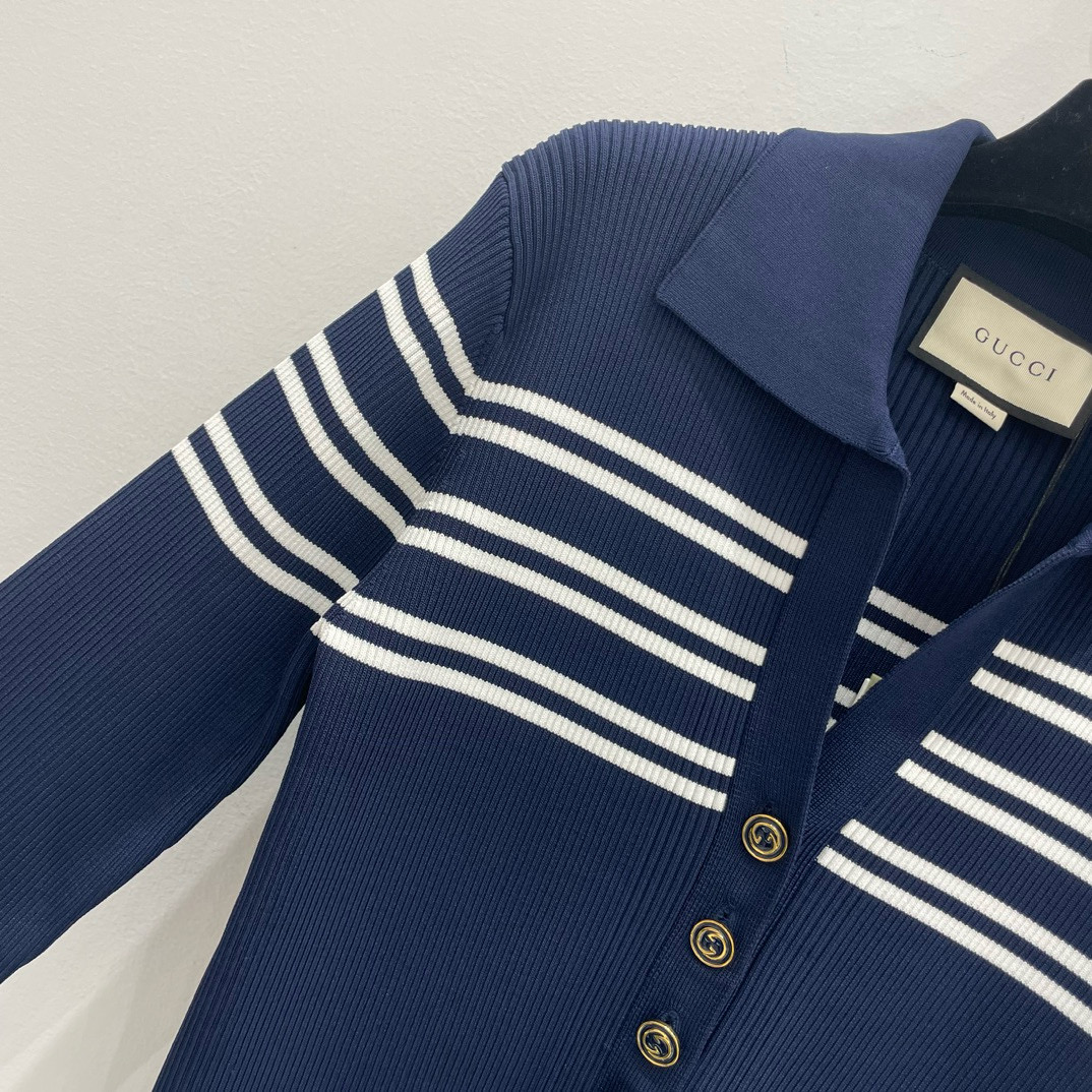NIGO Gucci Women's Spring And Autumn Blue Striped Stretch Ribbed Knit Button Sweater Long Slim Half-body Skirt Temperament Suit Set #nigo71349