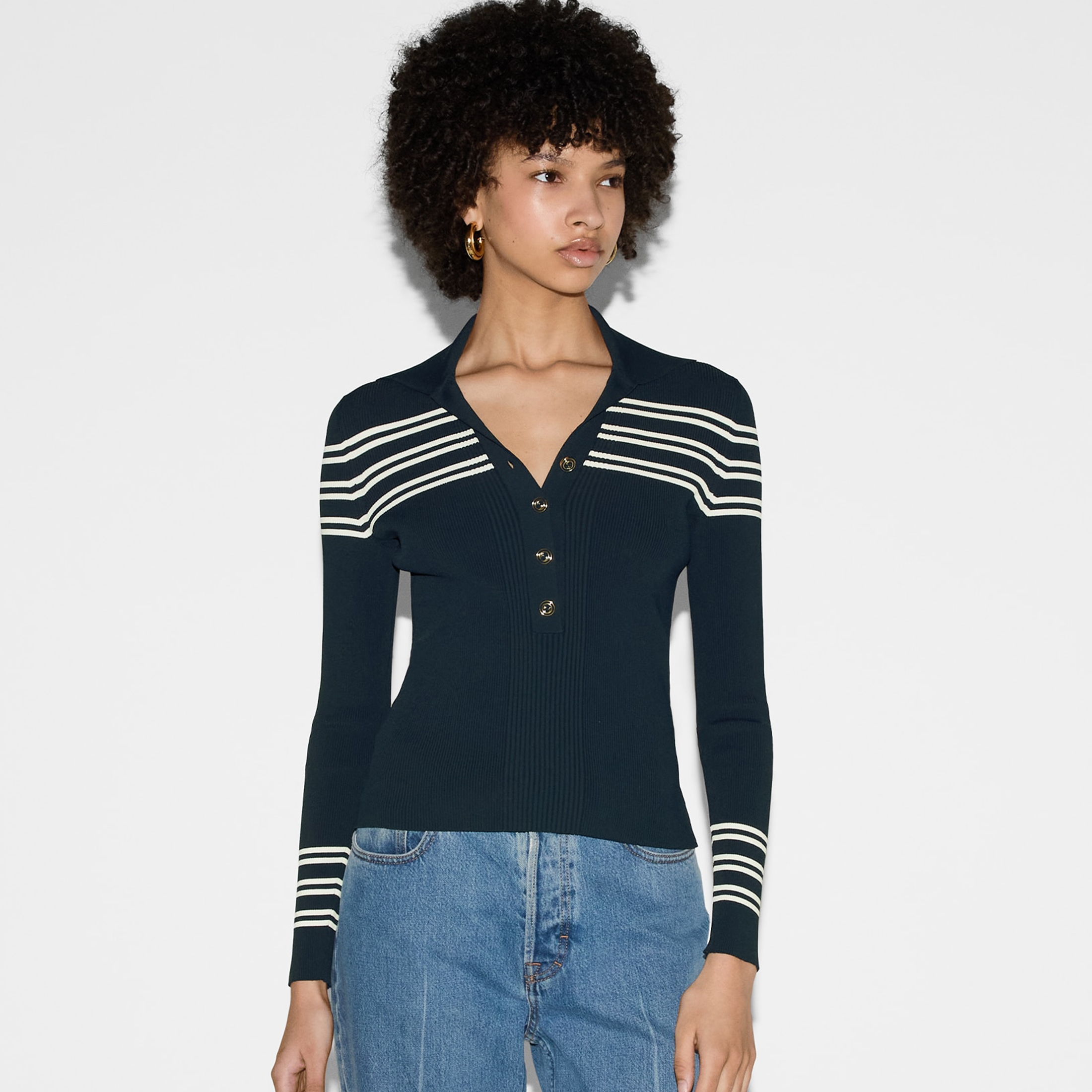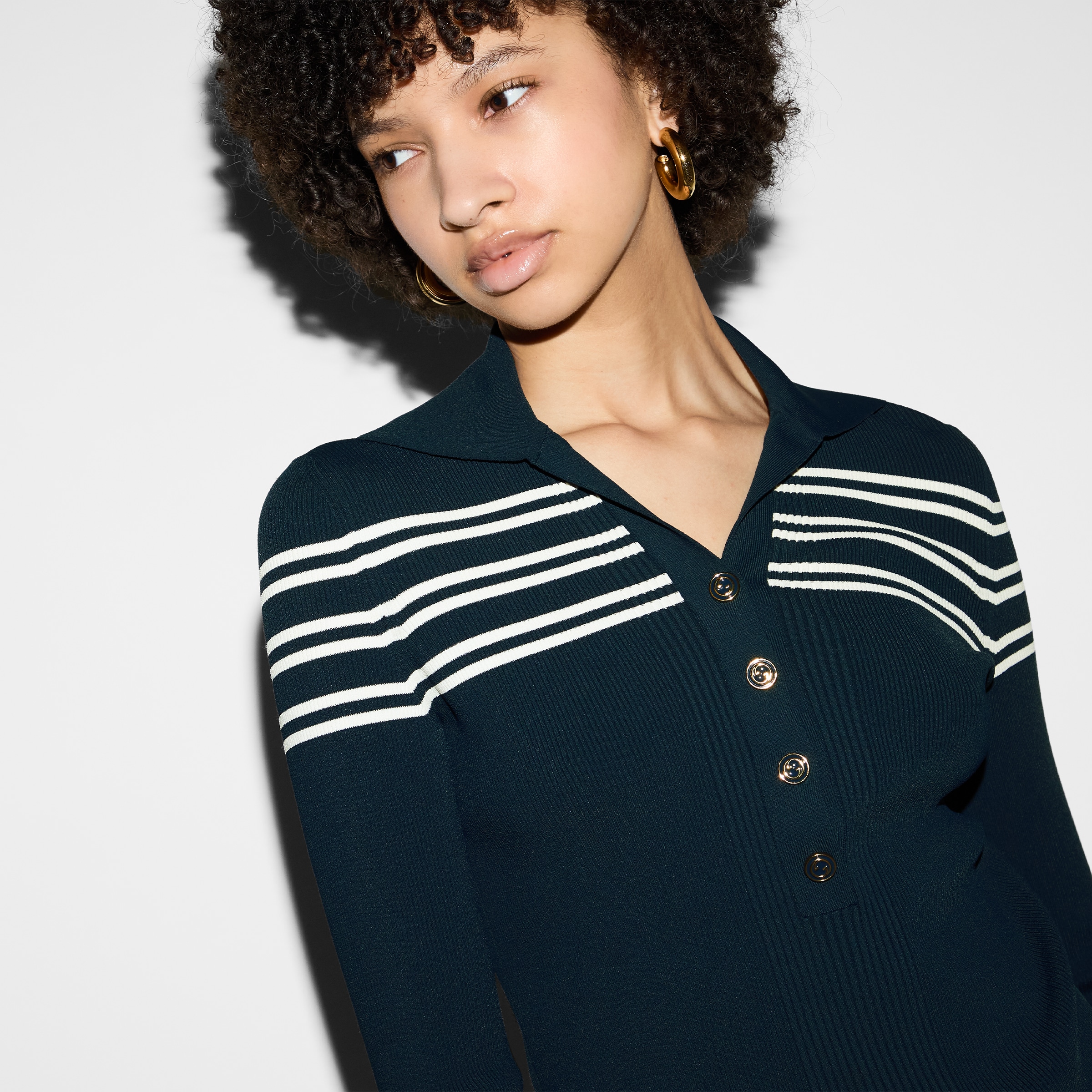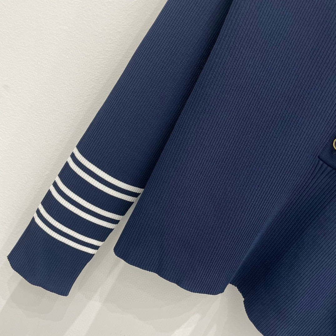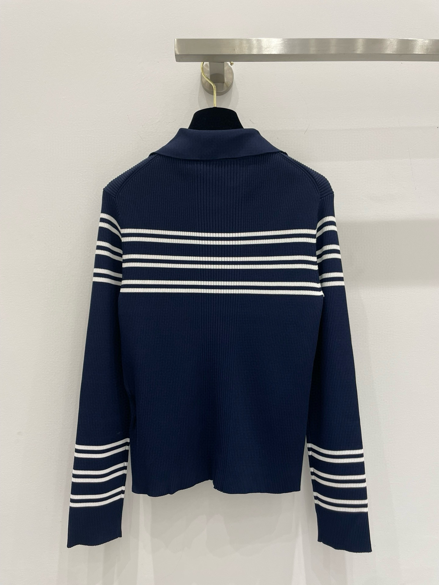 NIGO Gucci Women's Spring And Autumn Blue Striped Stretch Ribbed Knit Button Sweater Long Slim Half-body Skirt Temperament Suit Set #nigo71349