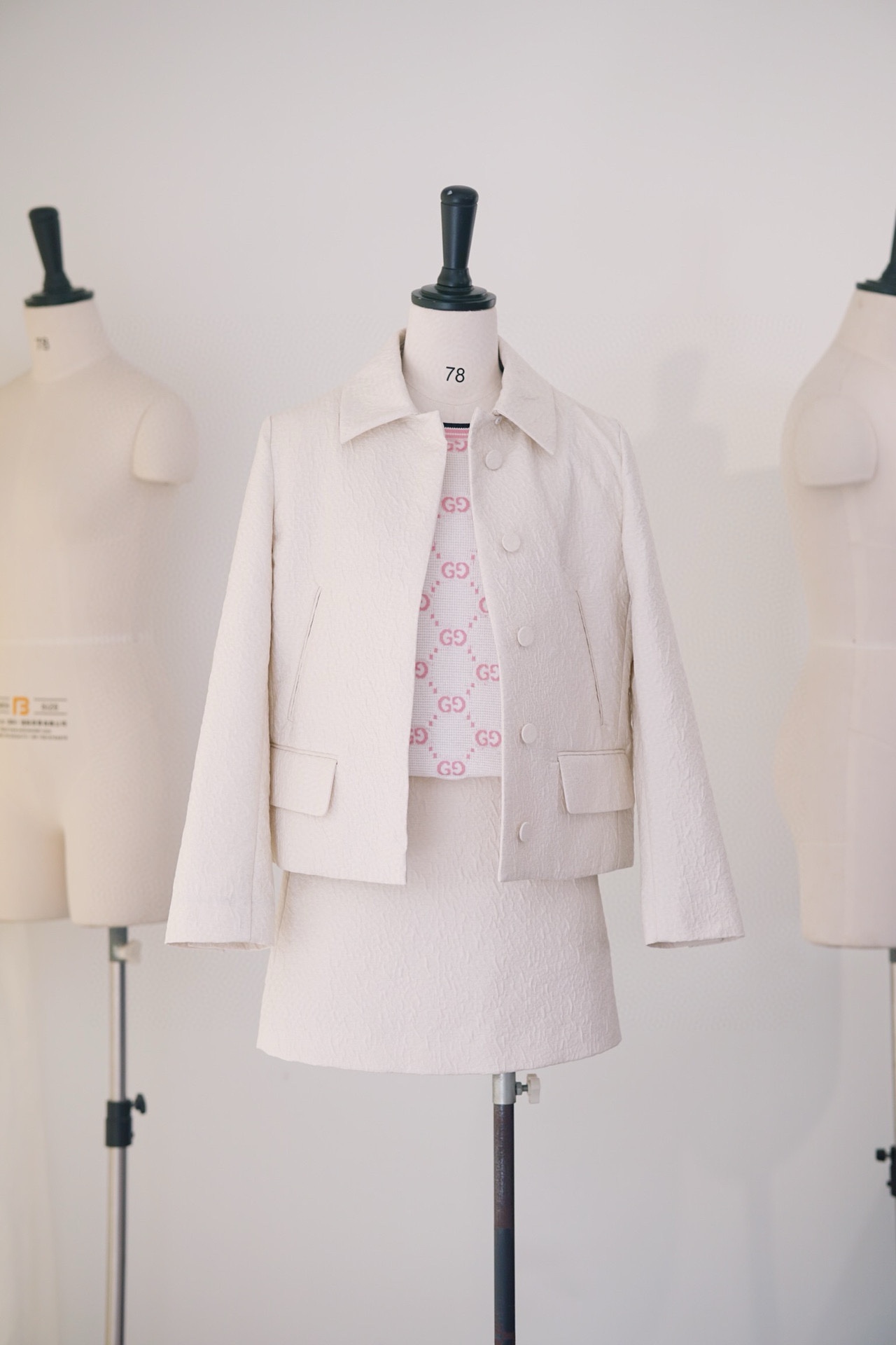 NIGO Gucci Women's Spring And Autumn Textured Cotton Ivory Lapel Blazer Mini Half Skirt Set Fashion Temperament Single Breasted Jacket Ngvp #nigo9137