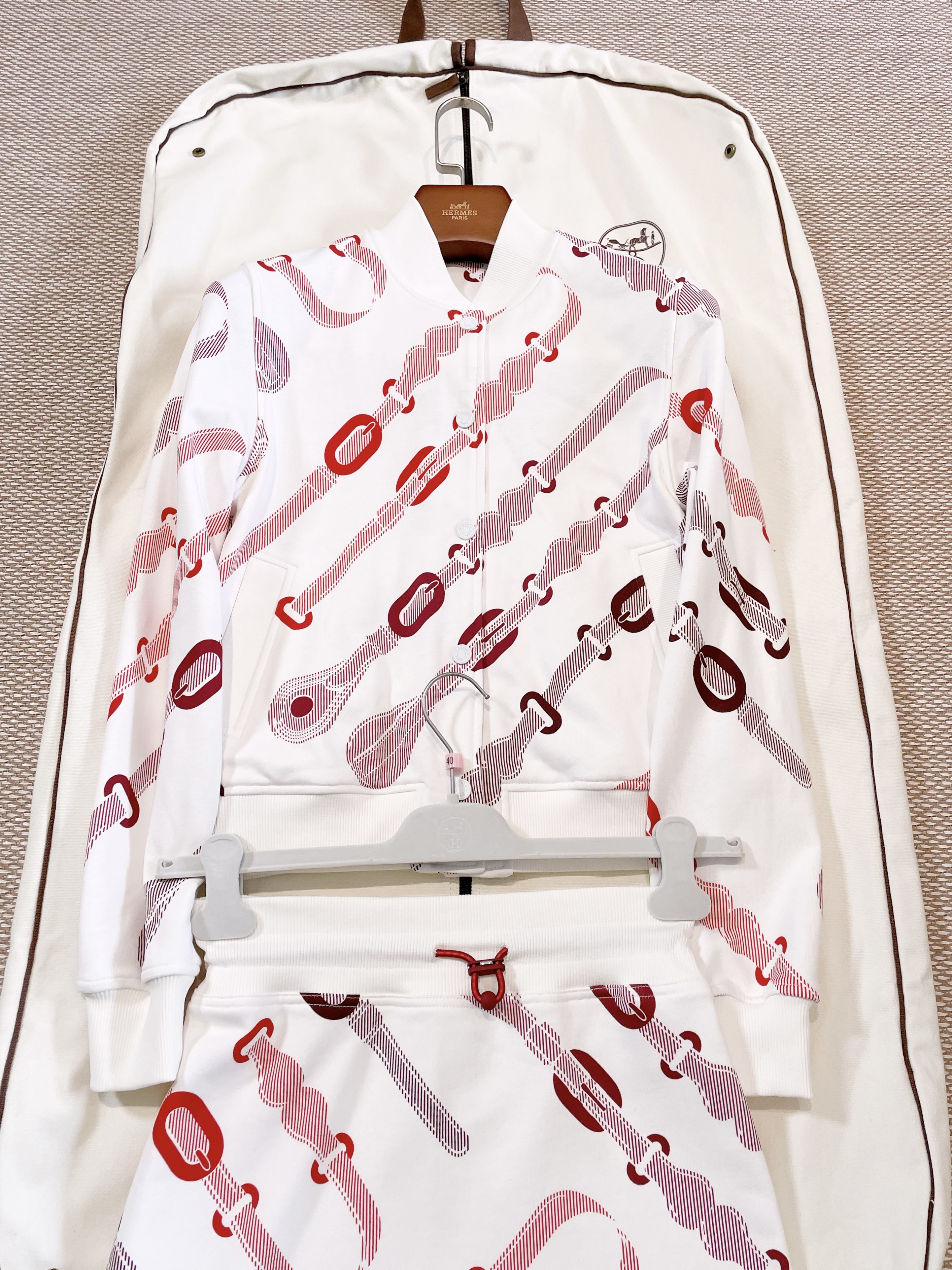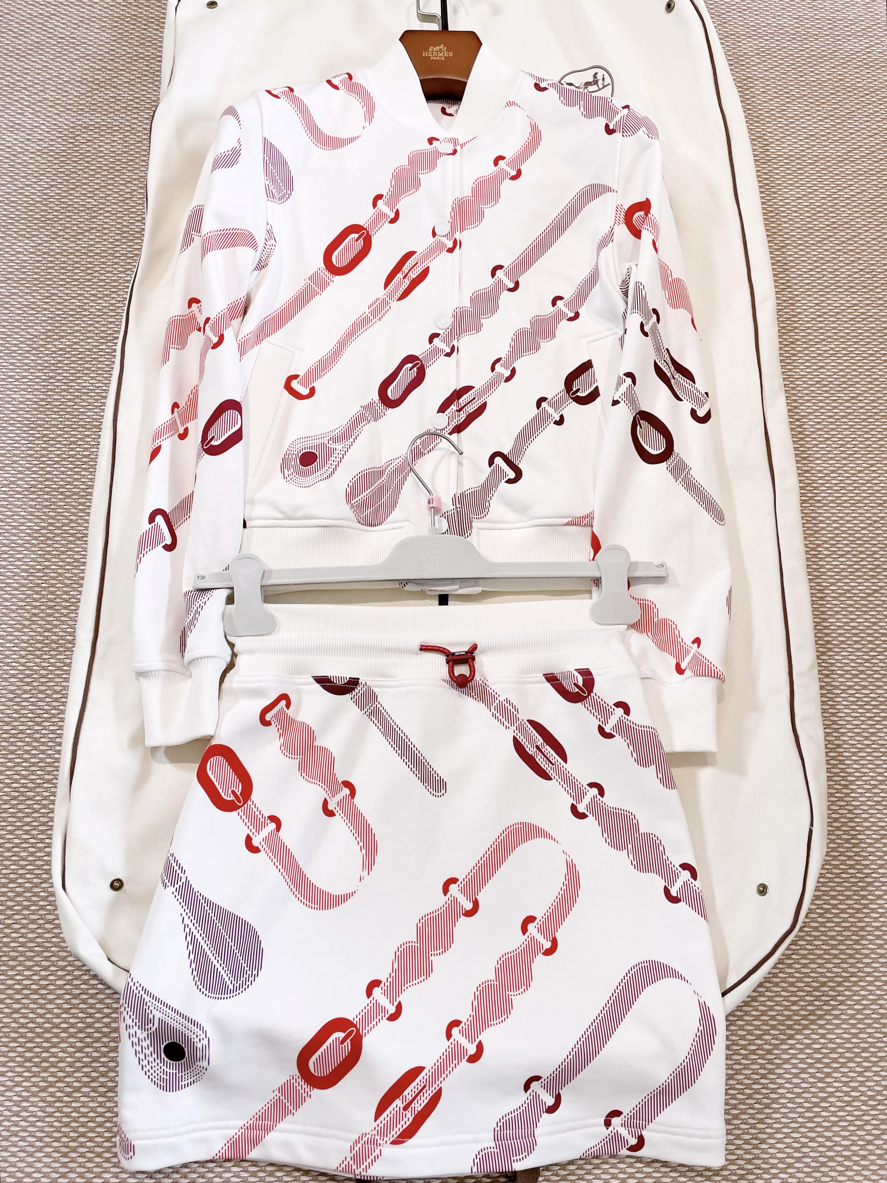 NIGO Hermes ‘Coaching Remix’ Baseball Jacket Women's Printed Fashion Casual Suit Set Temperament Short Jacket Drawstring Halter Mini Skirt Ngvp #nigo1499