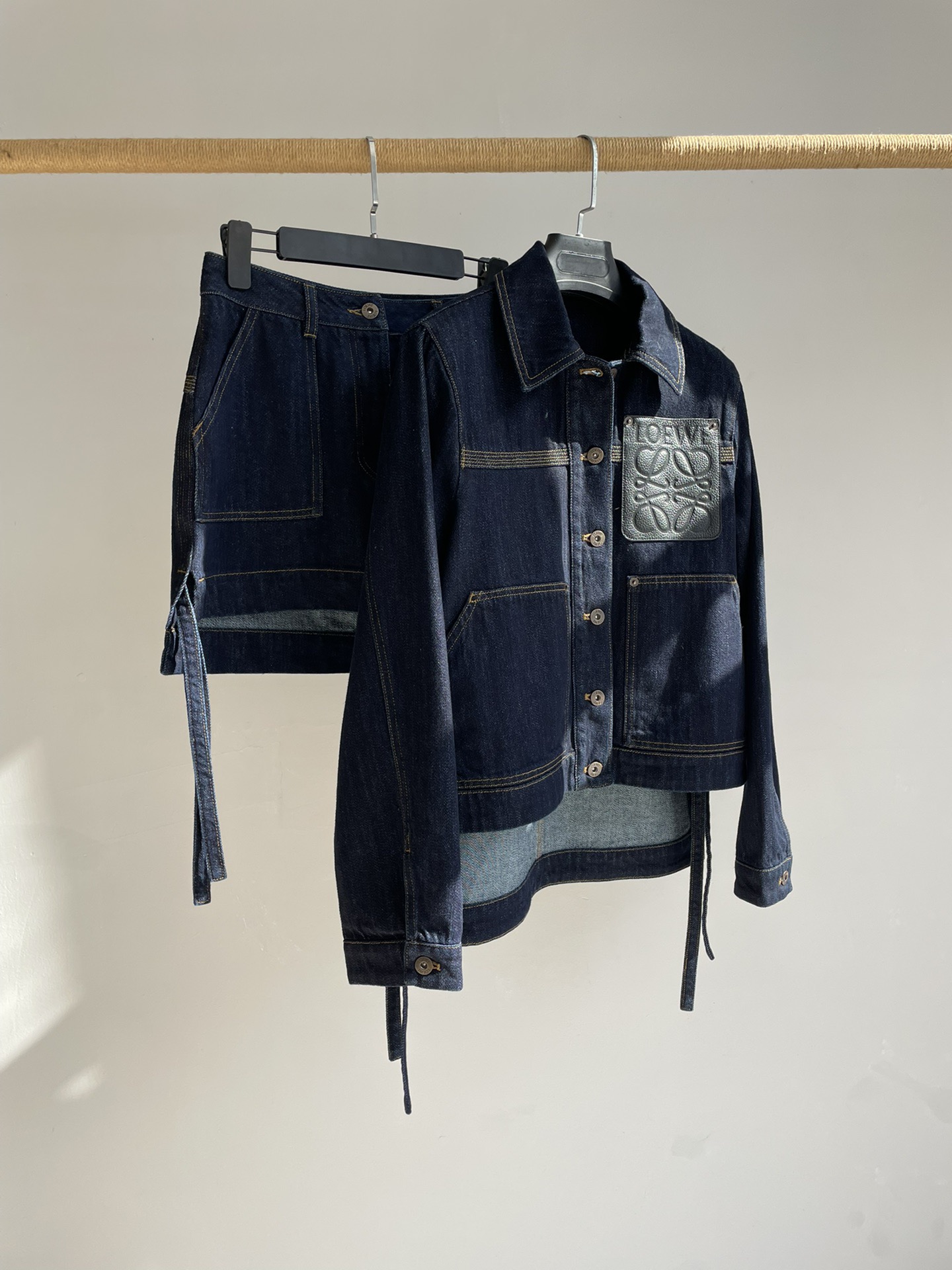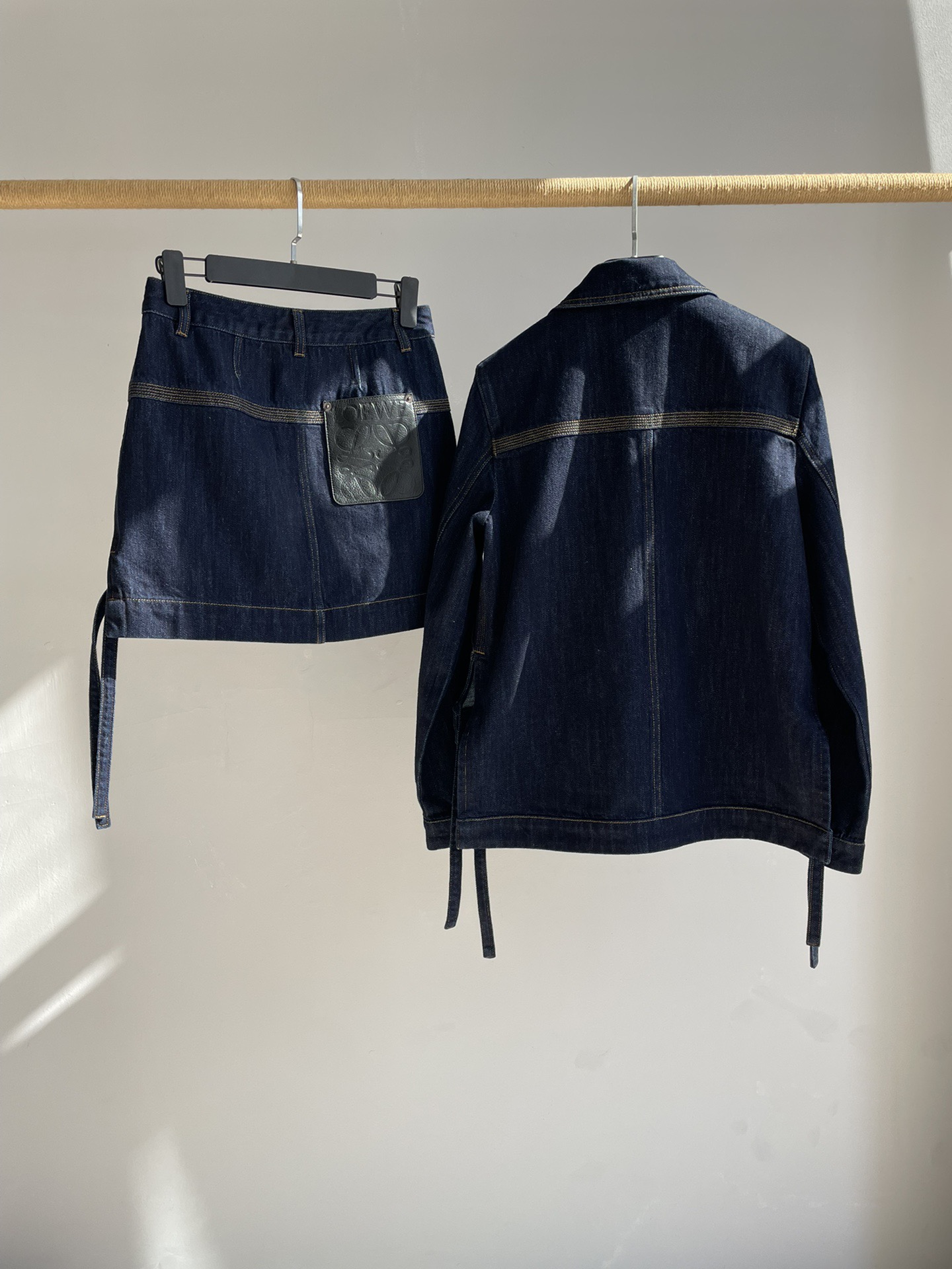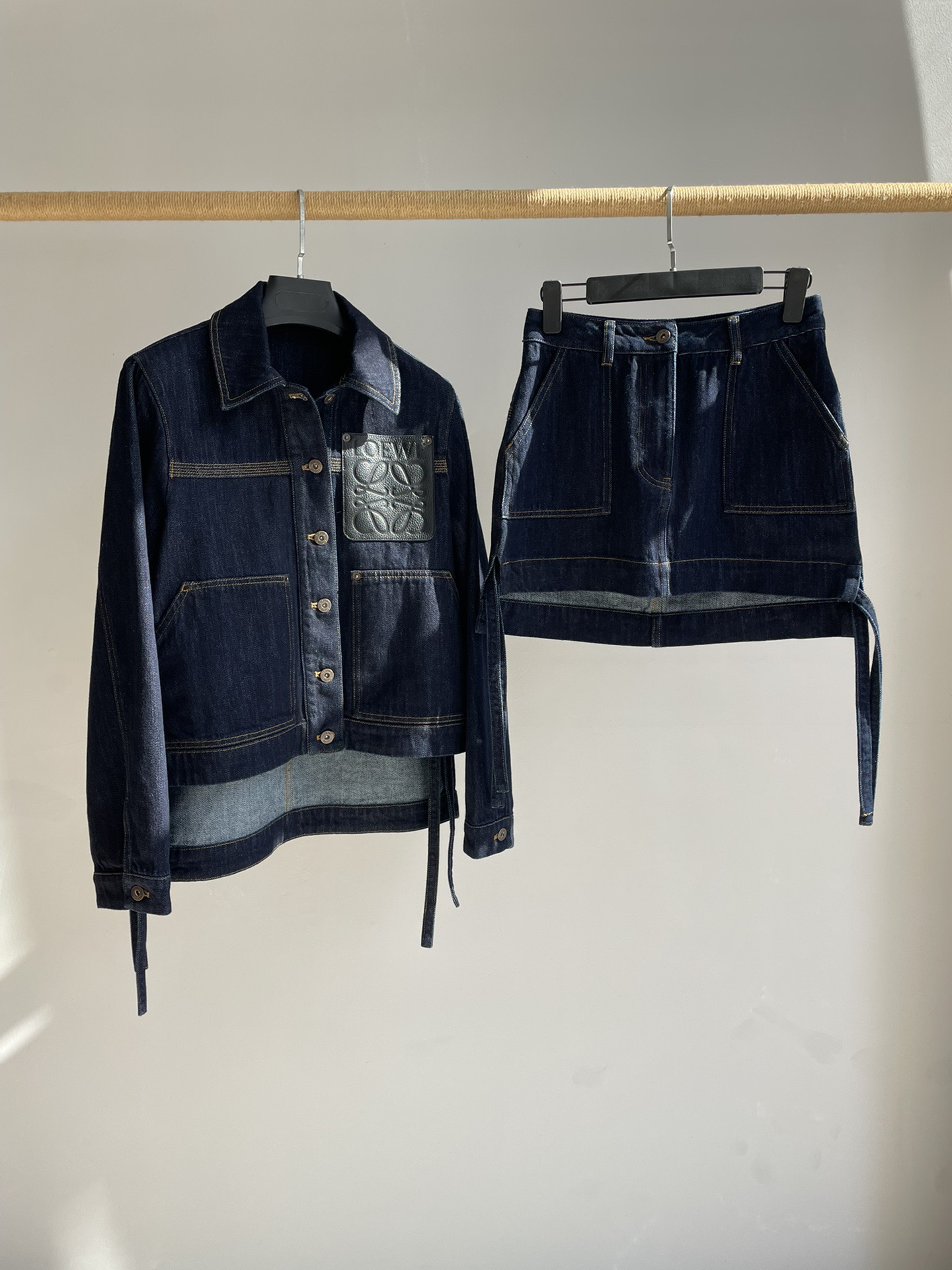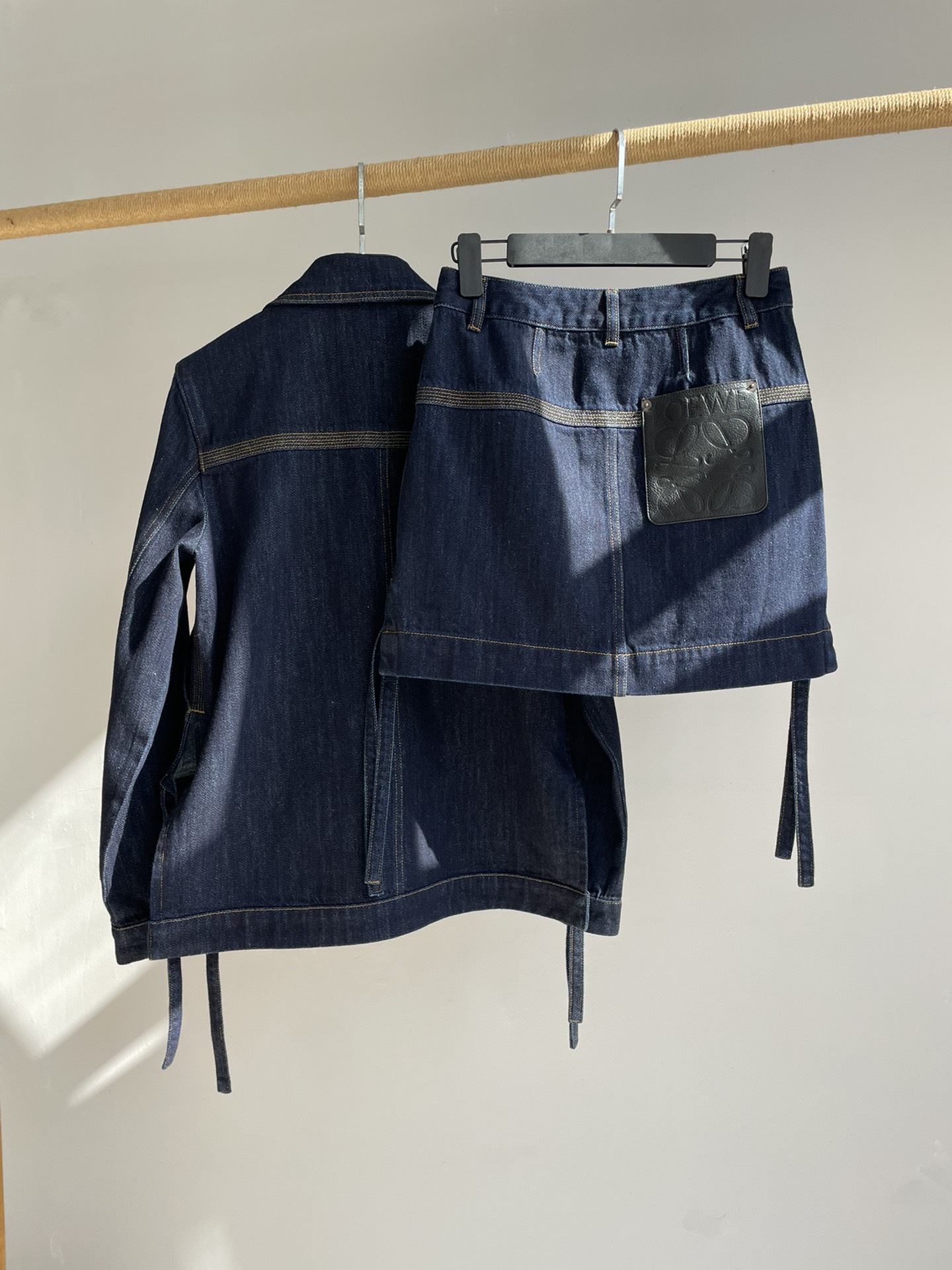 NIGO Loewe Women's Spring And Fall Blue Single Breasted Long Sleeved Denim Jacket Asymmetric Mid Waist Casual Skirt Suit Set #nigo75219