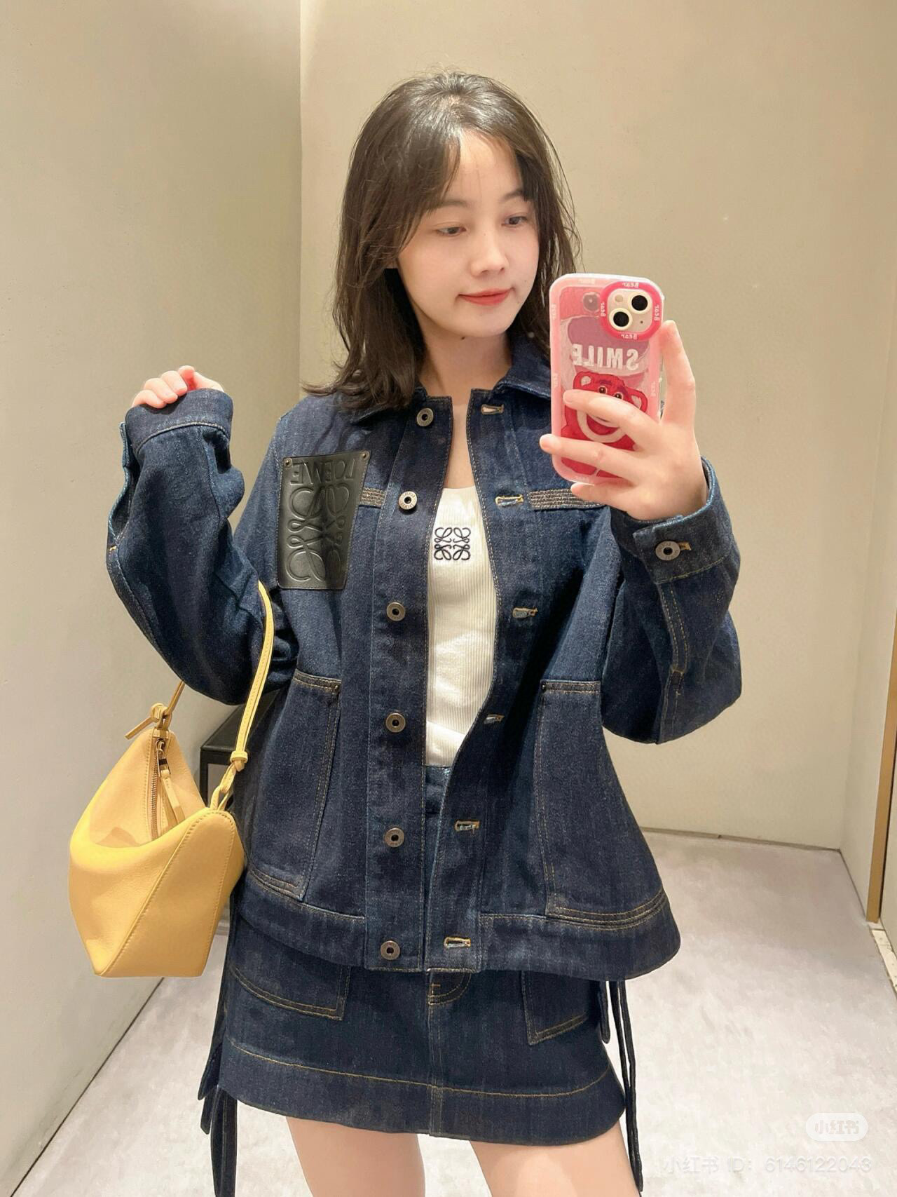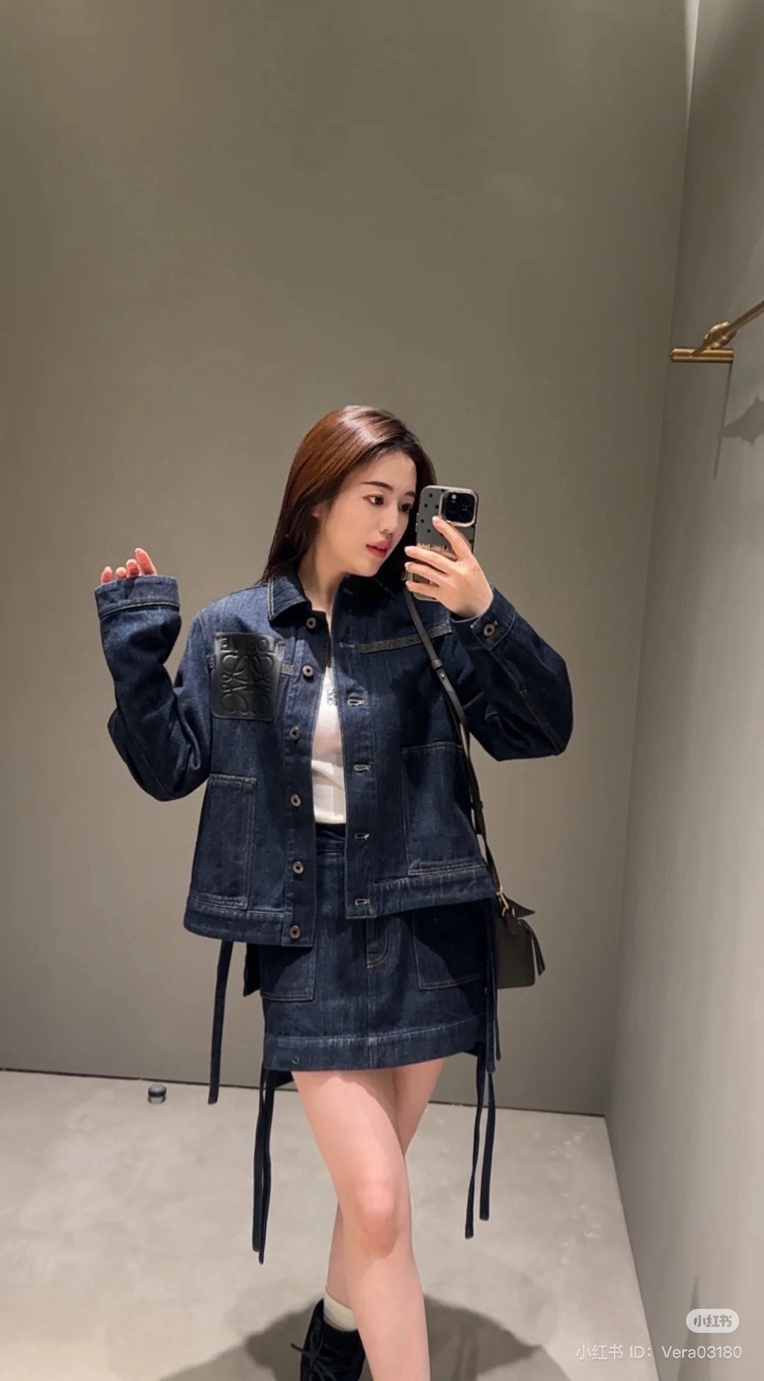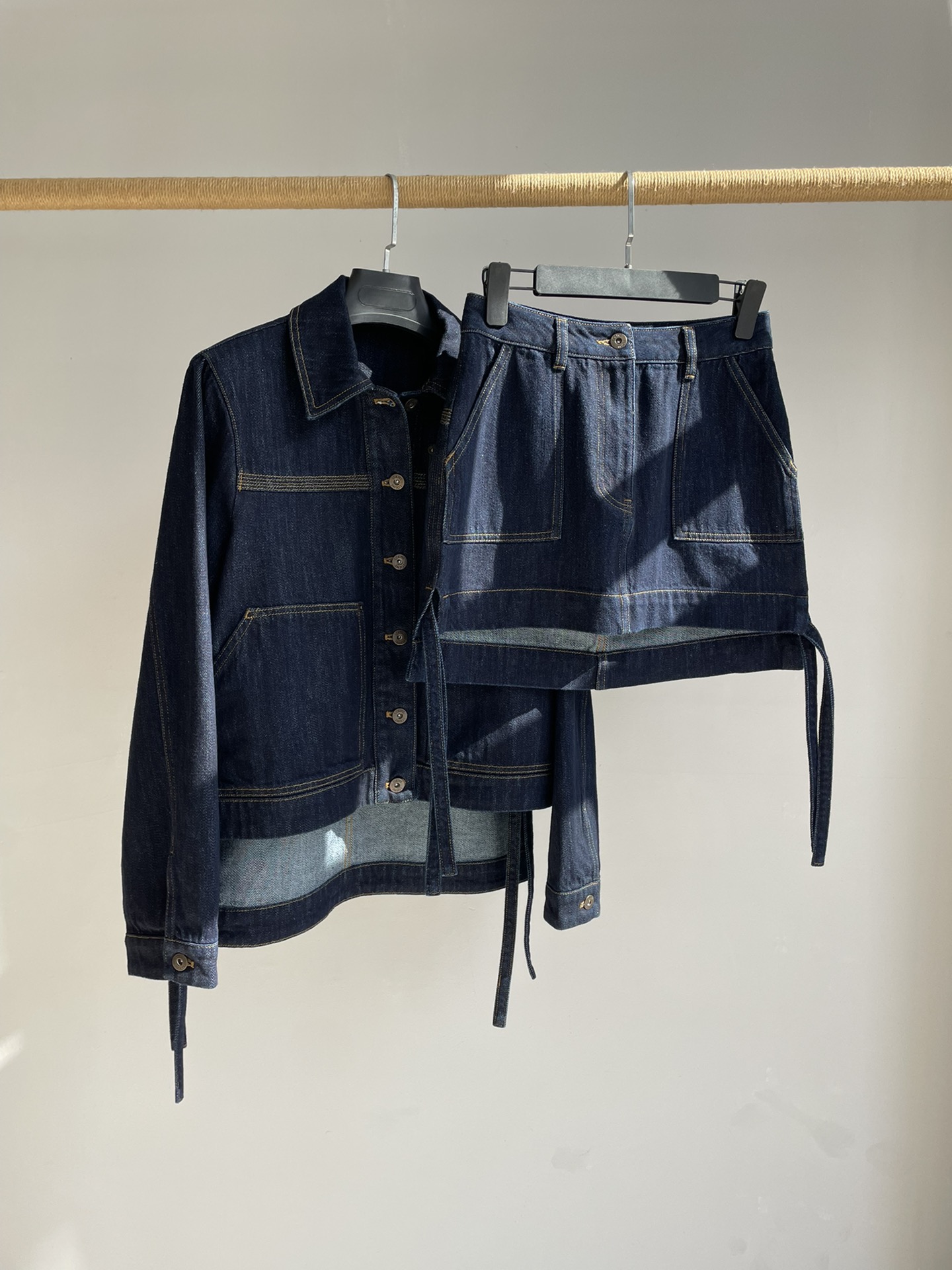 NIGO Loewe Women's Spring And Fall Blue Single Breasted Long Sleeved Denim Jacket Asymmetric Mid Waist Casual Skirt Suit Set #nigo75219