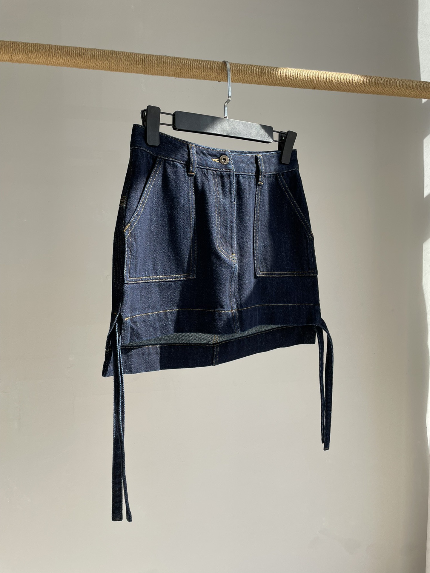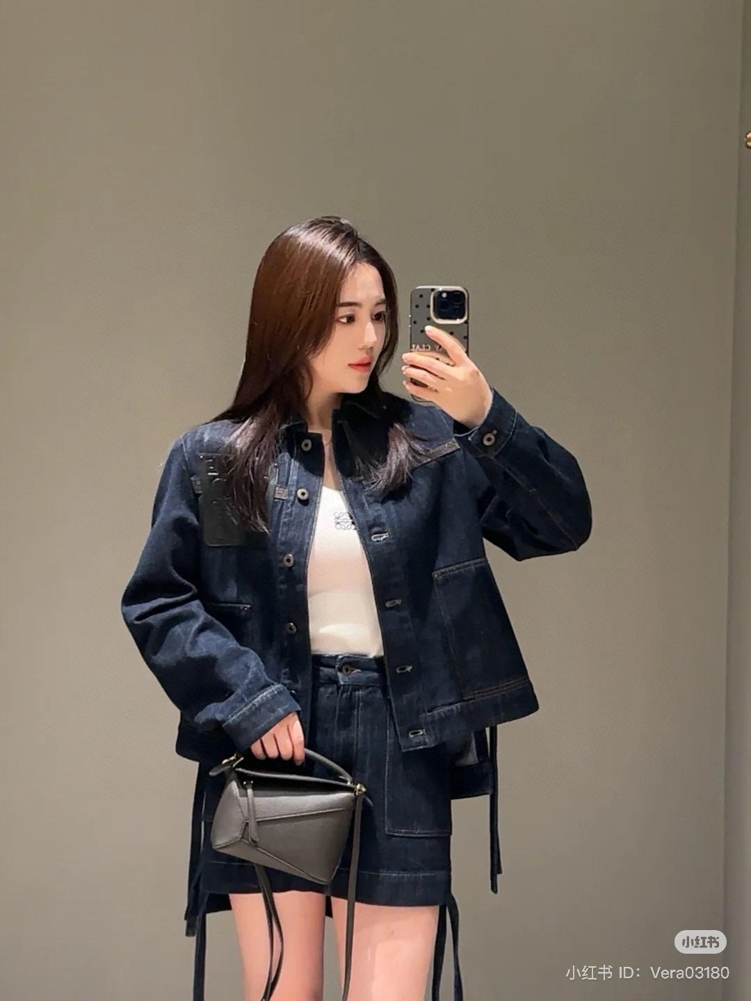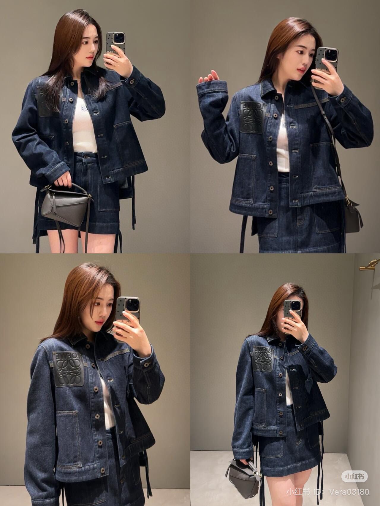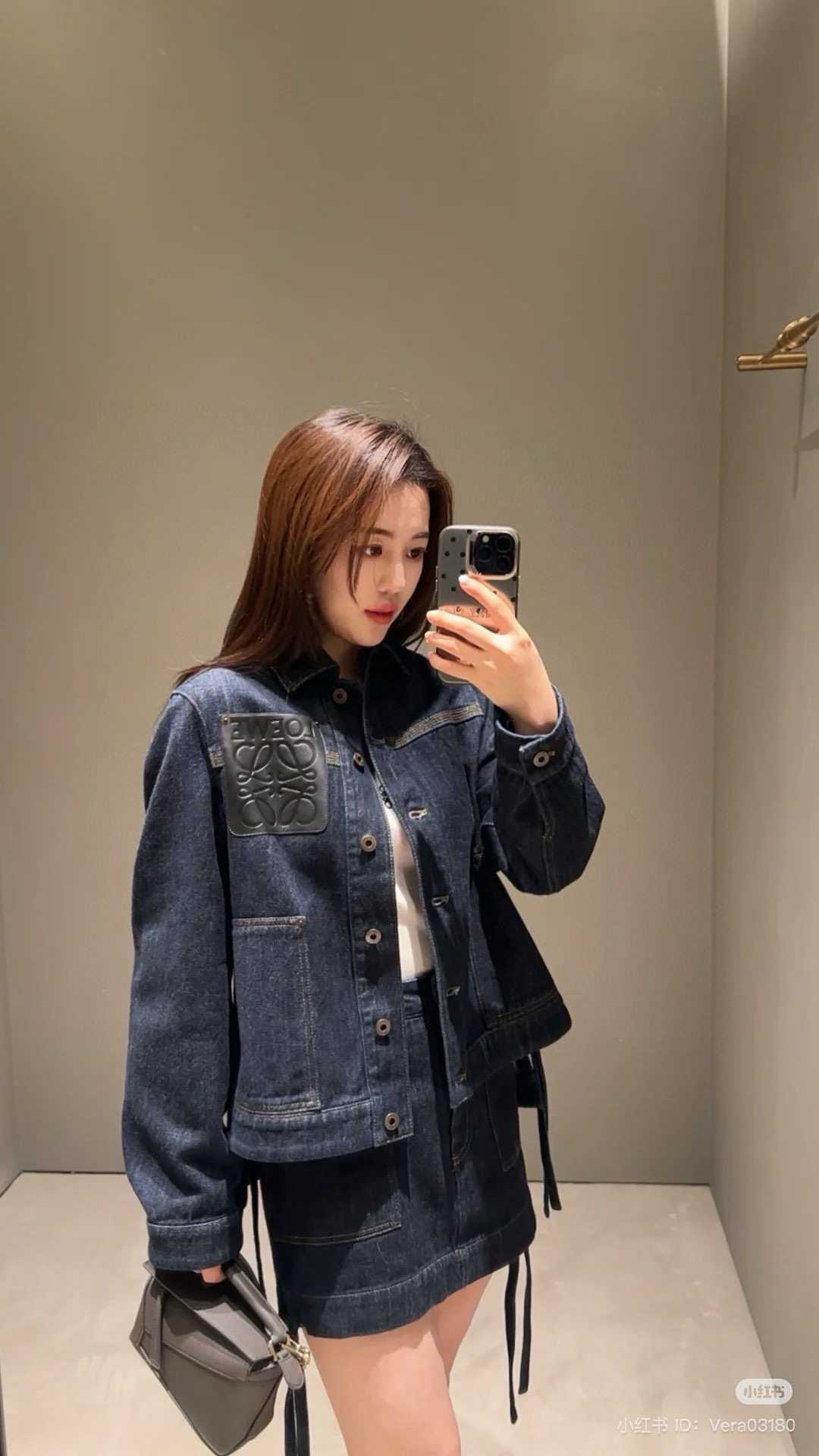 NIGO Loewe Women's Spring And Fall Blue Single Breasted Long Sleeved Denim Jacket Asymmetric Mid Waist Casual Skirt Suit Set #nigo75219