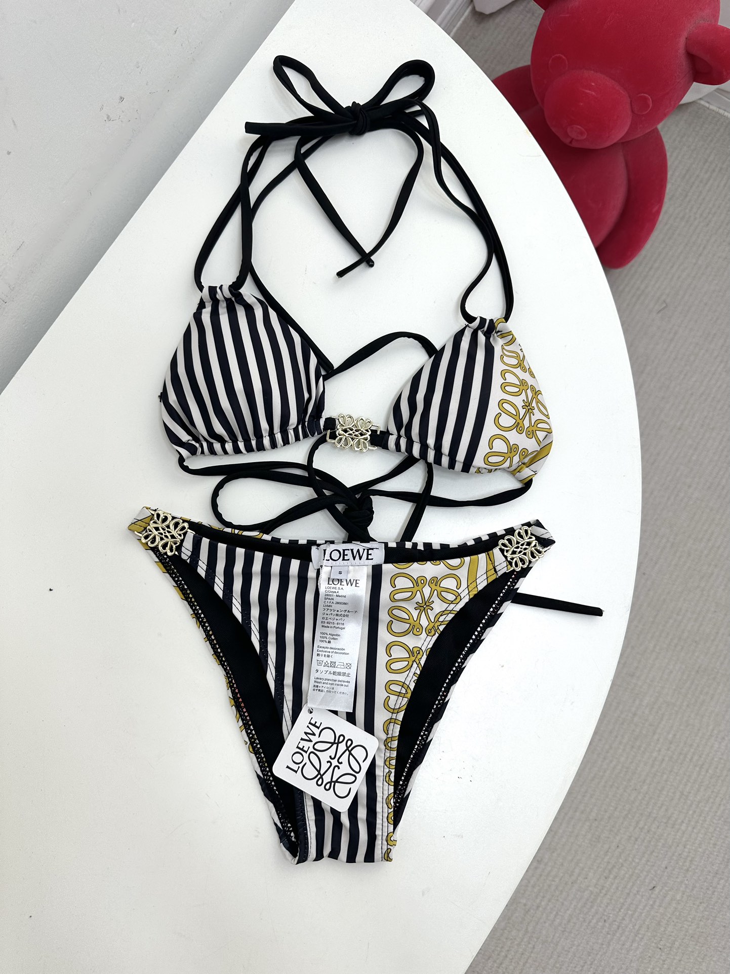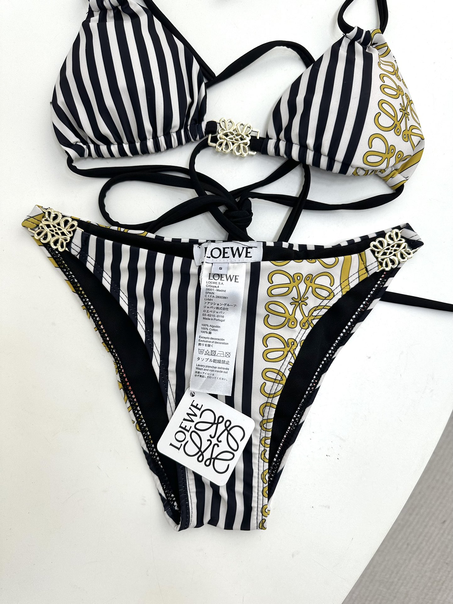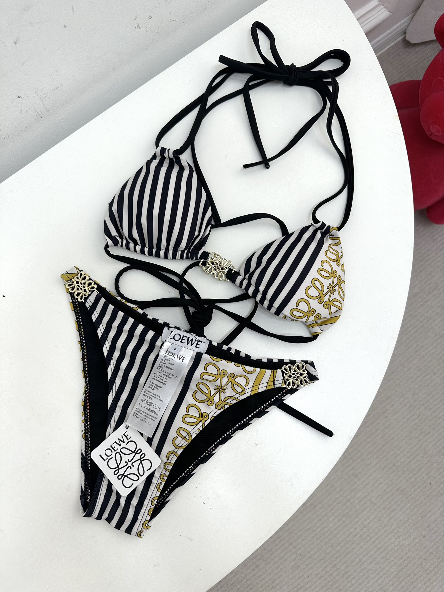 NIGO Loewe Women's Summer Striped Printed Tie Neck Bikini Swimsuit Swim Trunks #nigo99935