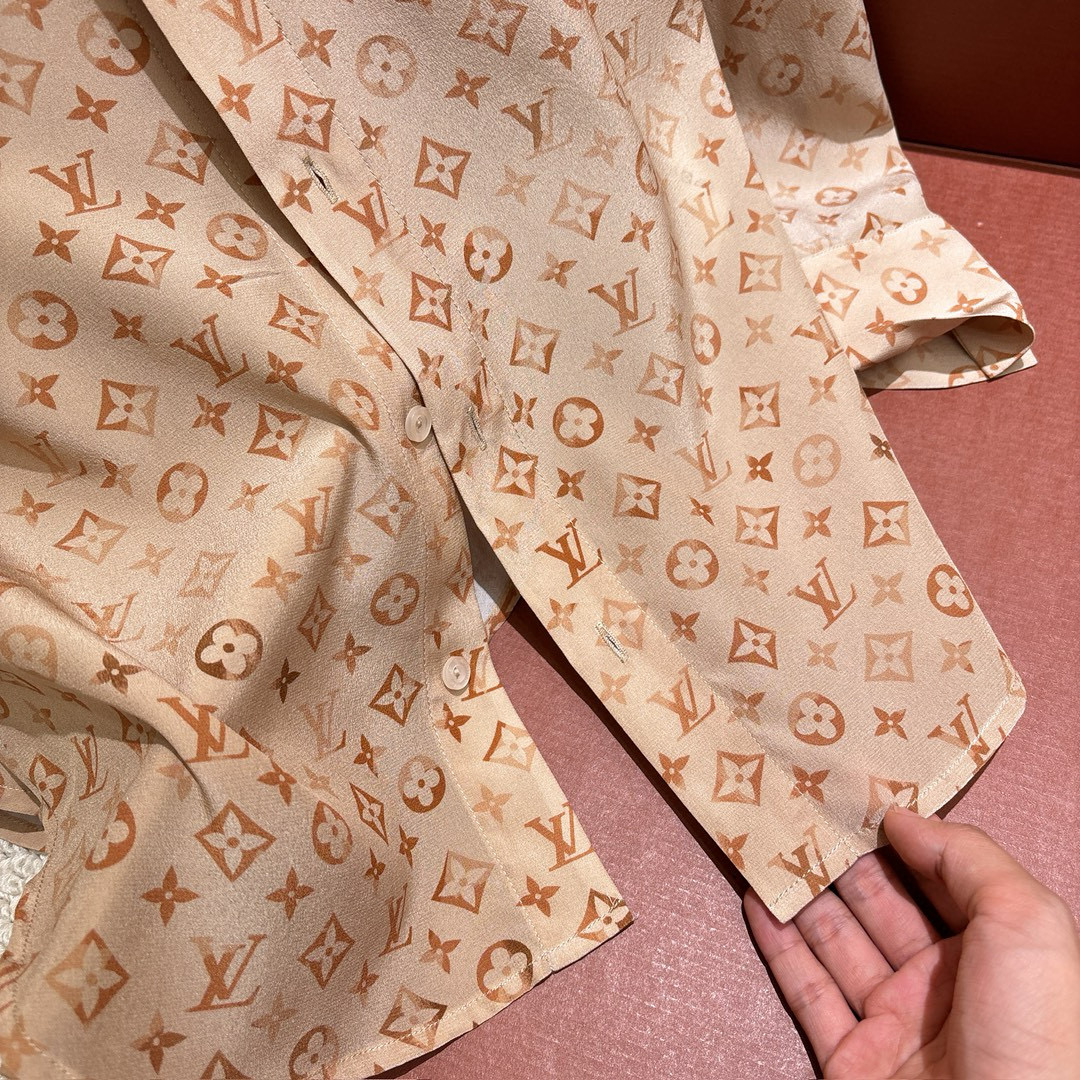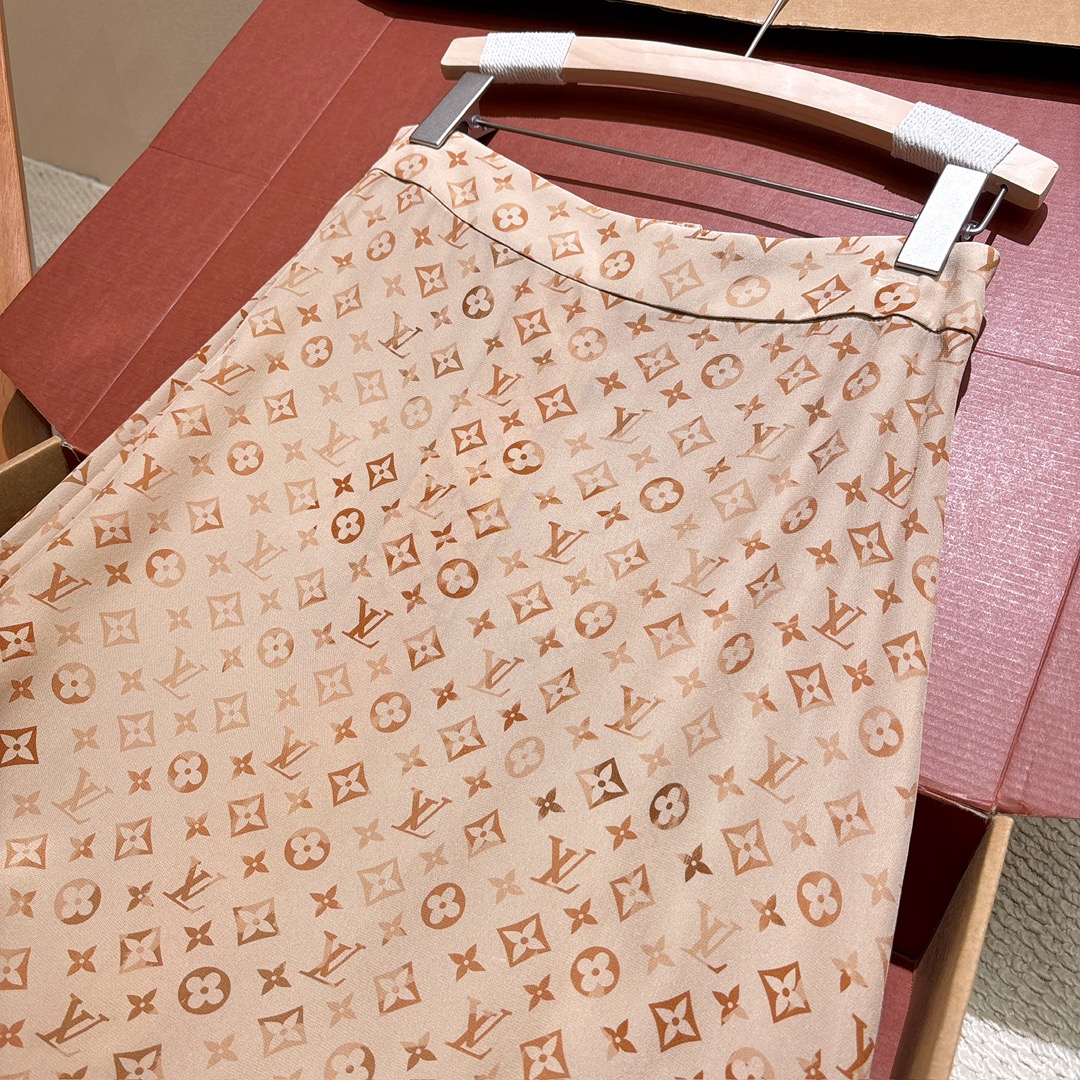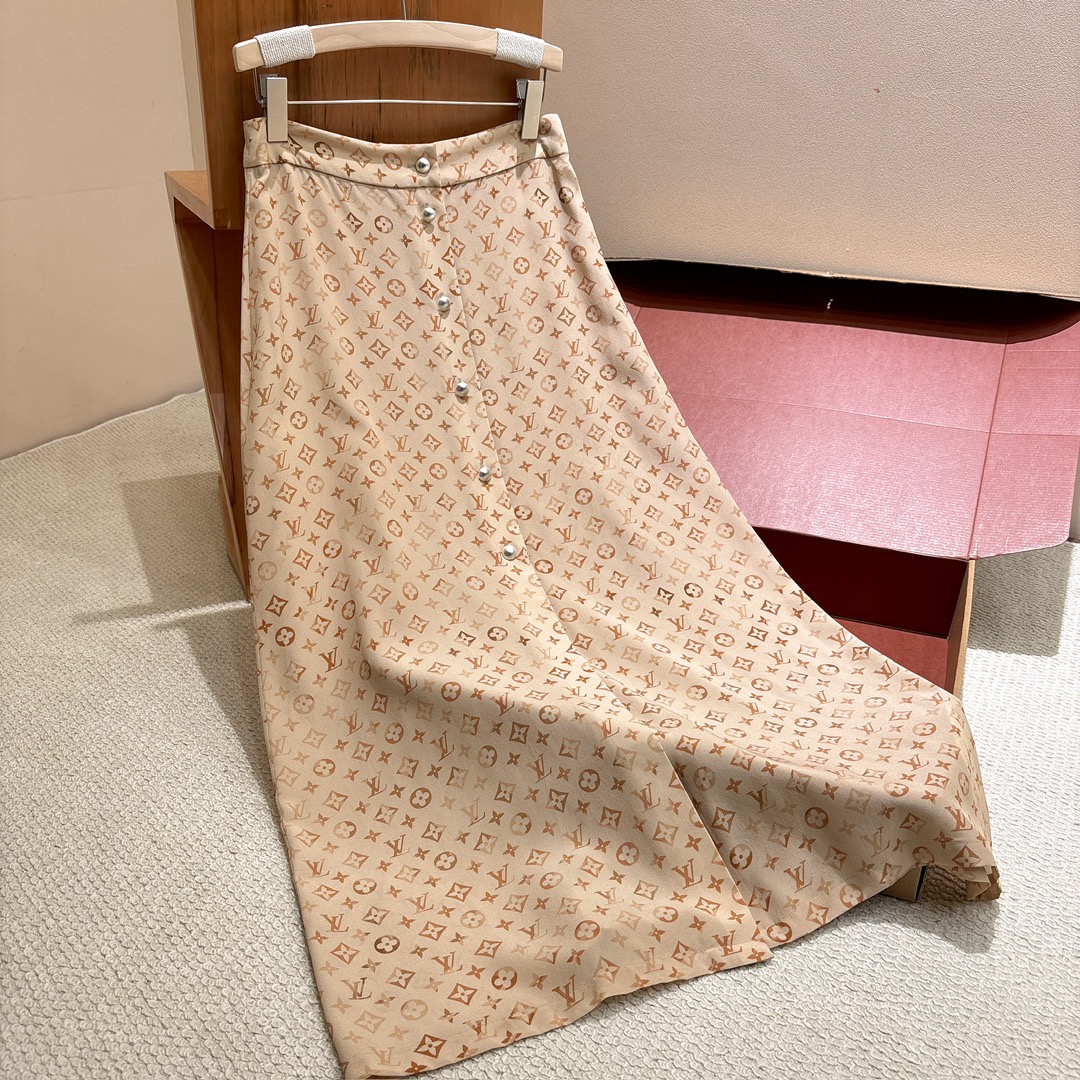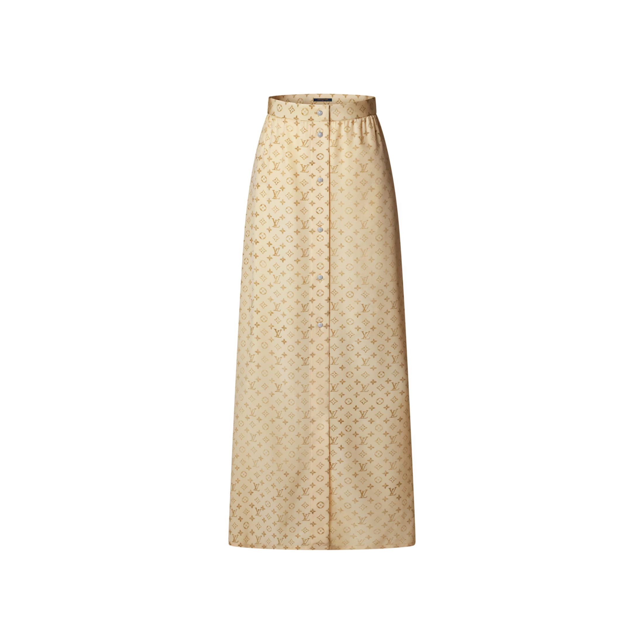 NIGO Louis Vuitton MONOGRAM Women's Spring/Fall Fashion Casual Collared Single Breasted Classic Printed Silk Long Sleeve Shirt Elastic Waist Single Breasted Silk All Over Print Long Skirt Skirt Suit Set #nigo79412