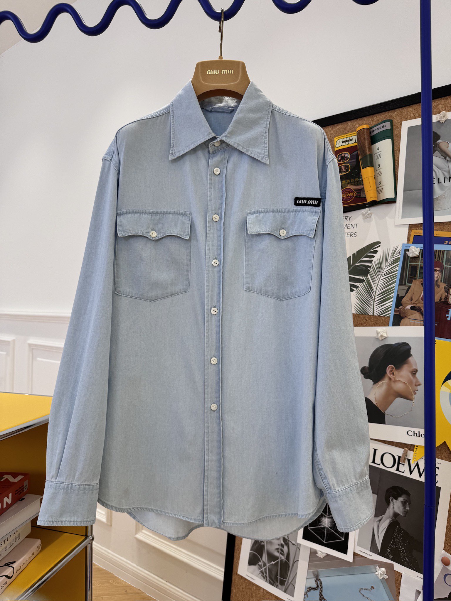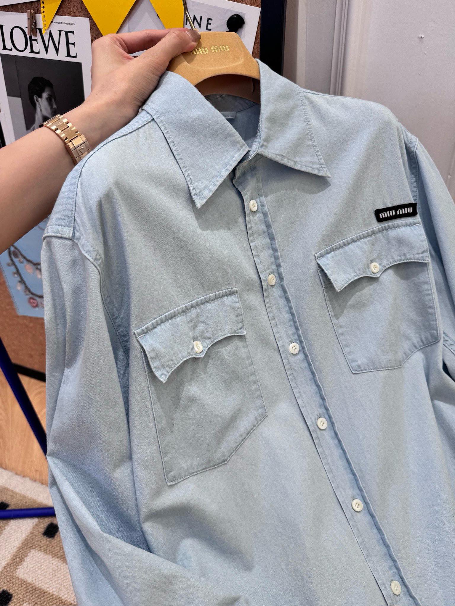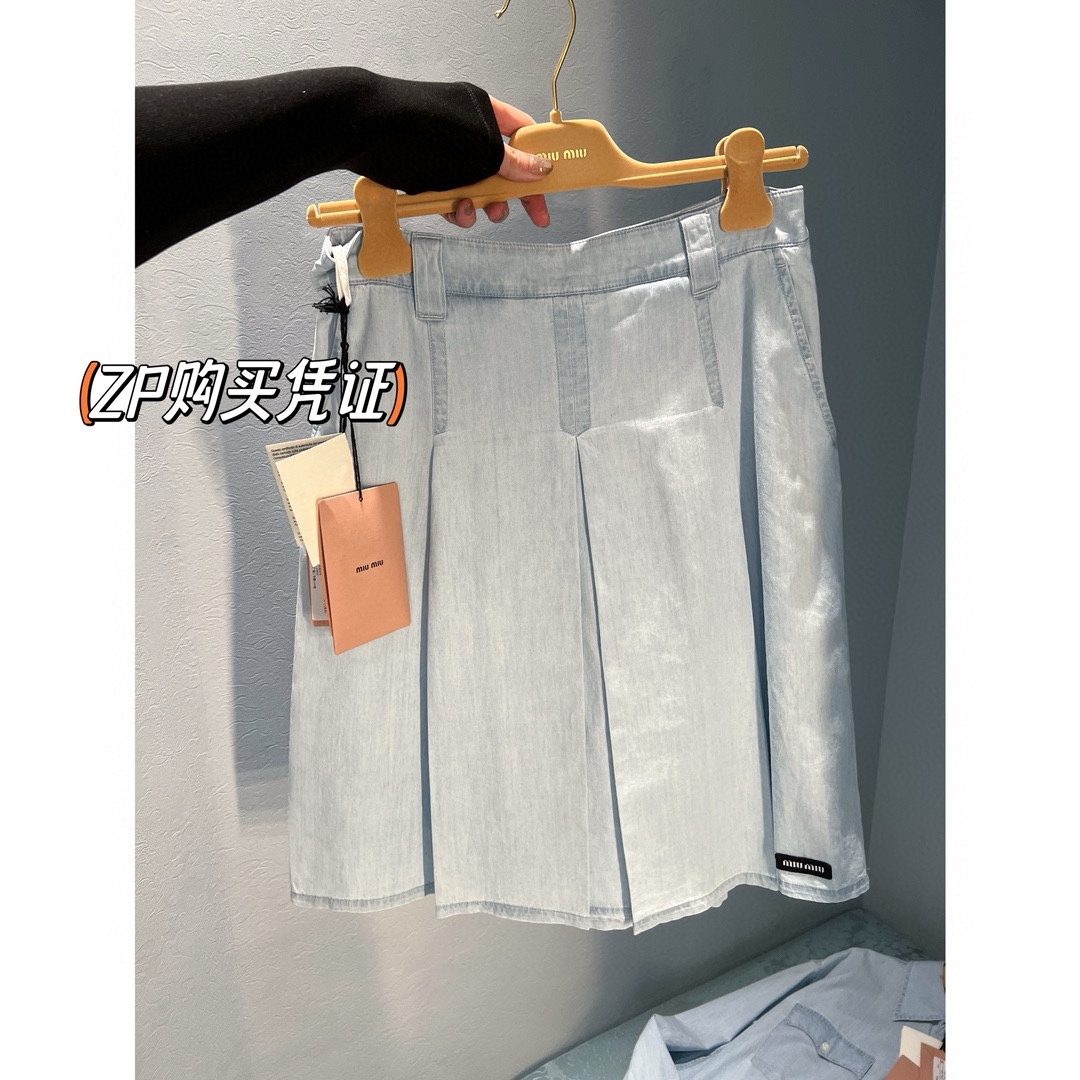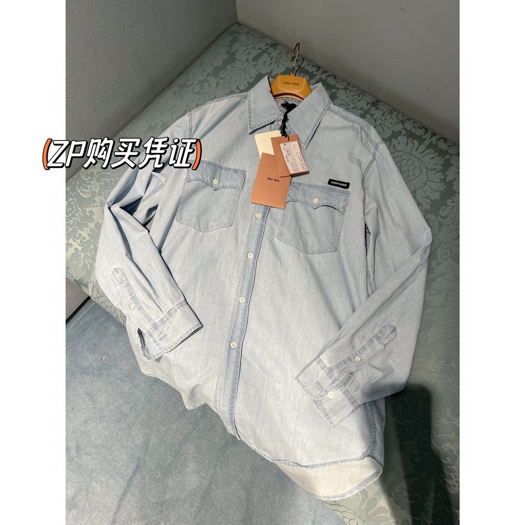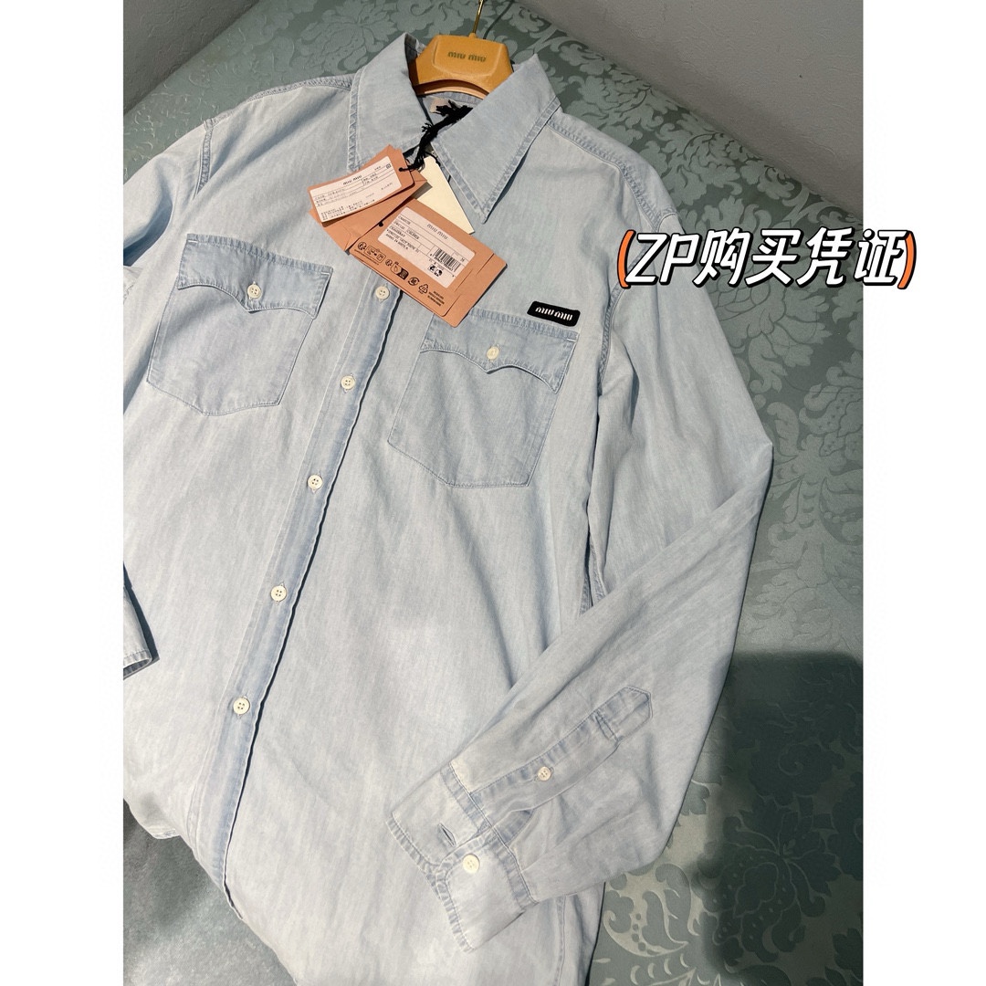 NIGO MiuMiu Women‘s Spring And Summer Light Blue Single Breasted Long Sleeved Denim Shirt Low Waist Loose Skirt Suit Set #nigo99841