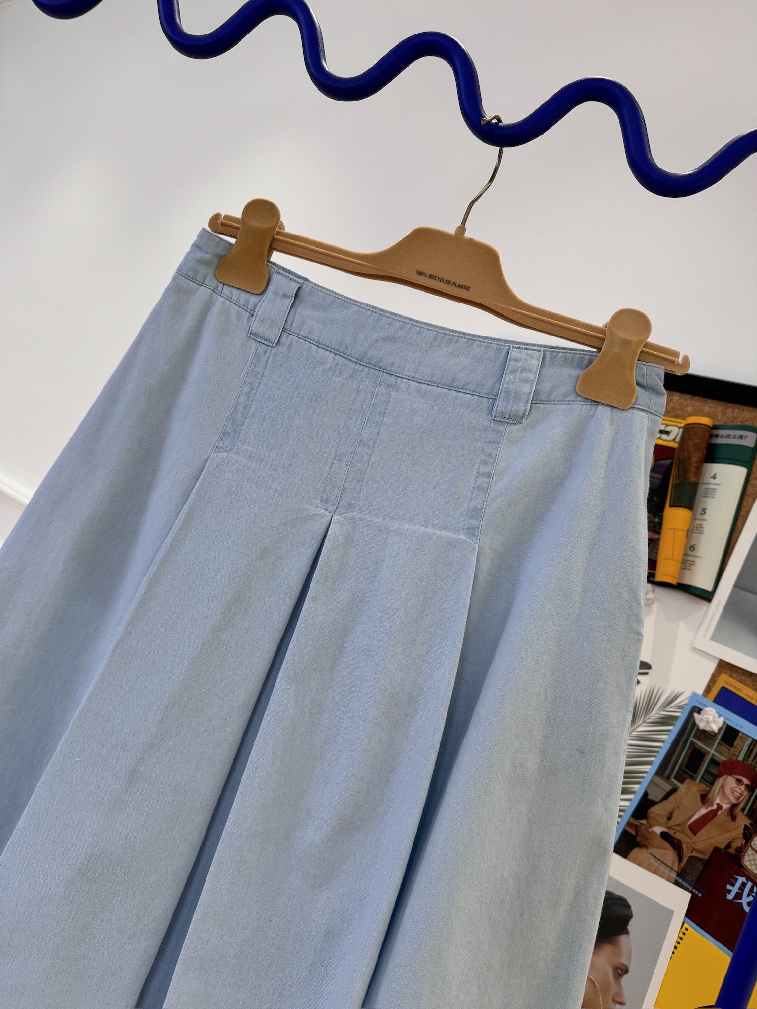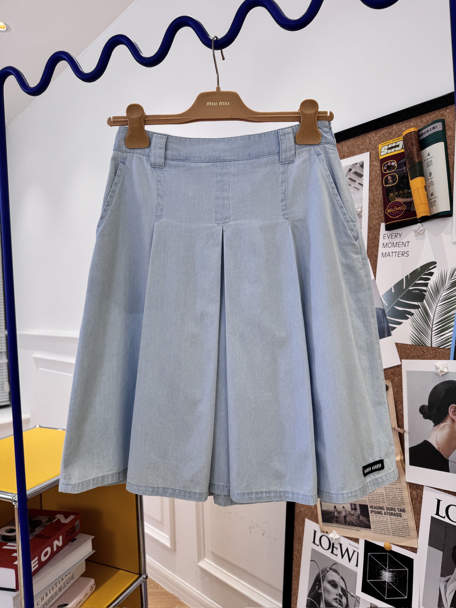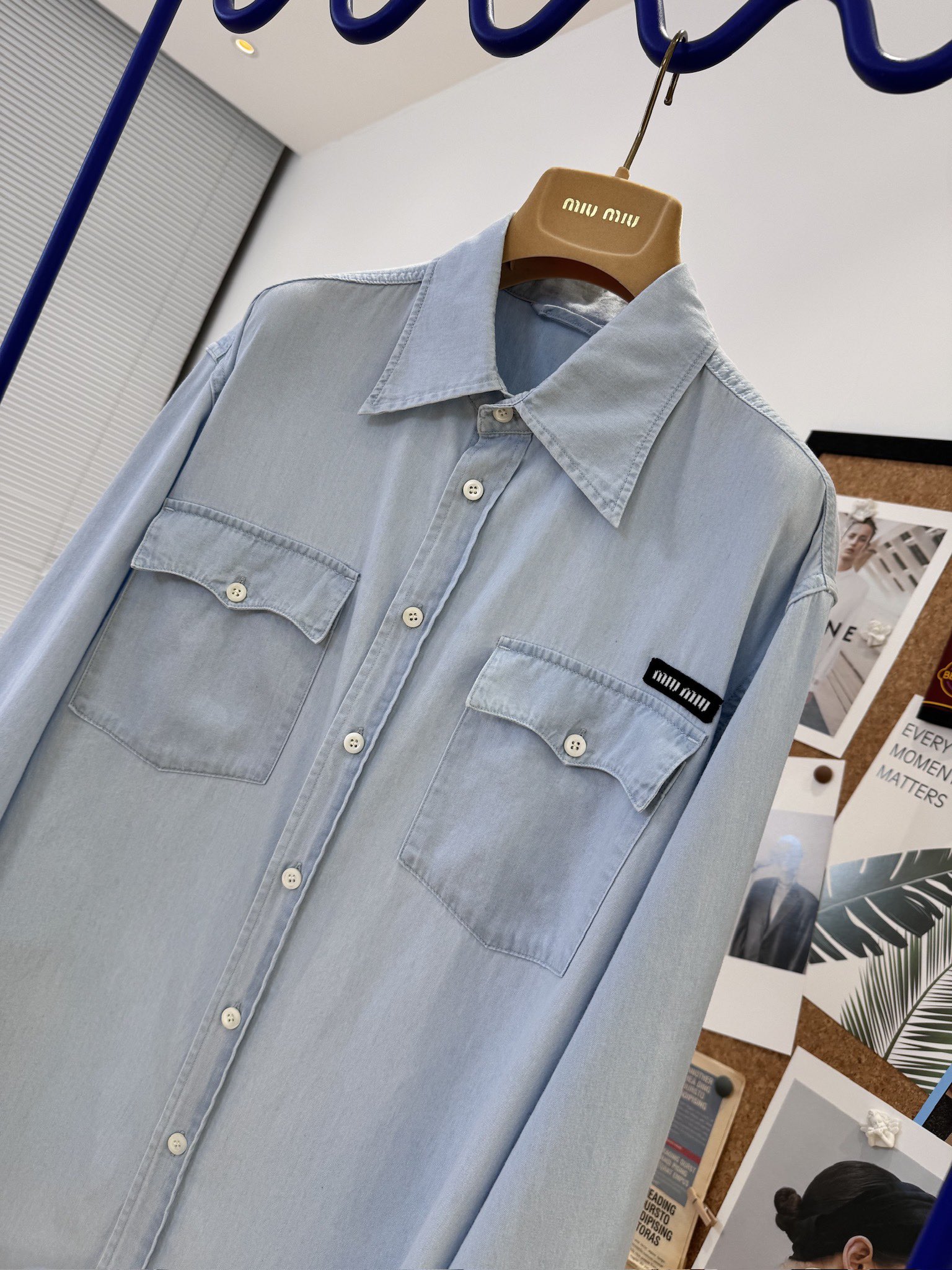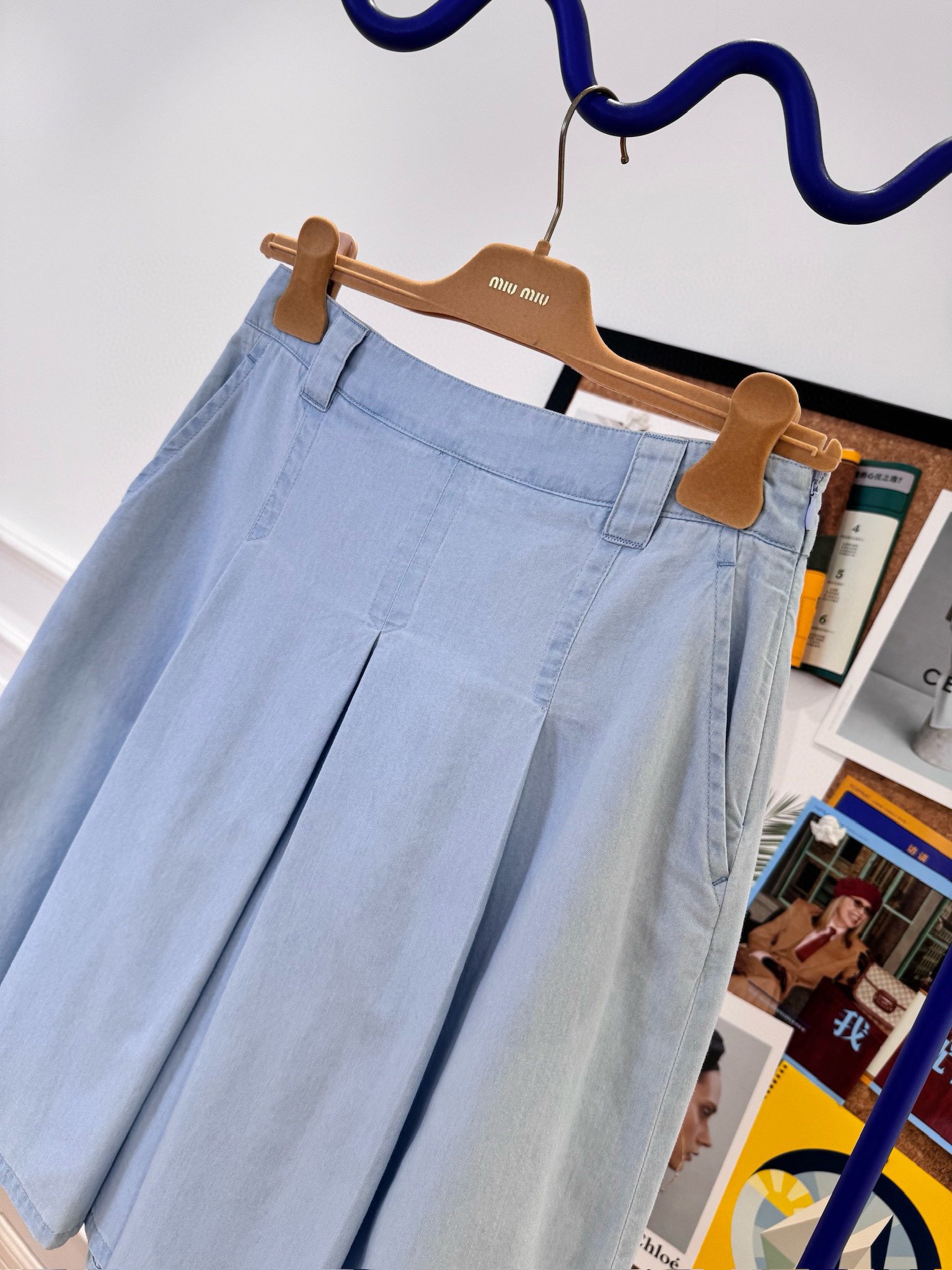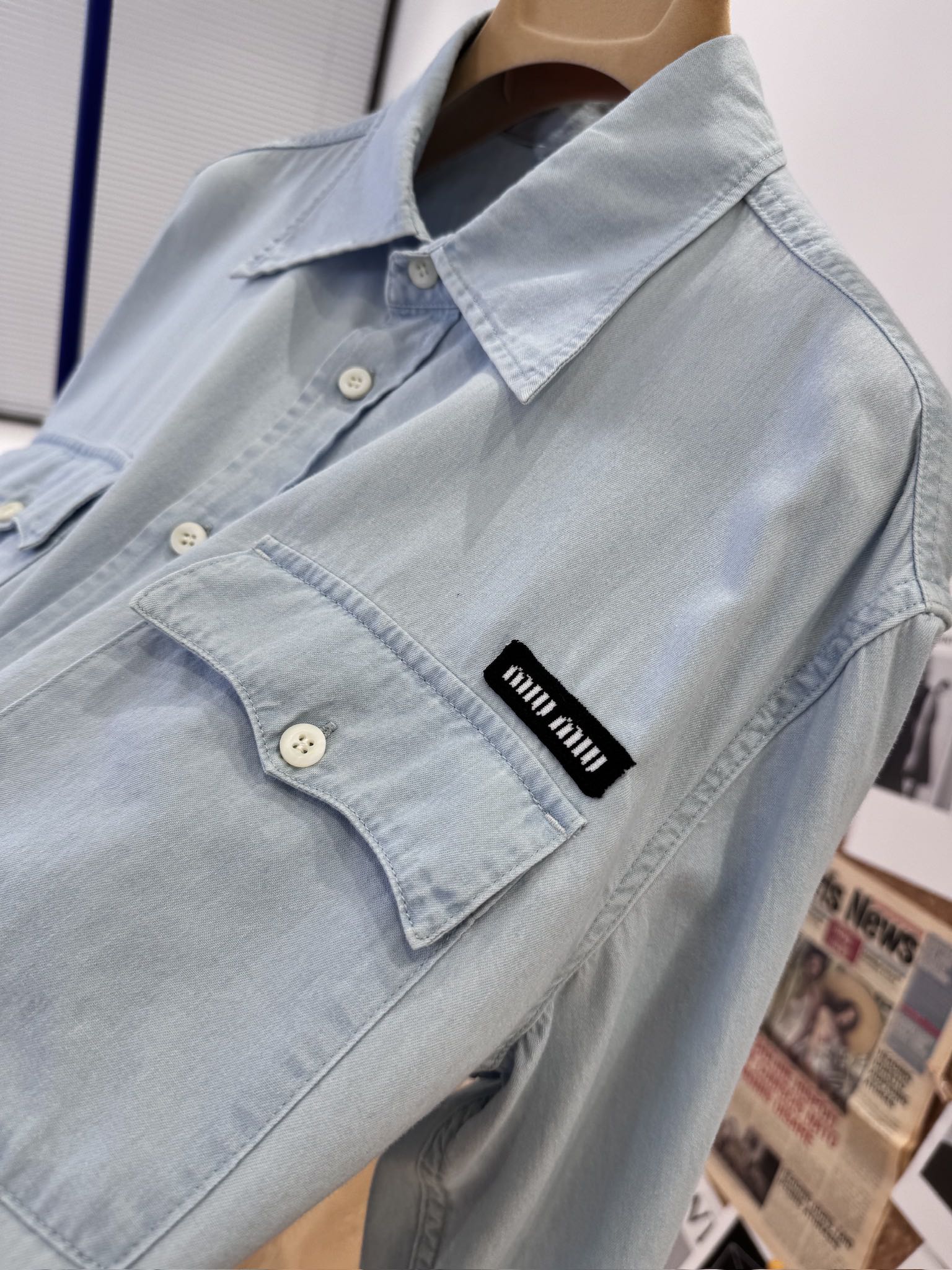 NIGO MiuMiu Women‘s Spring And Summer Light Blue Single Breasted Long Sleeved Denim Shirt Low Waist Loose Skirt Suit Set #nigo99841