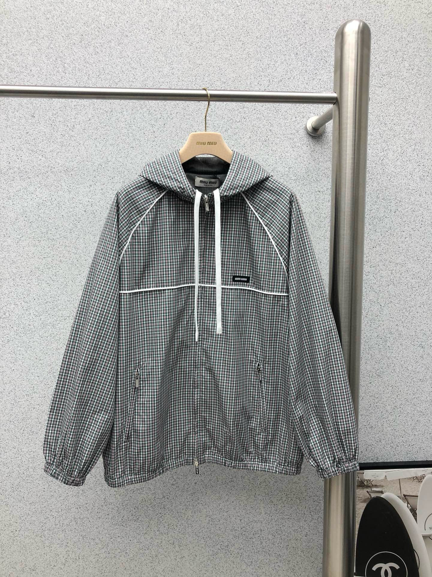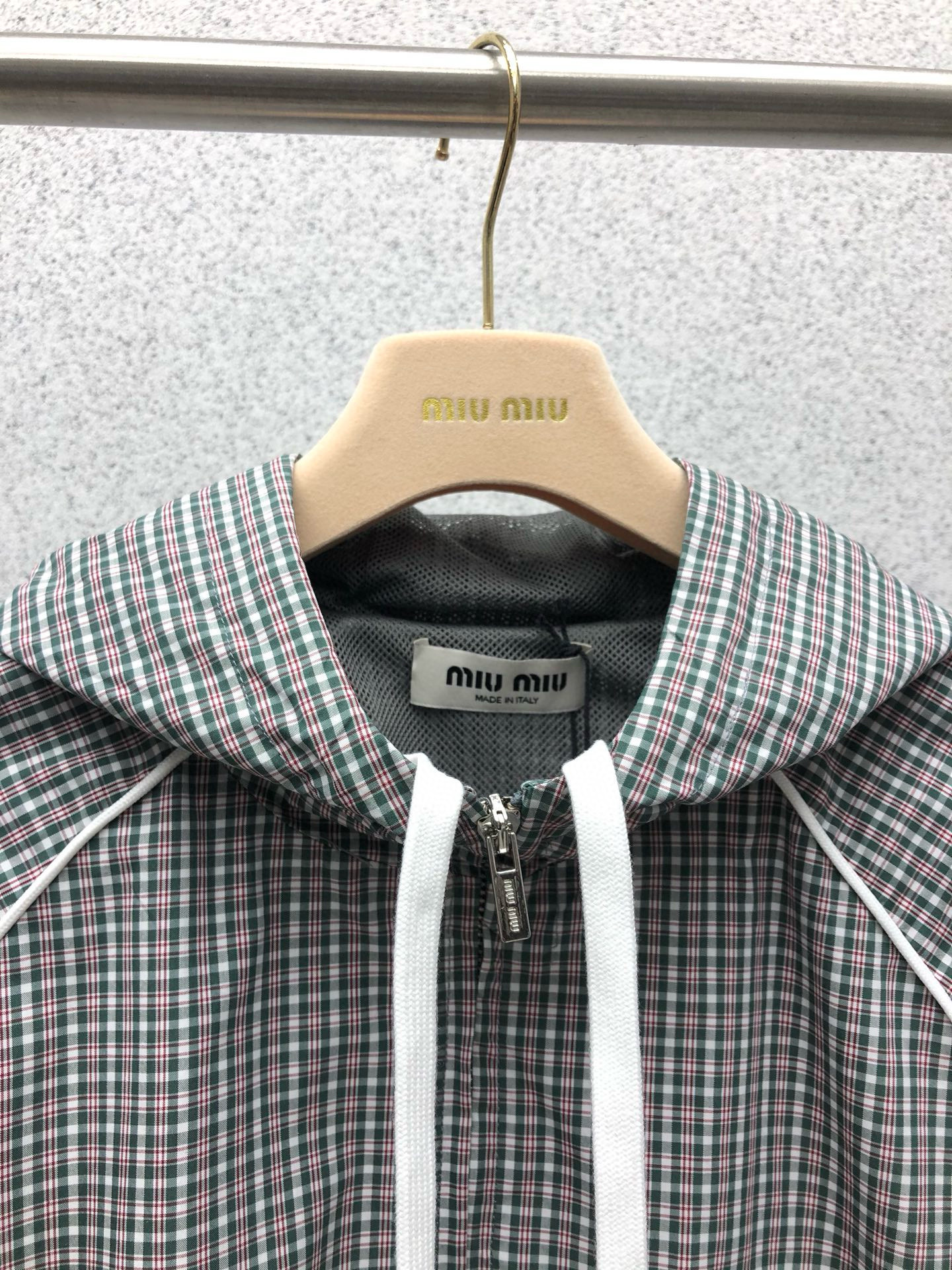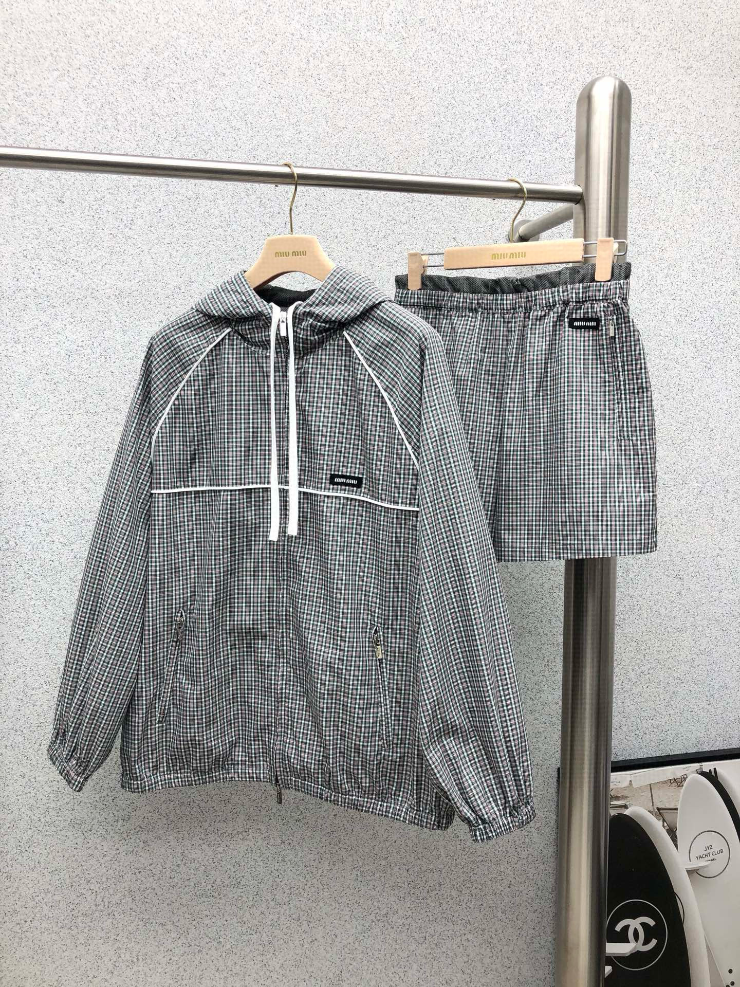 NIGO MiuMiu Women's Spring/Autumn Checkered Print Hooded Zipper Long Sleeve Jacket and Casual Shorts Set Suit #nigo77383