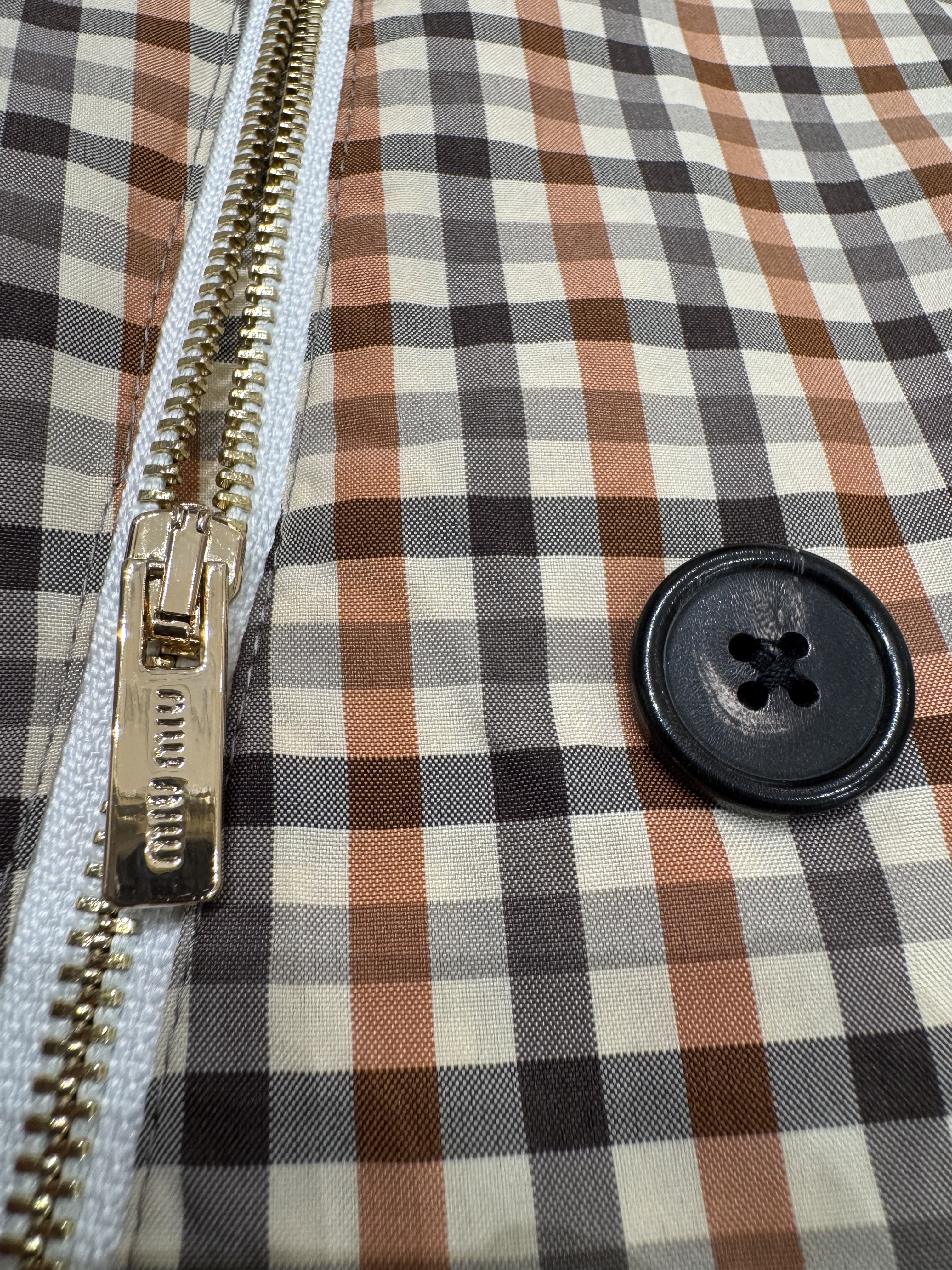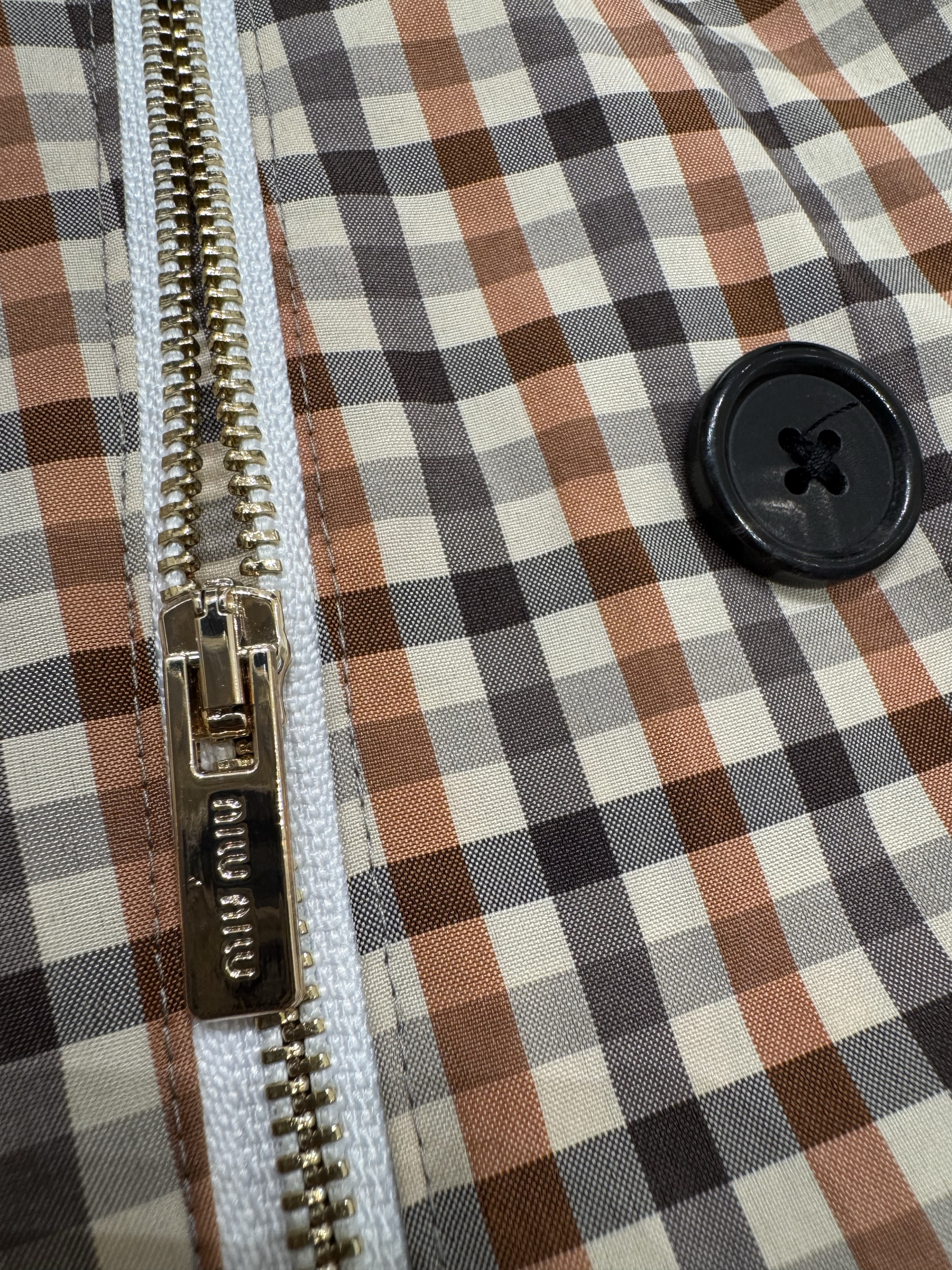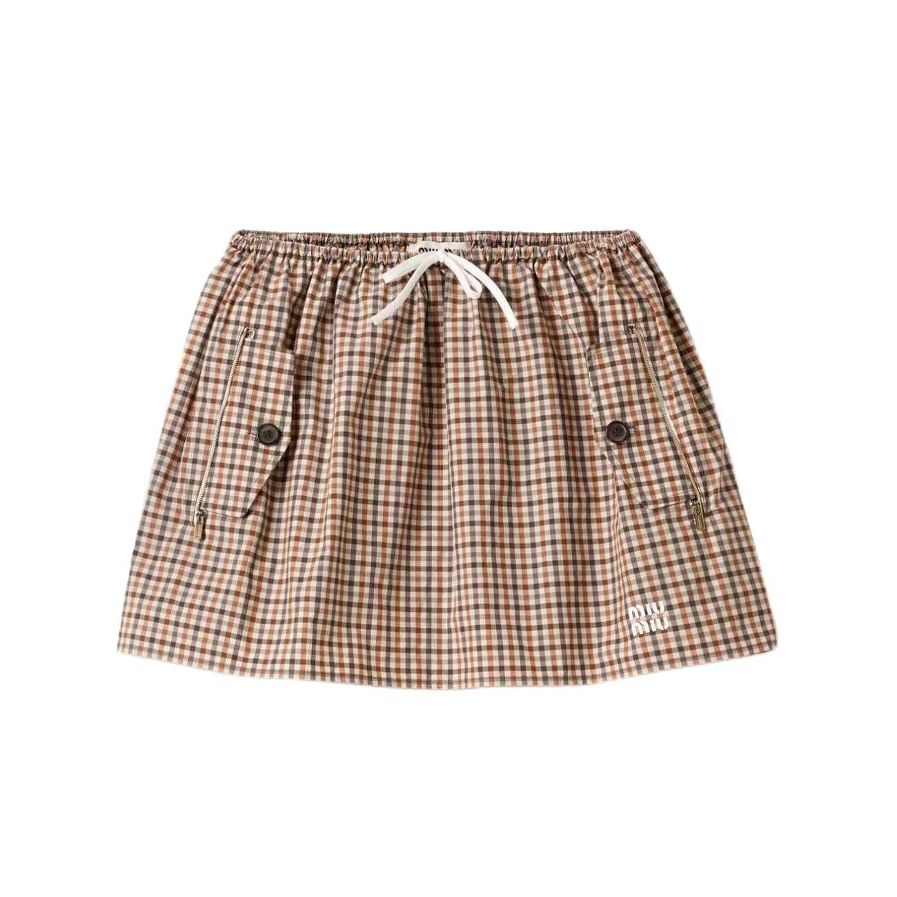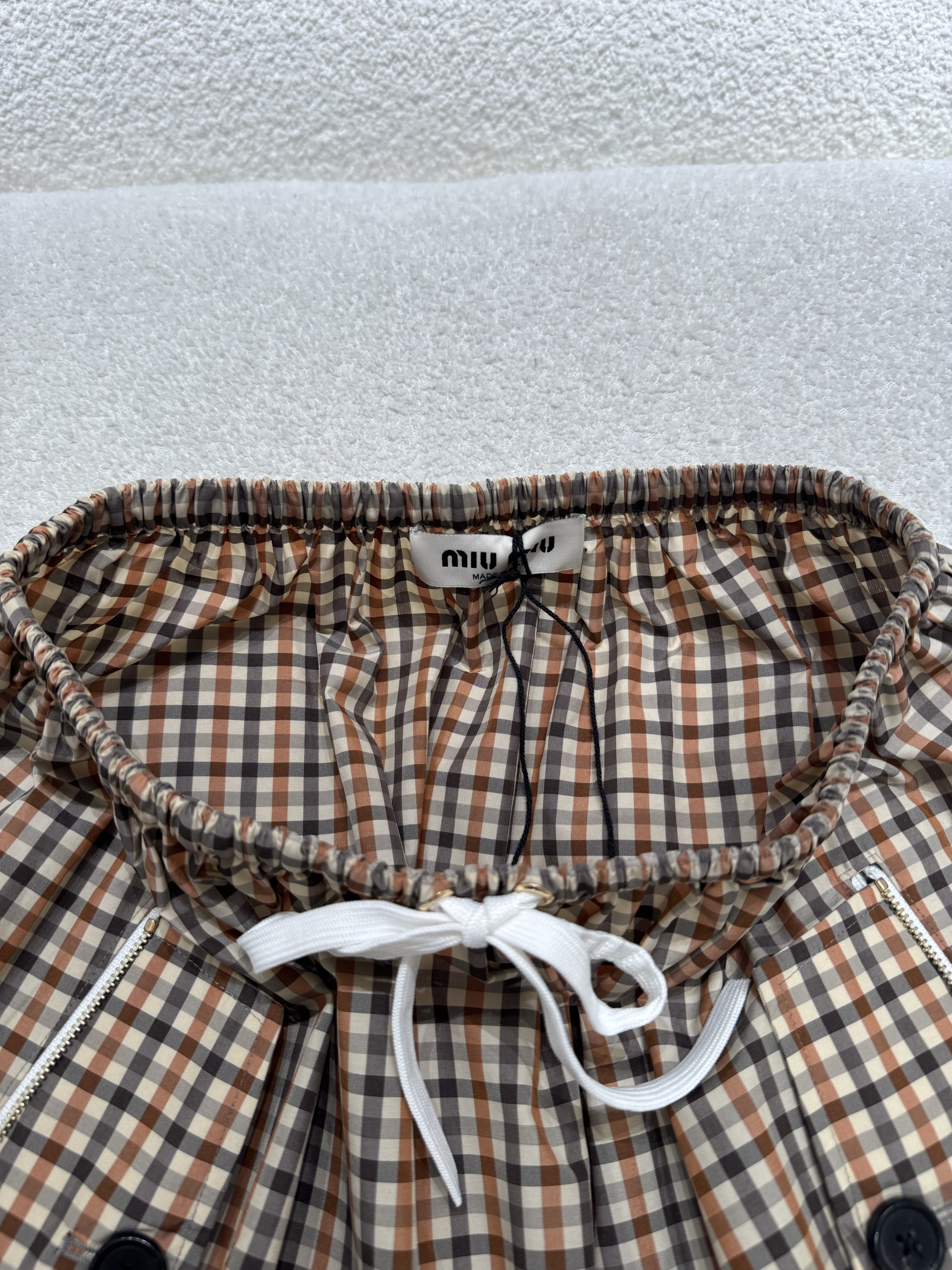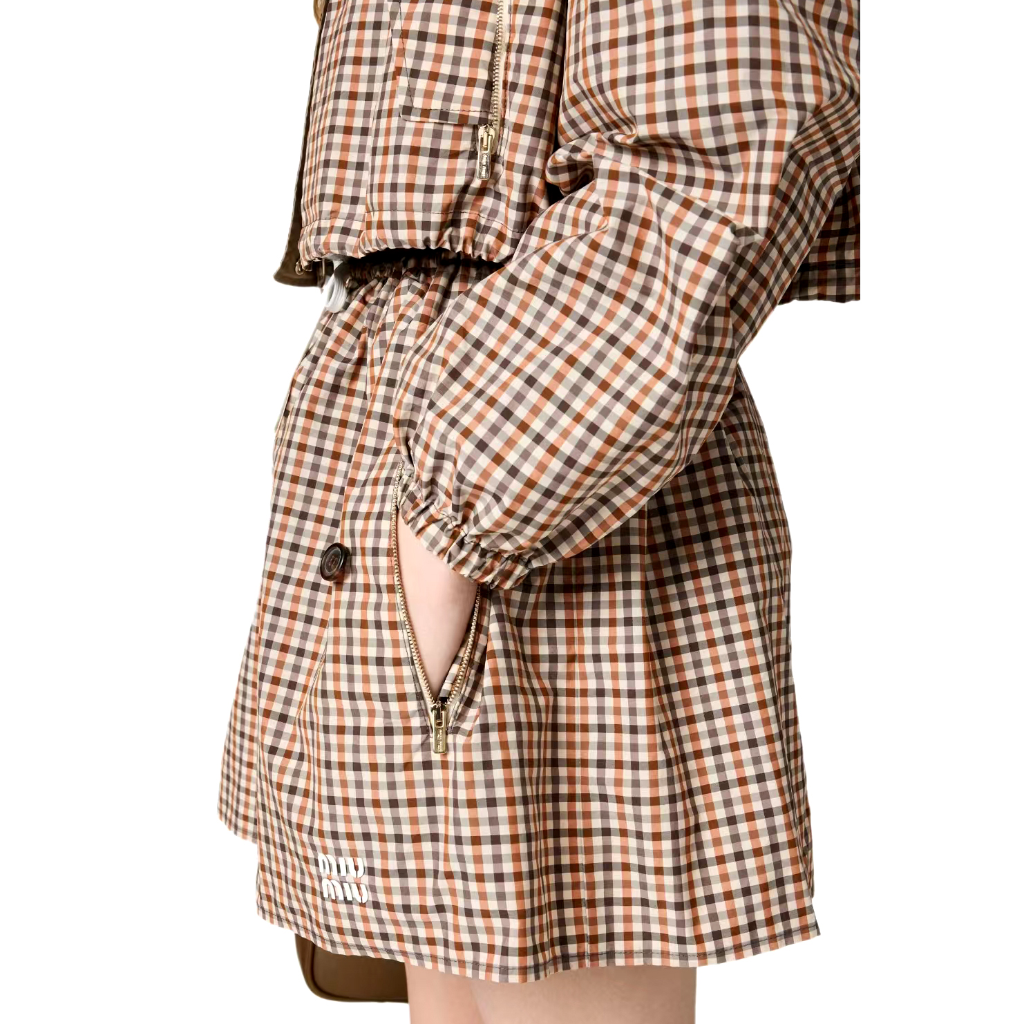 NIGO MiuMiu Women's Spring/Summer Fashion Casual Hooded Zipper Waist Elastic Checkered Jacket Waist Elastic Drawstring Checkered Casual Short Skirt Suit Set #nigo79158