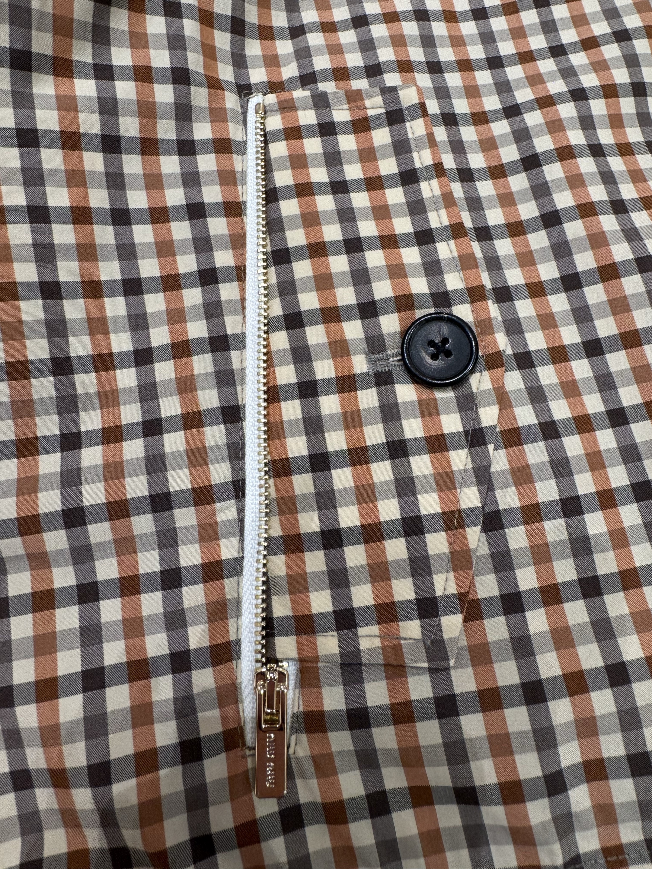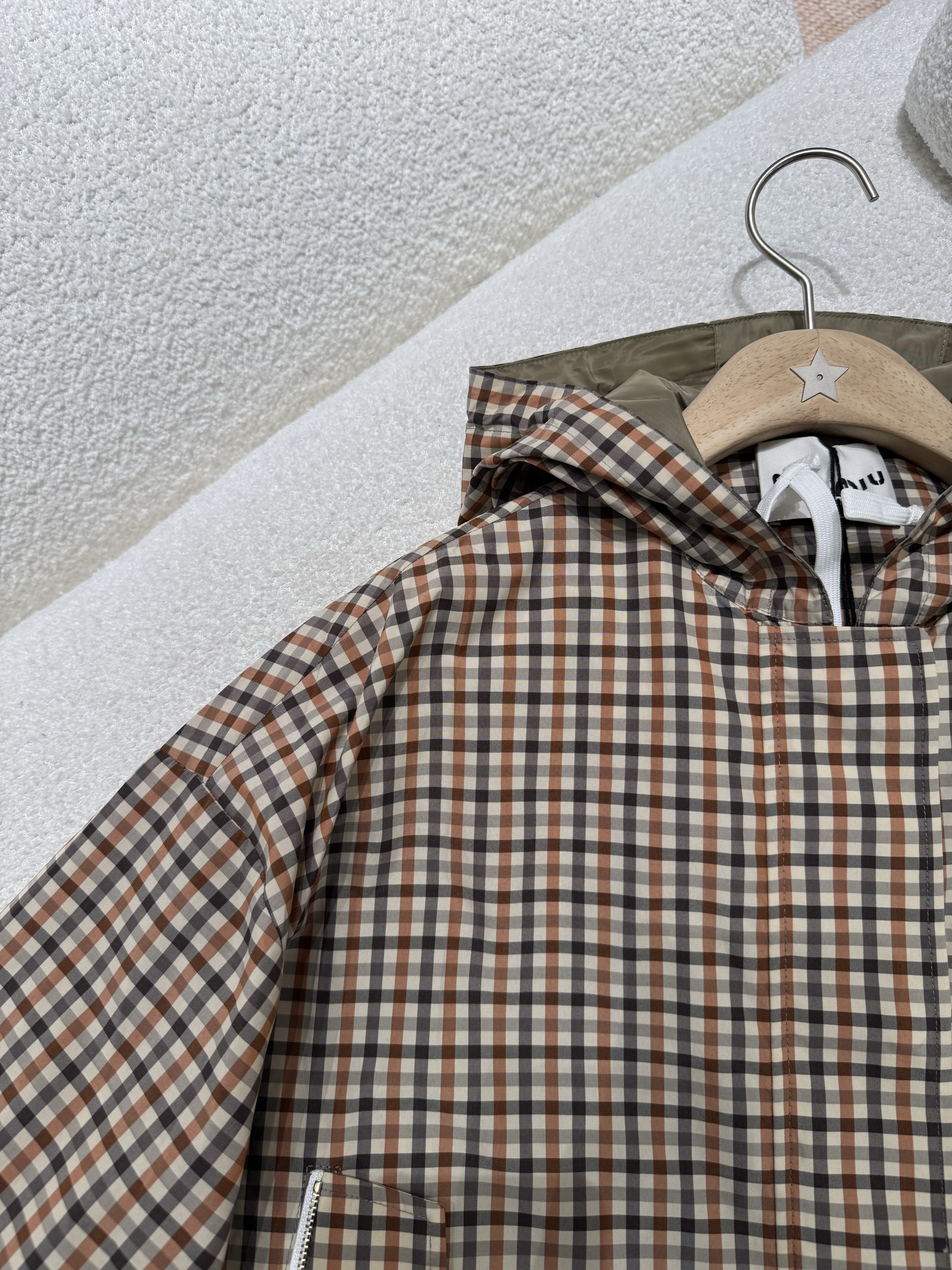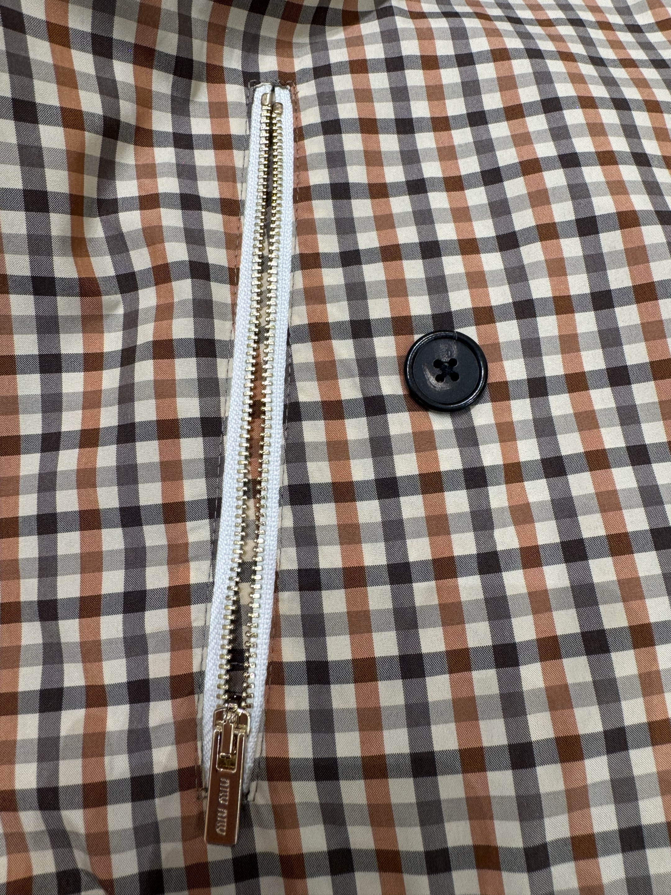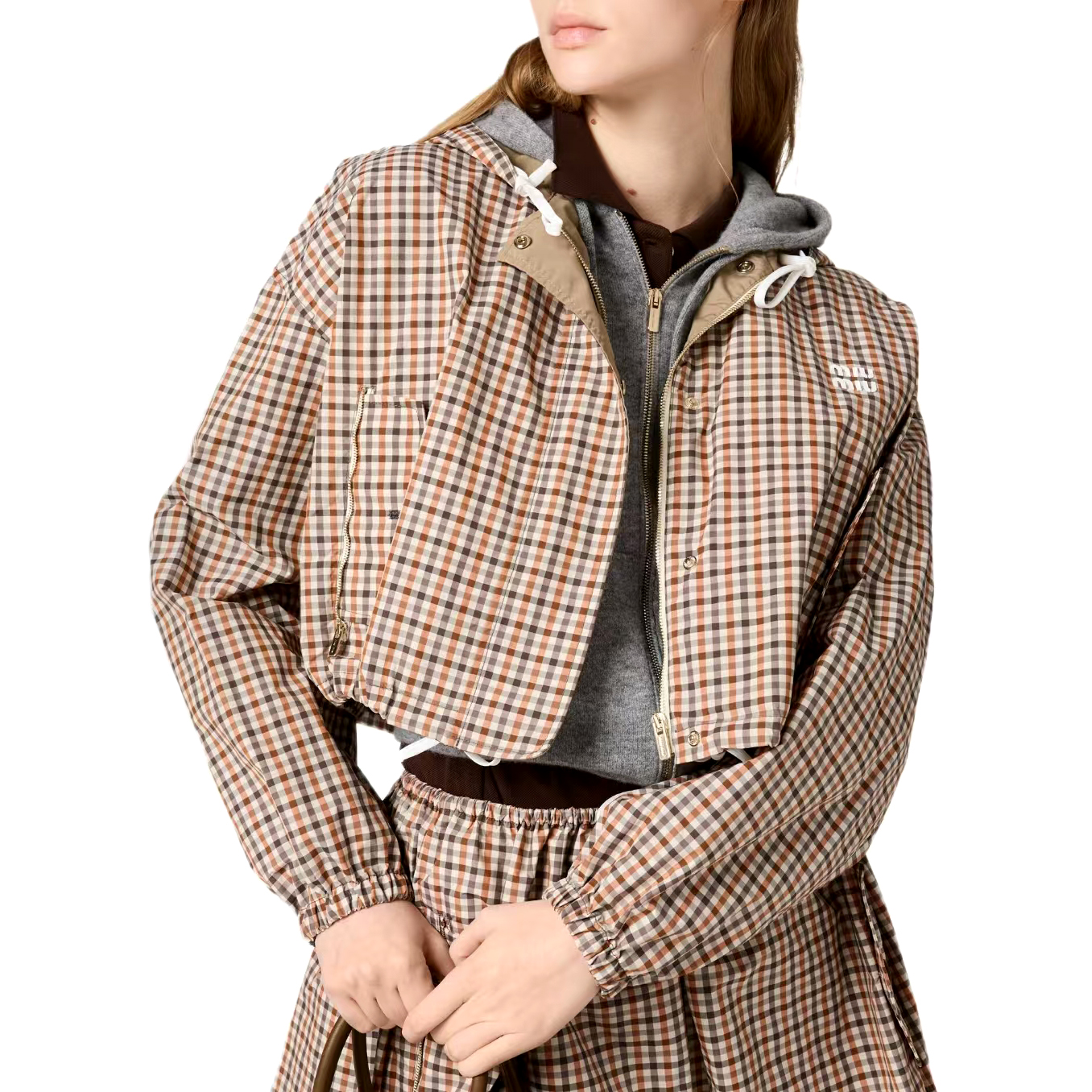 NIGO MiuMiu Women's Spring/Summer Fashion Casual Hooded Zipper Waist Elastic Checkered Jacket Waist Elastic Drawstring Checkered Casual Short Skirt Suit Set #nigo79158