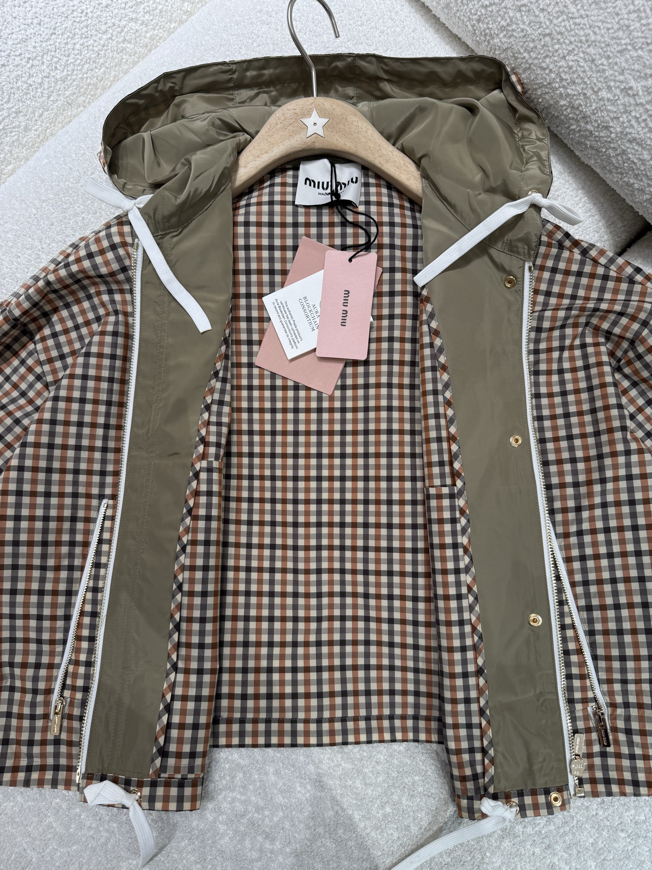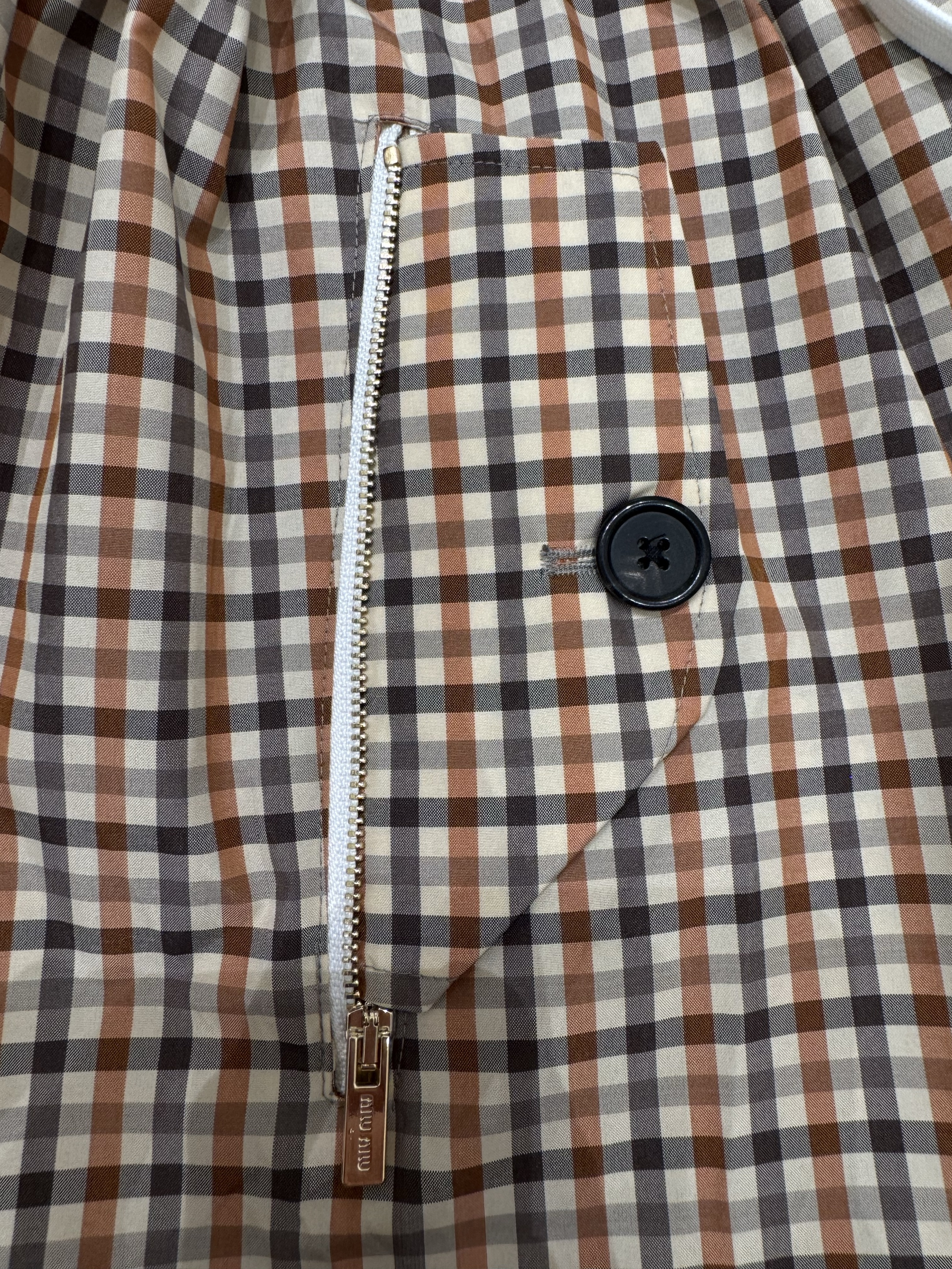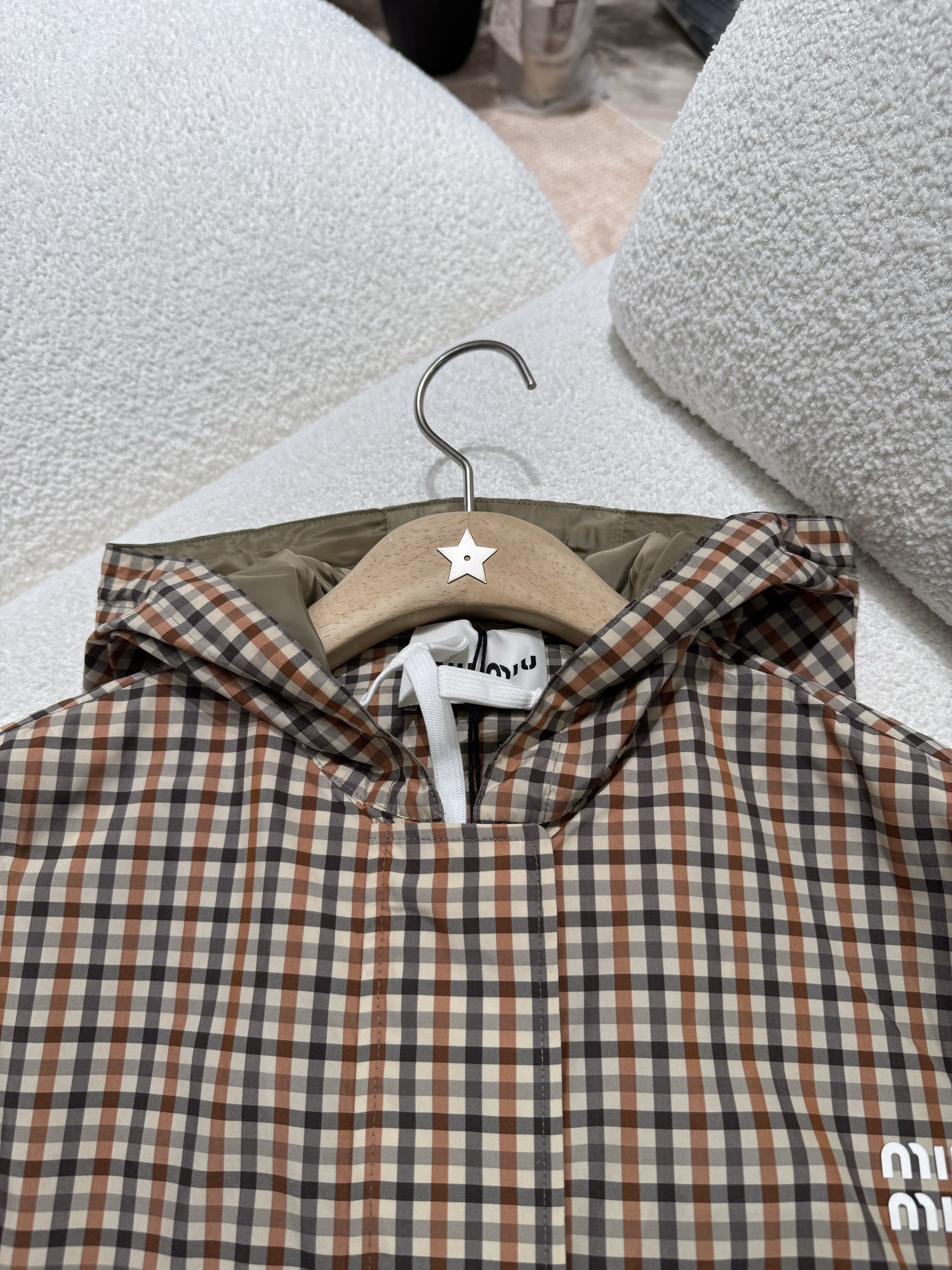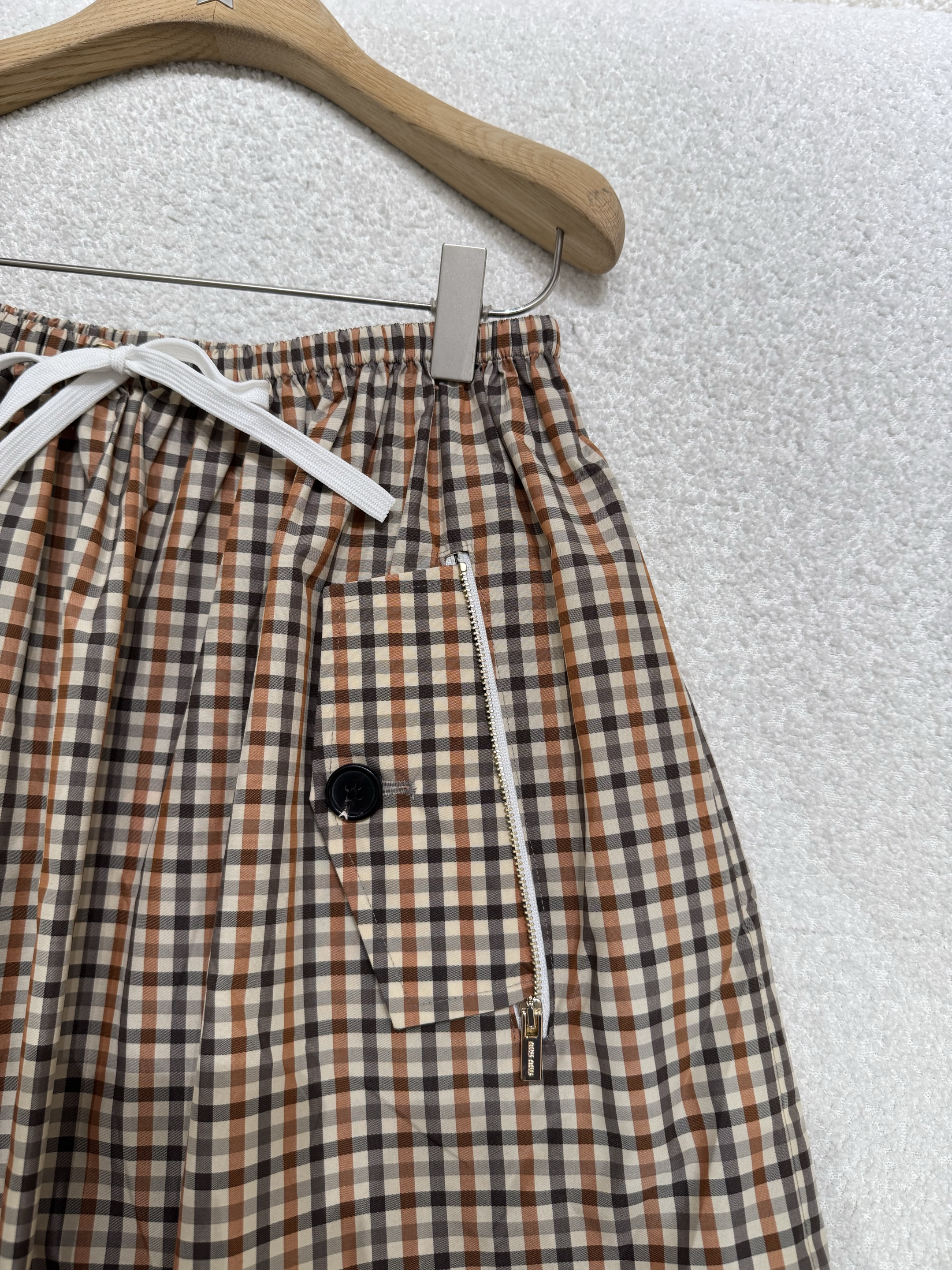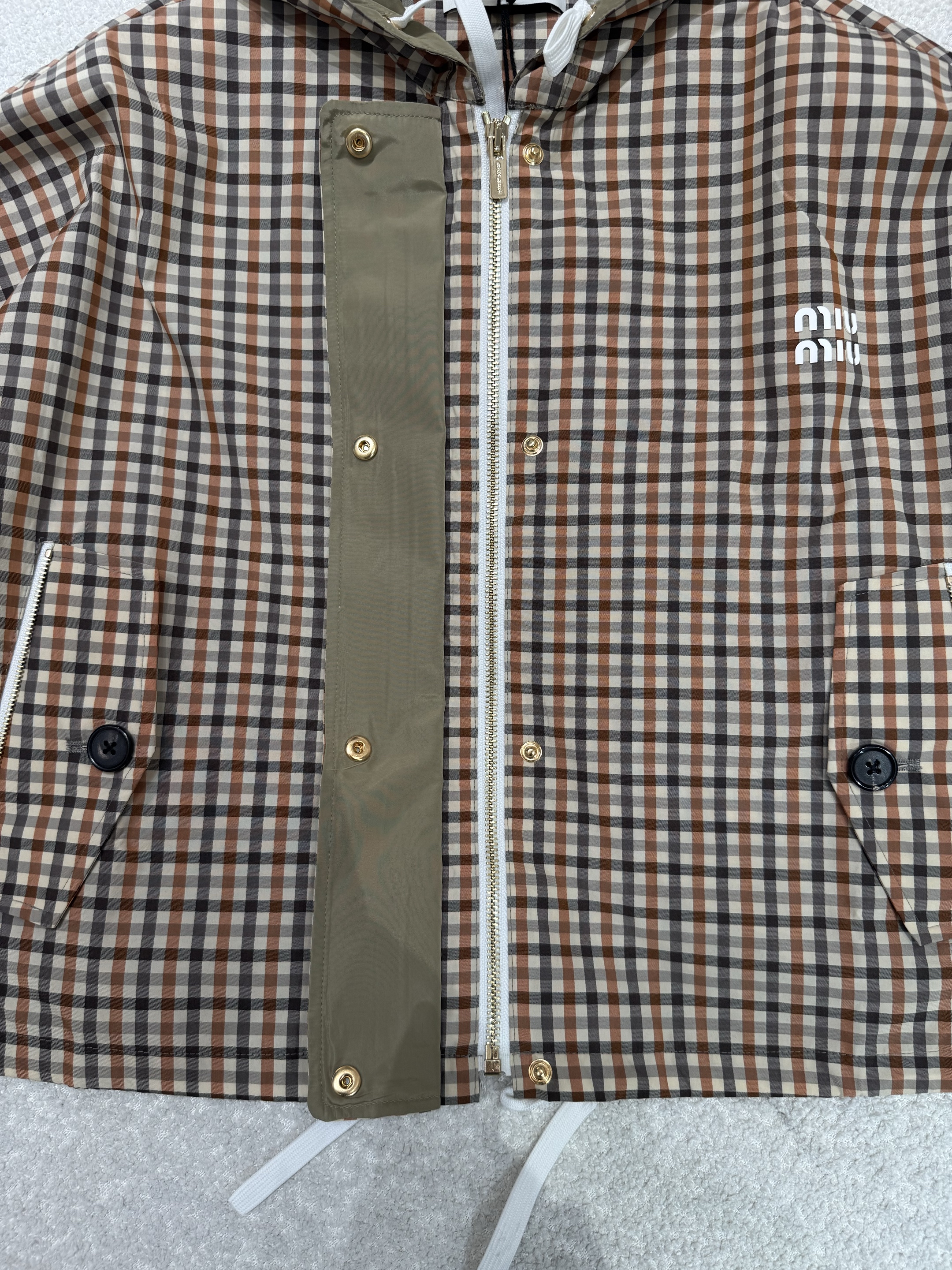 NIGO MiuMiu Women's Spring/Summer Fashion Casual Hooded Zipper Waist Elastic Checkered Jacket Waist Elastic Drawstring Checkered Casual Short Skirt Suit Set #nigo79158