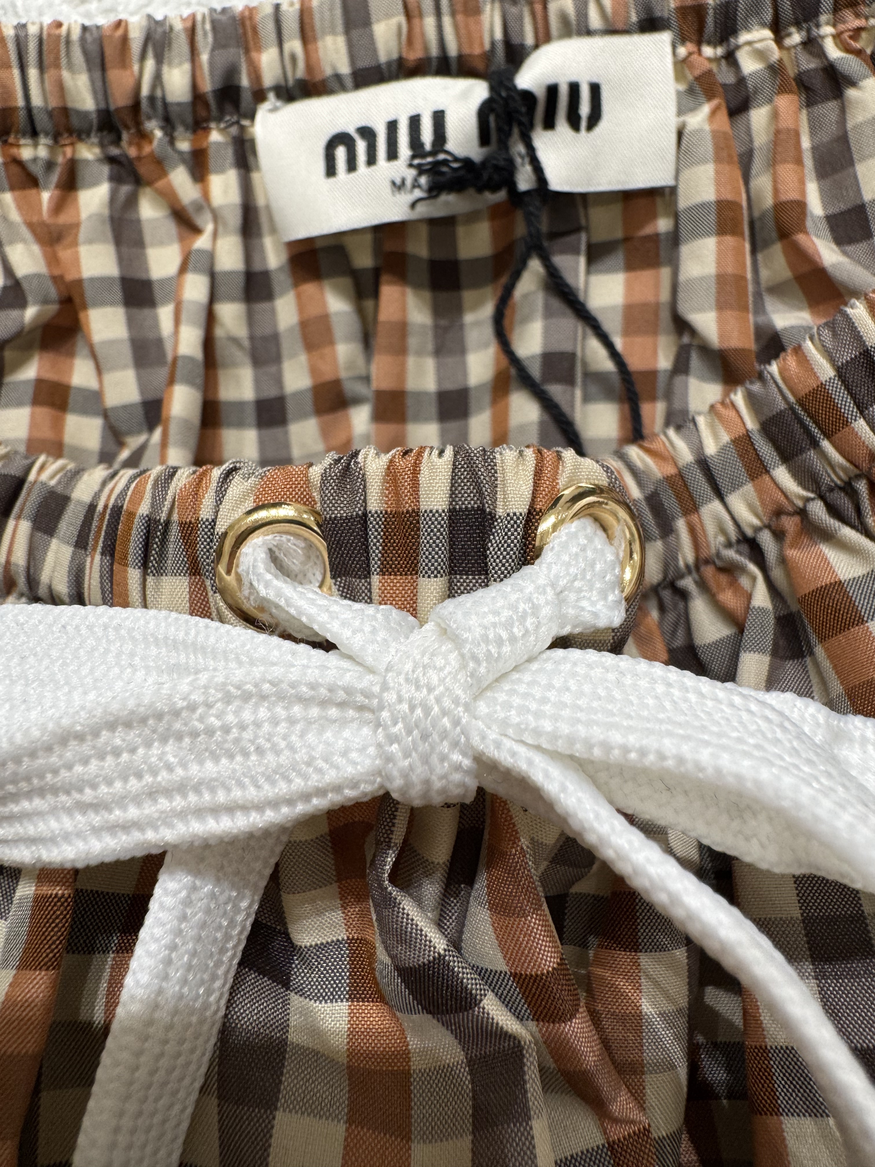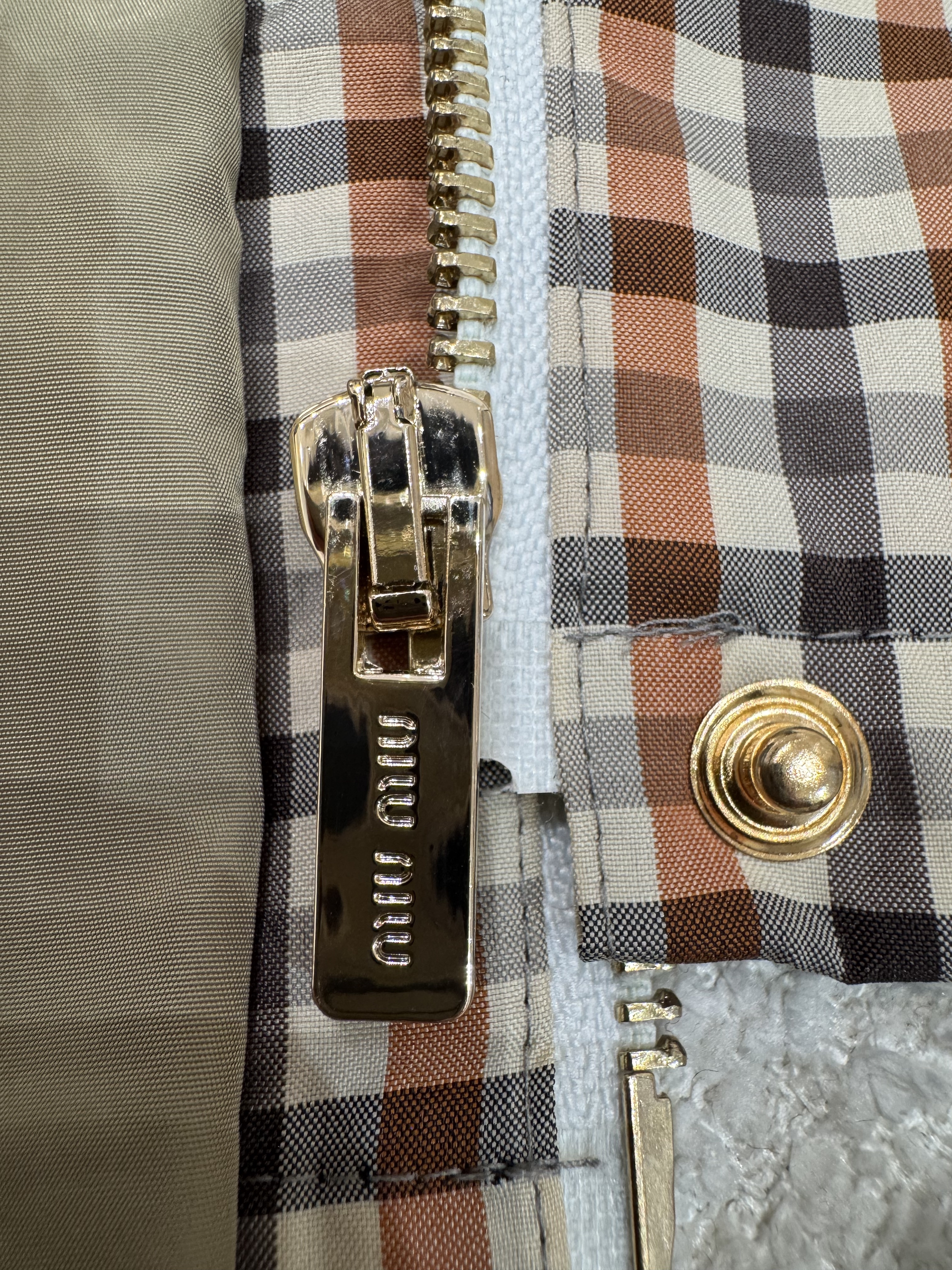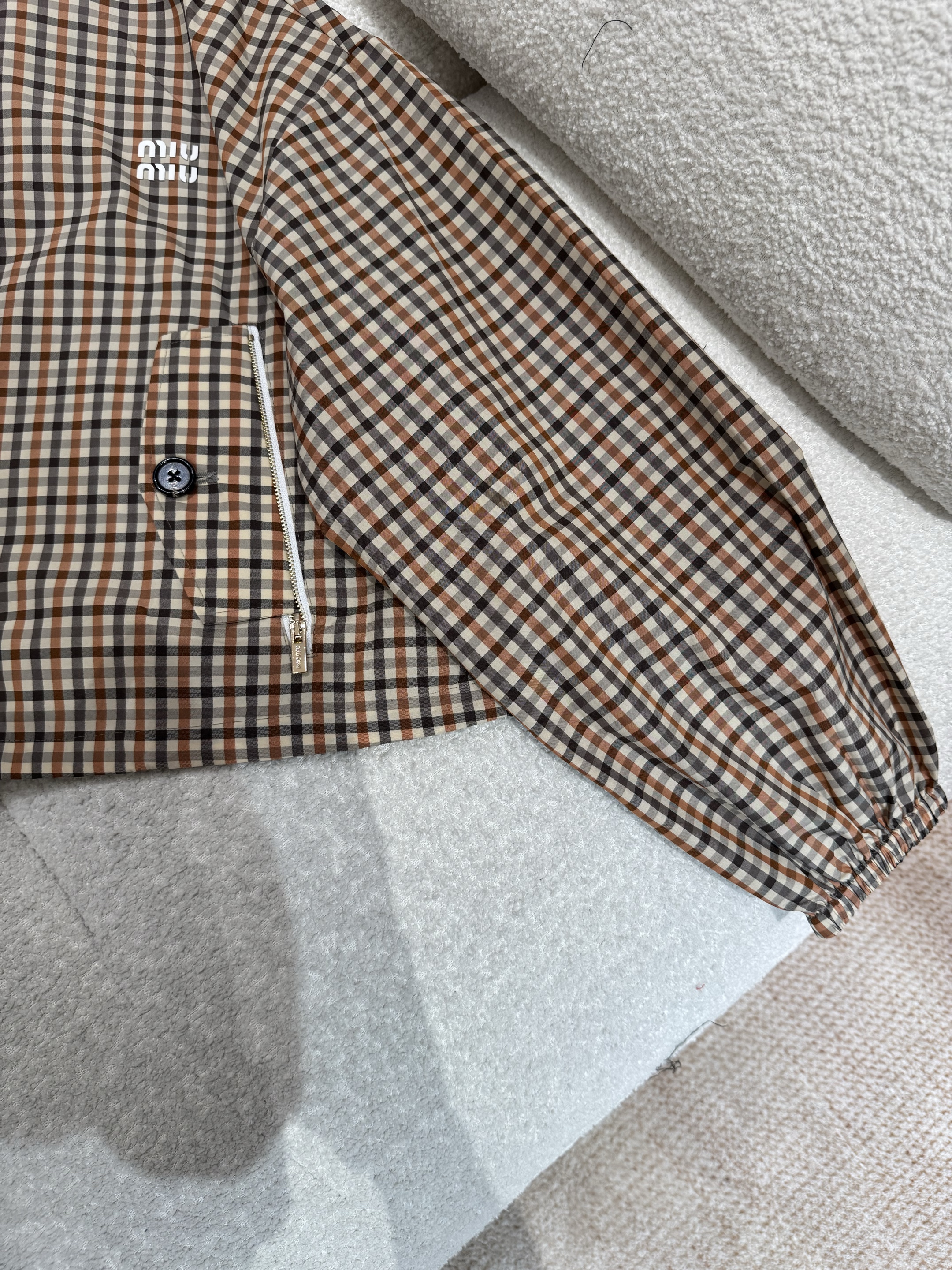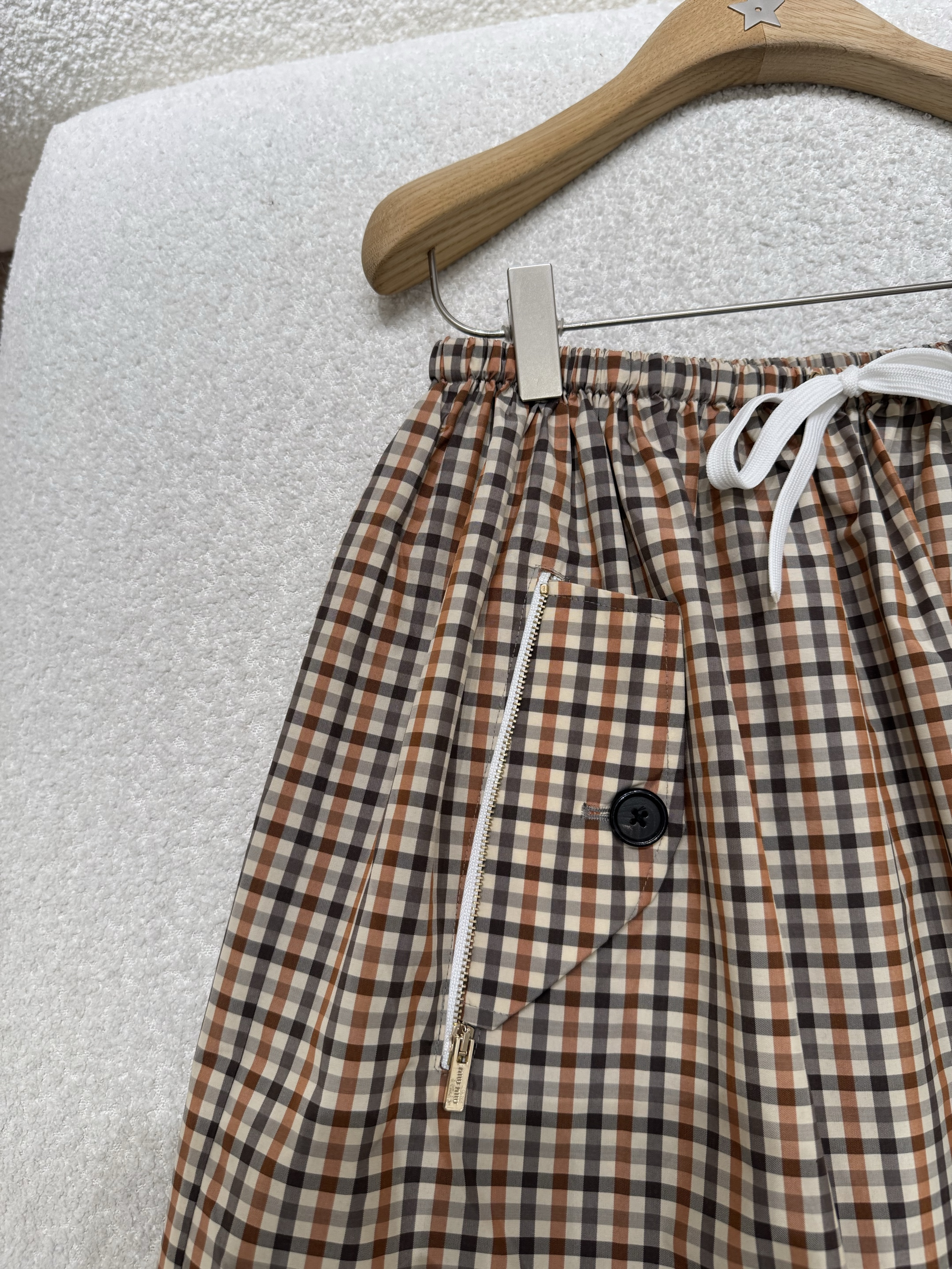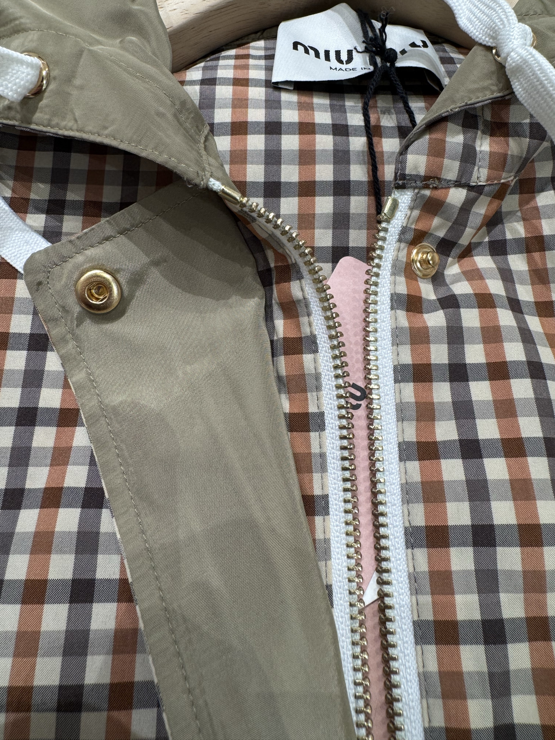 NIGO MiuMiu Women's Spring/Summer Fashion Casual Hooded Zipper Waist Elastic Checkered Jacket Waist Elastic Drawstring Checkered Casual Short Skirt Suit Set #nigo79158