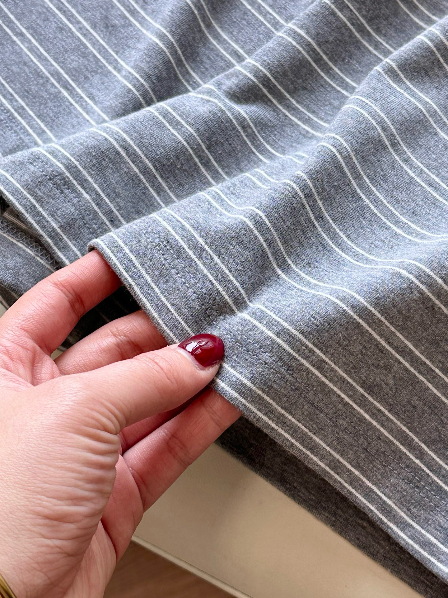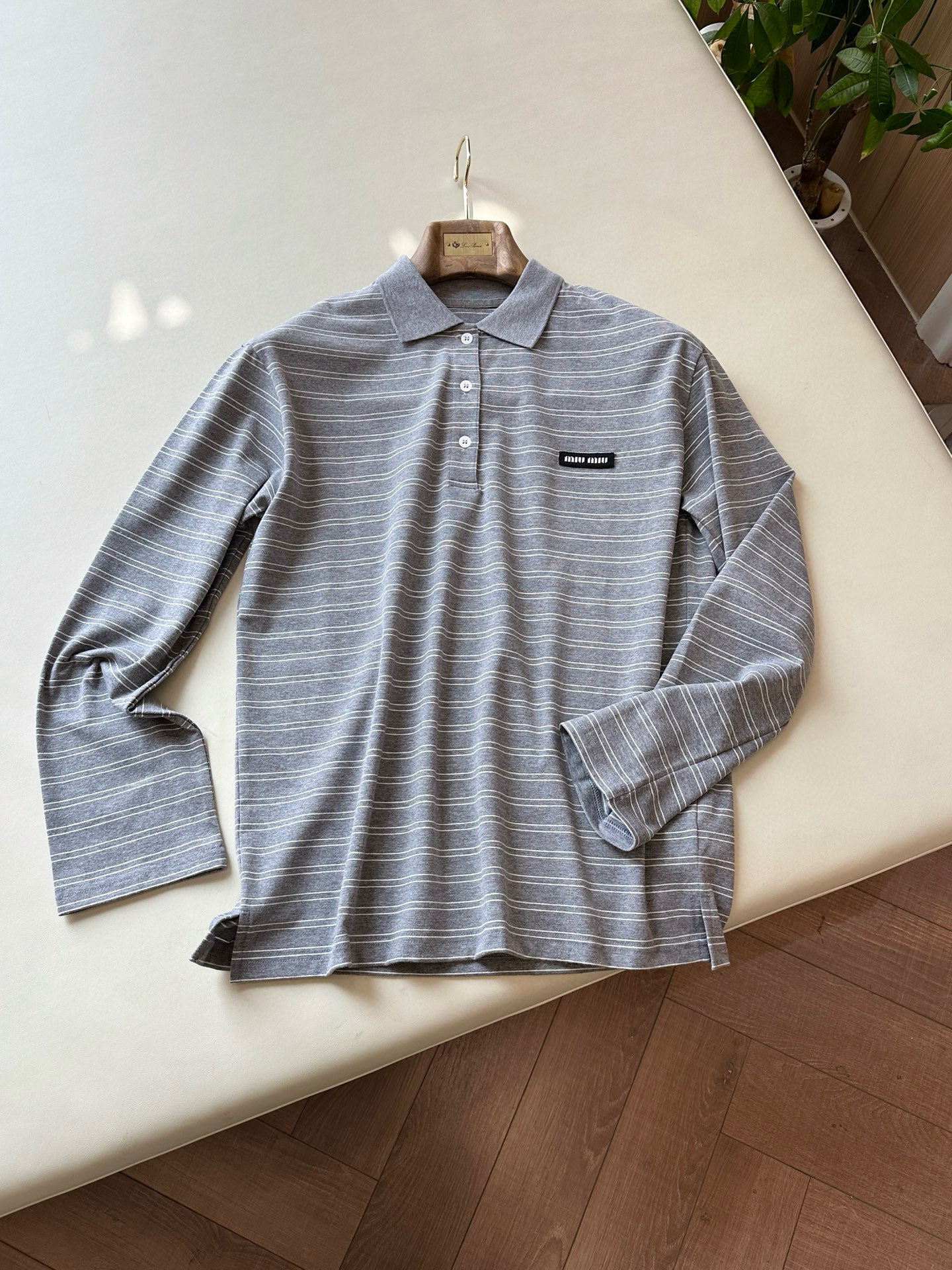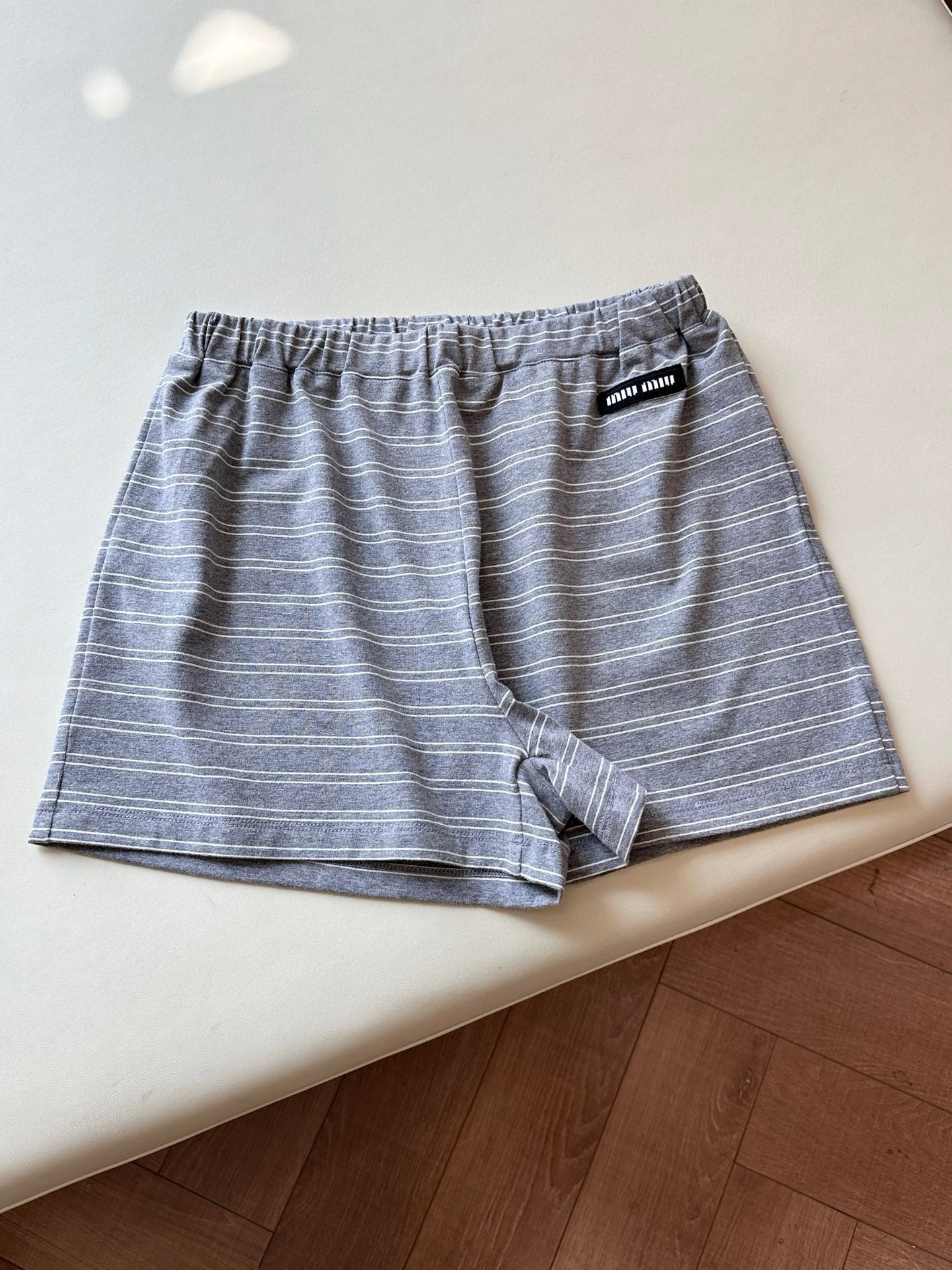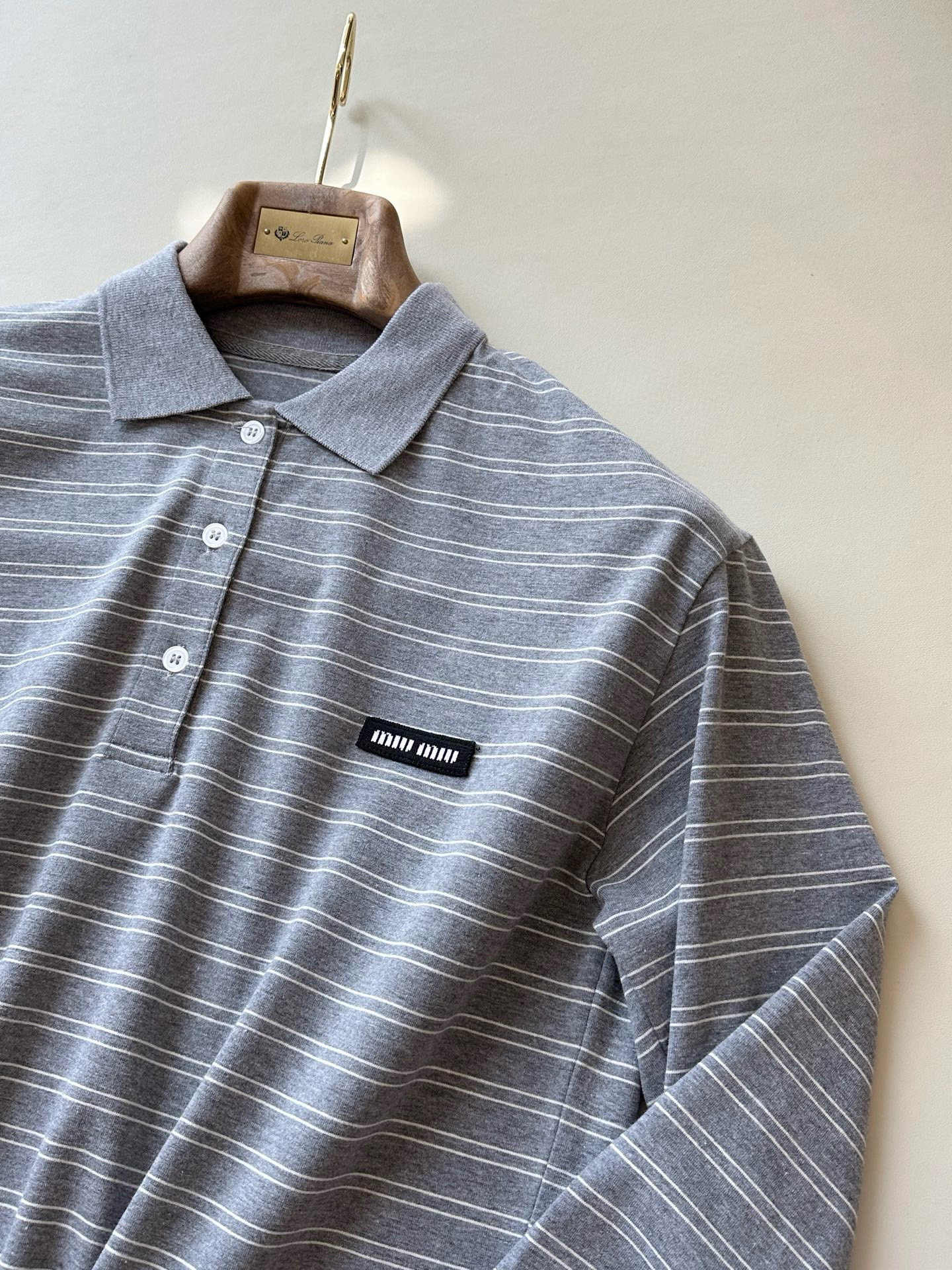 NIGO MiuMiu Women's Spring Summer Striped Printed Polo Neck Long Sleeve T-Shirt Cotton Casual Shorts Set Suit #nigo76691