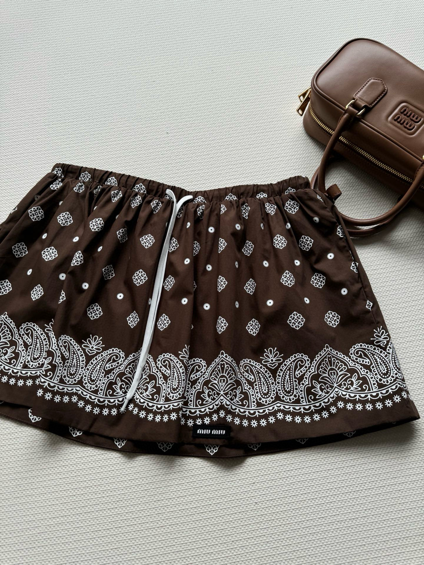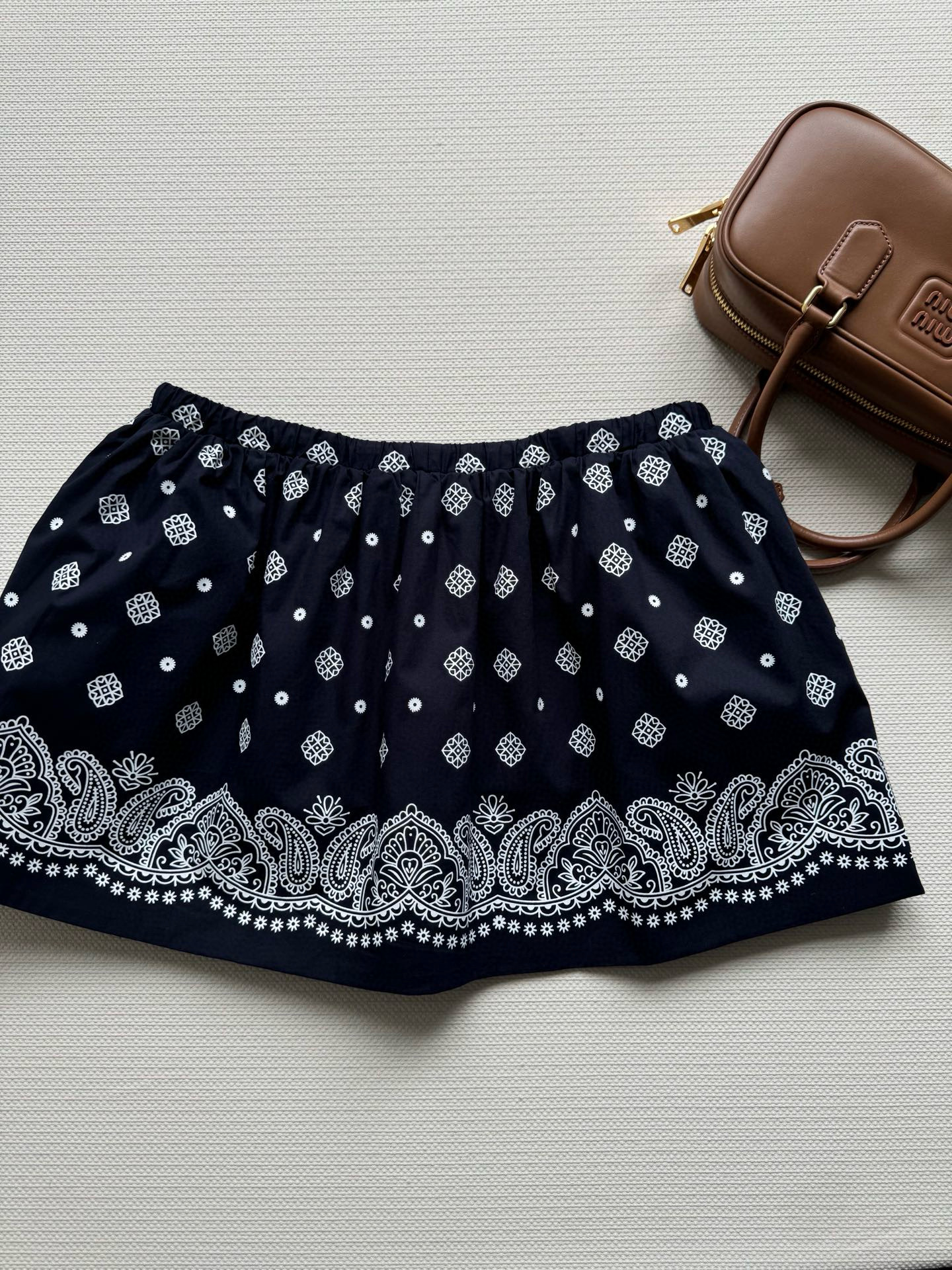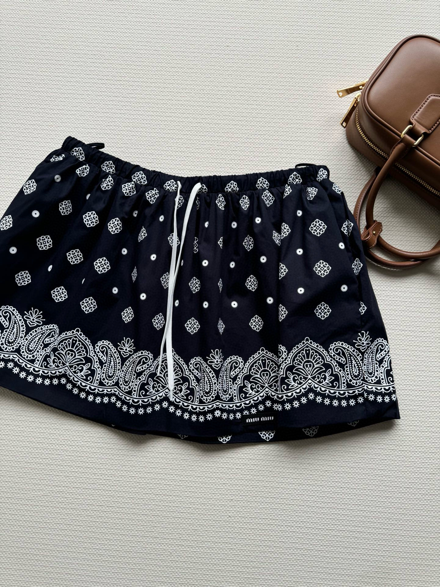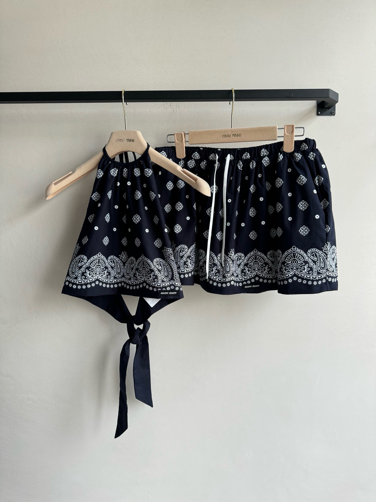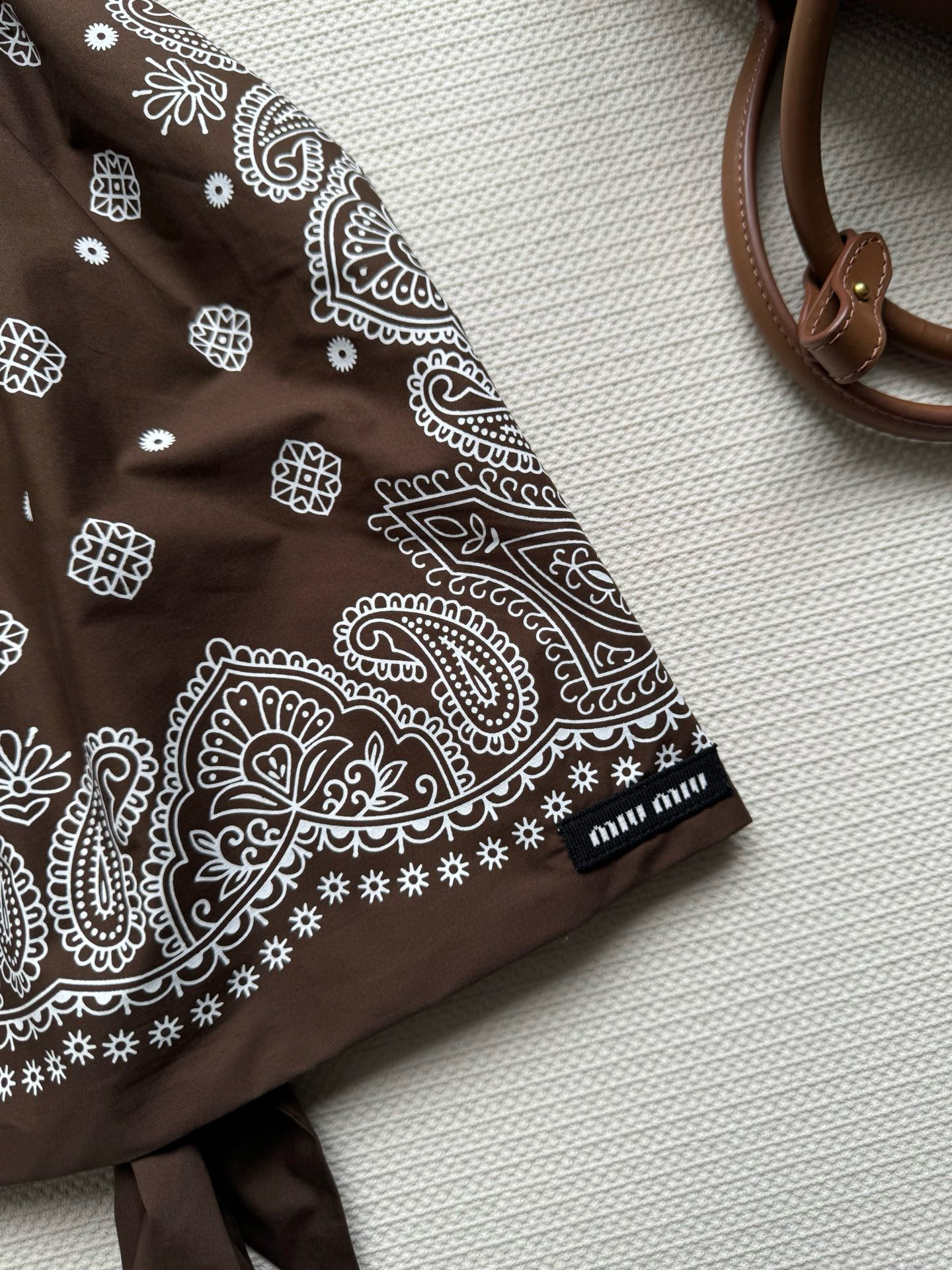 NIGO MiuMiu Women's Summer Floral Printed Pattern Cotton Sheath Tie Mini Casual Short Skirt Set Suit #nigo76736