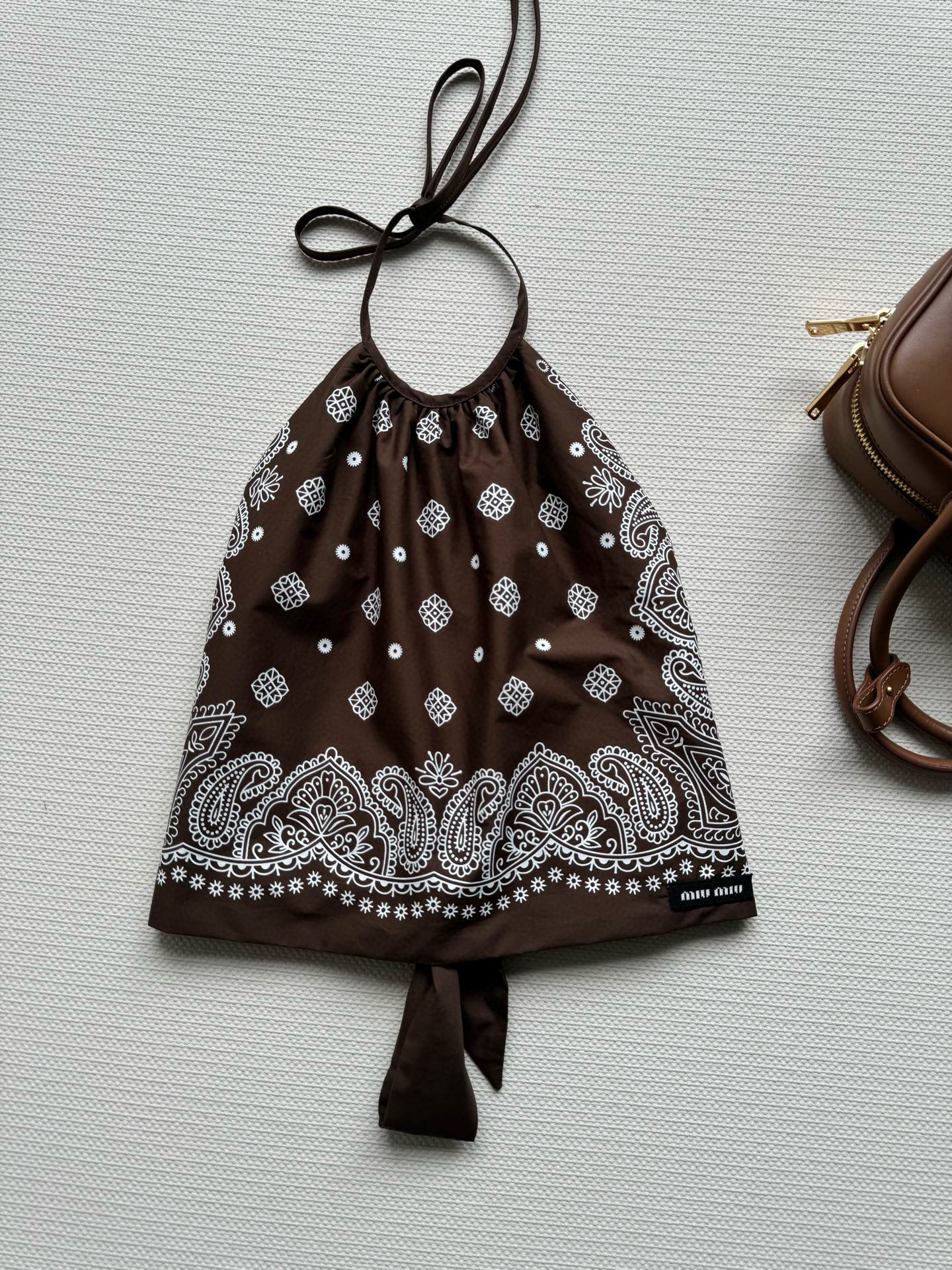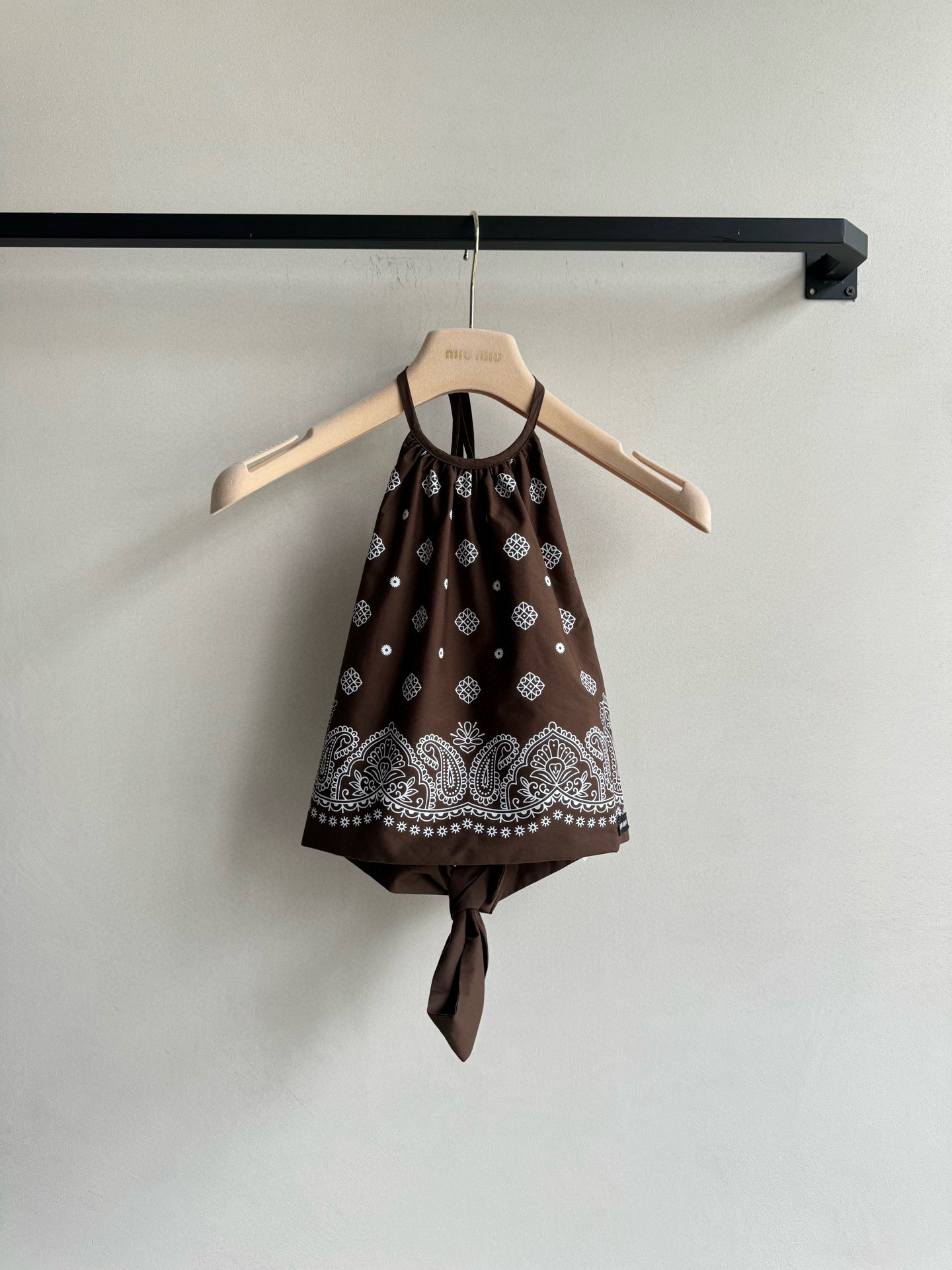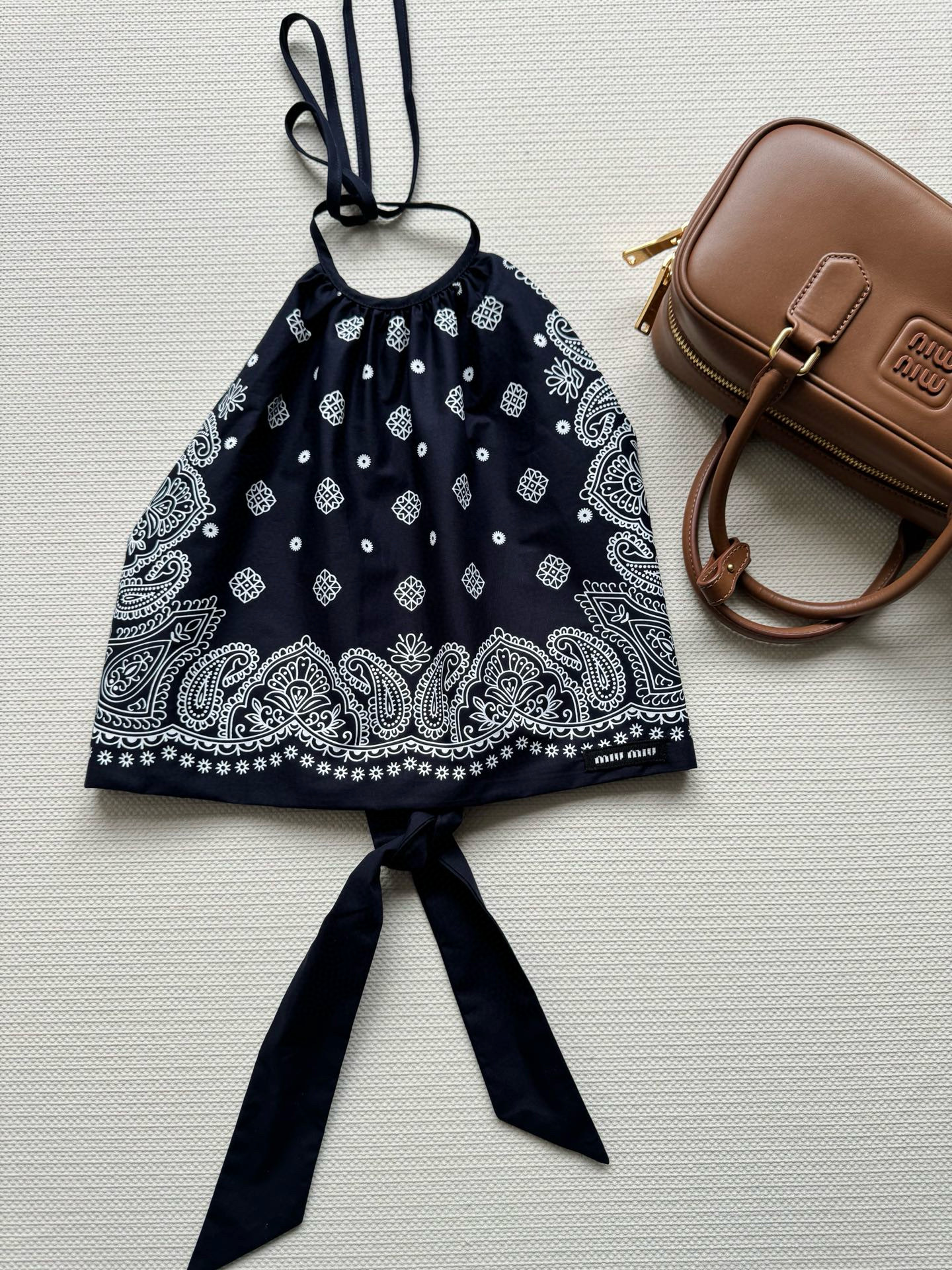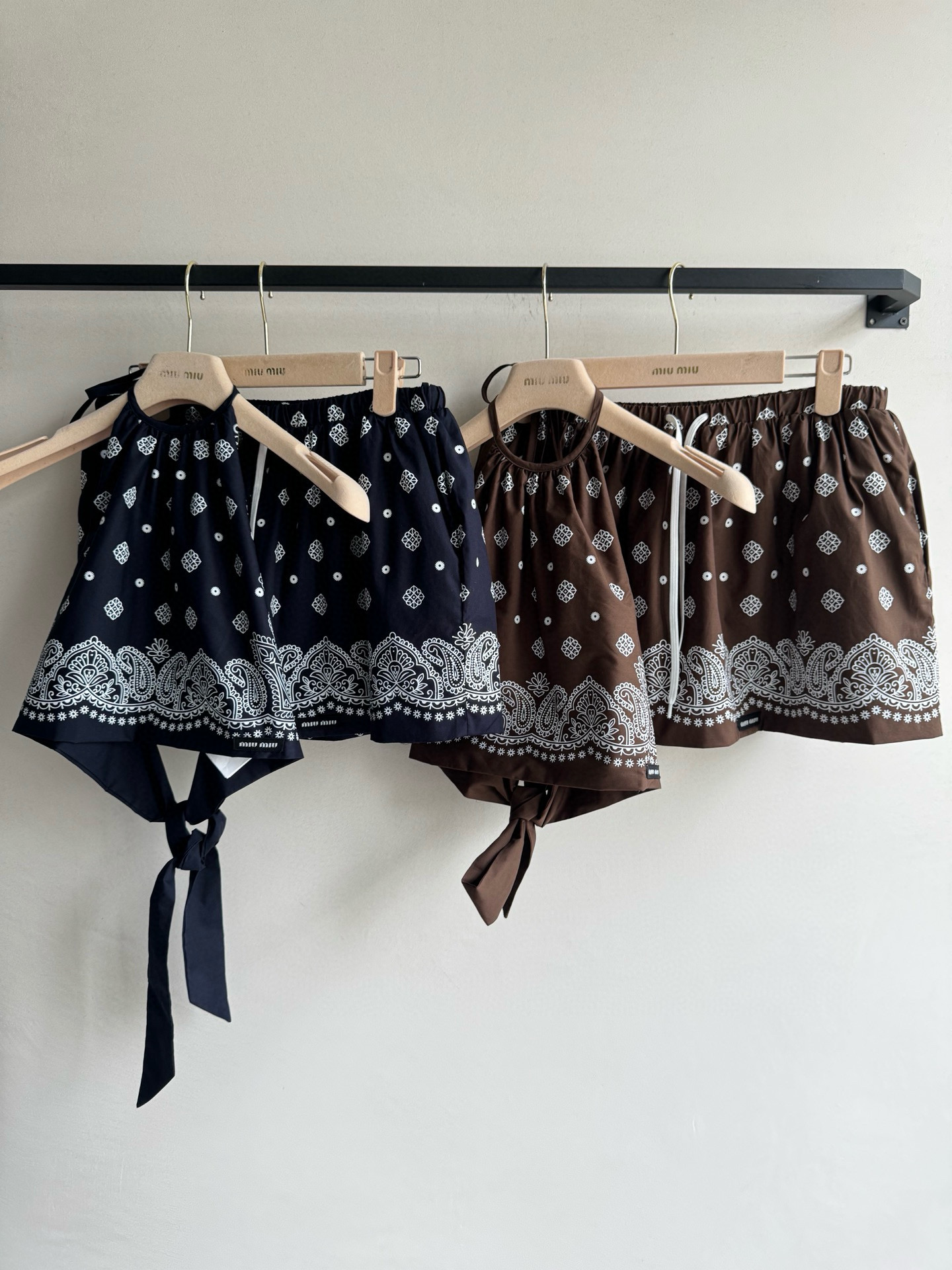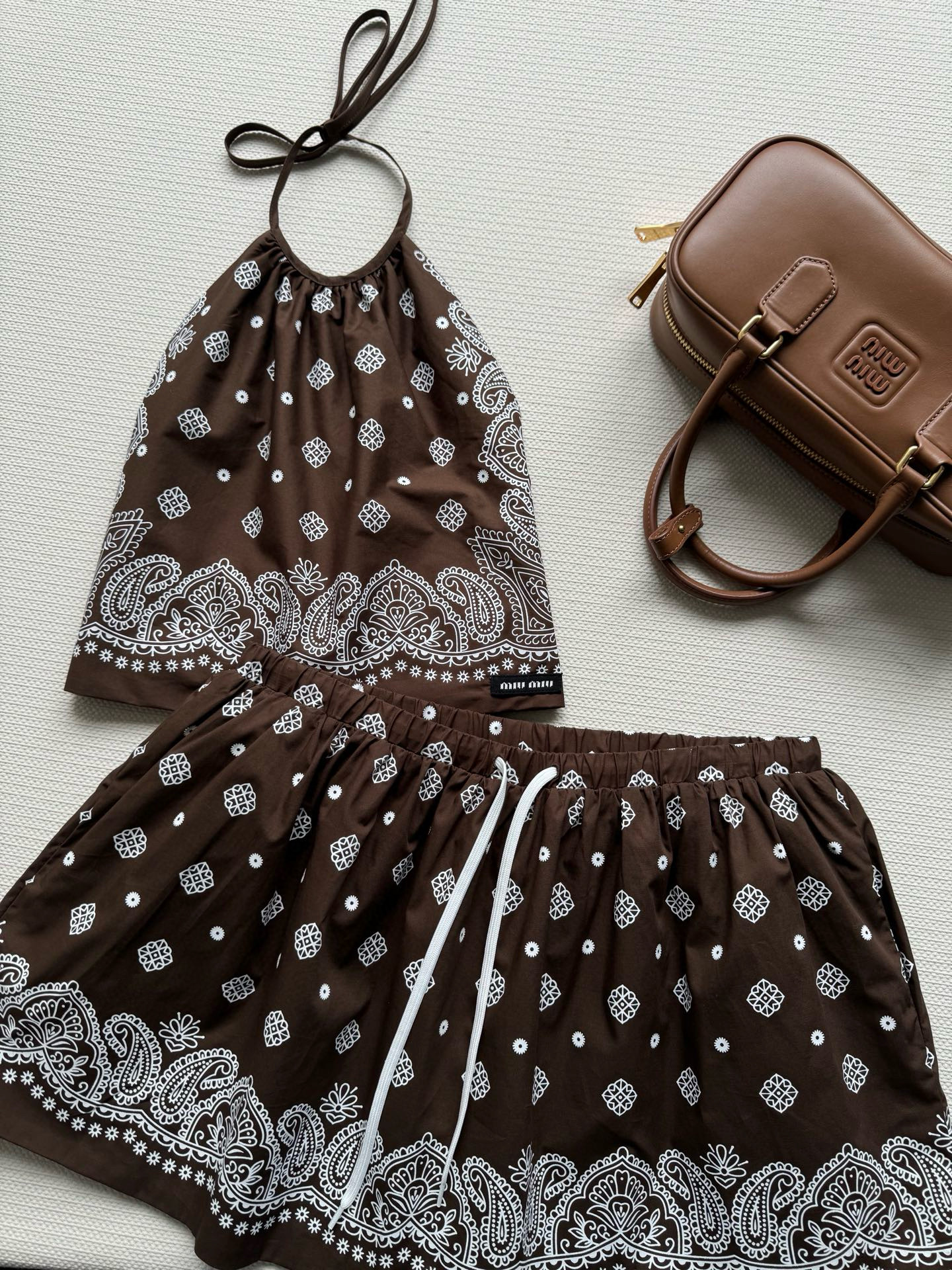 NIGO MiuMiu Women's Summer Floral Printed Pattern Cotton Sheath Tie Mini Casual Short Skirt Set Suit #nigo76736