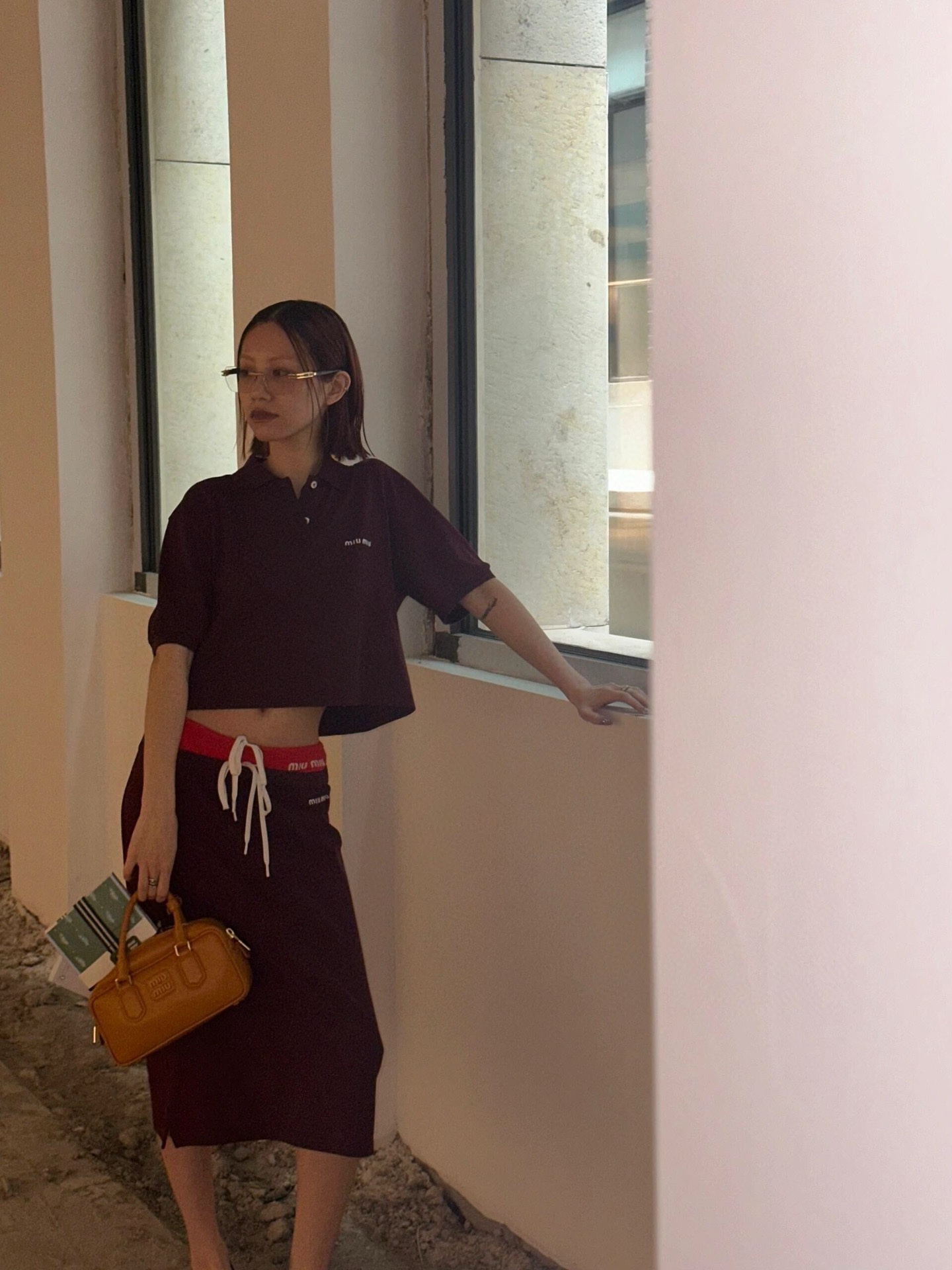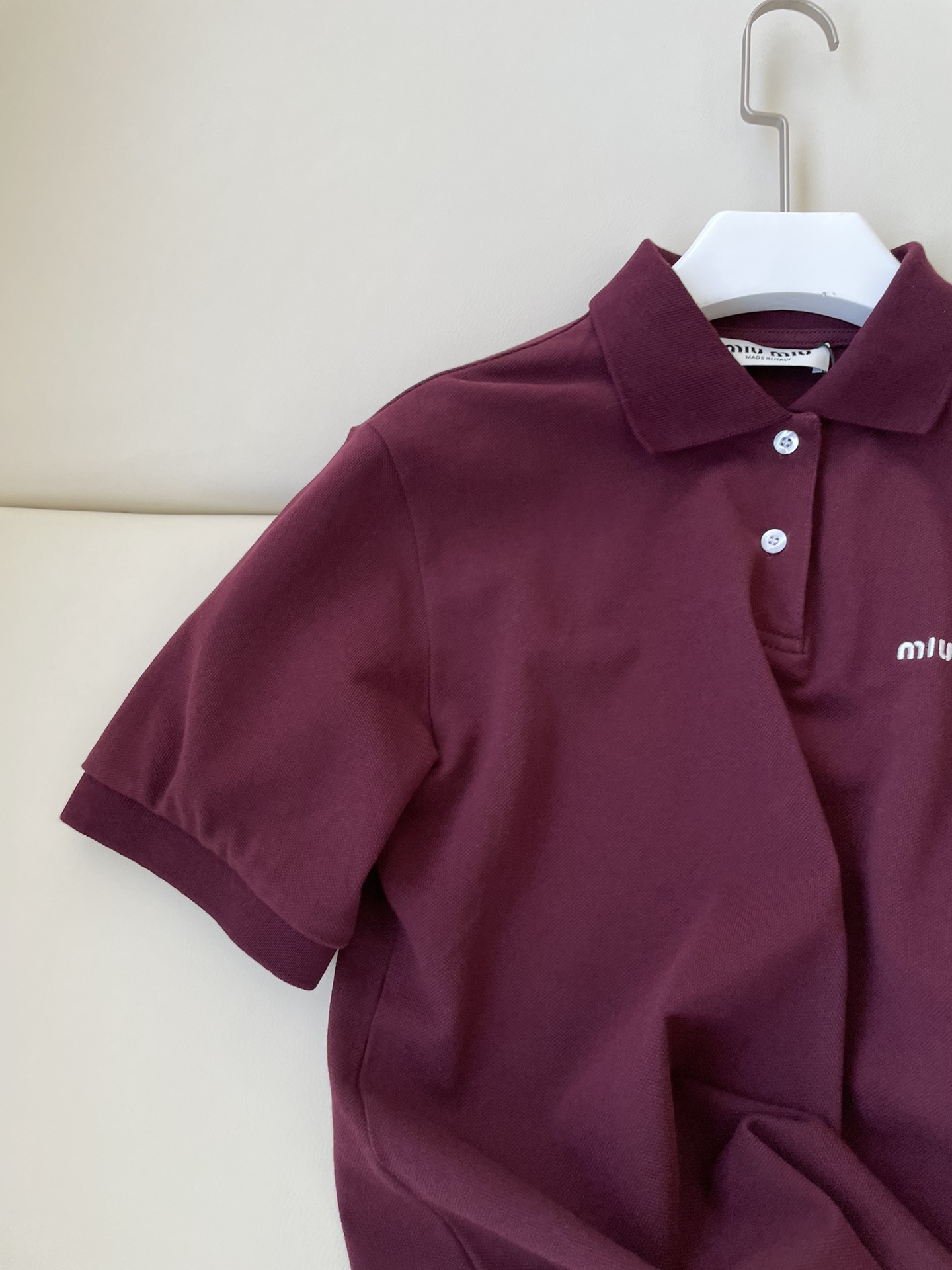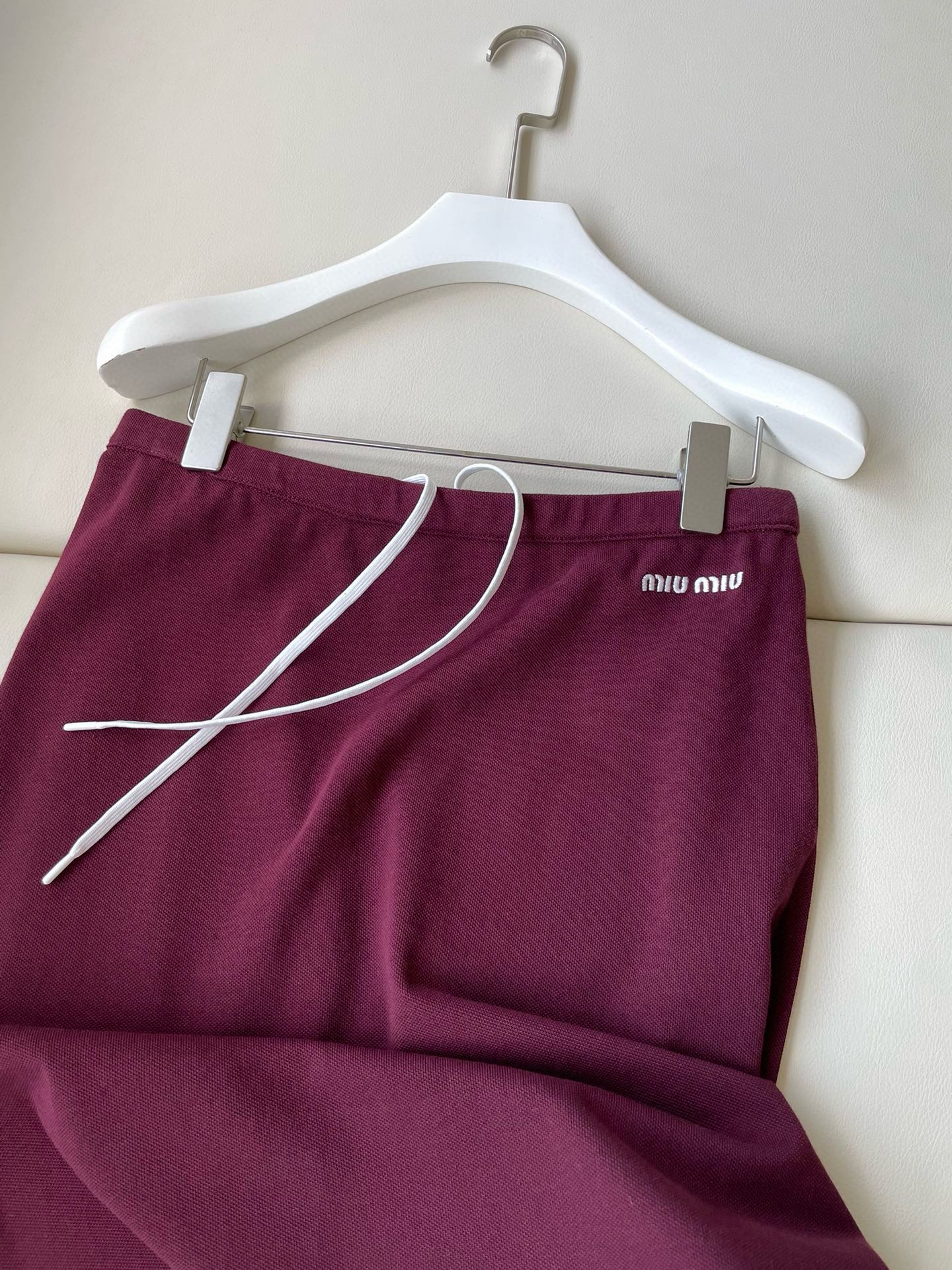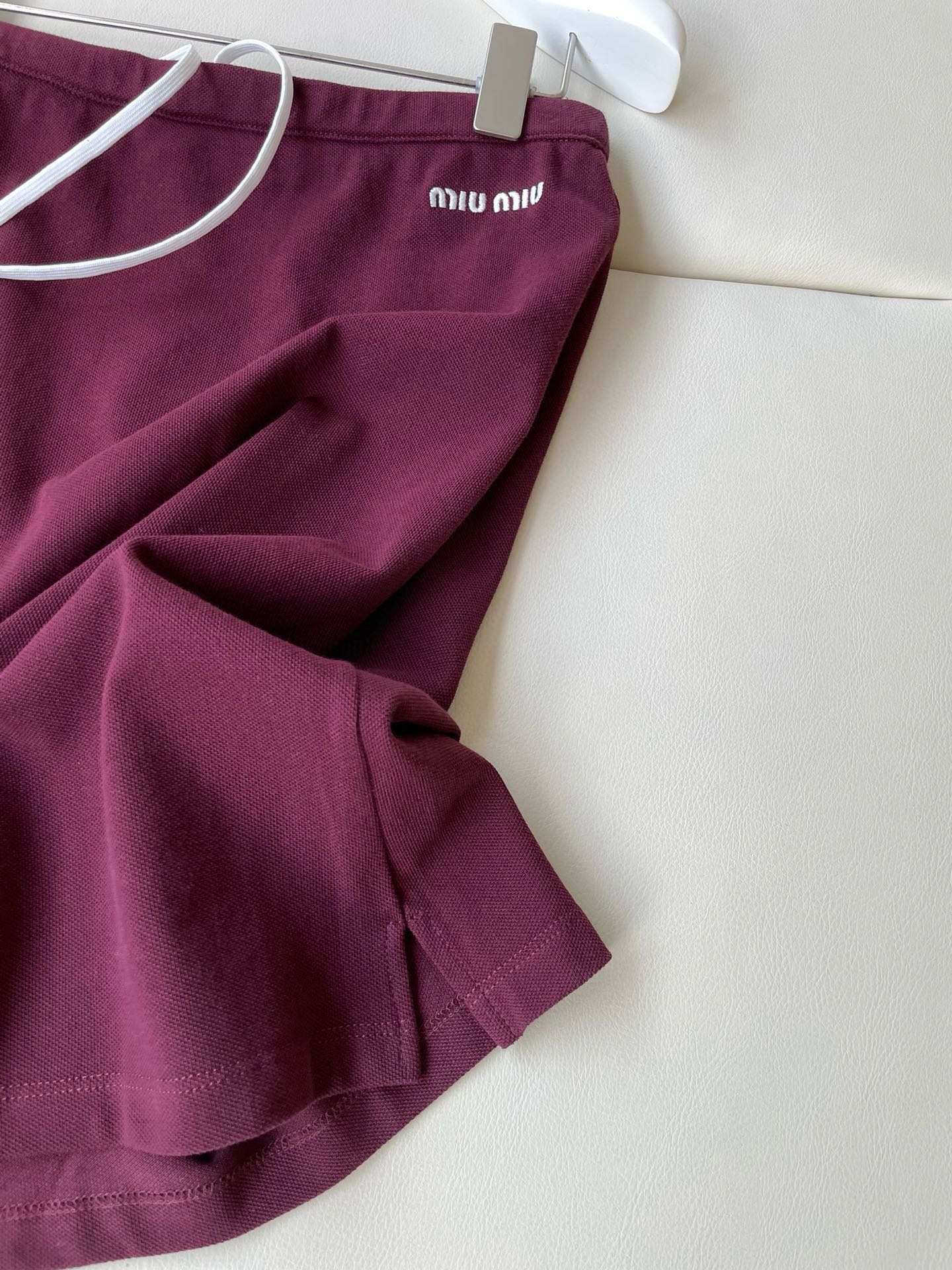 NIGO MiuMiu Women's Summer Red Logo Letter Embroidery Short Sleeve Polo Shirt T-Shirt Tie Short Skirt Set Suit #nigo72866