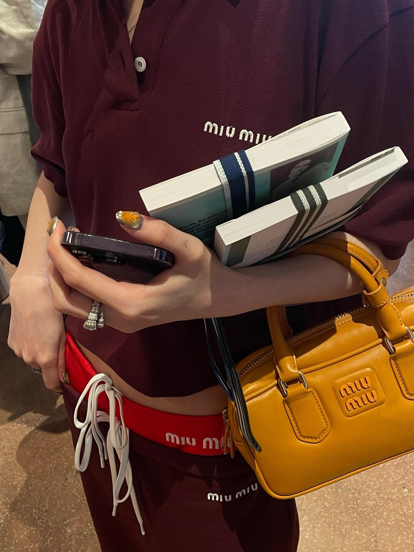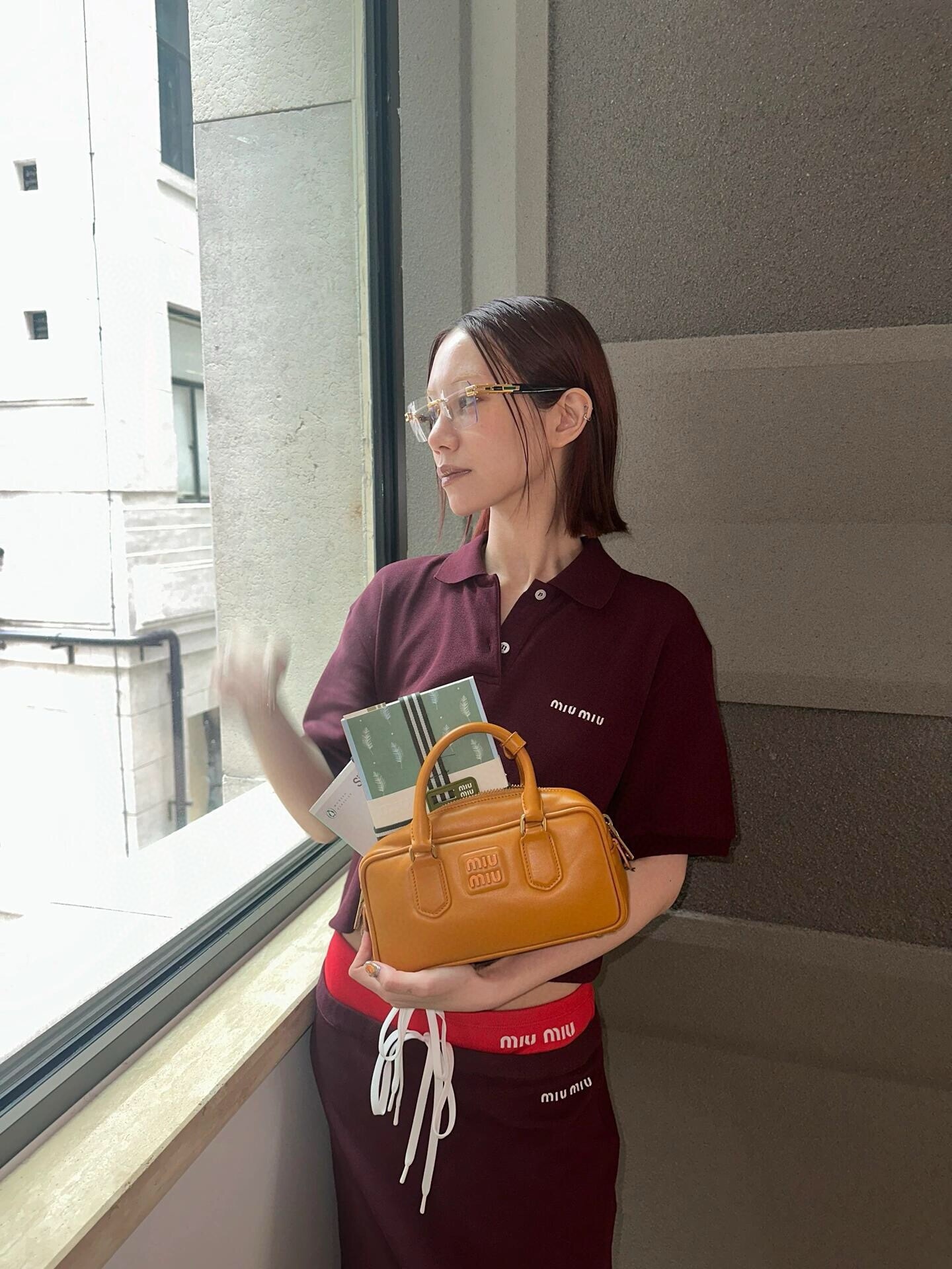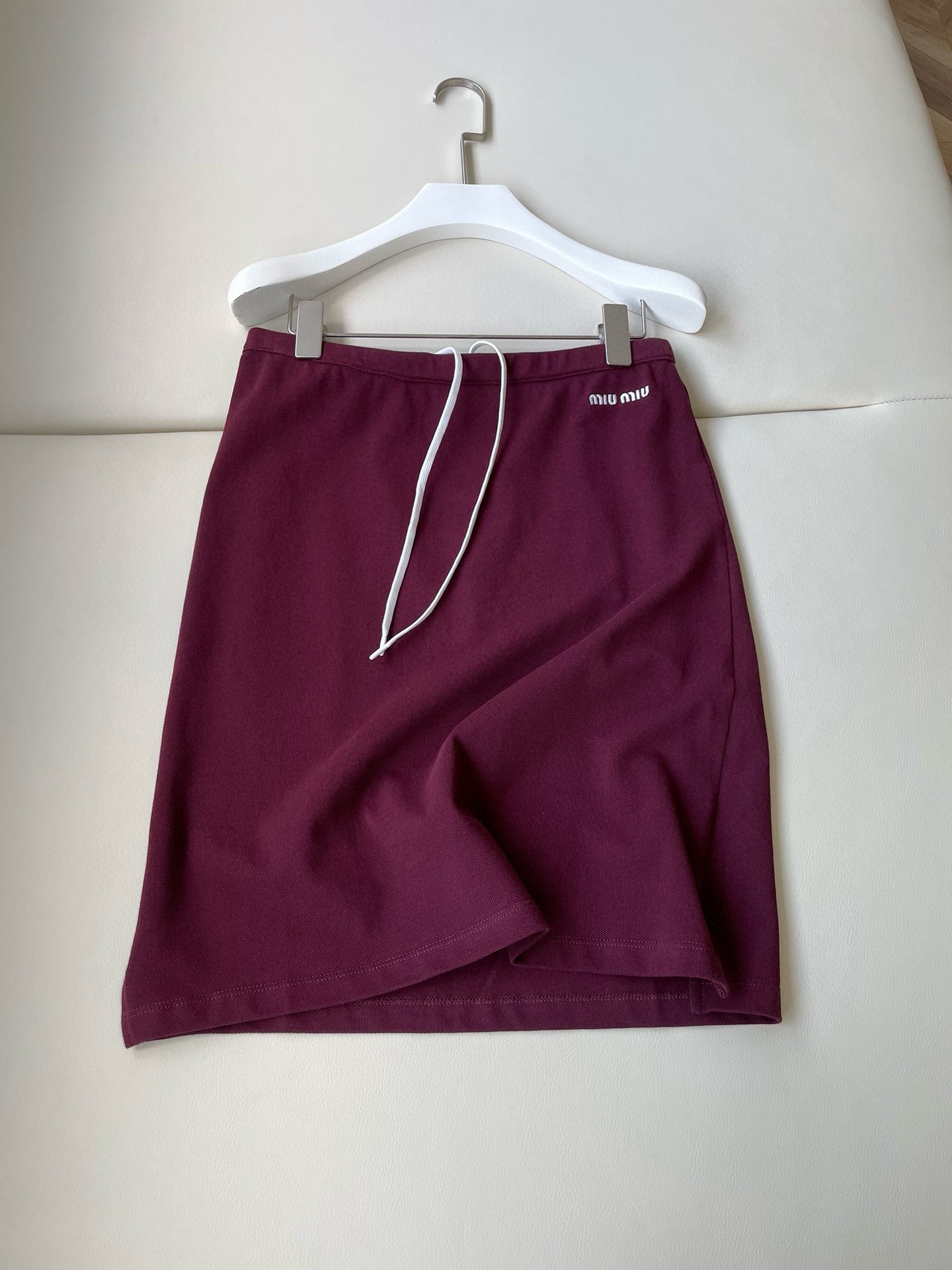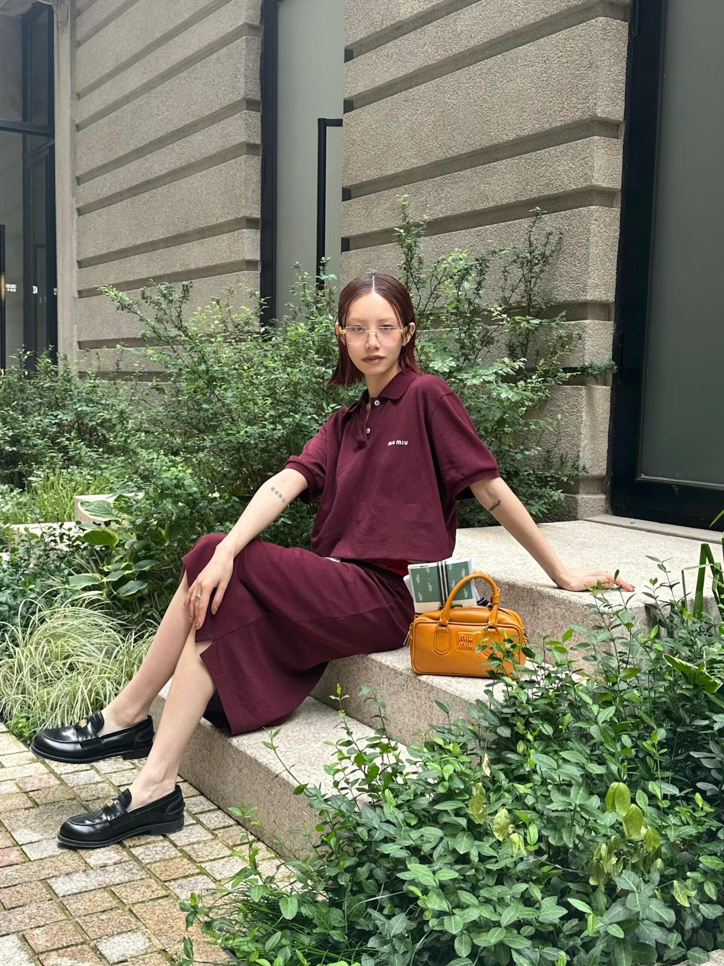 NIGO MiuMiu Women's Summer Red Logo Letter Embroidery Short Sleeve Polo Shirt T-Shirt Tie Short Skirt Set Suit #nigo72866