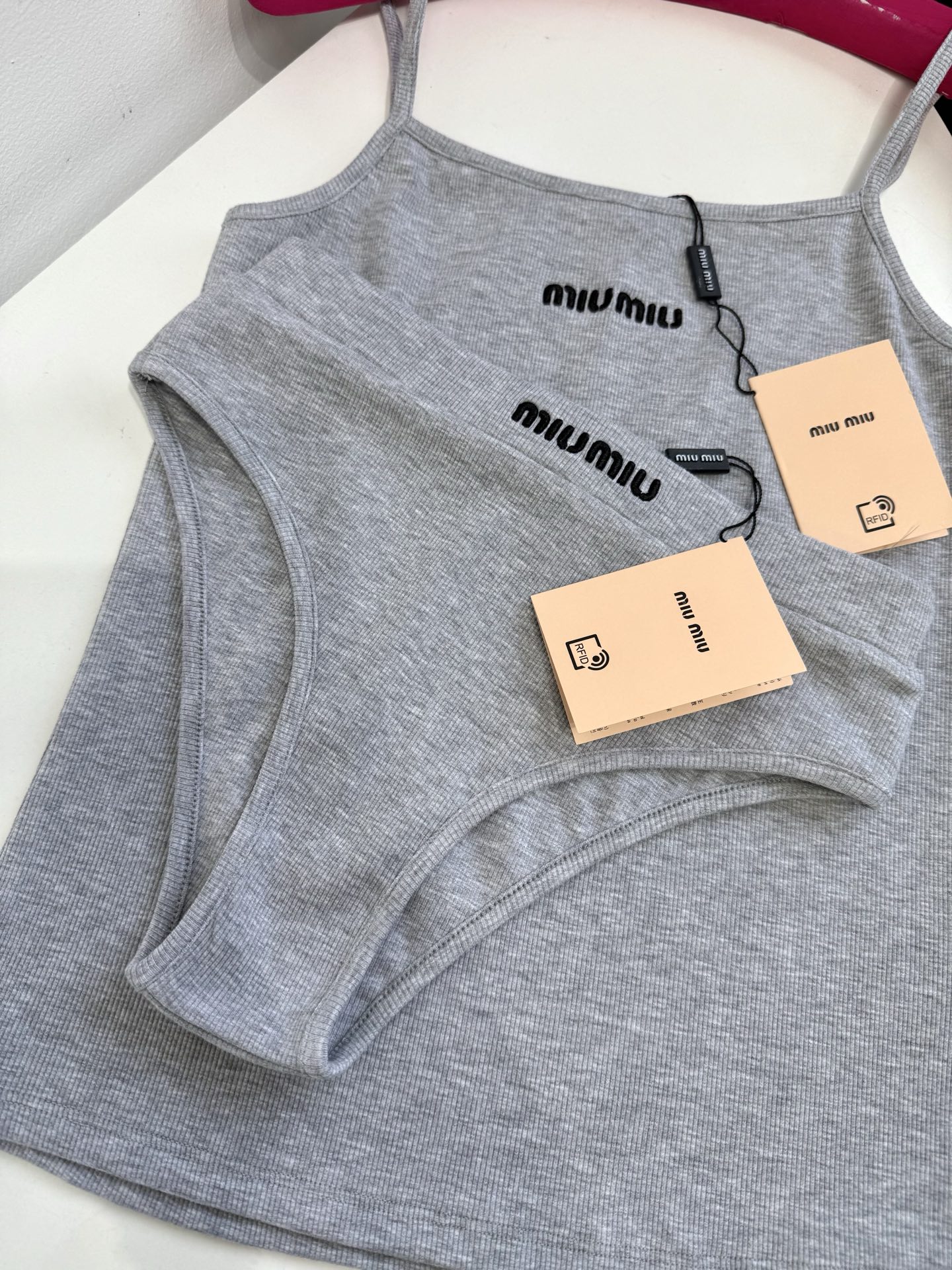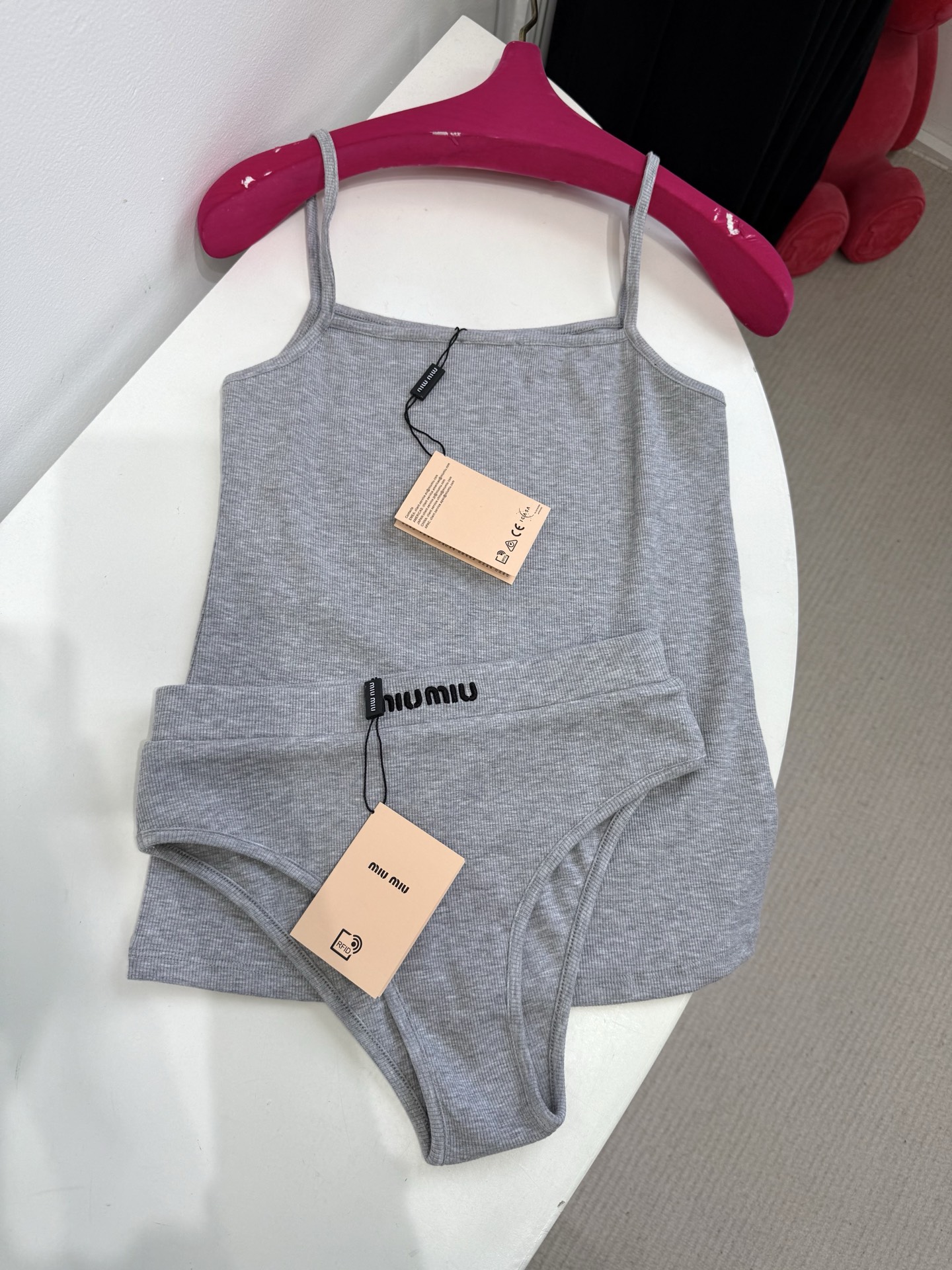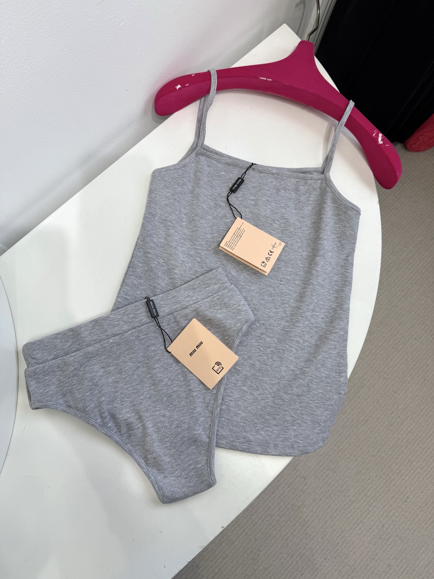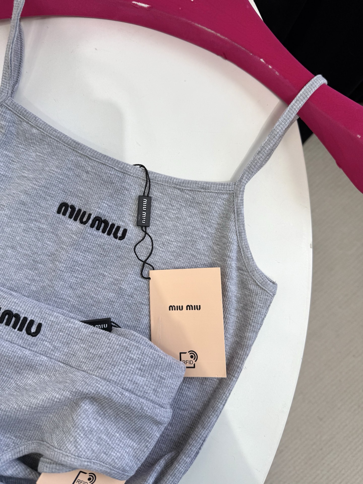 NIGO MiuMiu Women's Summer Solid Colour Seamless Knitted Cotton Camisole Top Triangle Shorts Set Suit #nigo76916