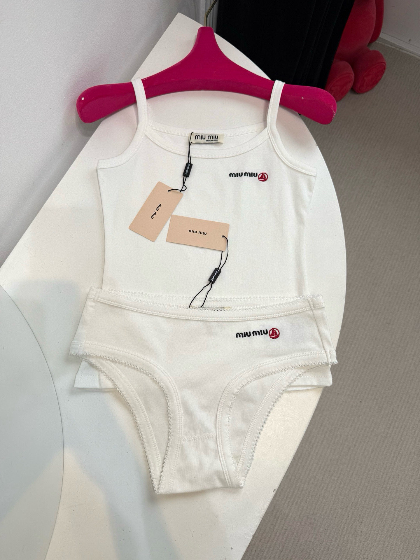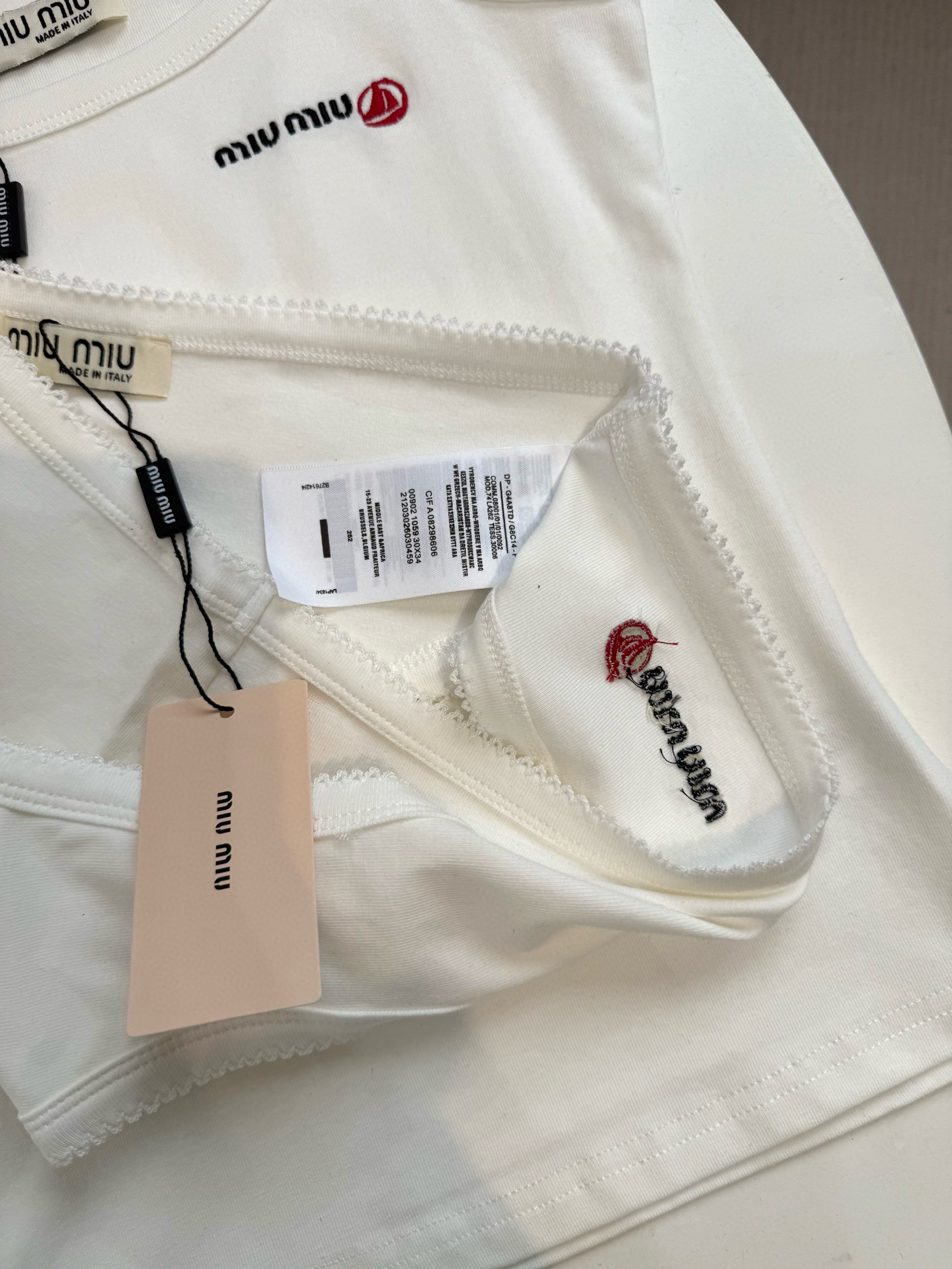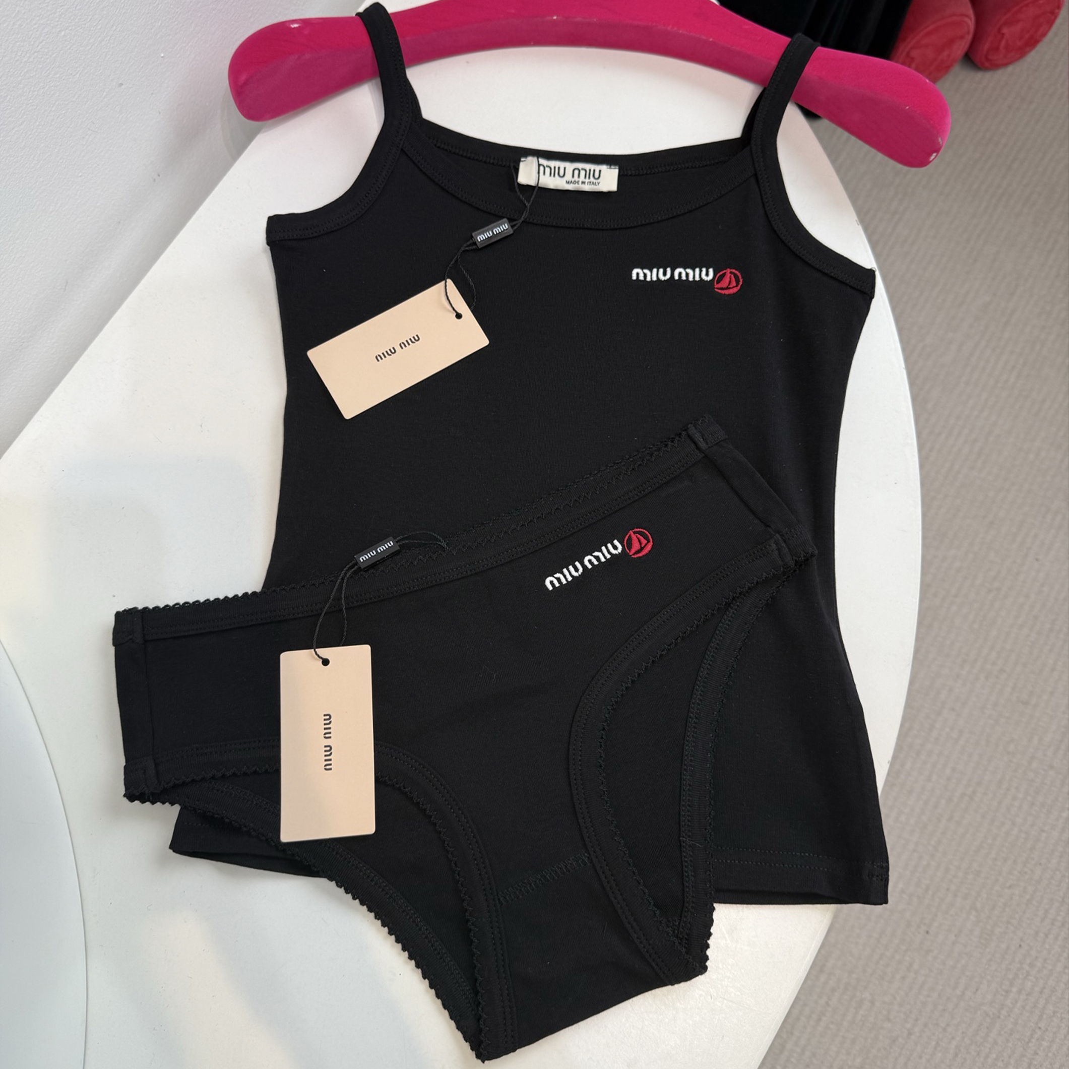NIGO Petit Bateau X Miu Miu Women's Summer Stretch Plain Knit Top Knit Trousers Fashion Beach Wear White Black Trend Elegant Embroidery Set Suit #nigo76431