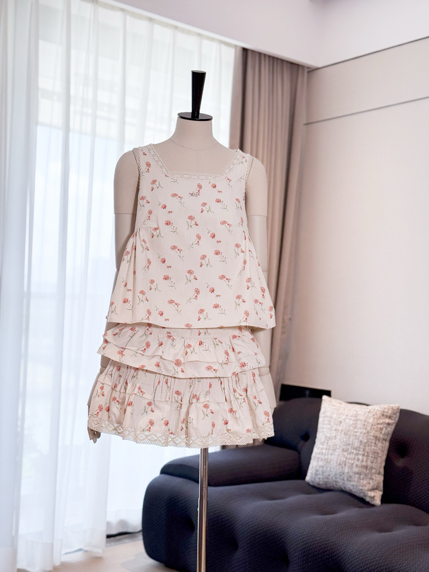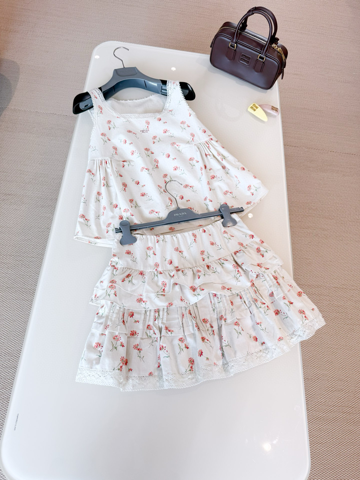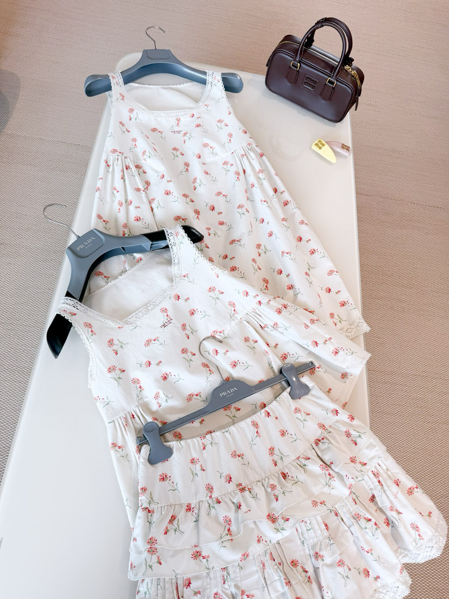 NIGO Prada Women's Summer Fashion Casual Floral Print Linen Mini Sleeveless Top and Suit Set #nigo78156