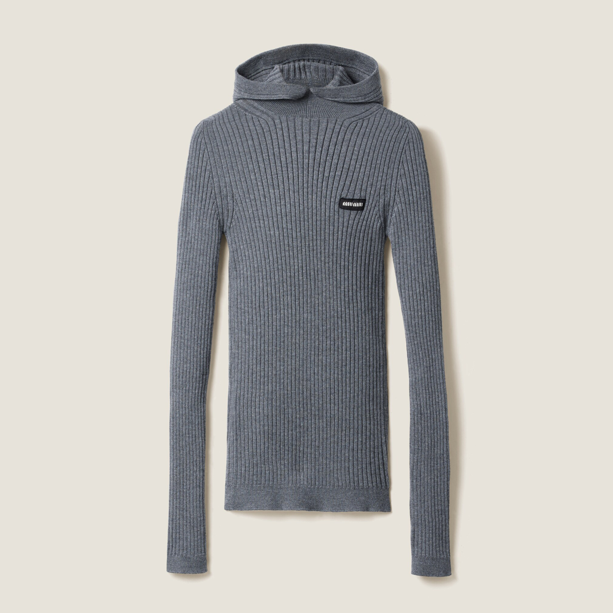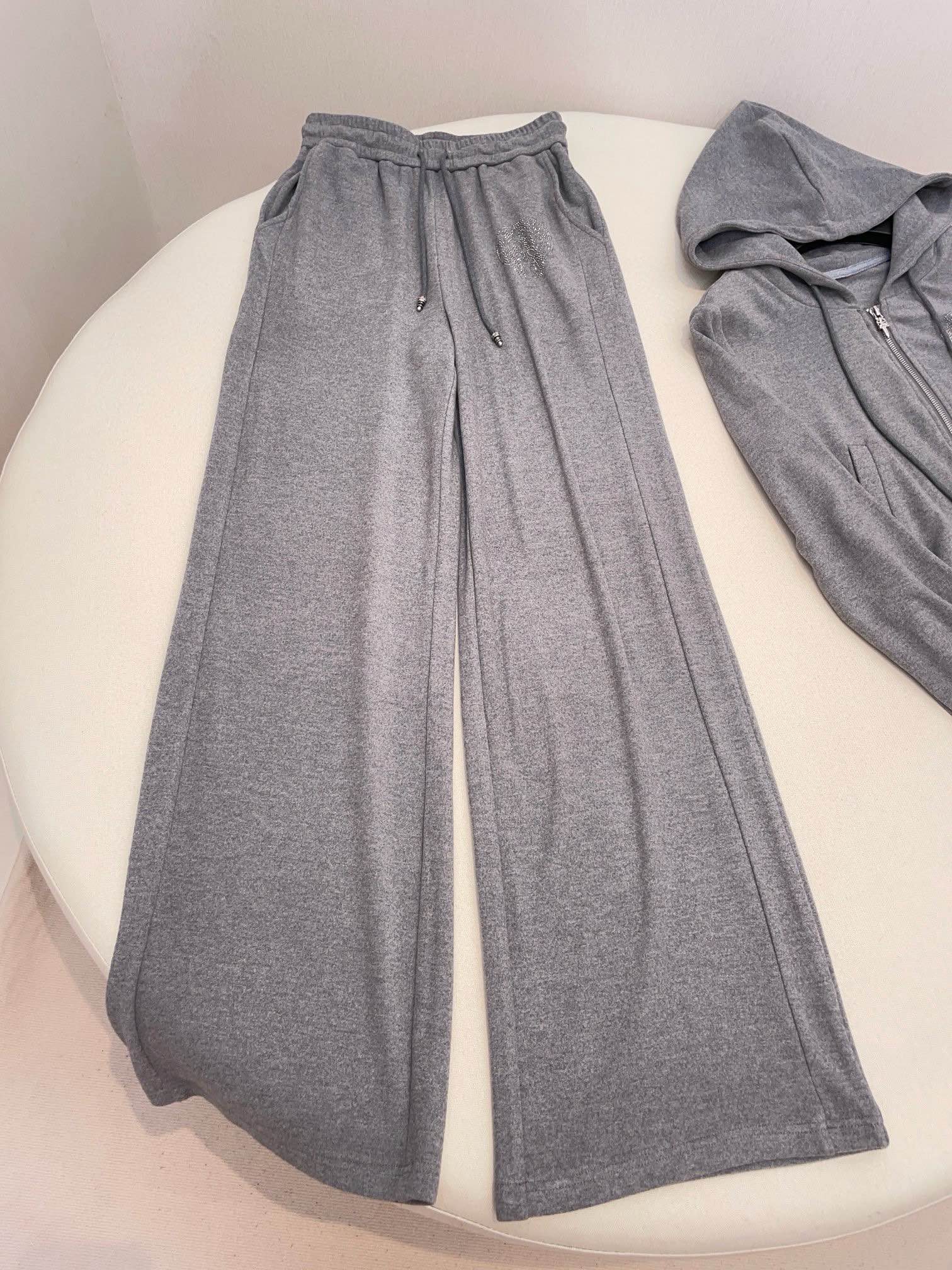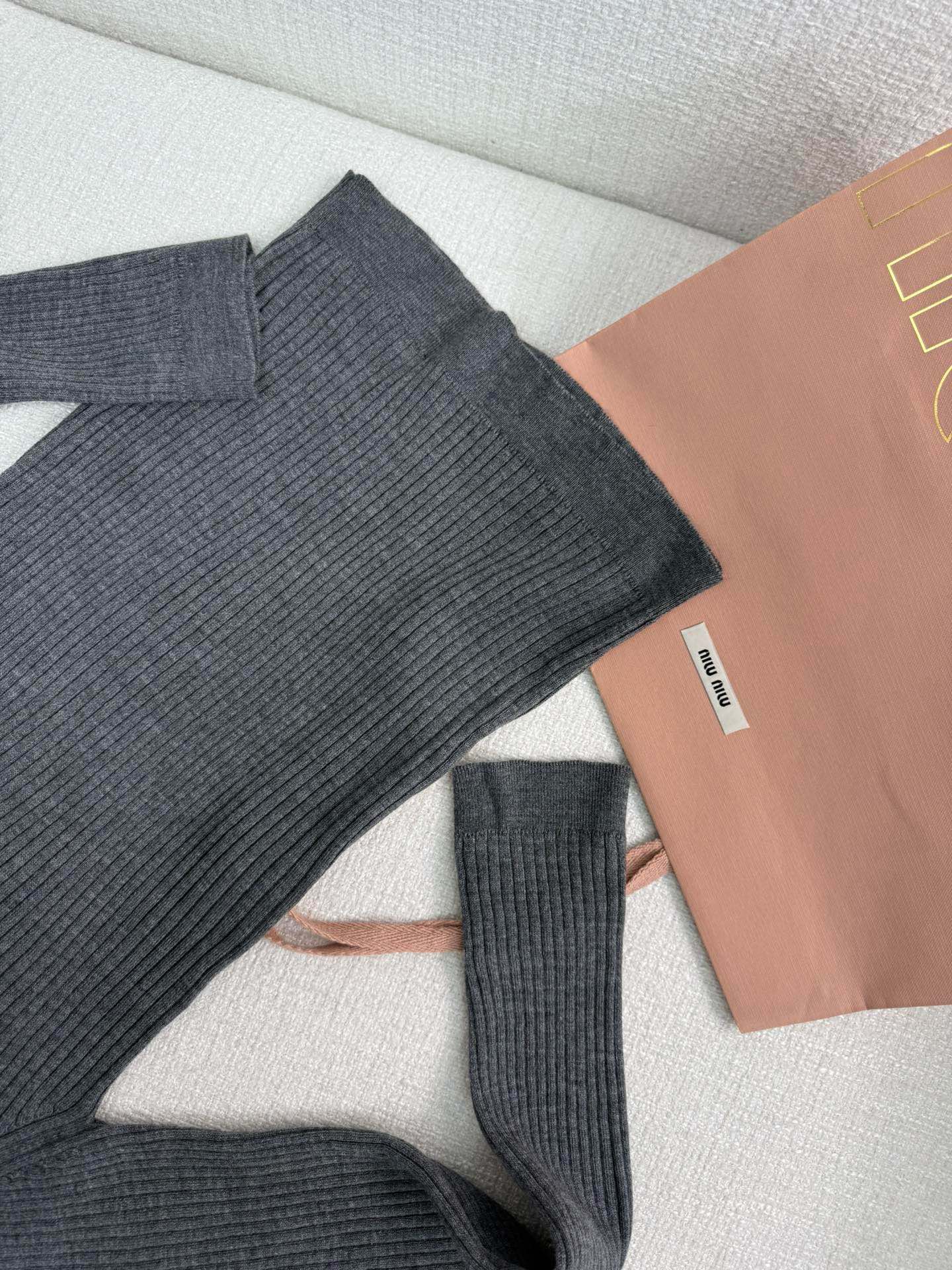 NIGO MiuMiu Women's Spring and Autumn Solid Color Wool High Neck Hooded Knitted Sweater Pants Set Suit #nigo73782