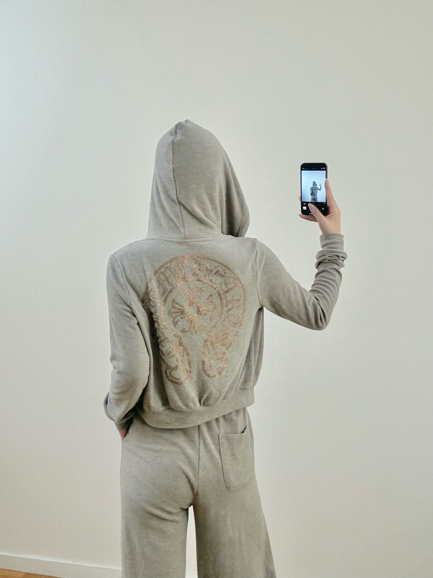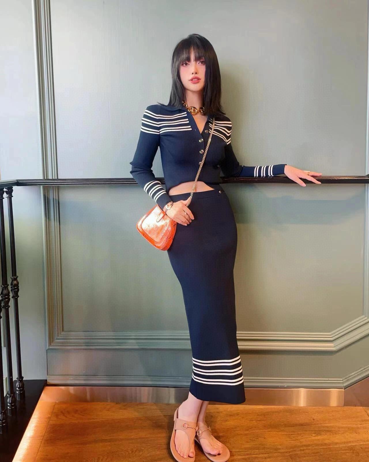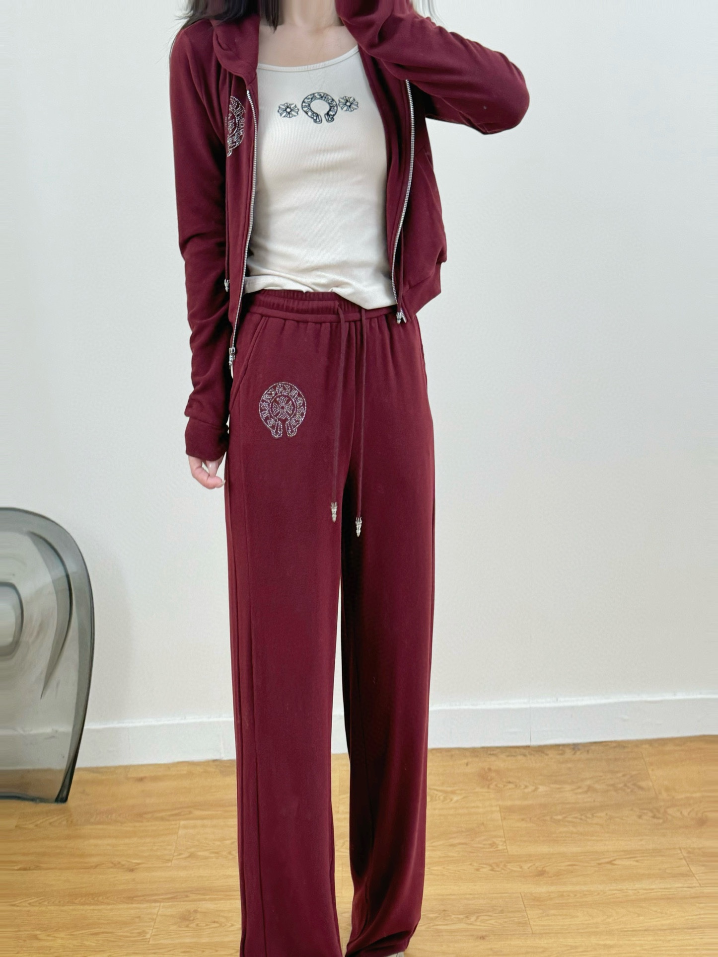 NIGO MiuMiu Women's Spring and Autumn Solid Color Wool High Neck Hooded Knitted Sweater Pants Set Suit #nigo73782