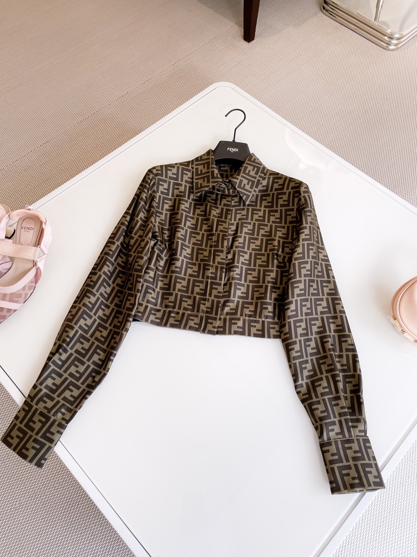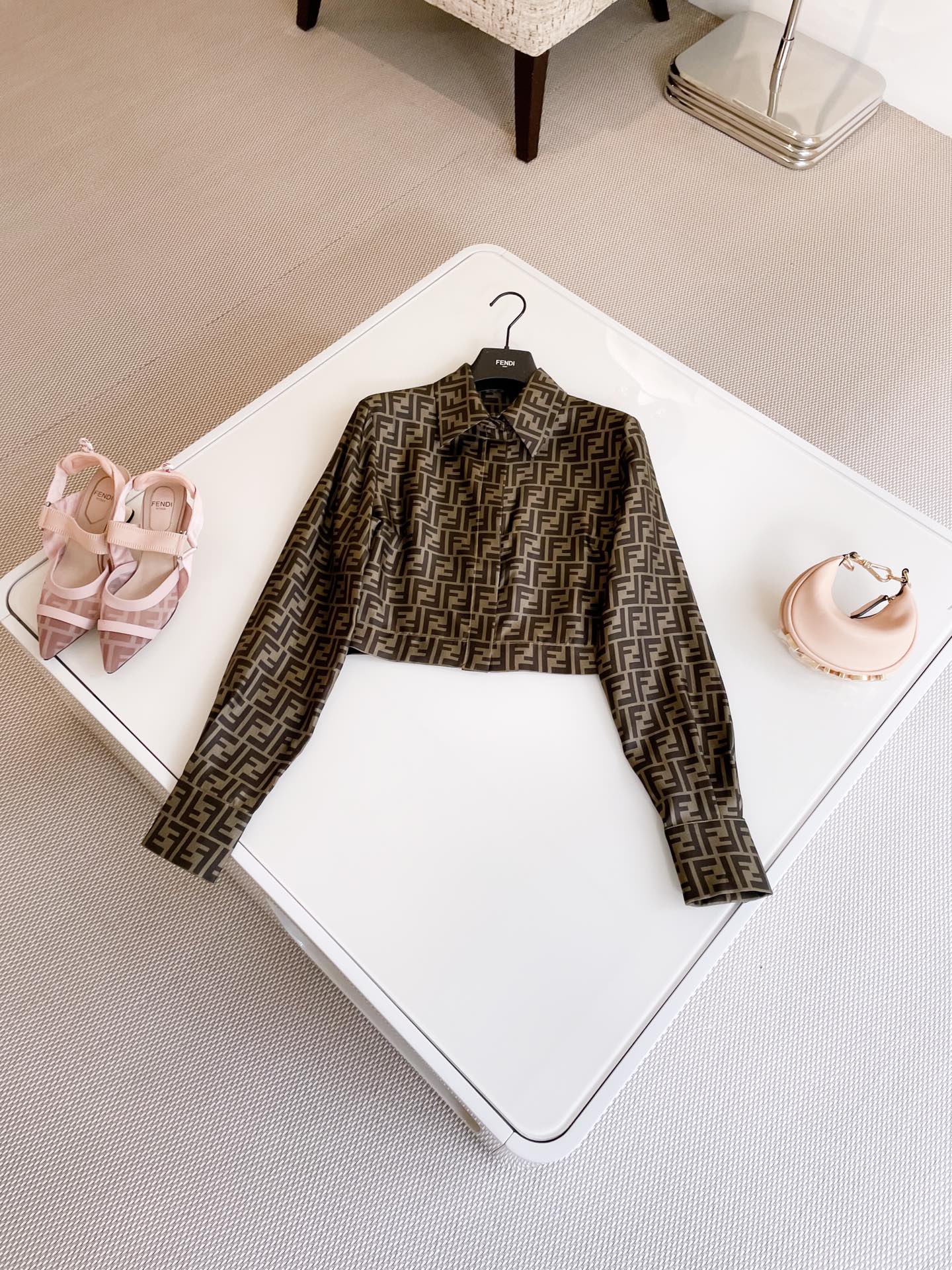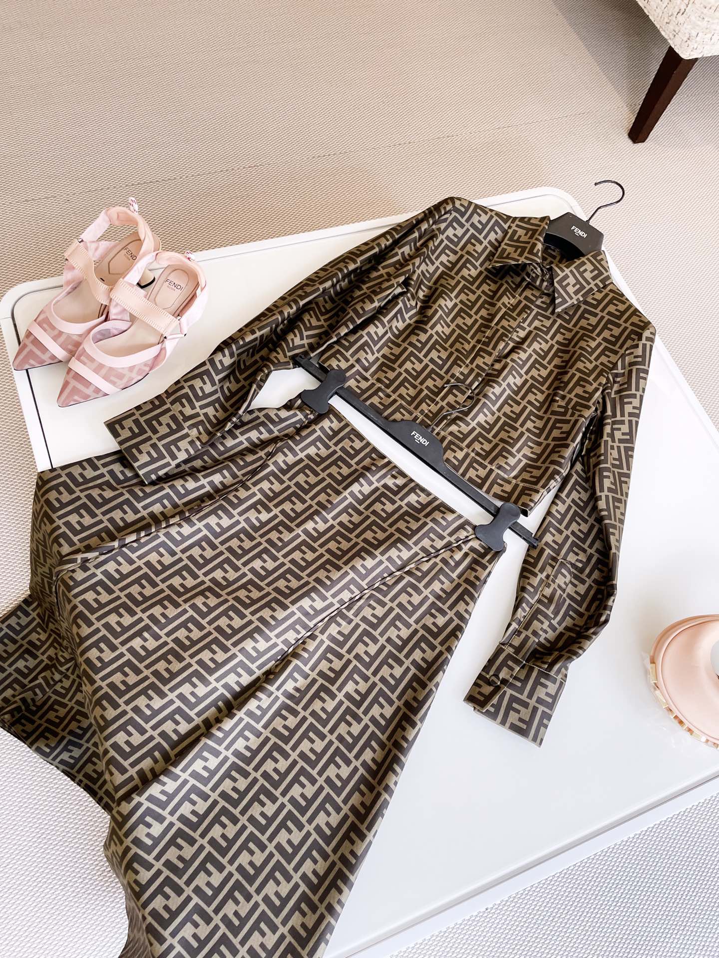 NIGO Fendi Women's Summer FF Letter Printed Lapel Single Breasted Long Sleeve Shirt Silhouette Half Skirt Set Suit #nigo73823