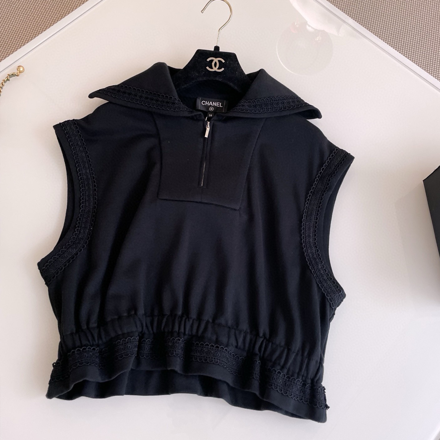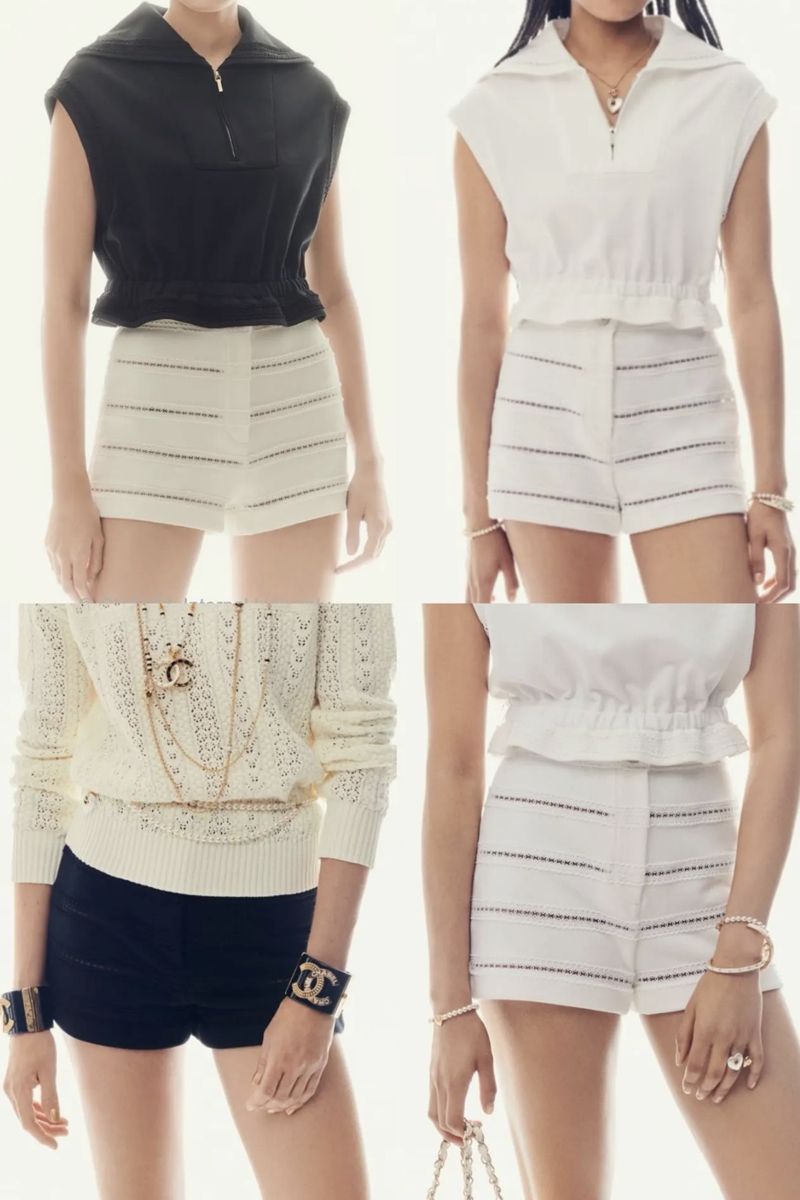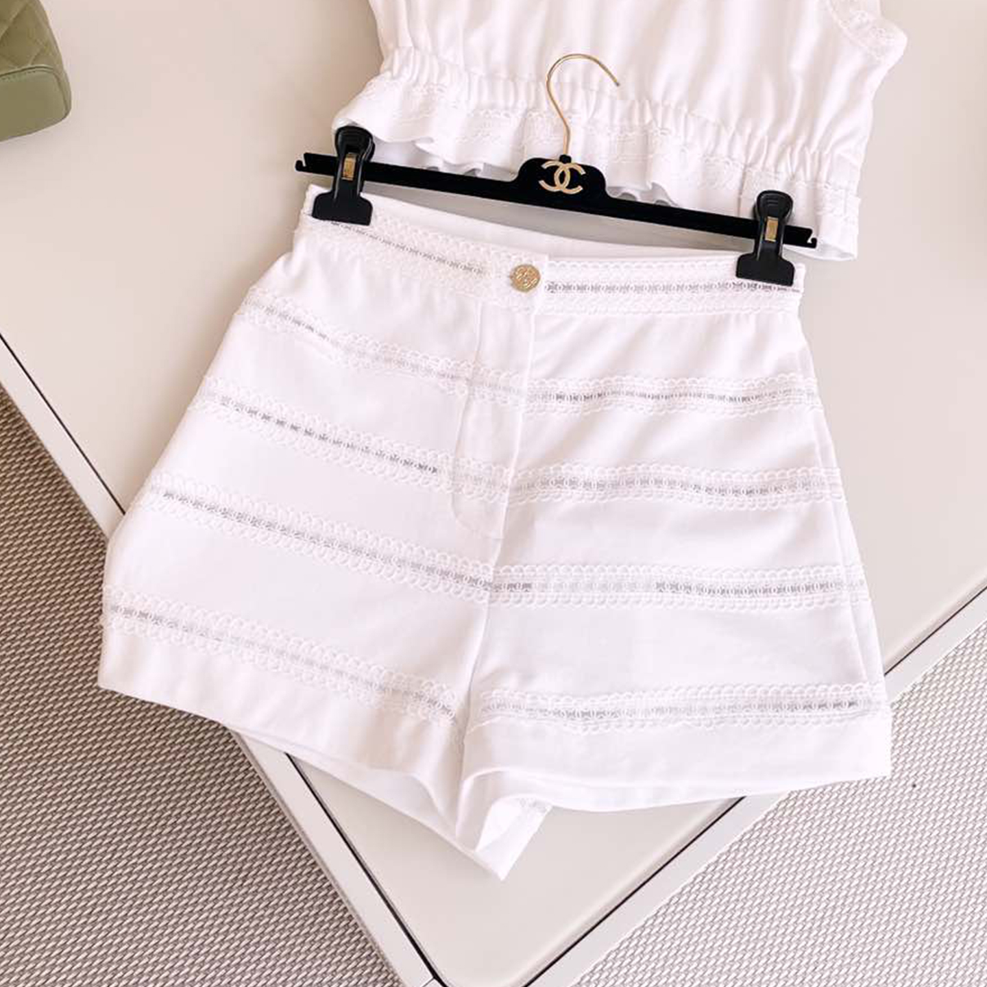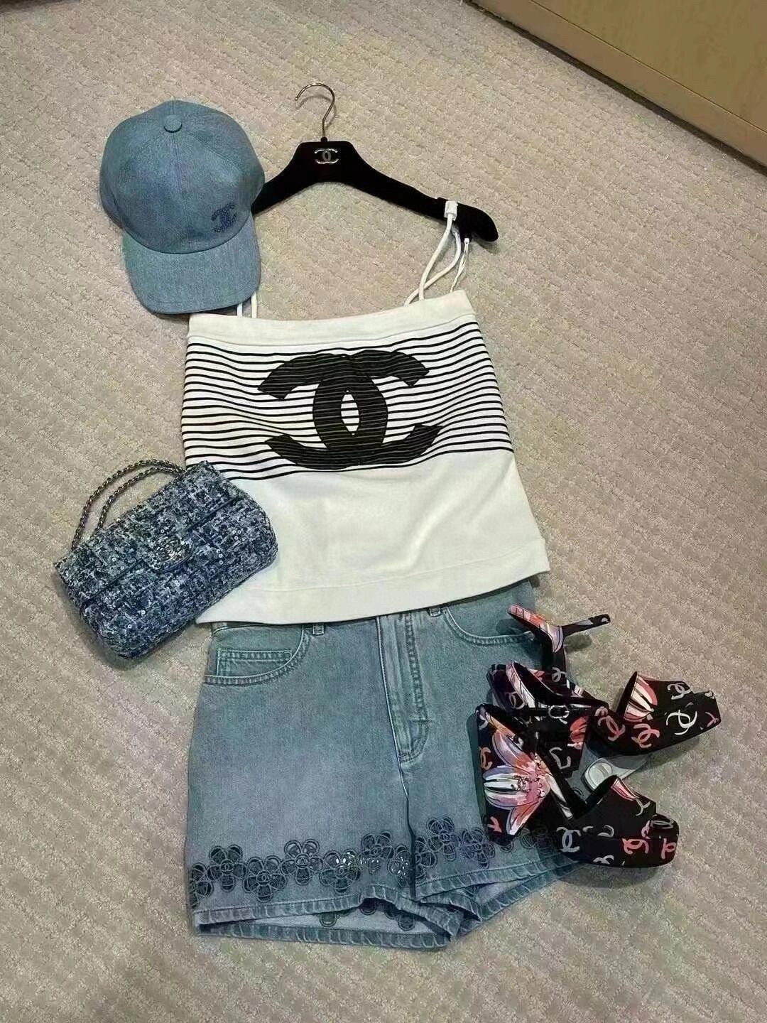 NIGO Chanel Women's Summer Solid Color Cotton Knit Short Hooded Sleeveless T-Shirt Splicing Striped Mesh Lace Embroidery Casual Shorts Ngvp #nigo8957