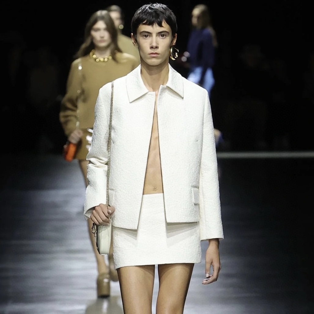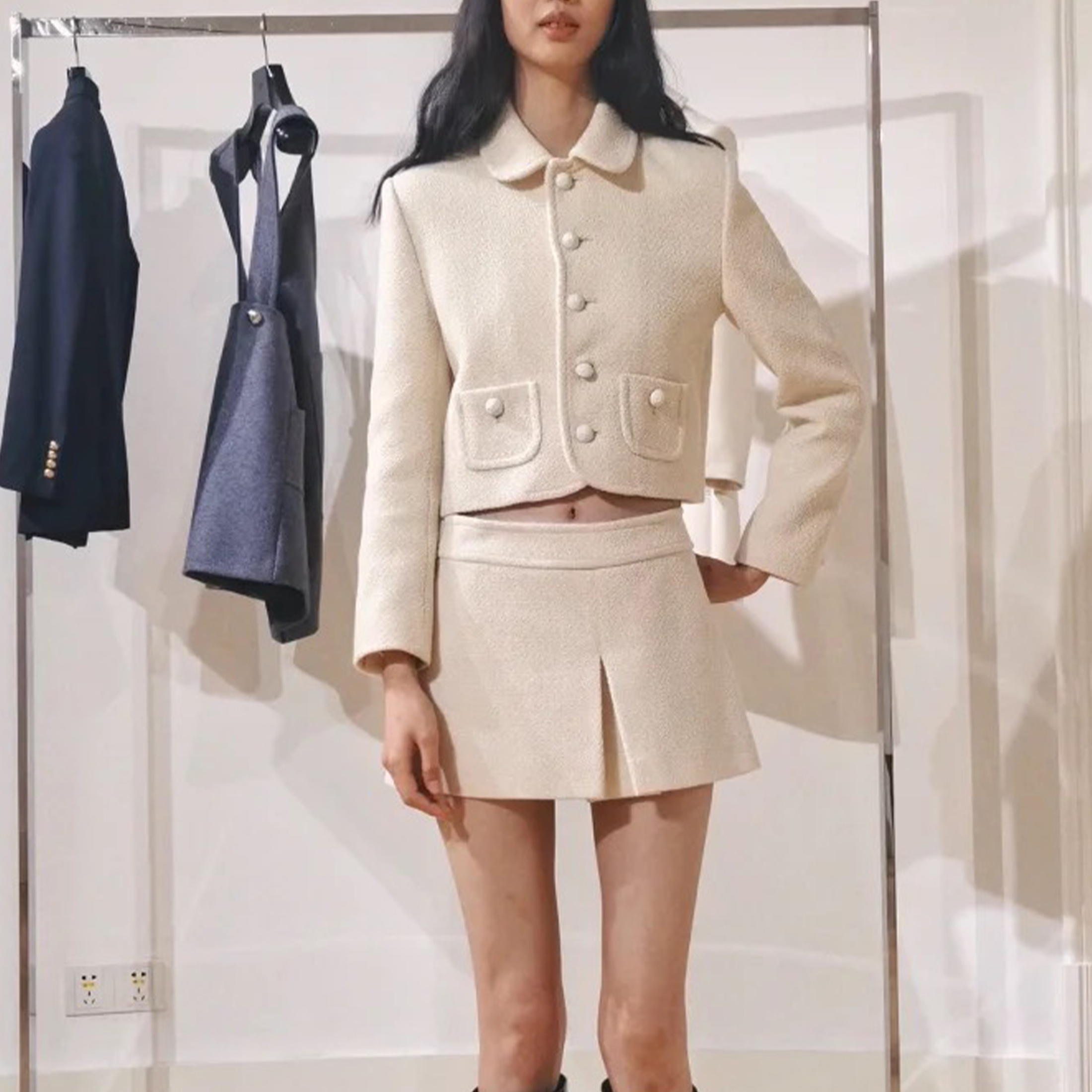 NIGO Gucci Women's Spring And Autumn Textured Cotton Ivory Lapel Blazer Mini Half Skirt Set Fashion Temperament Single Breasted Jacket Ngvp #nigo9137