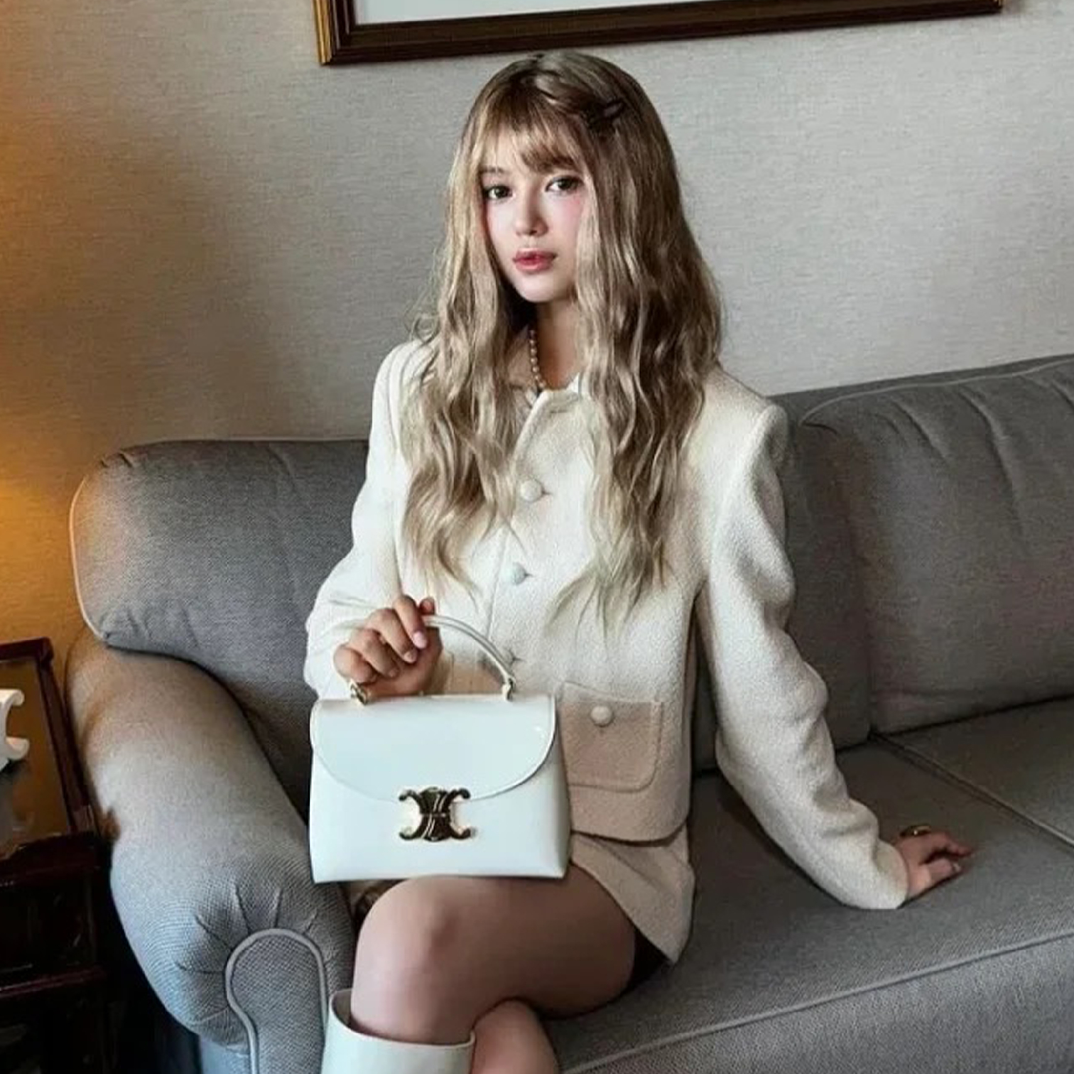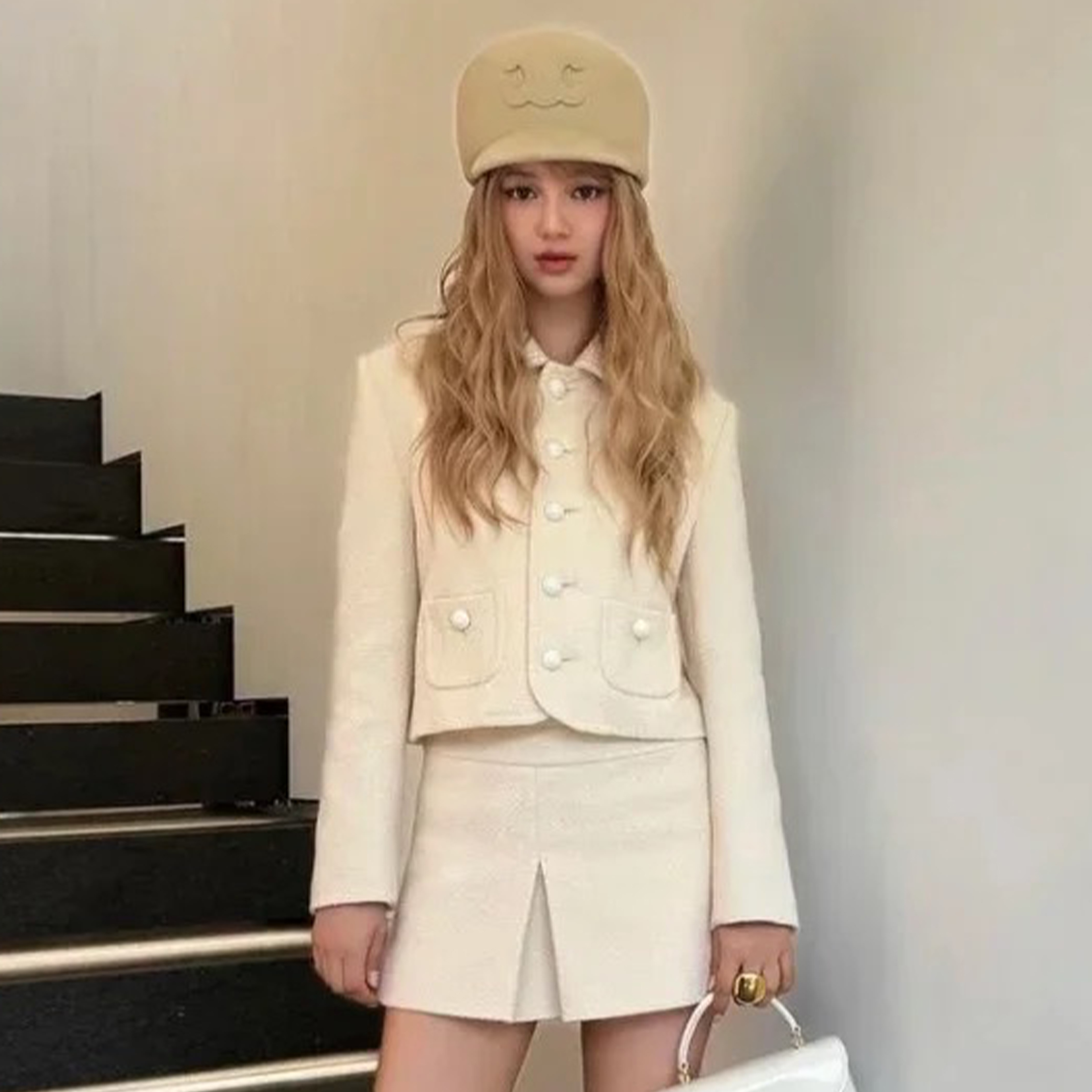 NIGO Celine Women's Fall/winter Verneuil Cashmere Tweed Jacket Cream Lapel Jacket Mini Swing Skirt Suit Set Ngvp #nigo9141