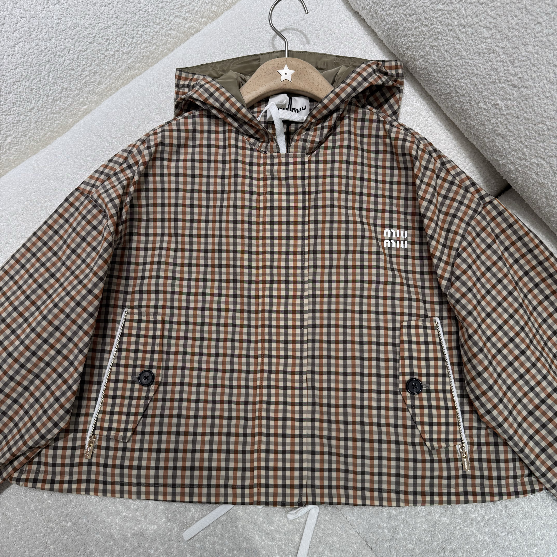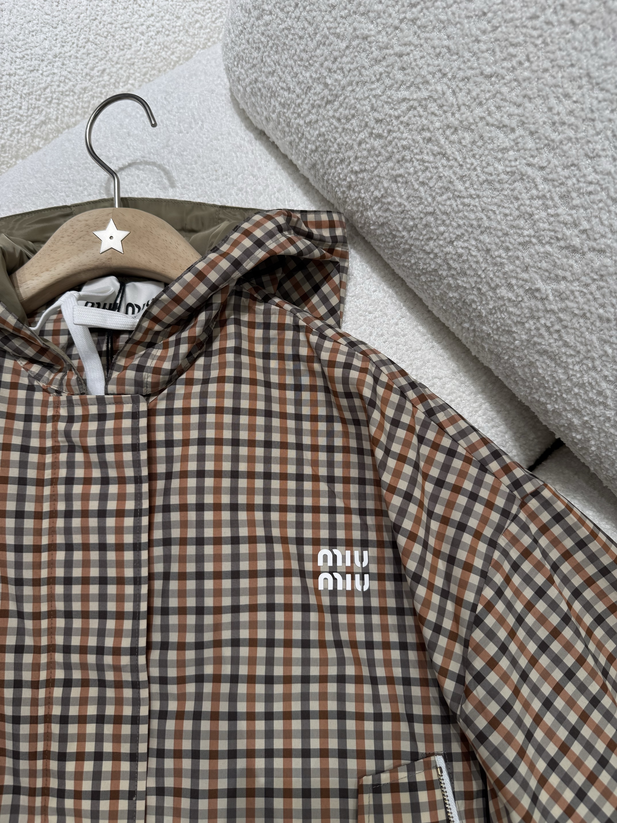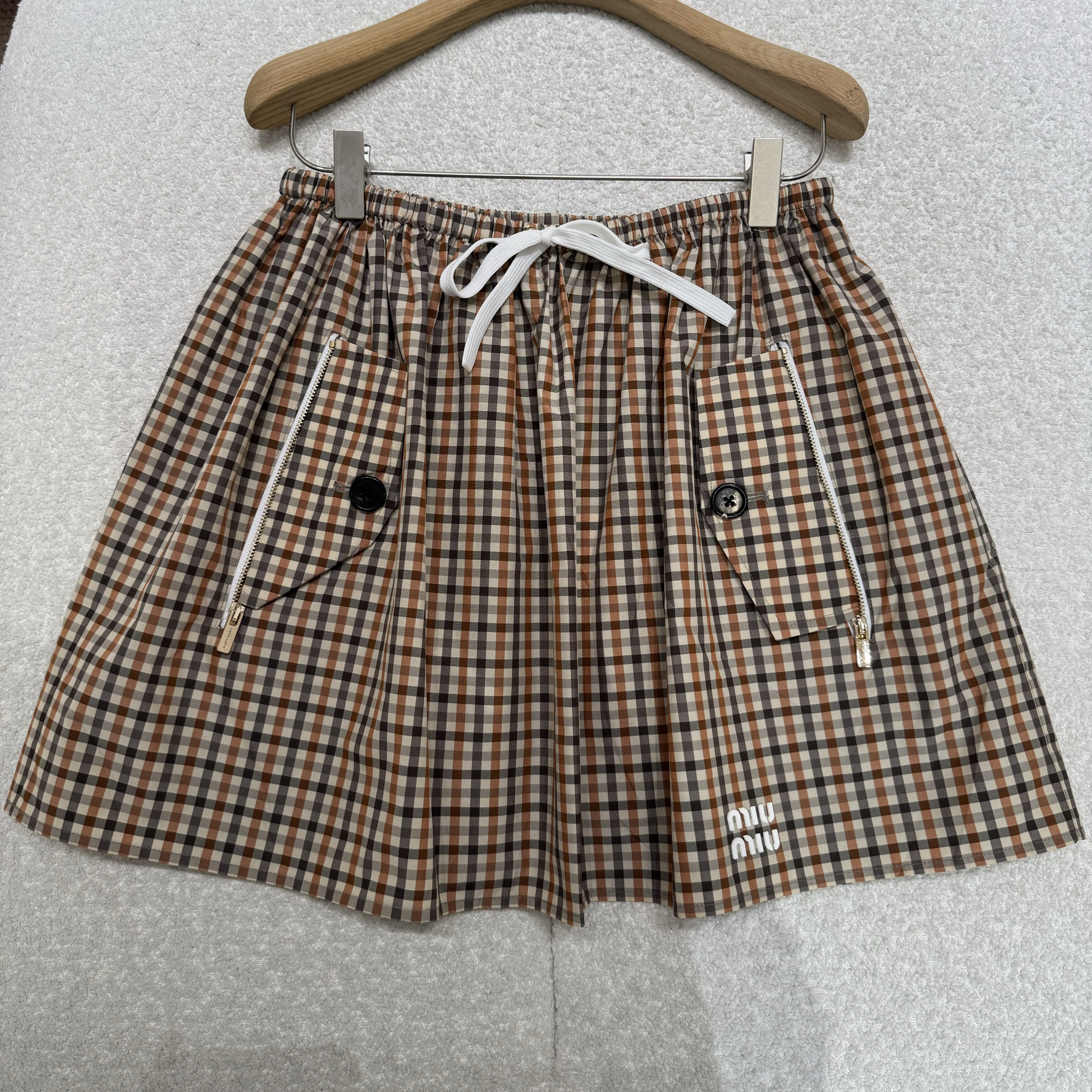 NIGO MiuMiu Women's Spring/Summer Fashion Casual Hooded Zipper Waist Elastic Checkered Jacket Waist Elastic Drawstring Checkered Casual Short Skirt Suit Set #nigo79158