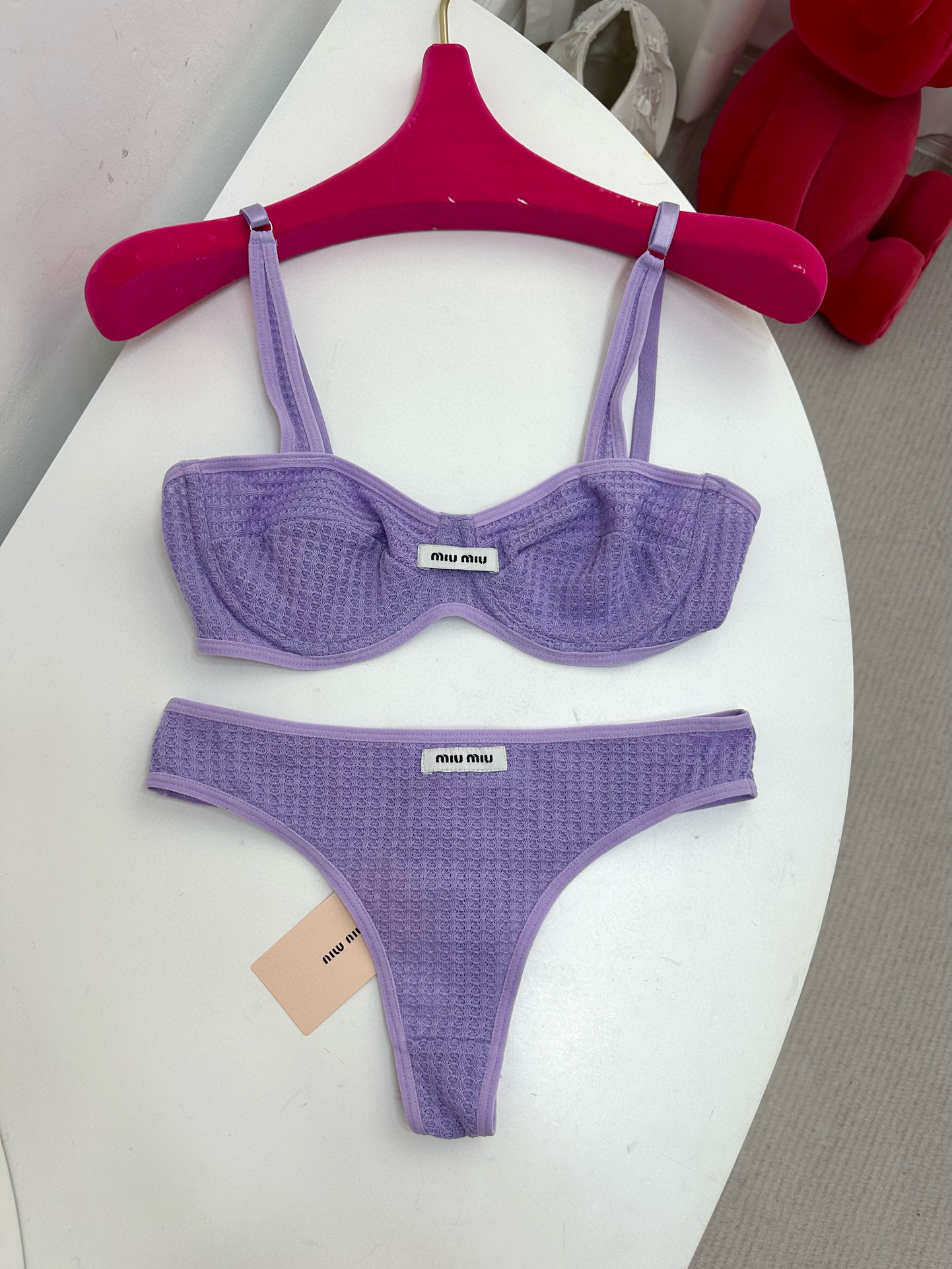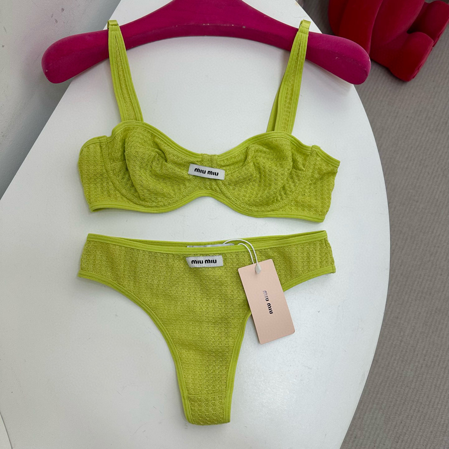NIGO MiuMiu Women's Summer Solid Color Monogram Printed Bra Triangle Panty Underpants Set Suit #nigo98894