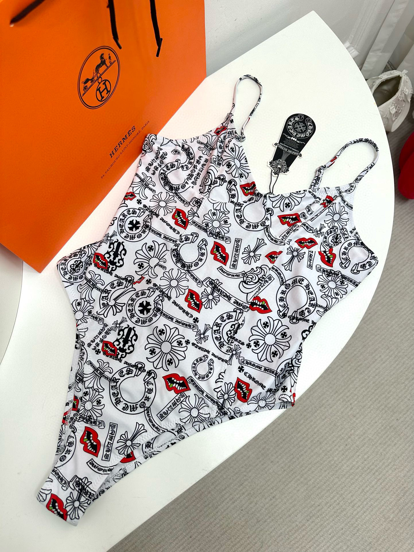 NIGO Chrome Hearts Women's Summer Simple Graffiti Print One Piece Swimsuit #nigo99283